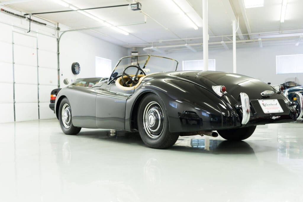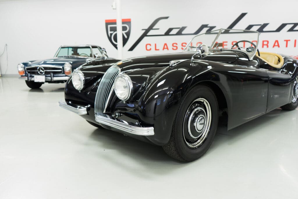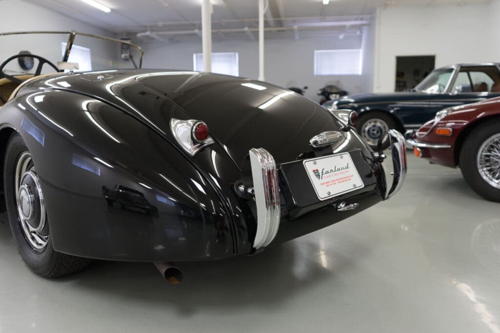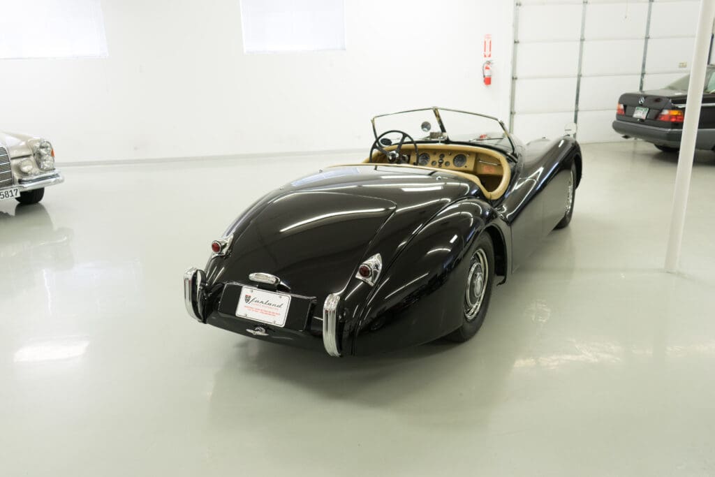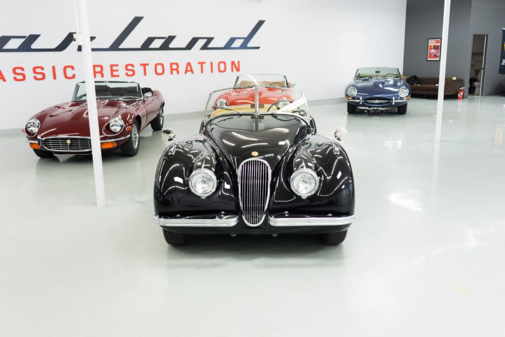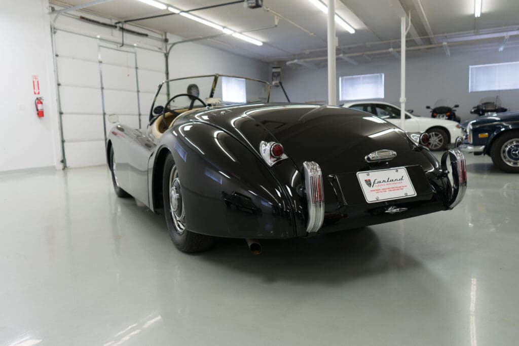 THIS CAR HAS BEEN SOLD – Please call 720-588-8427 or Email info@farlandcars.com to speak to a specialist about other options. A very early-production XK120 that was originally a North American-specification car. It retains its original engine, confirmed with numbers from the brass data plate. (Heritage Certificate has been ordered) The original transmission has been replaced with a modern Tremec 5-speed for more relaxed touring use, along with Dynamat insulation under the carpets. All the instruments work, the car has no oil pressure or overheating issues (a supplemental electric fan has been added) and it is complete with the full original tool kit, jack and proper spare wheel & tire. 670362 was given a thorough restoration in the late 1980s, but had never been bedraggled or rusty and has been garaged ever since.