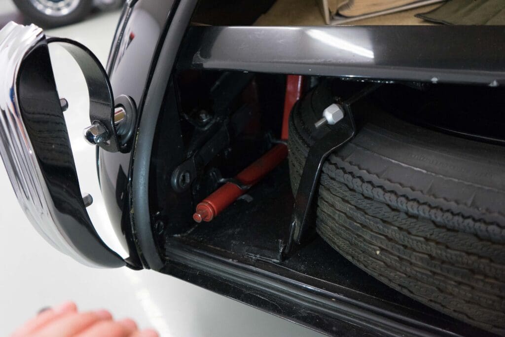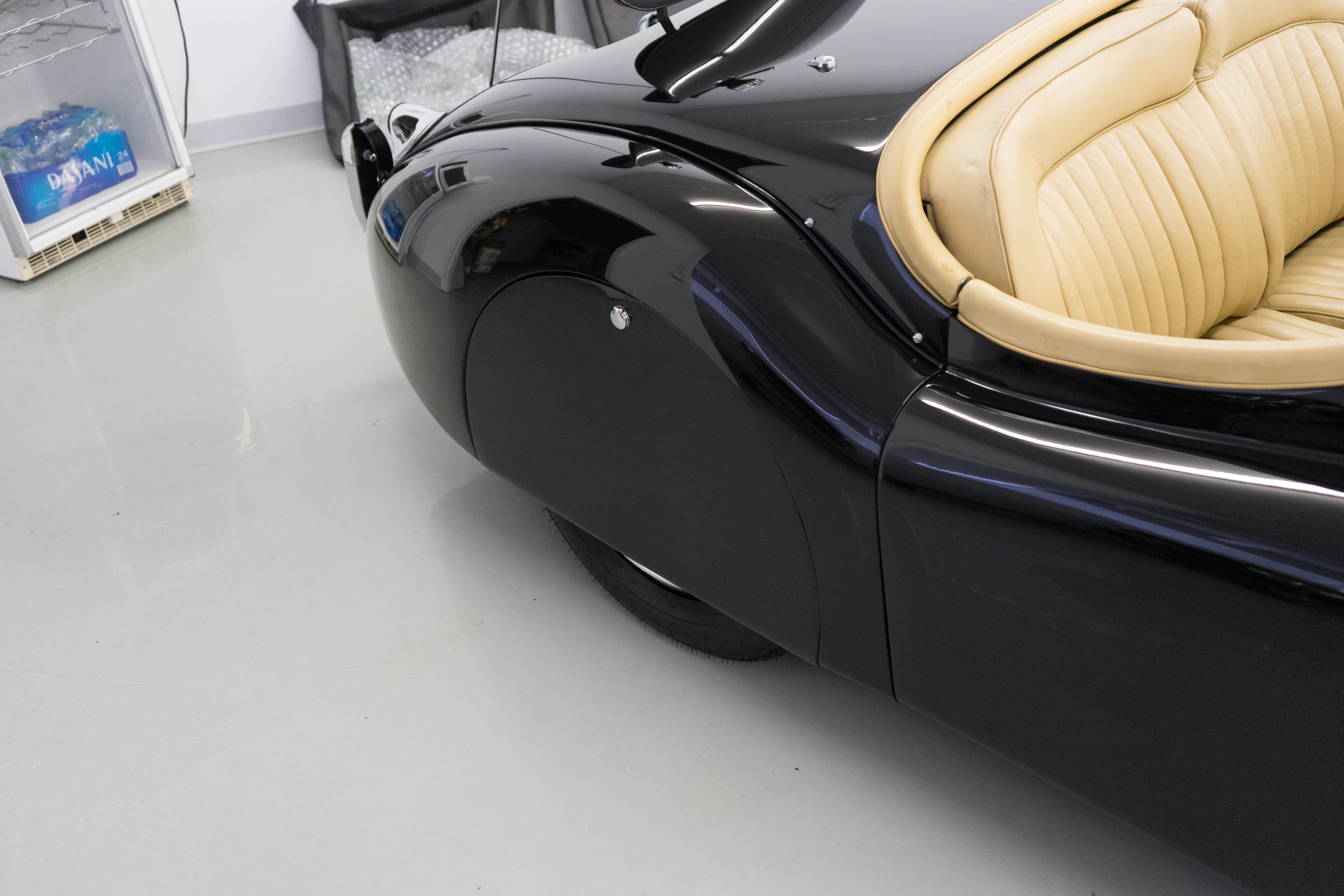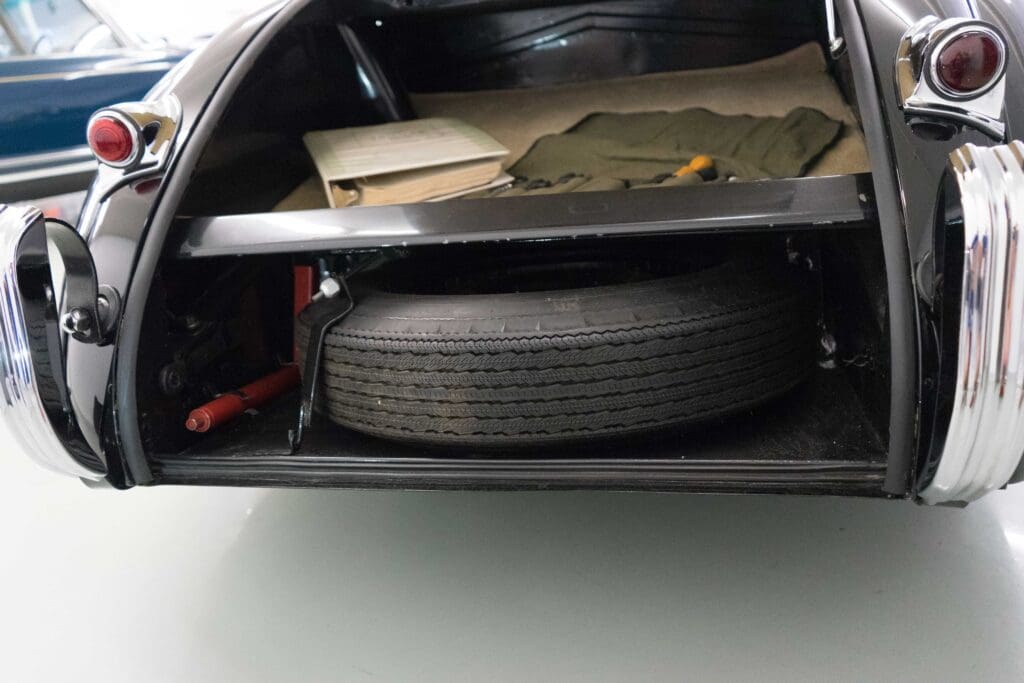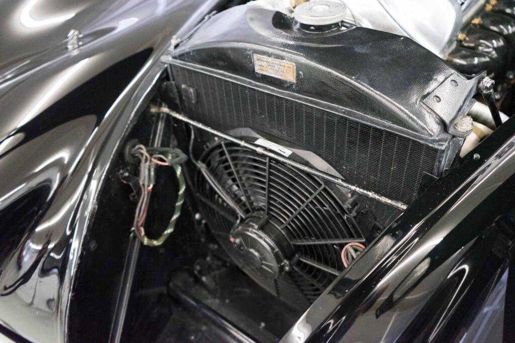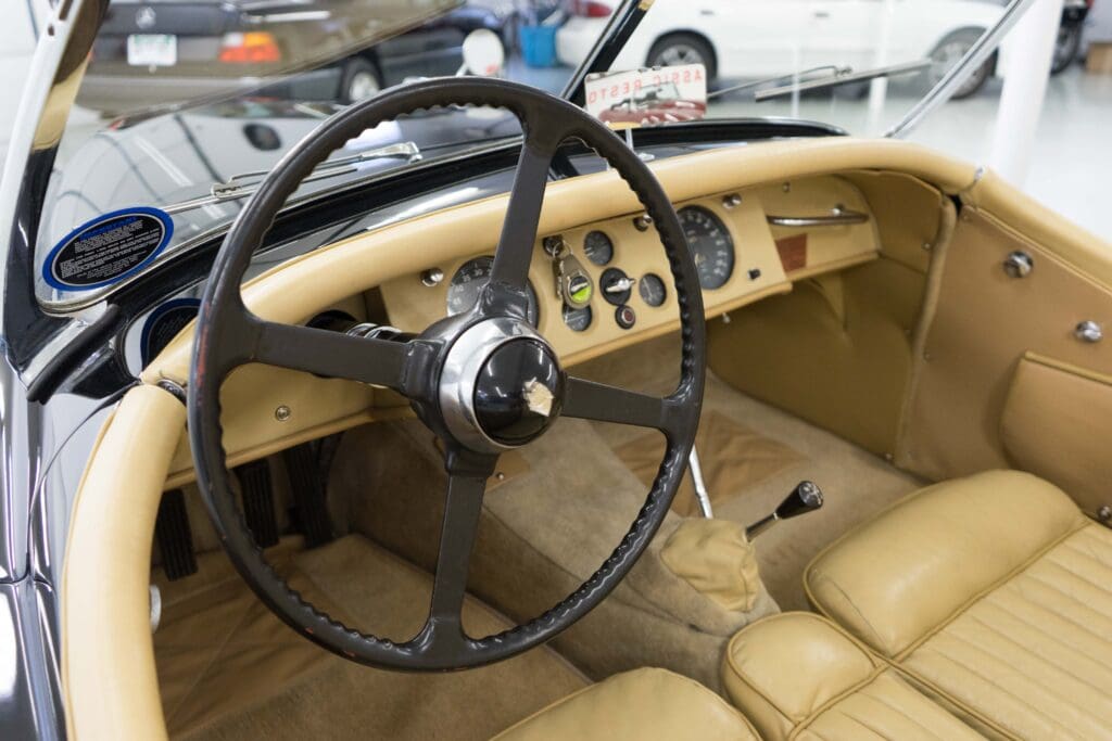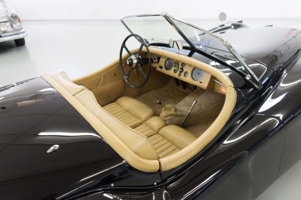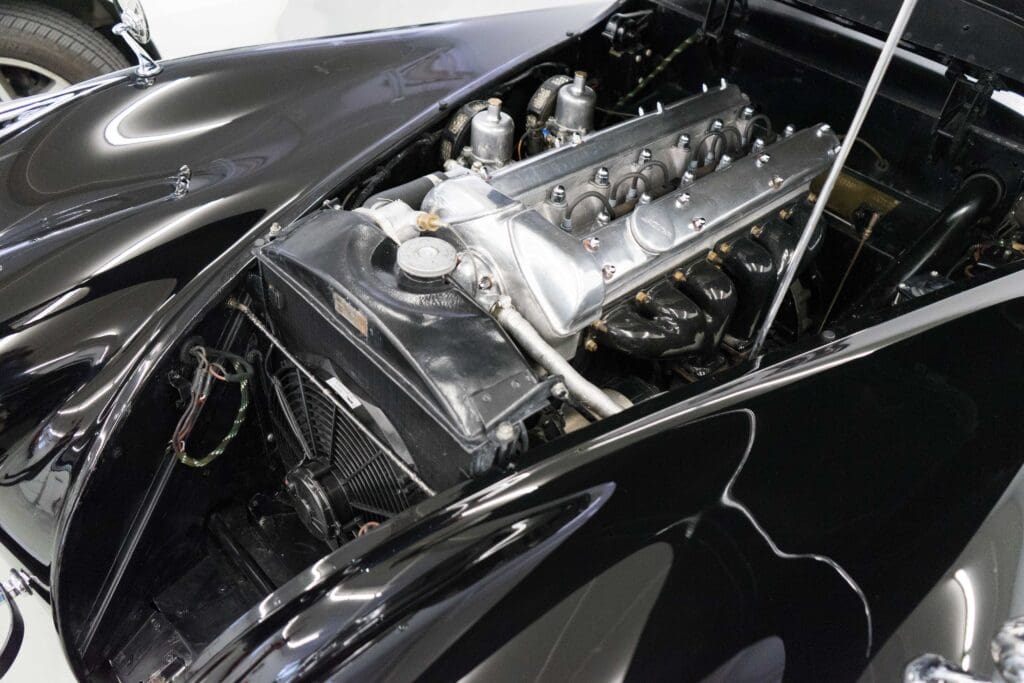 A few years ago the fuel system, brakes, tires and overall running gear was freshened up after a period of storage and the car runs and drives very well today. That work included new front torsion bars—a key component to making a 120 drive properly. The paint was done three years ago and looks great, the 30 year-old pale beige leather and carpets now have a beautiful patina, but do have a few places where the dye is thin. We elected to not redye, so prospective buyers could see and feel exactly what condition the seats are in. The convertible top shows some wear, while the side curtains are still bubble-wrapped in custom padded sleeves and appear as new.If you have been looking for an authentic XK 120 that is already prepped to go on any extended tour, your search is over.
