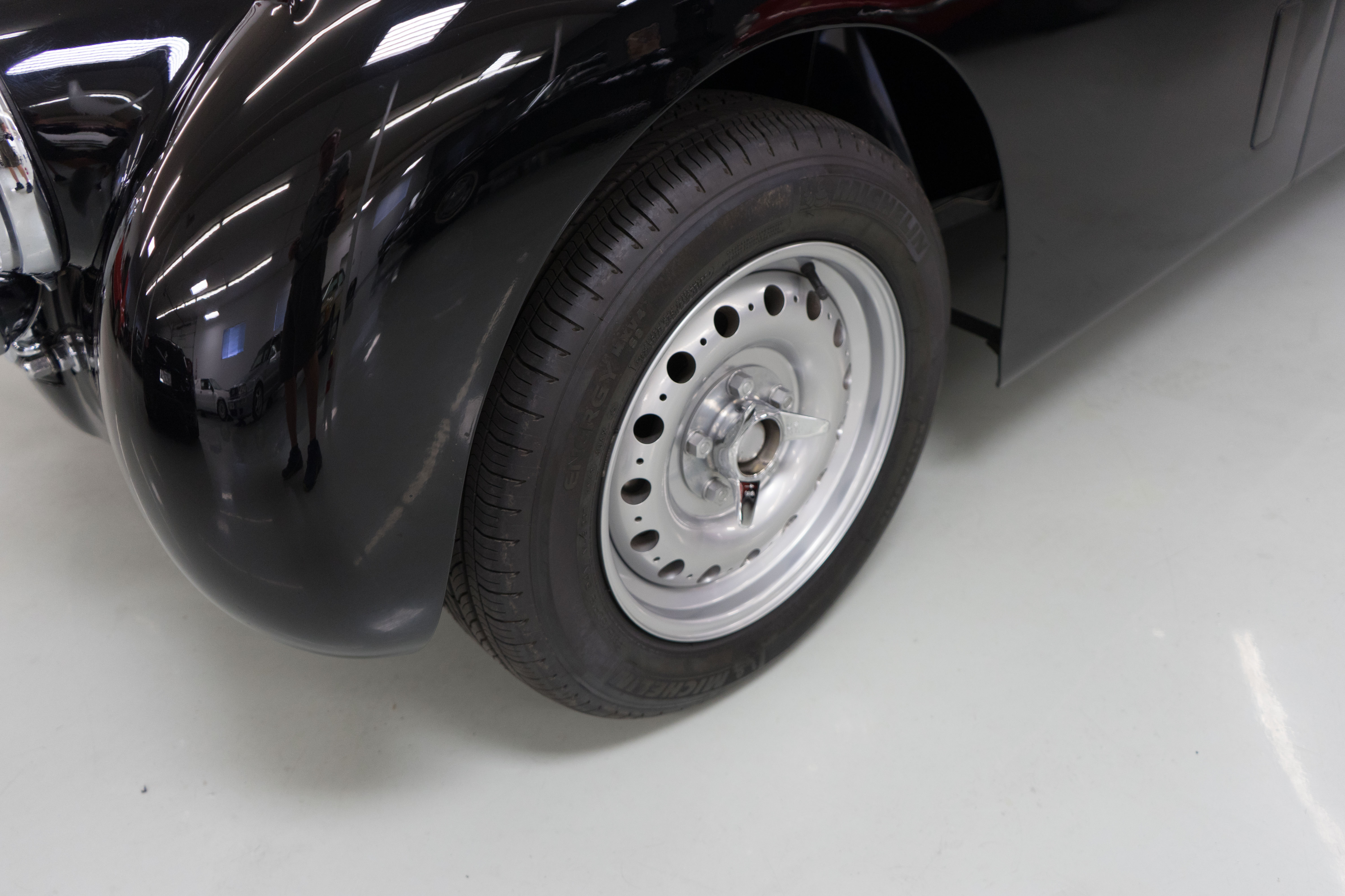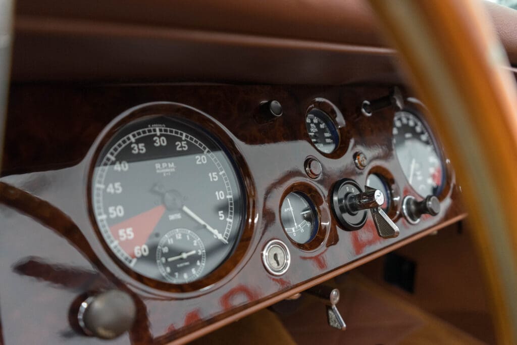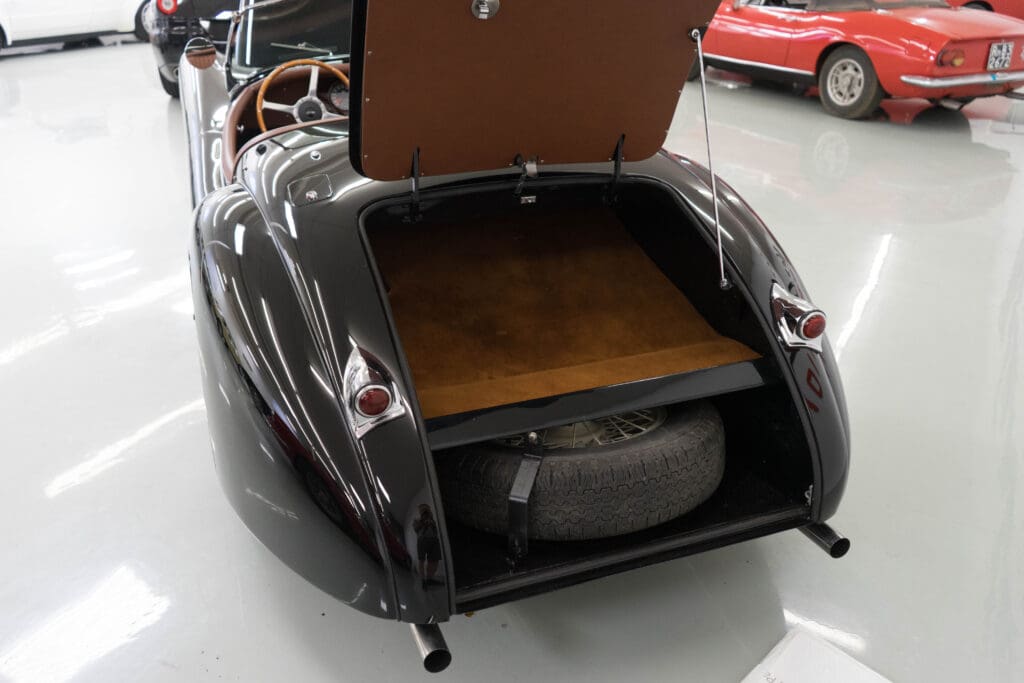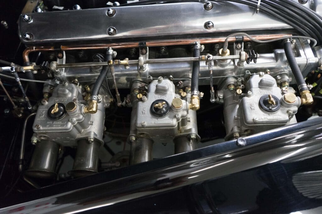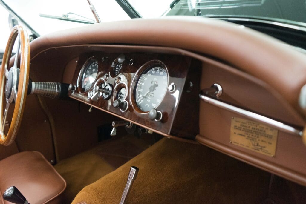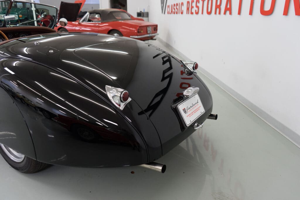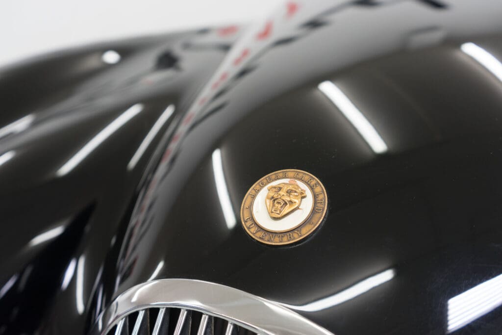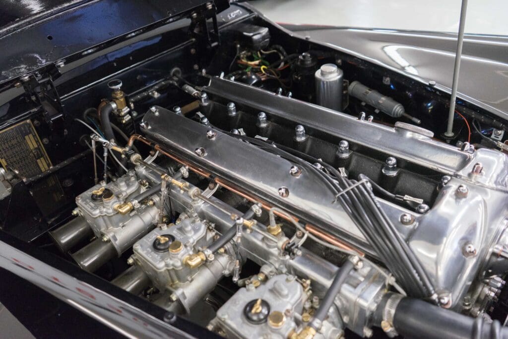 The restoration was extensive and included being stripped to bare metal (including the chassis), a rebuilt, tuned & balanced 3.8 engine with a large-valve straight-port head breathing through three Webers. Also boasts a Getrag 5-speed, 4-wheel power disc brakes, D-Type wheels, special seats, XK140 rack & pinion and three more pages of beautiful, professional, enhancements by one of the best-known XK fabricators. The show-quality black paint is accented with all-new custom leather trim, new weather equipment and supported by several large binders of receipts and hundreds of photos documenting the transformation. You cannot find a more sophisticated and effective 1000-mile event classic Jaguar, and it is available immediately for far less than it cost to build.