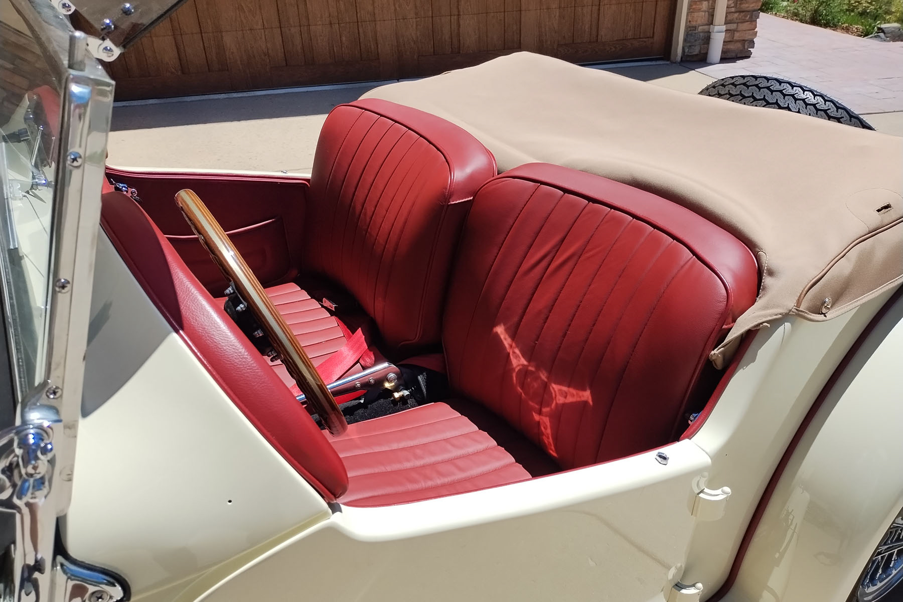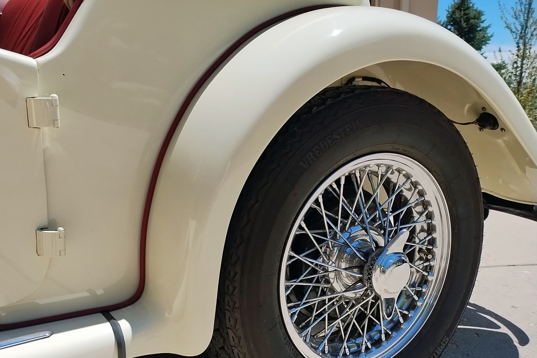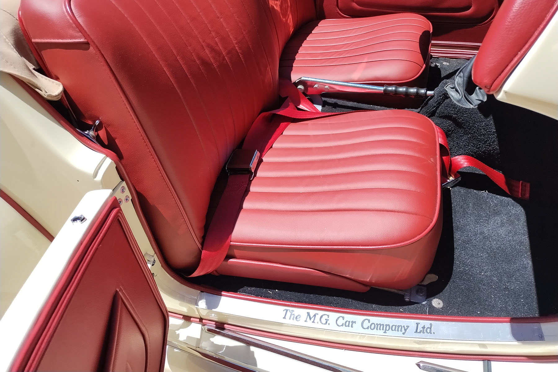 This car was sold new to a lady in Long Beach, CA who kept it 60 years (!) until her passing in 2015 and is now being sold for the second owner, who restored it to a very high level after bringing it home to Colorado. The car had no old damage to rectify and being in SoCal, it had escaped the rust problems so common to vintage English cars. The body was stripped to metal and professionally painted in our shop less than two years ago. Following the paint, new red leather upholstery was installed along with wiring harness, steering rack and other mechanical replacements. The original 48-spoke wheels were replaced with new chrome 60-spoke ones with Vredestein Sprint Classic tires. (Originals come with the car, plus a bin of spare parts, manual, all original tools (very rare) & car cover)