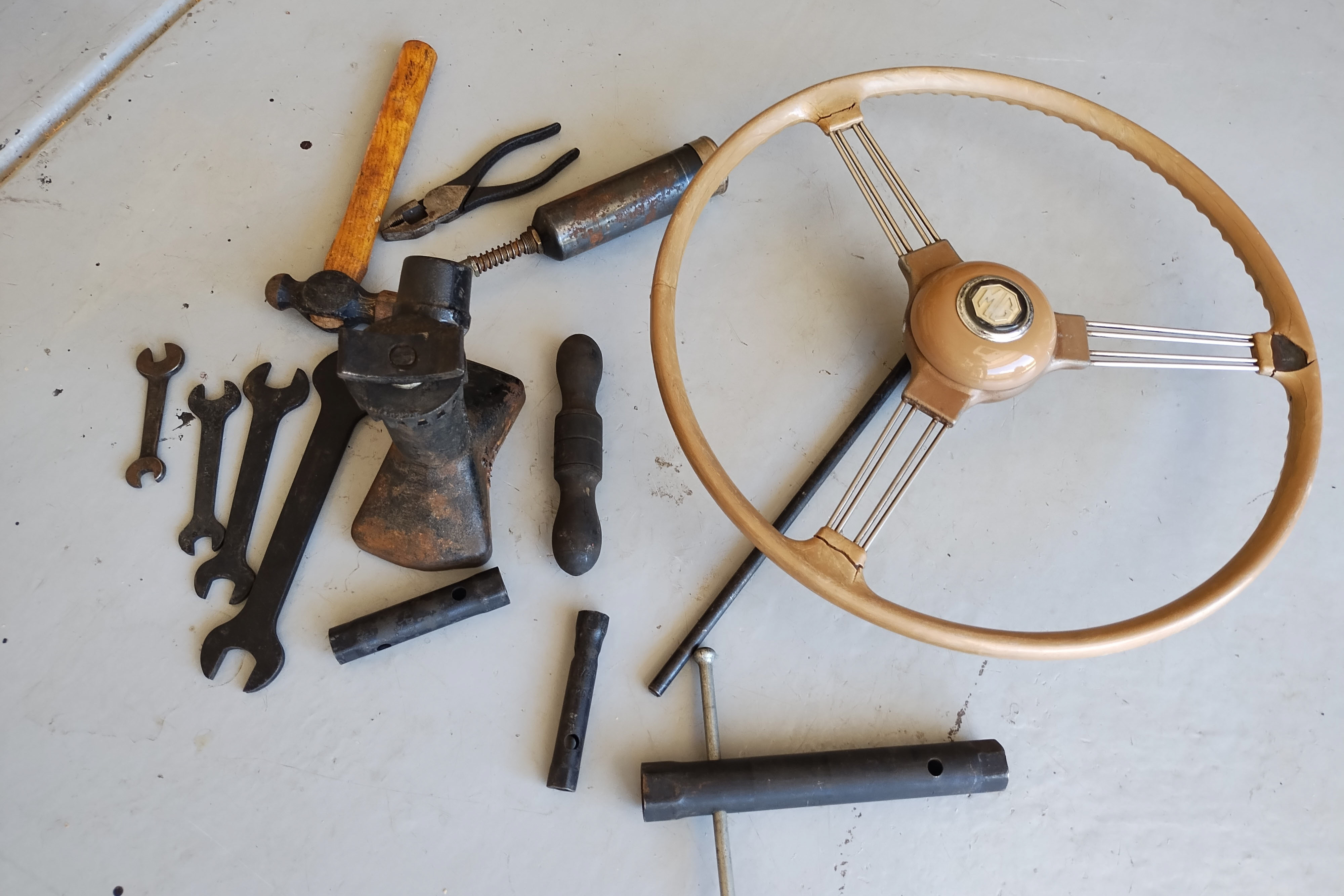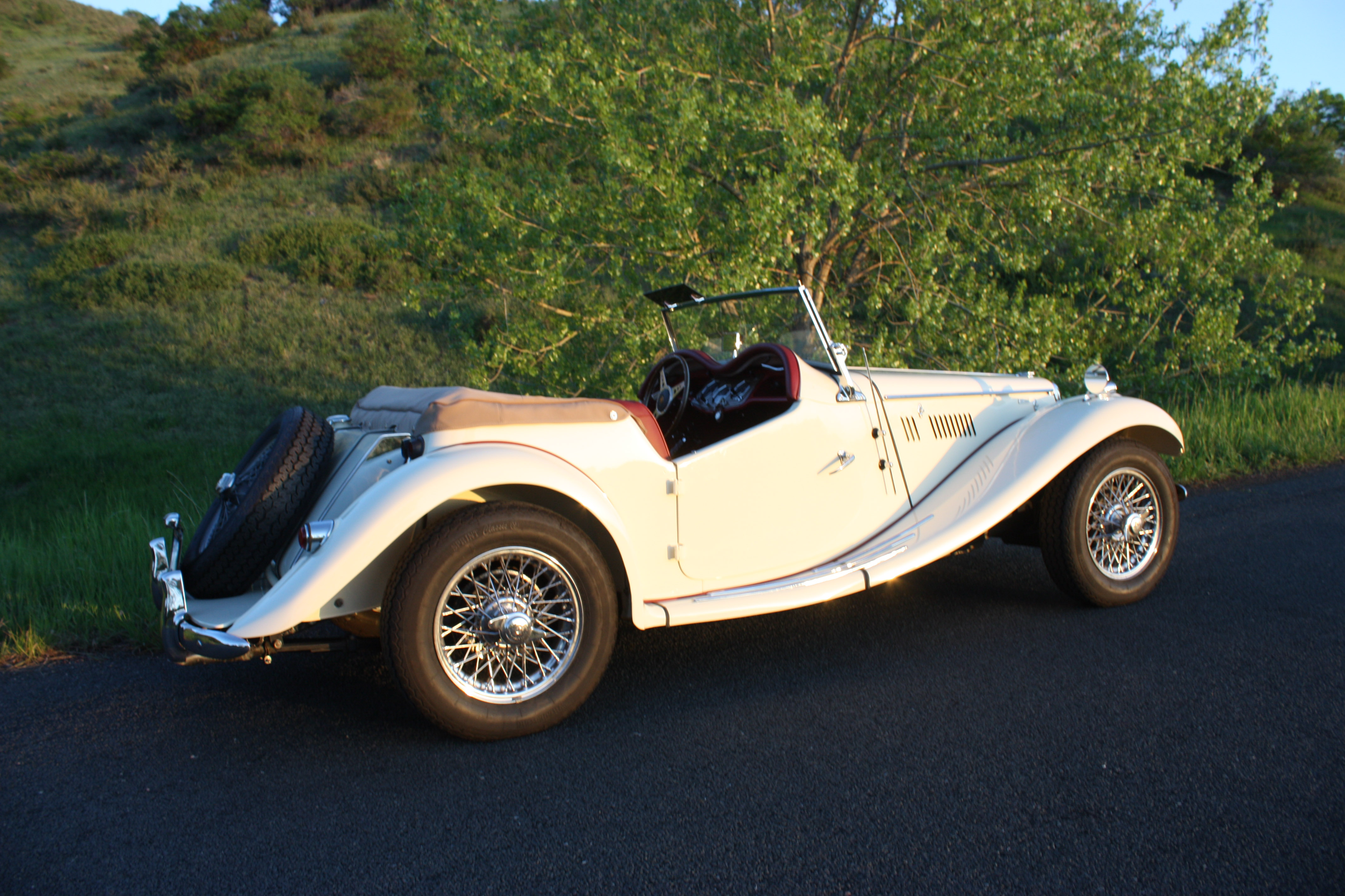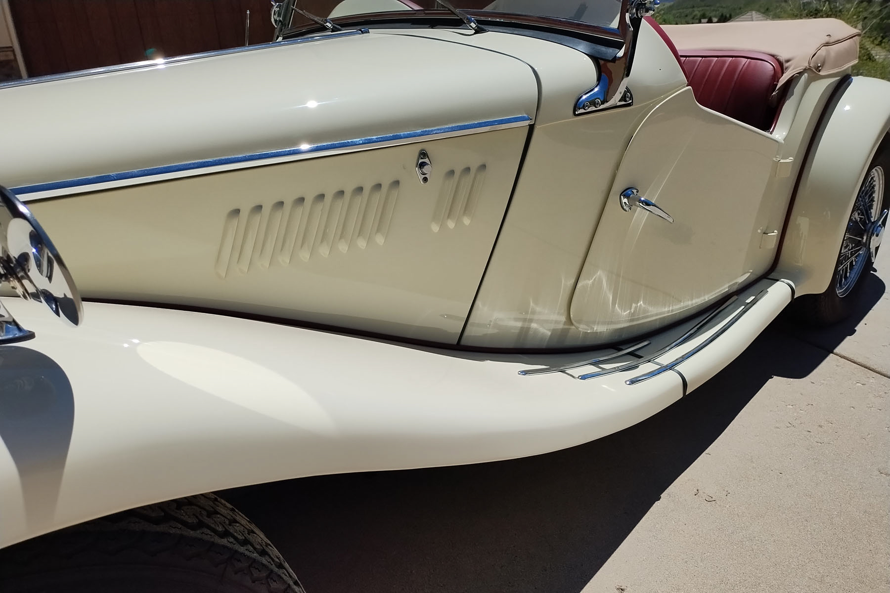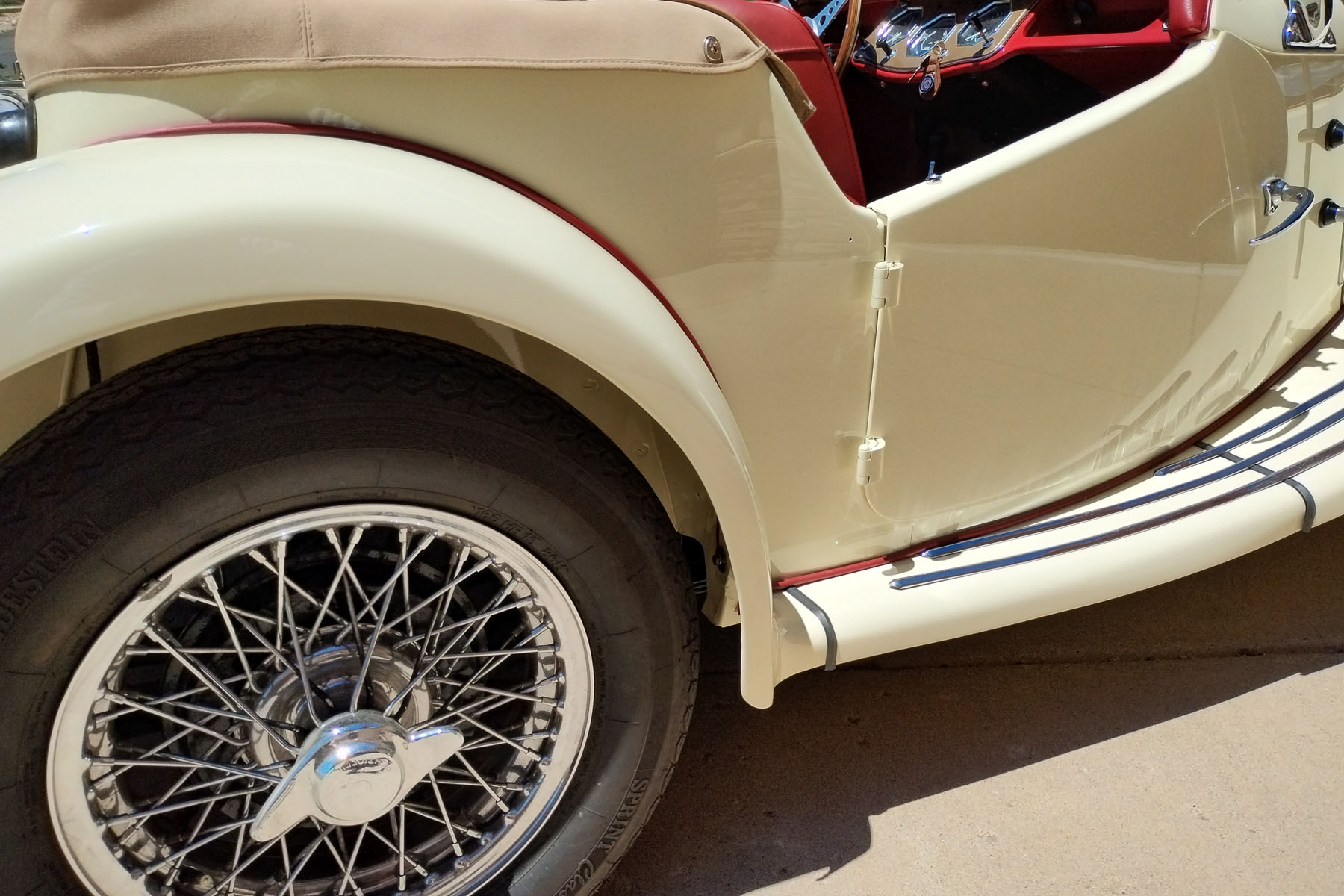 This car was sold new to a lady in Long Beach, CA who kept it 60 years (!) until her passing in 2015 and is now being sold for the second owner, who restored it to a very high level after bringing it home to Colorado. The car had no old damage to rectify and being in SoCal, it had escaped the rust problems so common to vintage English cars. The body was stripped to metal and professionally painted in our shop less than two years ago. Following the paint, new red leather upholstery was installed along with wiring harness, steering rack and other mechanical replacements. The original 48-spoke wheels were replaced with new chrome 60-spoke ones with Vredestein Sprint Classic tires. (Originals come with the car, plus a bin of spare parts, manual, all original tools (very rare) & car cover)