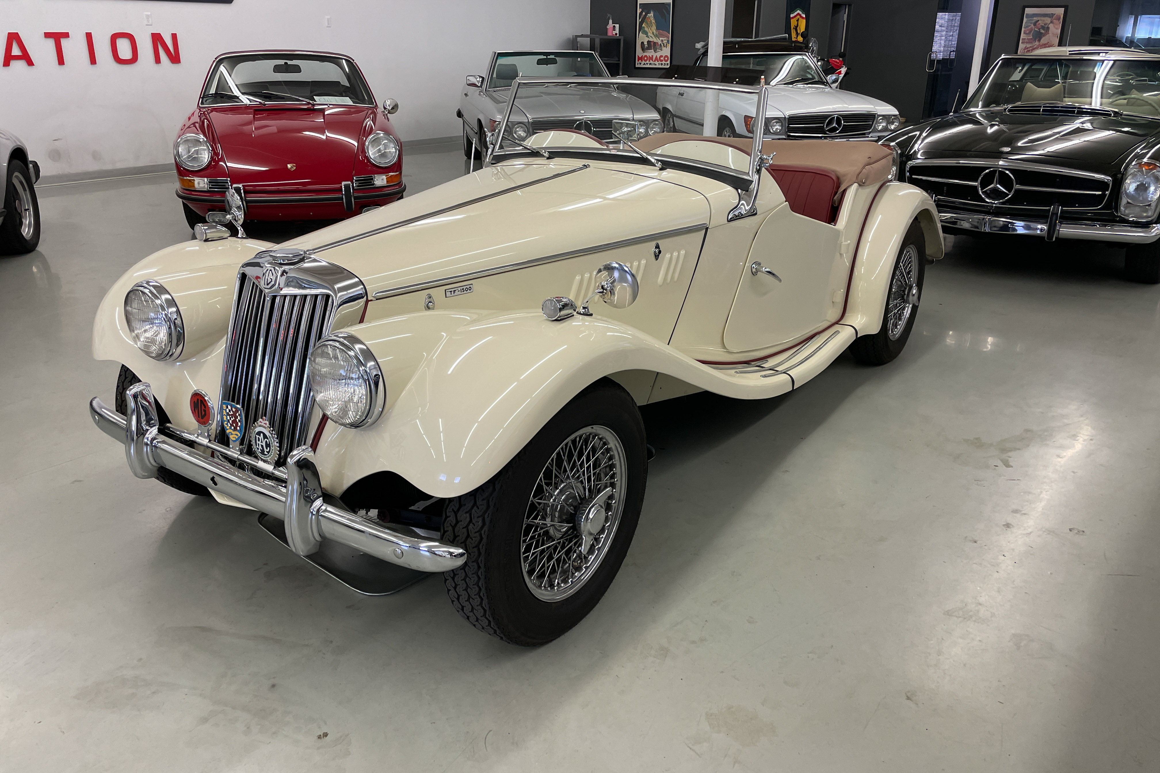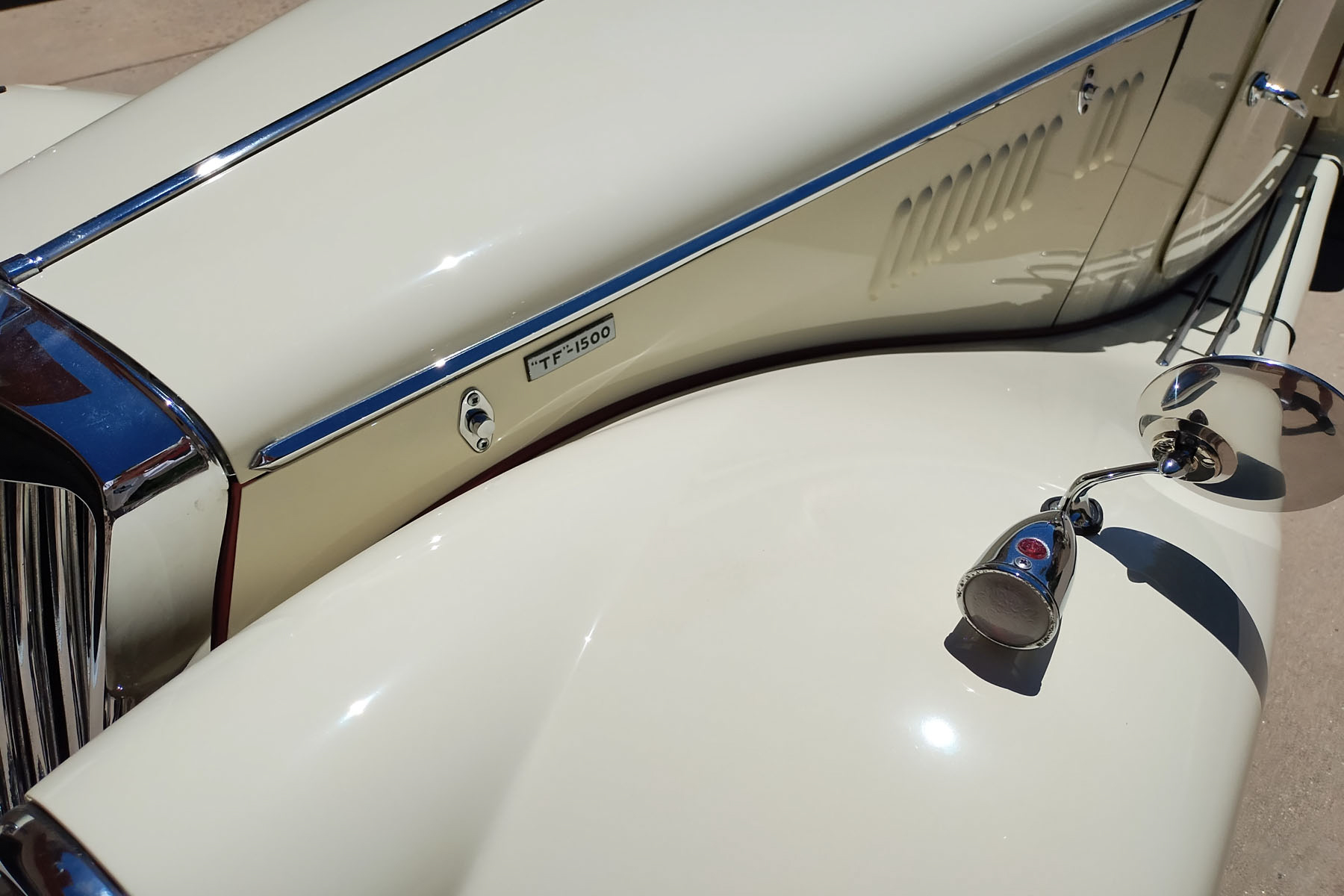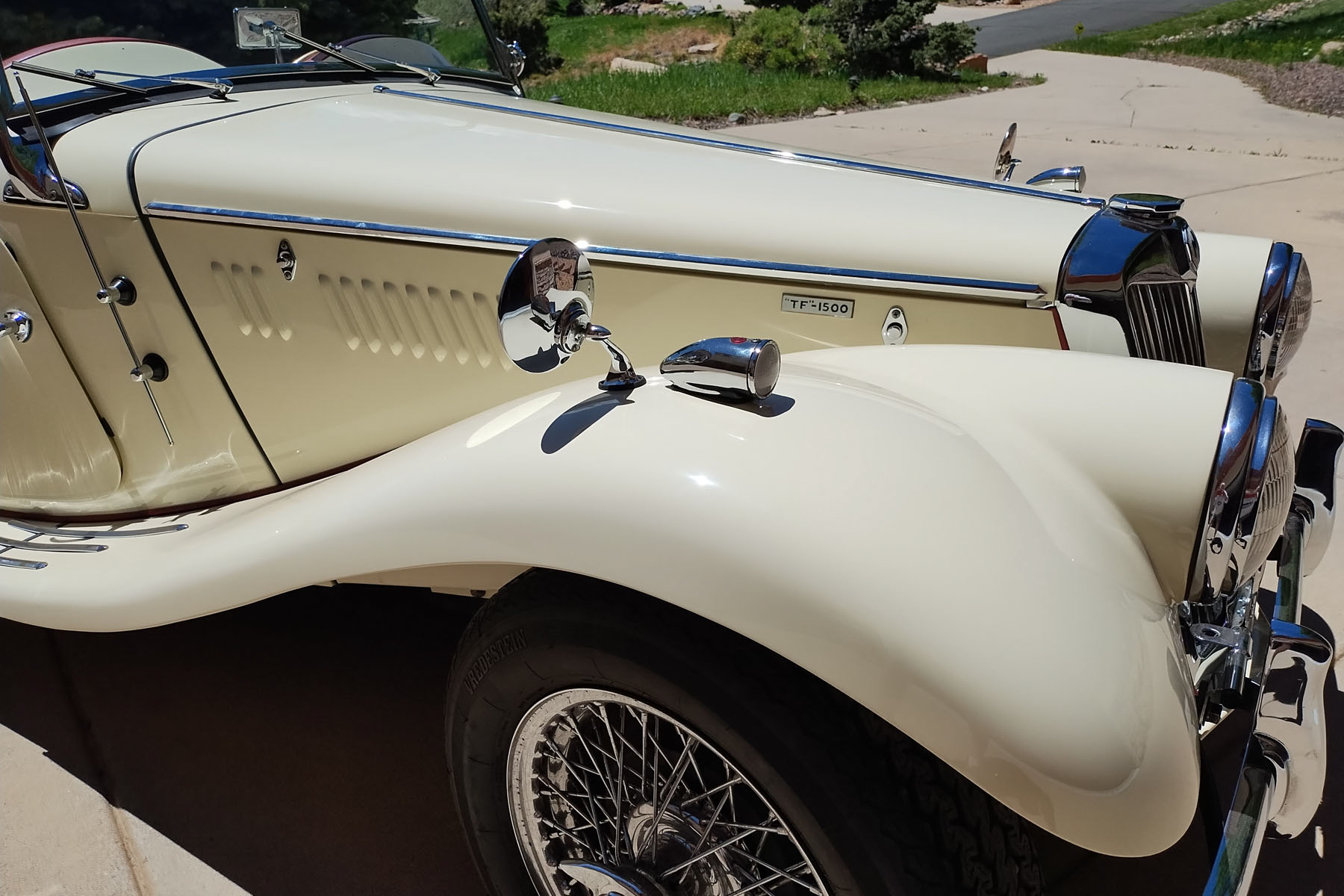 The TF was the last model of the seminal flared-fender MG roadster series that helped create America’s enthusiasm for imported sports cars, along with Jaguar’s XK120 and the 4-cylinder Austin Healey. Following the spindly TC model, the tough 1949-‘53 TD model alone sold thirty thousand examples and was followed by the more refined TF in 1954. Finally, in 1955 the engine was enlarged to 1500cc and wire wheels added to the rakish styling.