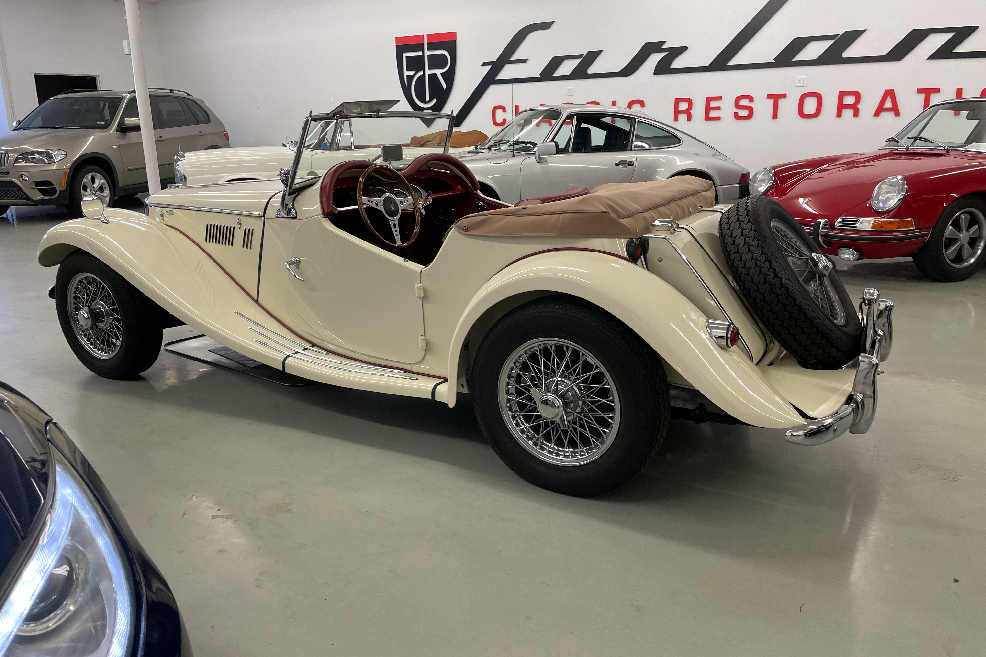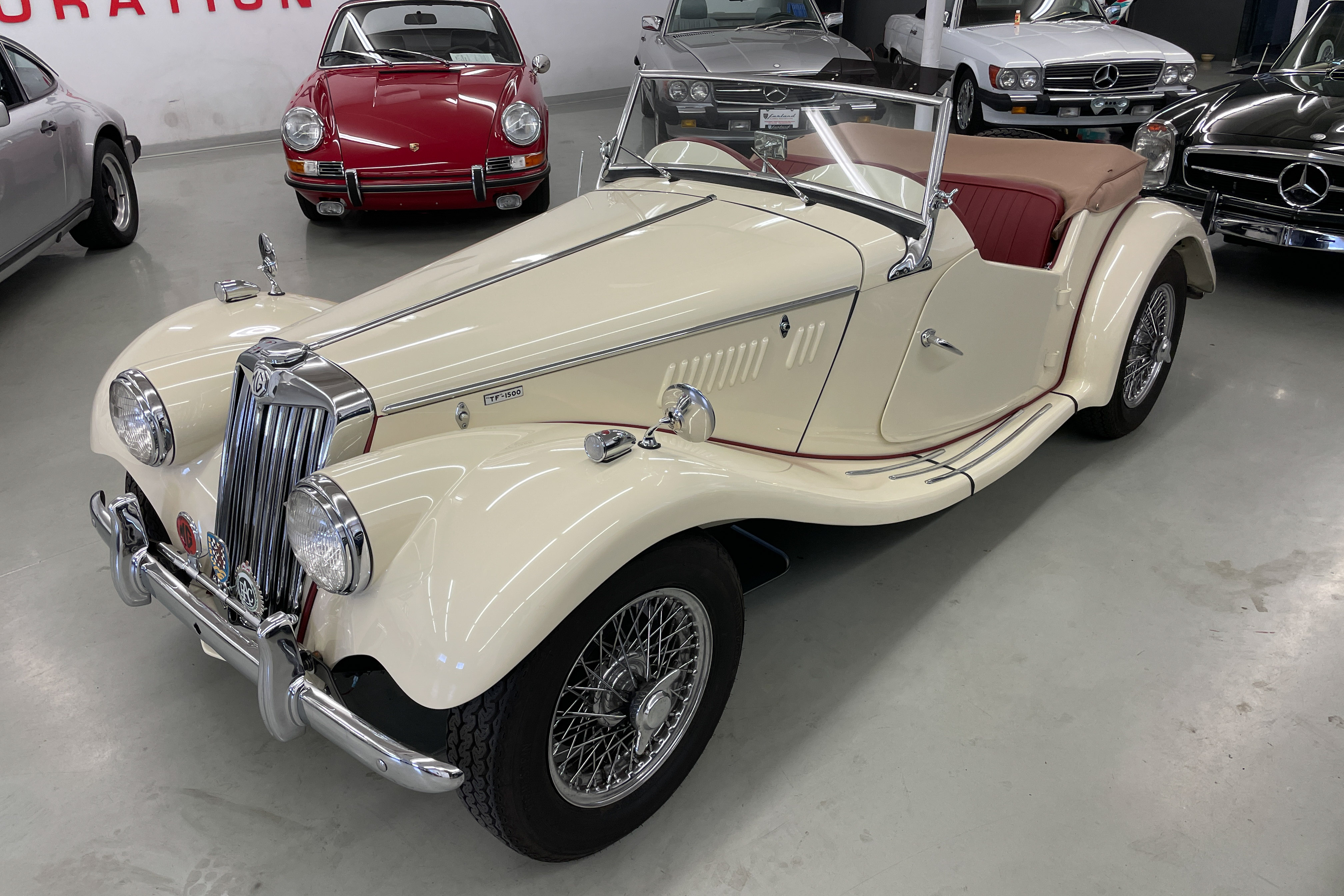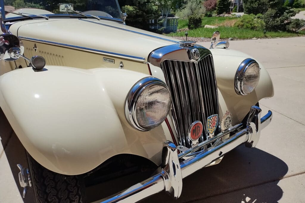 The TF was the last model of the seminal flared-fender MG roadster series that helped create America’s enthusiasm for imported sports cars, along with Jaguar’s XK120 and the 4-cylinder Austin Healey. Following the spindly TC model, the tough 1949-‘53 TD model alone sold thirty thousand examples and was followed by the more refined TF in 1954. Finally, in 1955 the engine was enlarged to 1500cc and wire wheels added to the rakish styling.