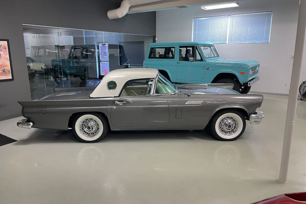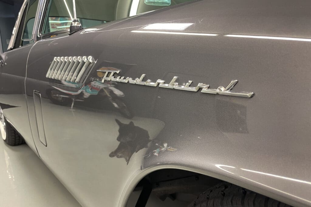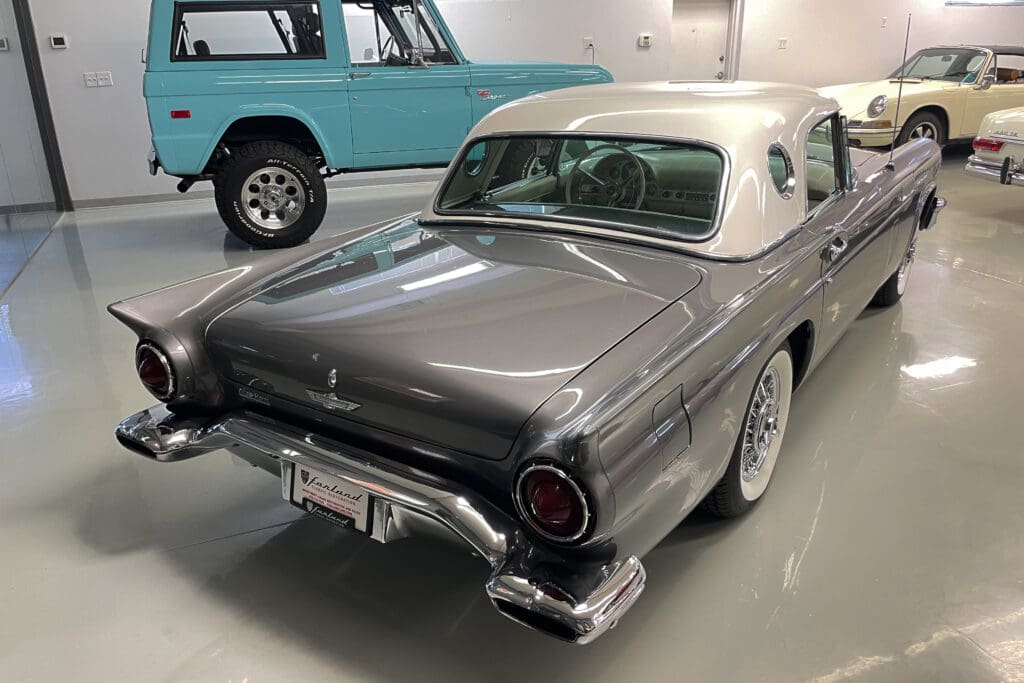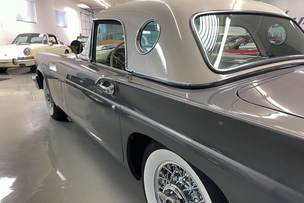 A remarkable 1957 Ford Thunderbird. In addition to those desirable attributes, how many 67-year-old Ford Classics have only had two owners?! Delivered new in Santa Fe, New Mexico, the car was bought there two years later by the second owner who later moved with it to Portland, OR. The car was very well cared for (we have a large file of service records) and was given a bare-metal repaint in its original ‘Gunmetal Gray’ color several years ago.