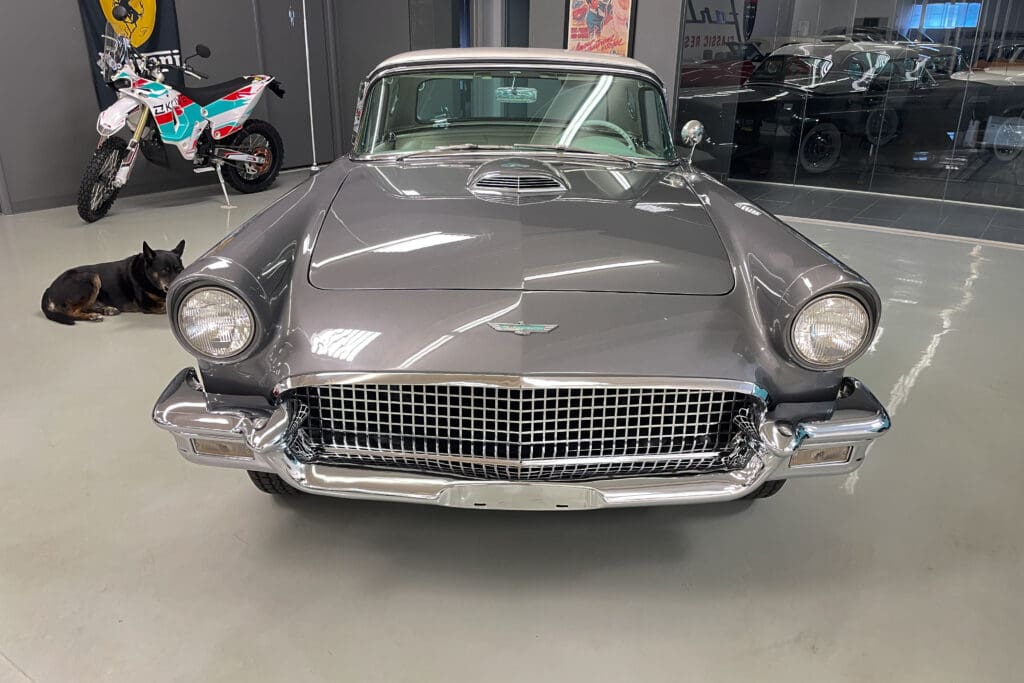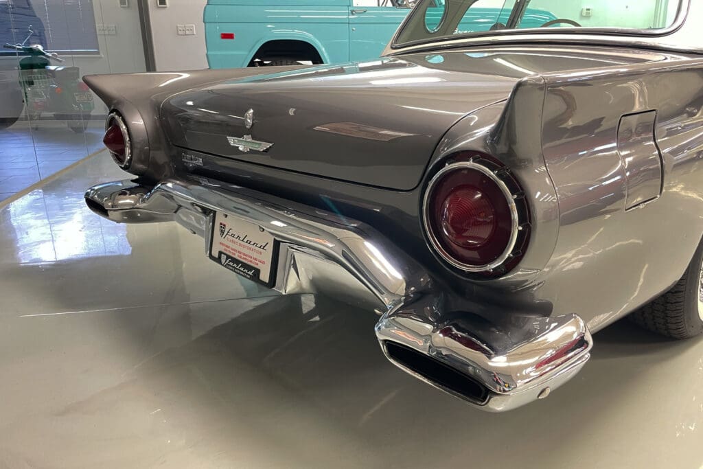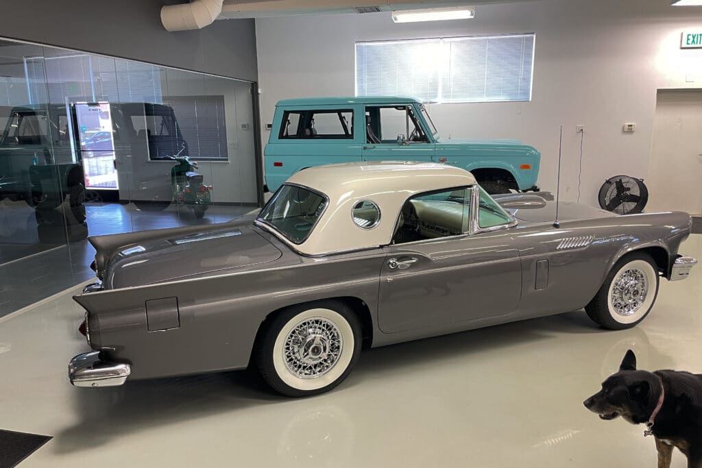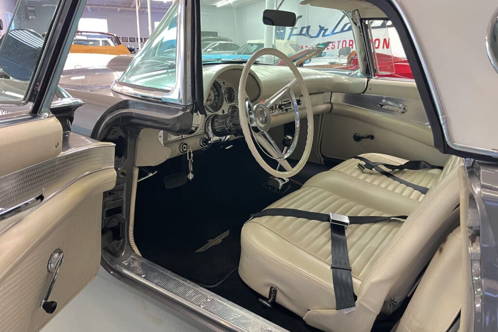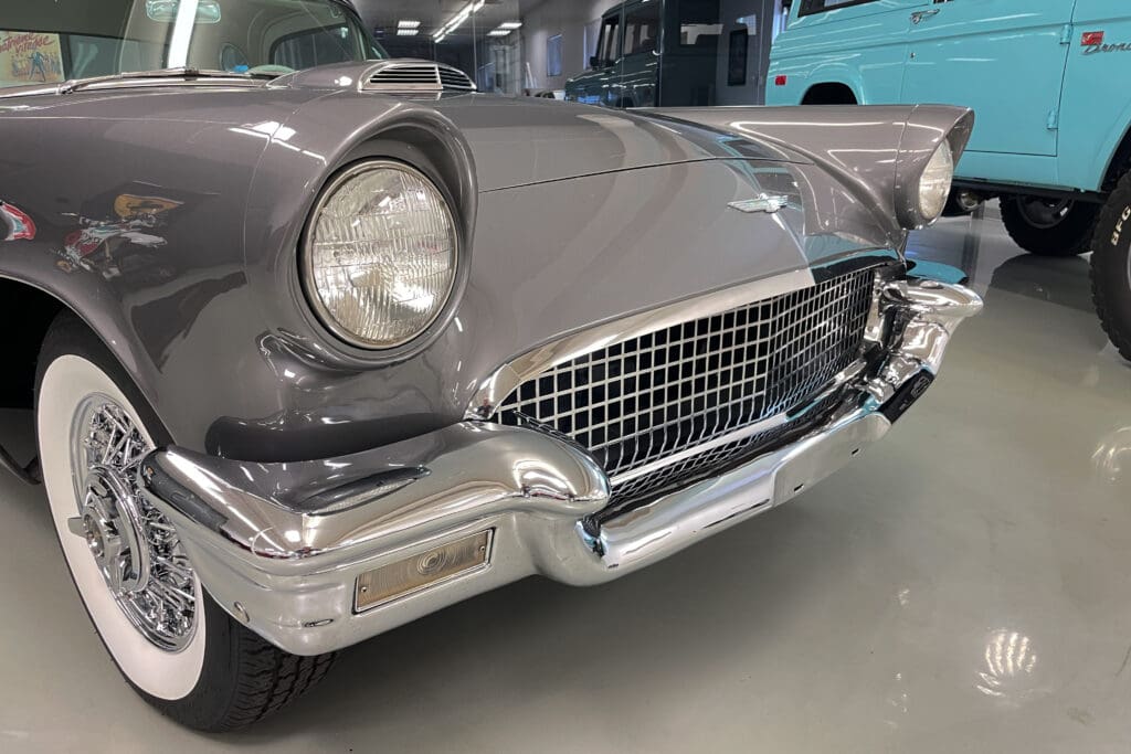 A remarkable 1957 Ford Thunderbird. In addition to those desirable attributes, how many 67-year-old Ford Classics have only had two owners?! Delivered new in Santa Fe, New Mexico, the car was bought there two years later by the second owner who later moved with it to Portland, OR. The car was very well cared for (we have a large file of service records) and was given a bare-metal repaint in its original ‘Gunmetal Gray’ color several years ago.