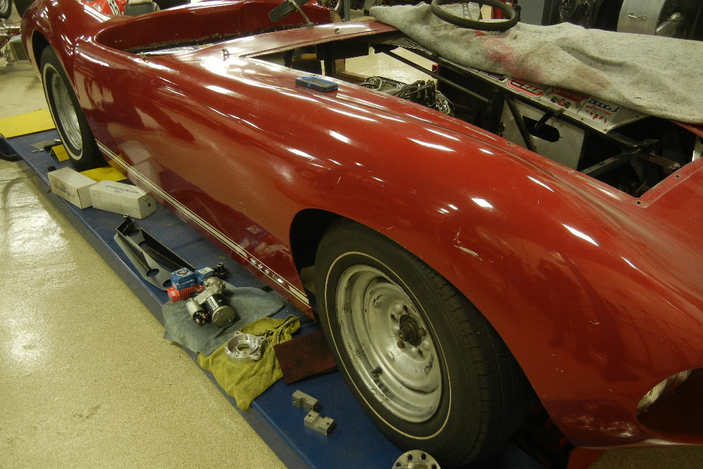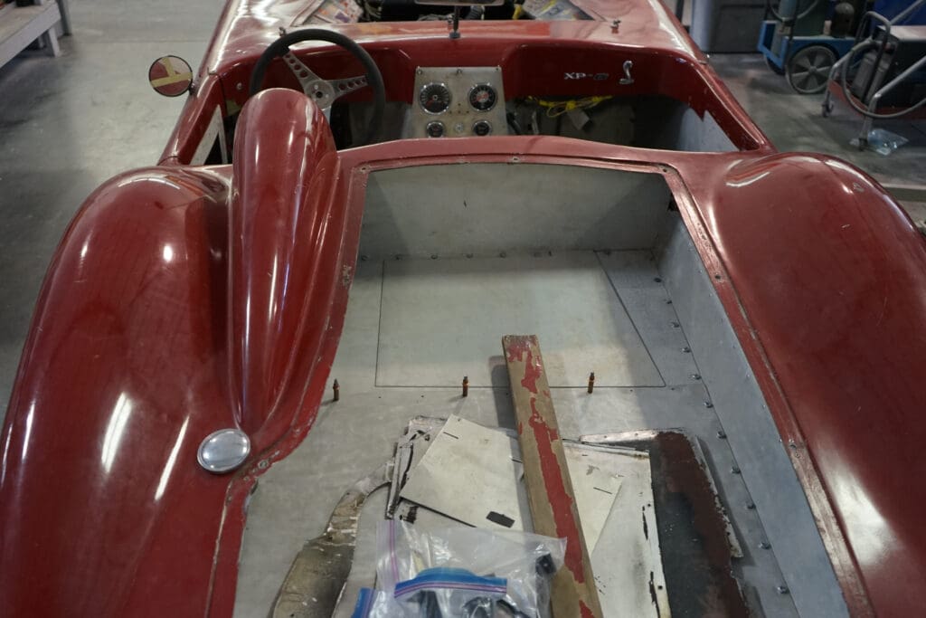 The car had been sitting idle since the late 60s when it was sold to the second owner who ultimately never did much with the car. For the current owner, we performed a mechanical restoration and upgrade. This included extensive chassis reinforcements and upgrades to the suspension, coil over shocks, modern aluminum fuel tank, and fuel injection on the original date coded 289 engine. We also fabricated and ‘aged’ aluminum panels to fill the cockpit and engine bay. Existing panels were matched to create a classic vintage racing appearance. Now the car is complete and back on the road (and track.)