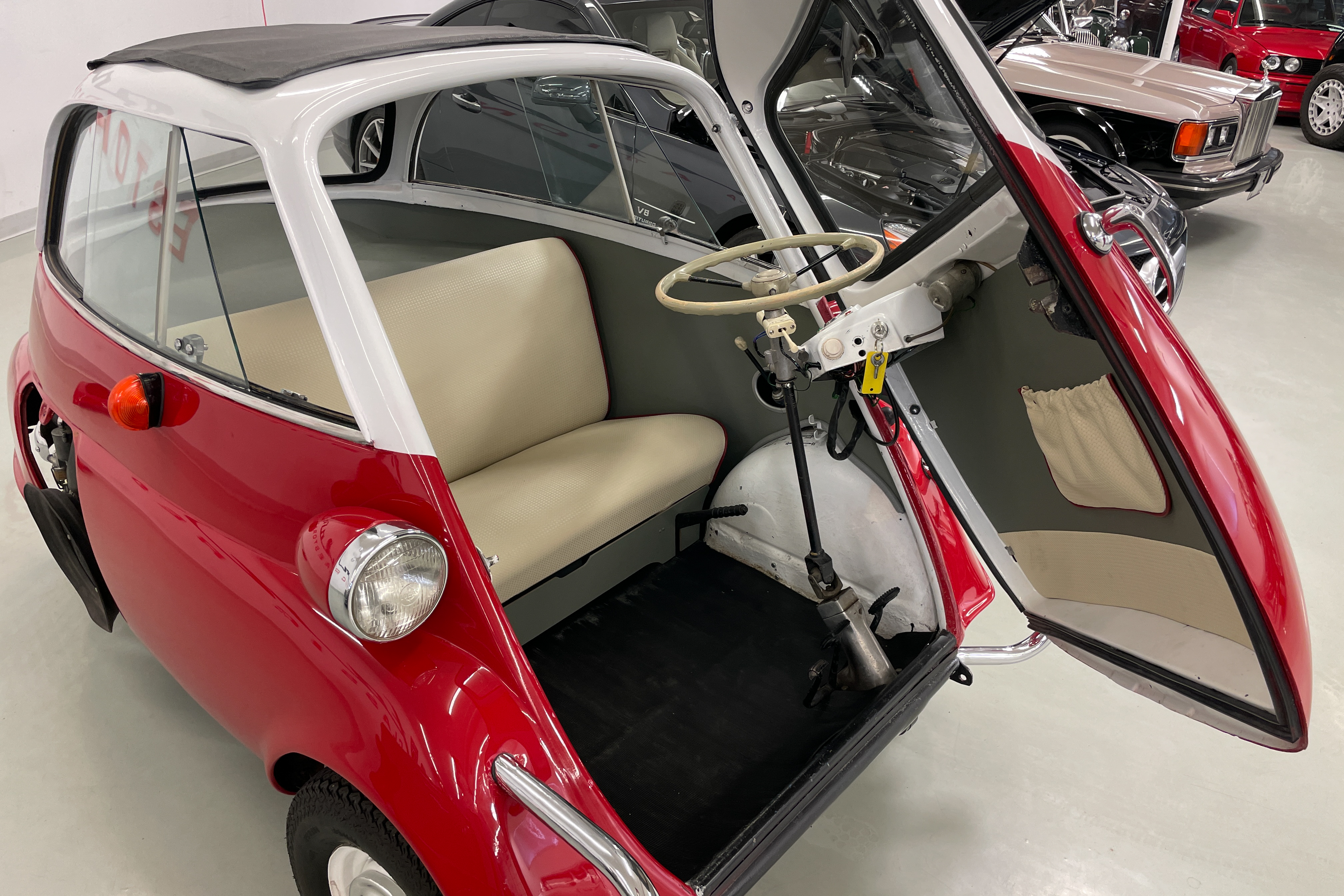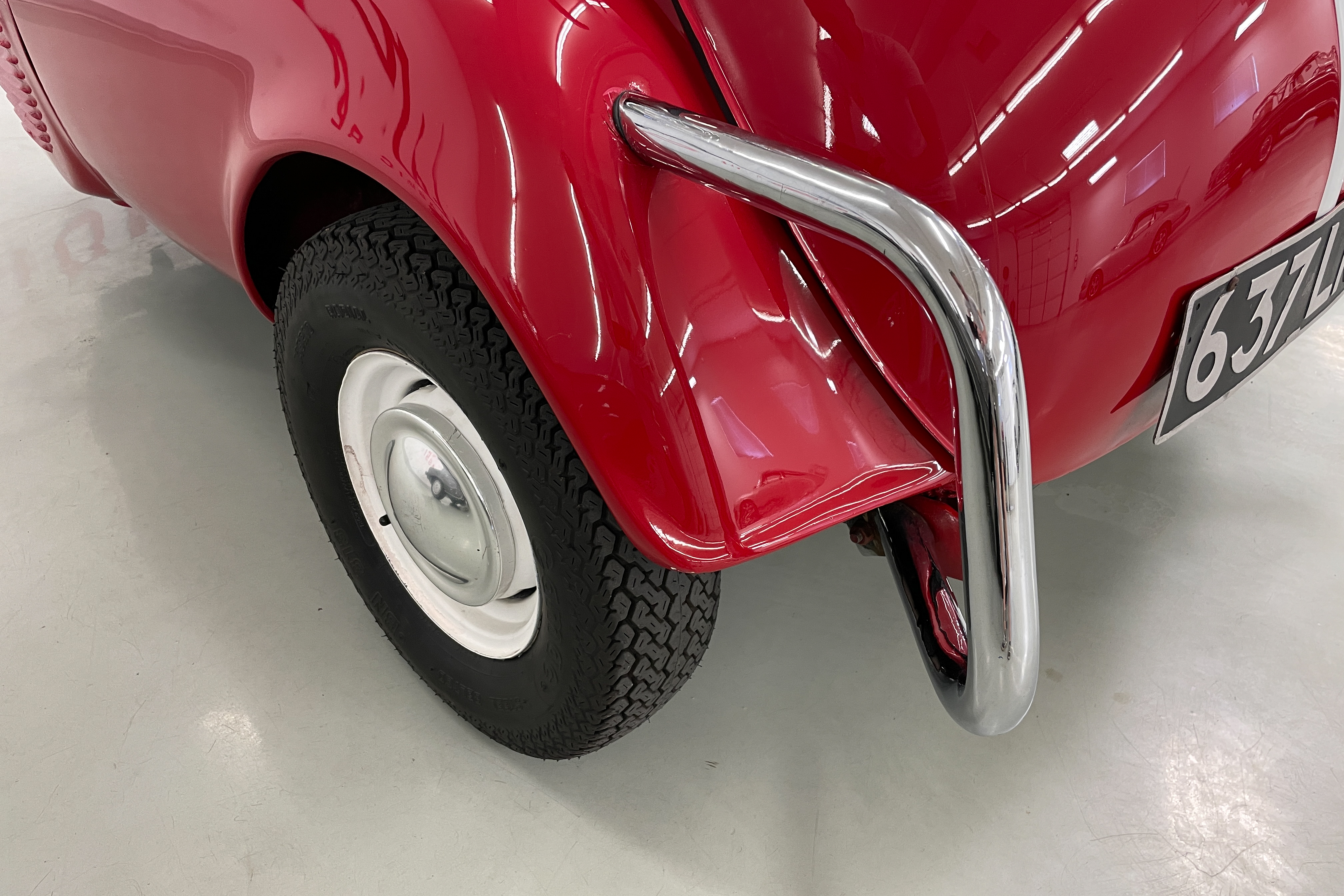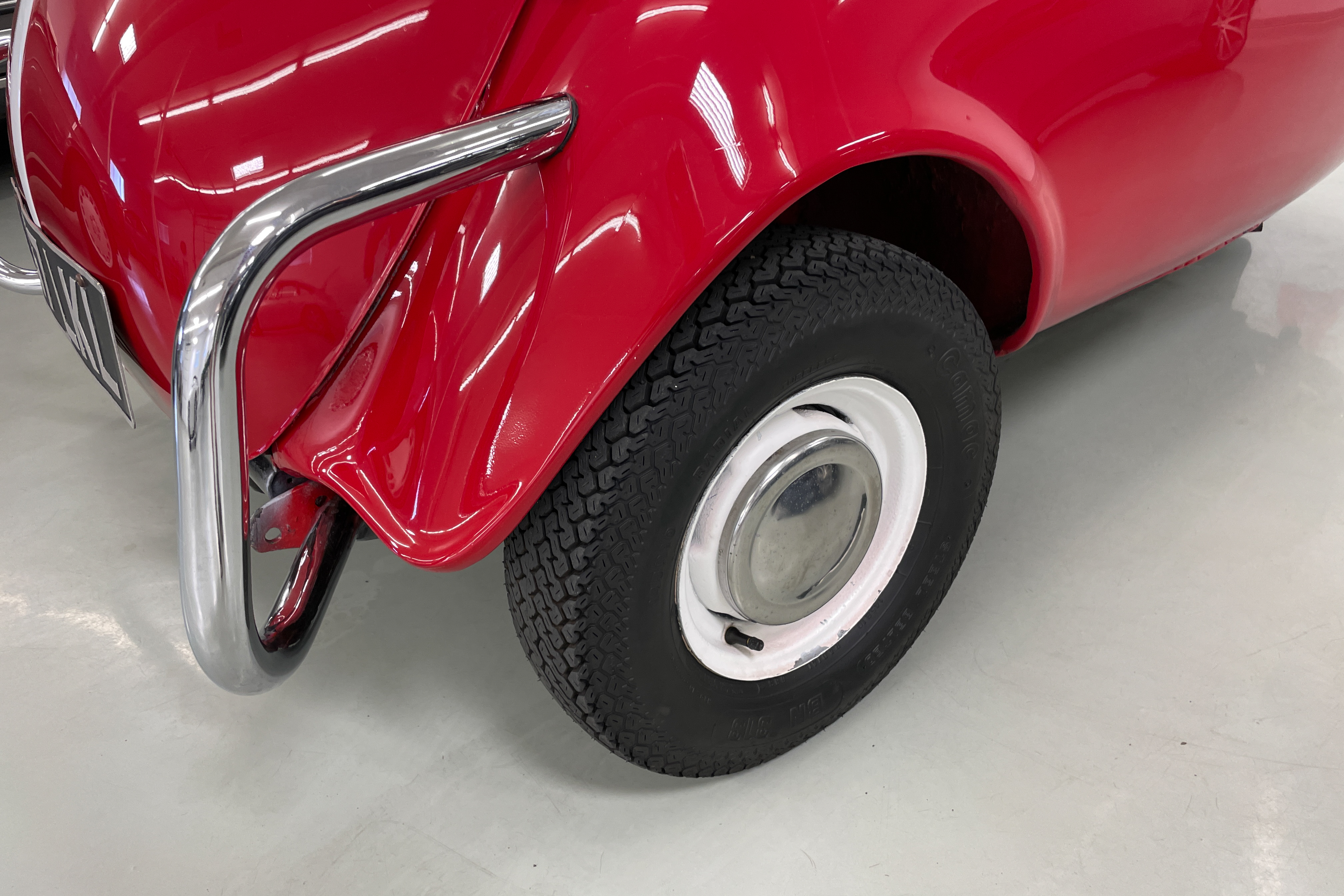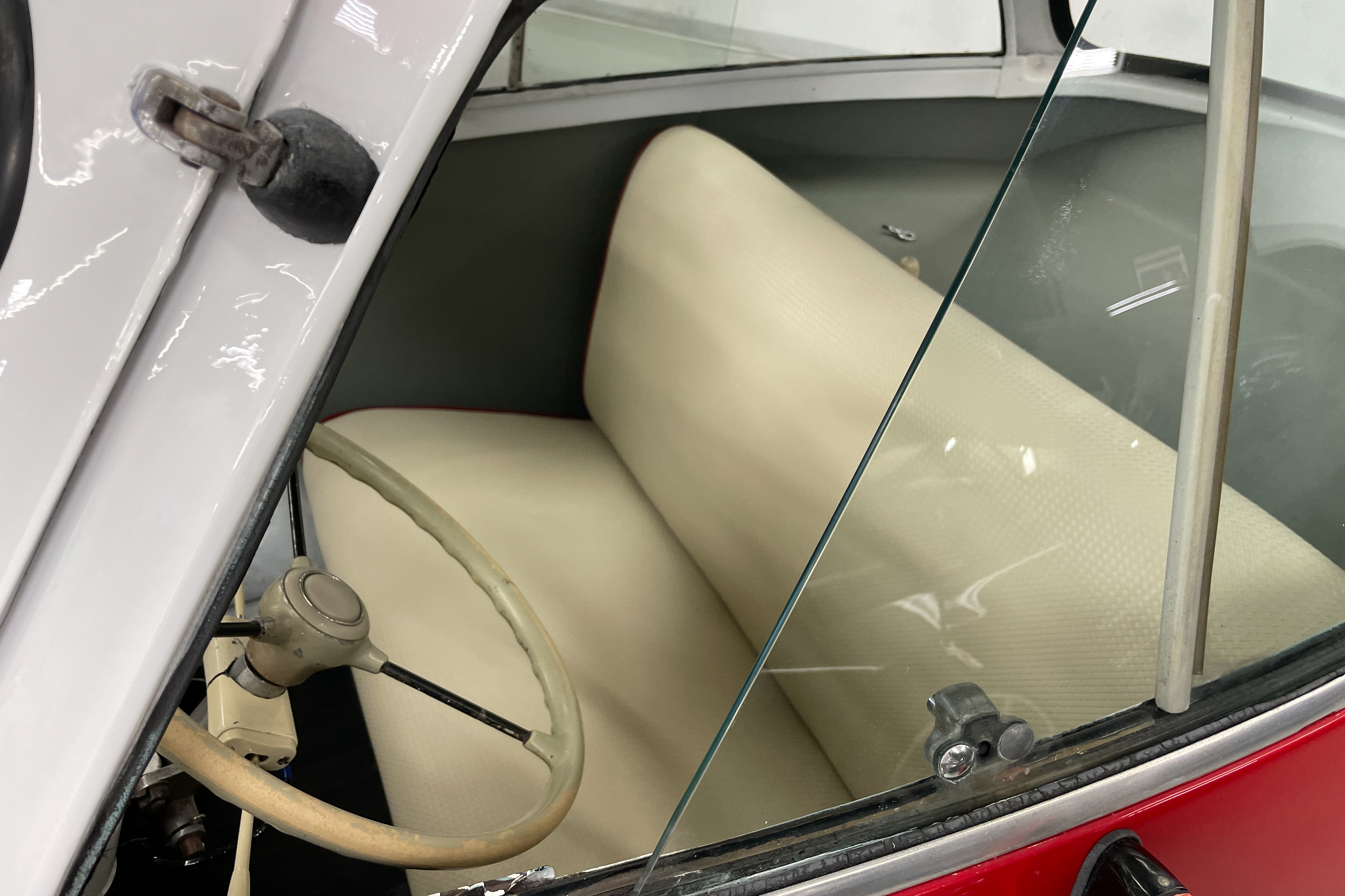 The most powerful of the single-door Isettas, this 300 has benefitted from a comprehensive restoration on a particularly solid original example. The body shell has no evident rust and has been refinished in a red & white two-tone popular when new. The later Isettas like this had convenient sliding widows along with the larger-displacement engine, sunroof and better lights. It even has the optional turn signals!