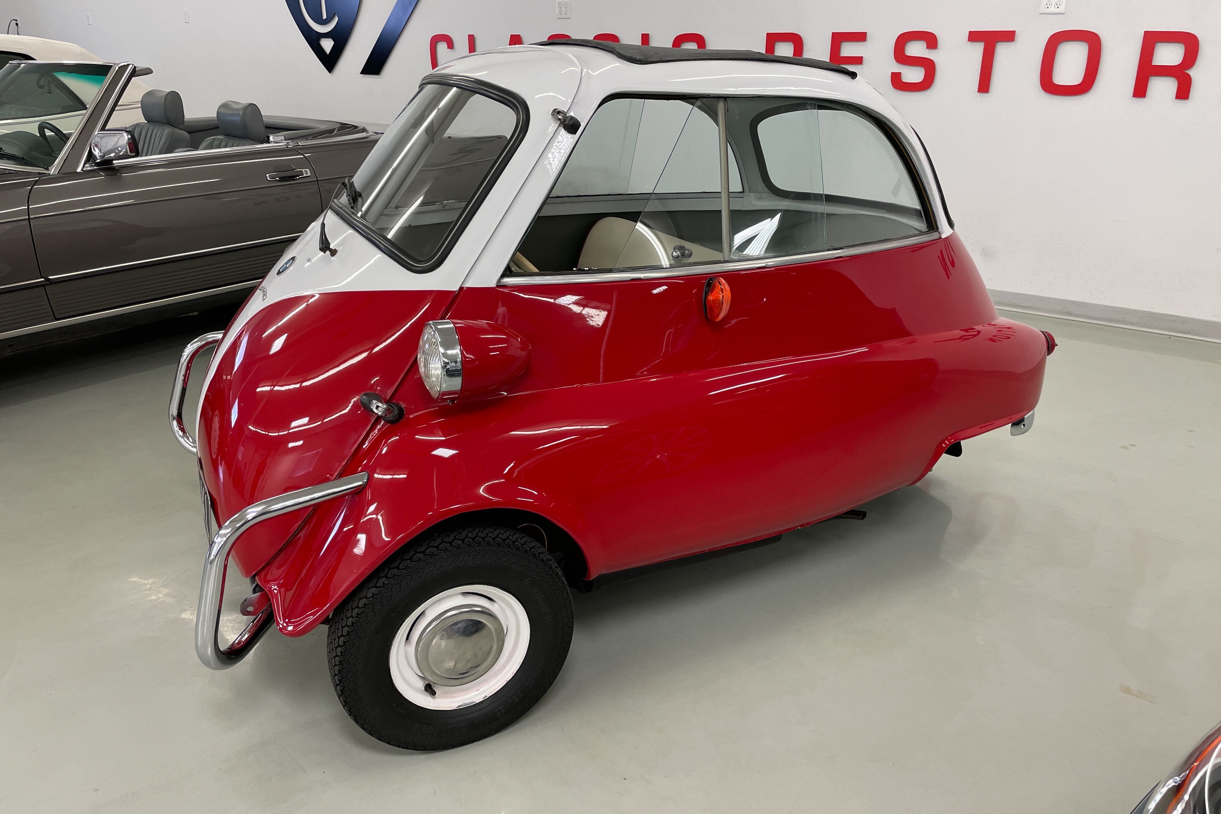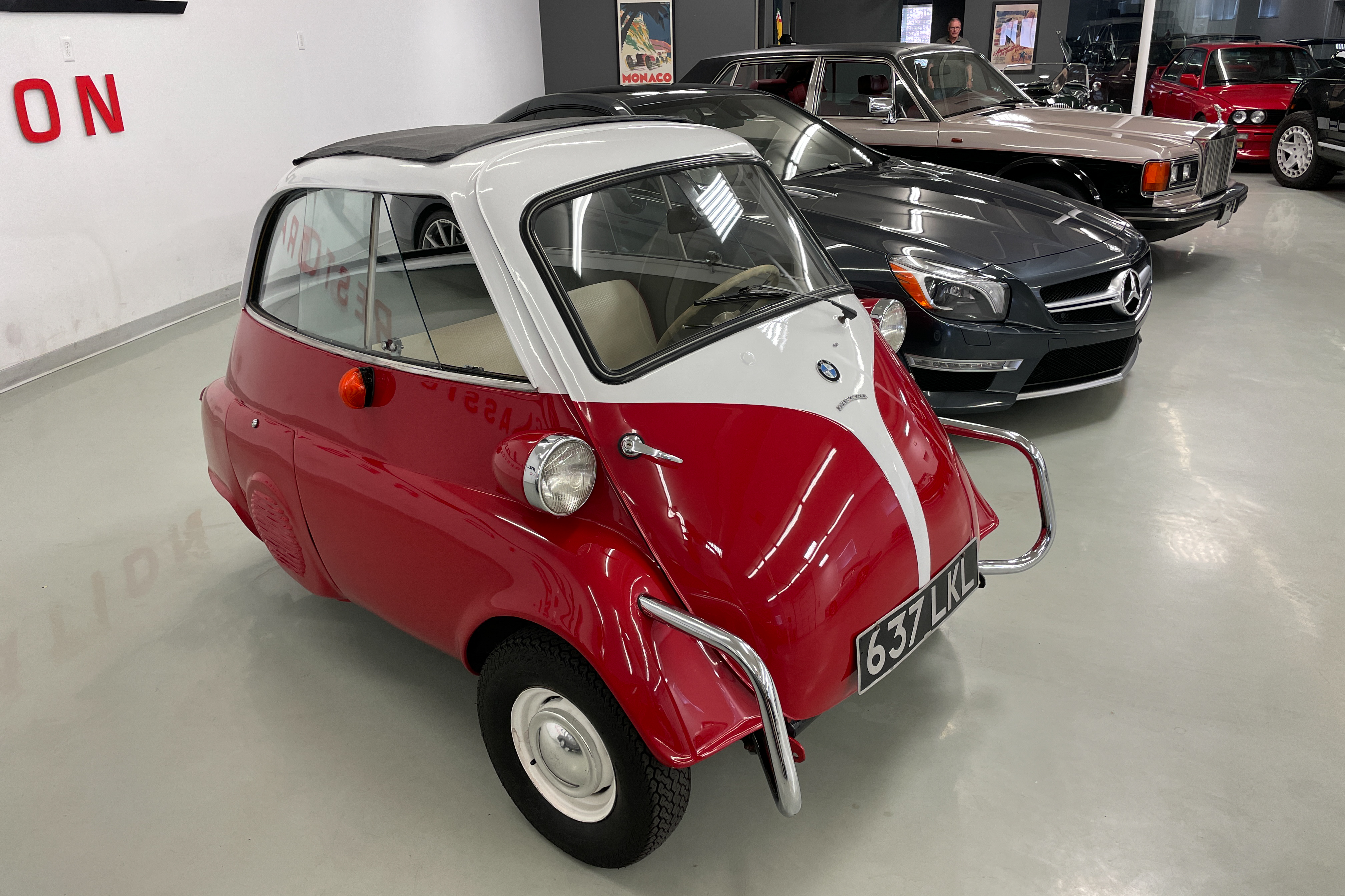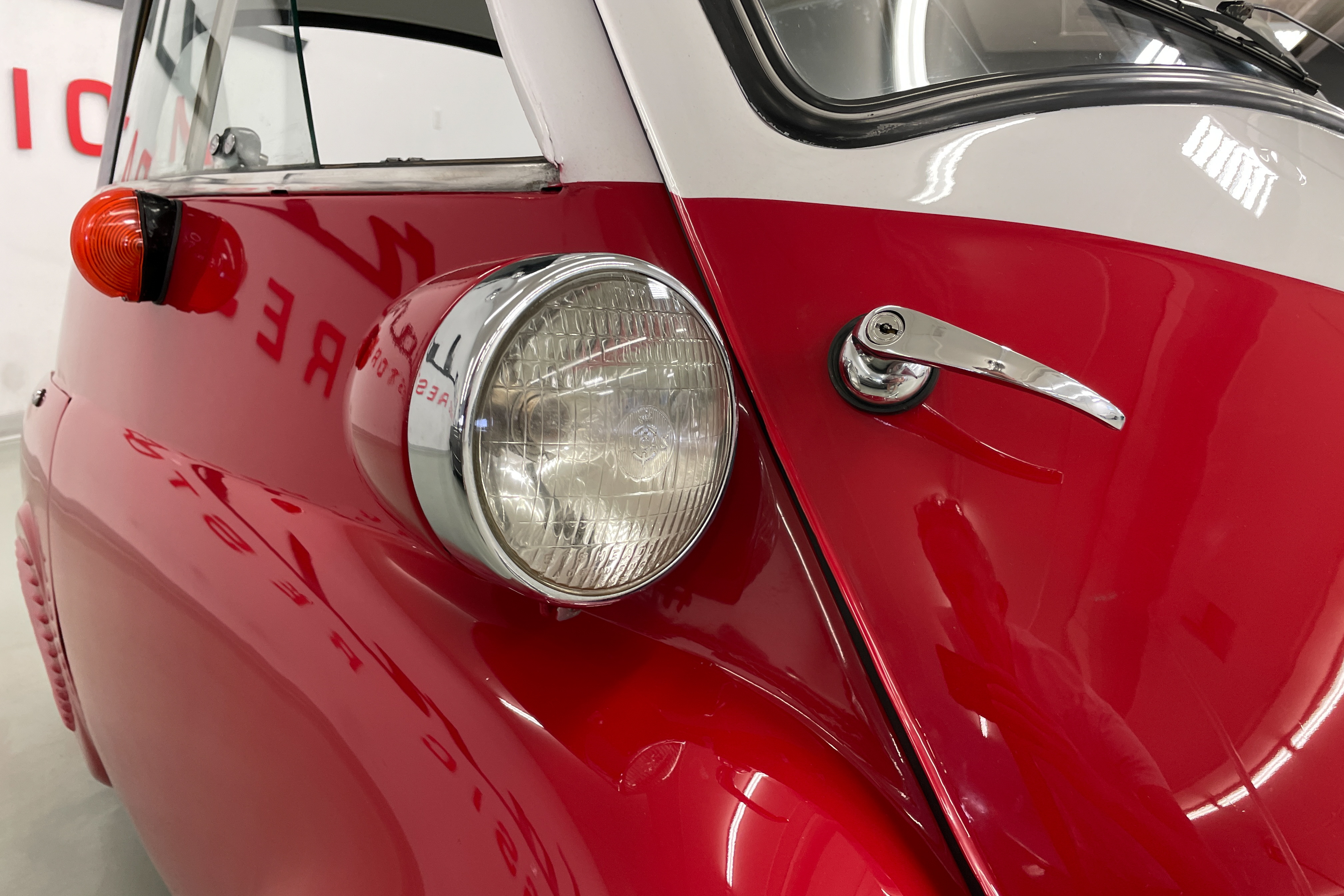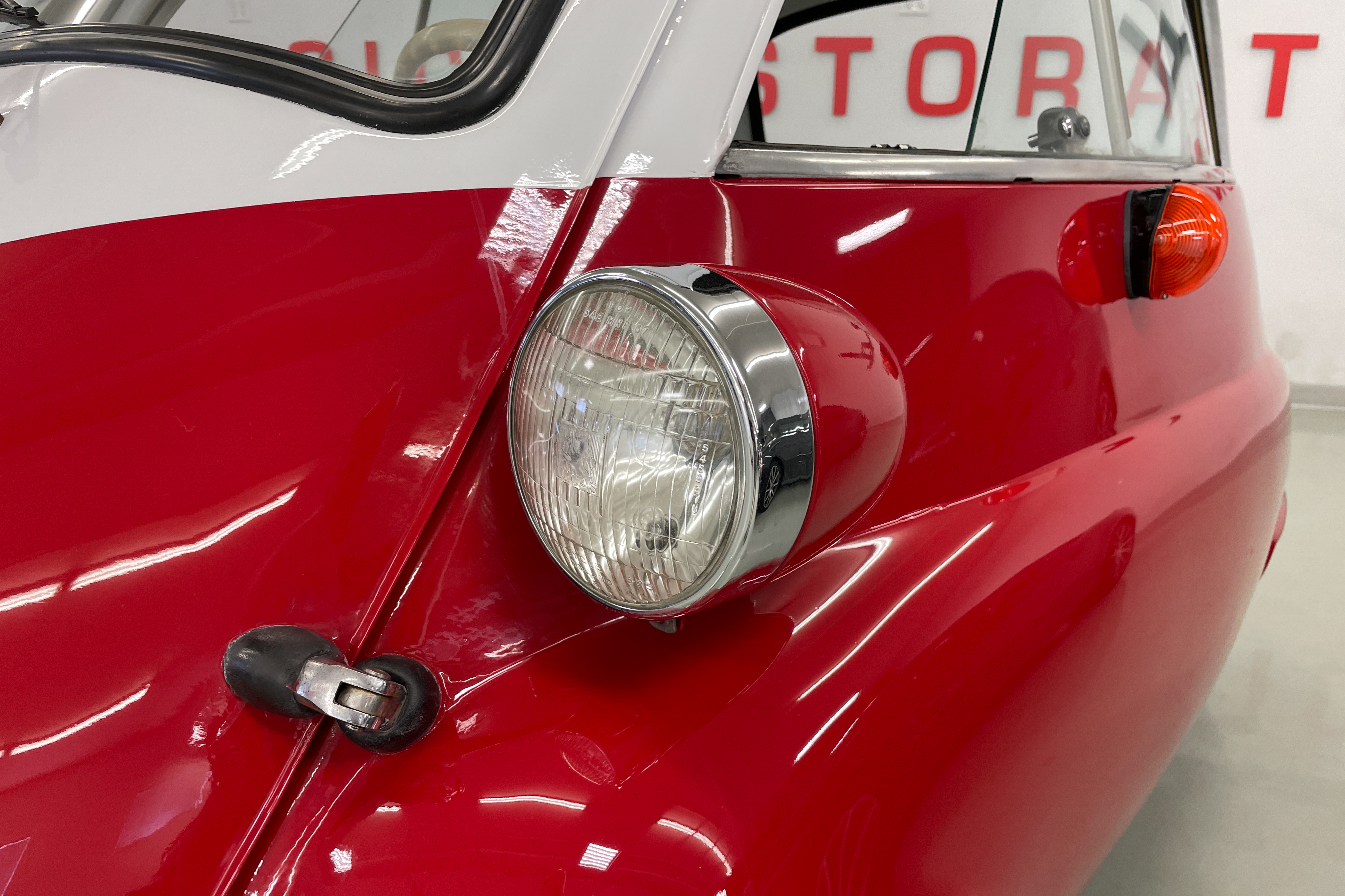The most powerful of the single-door Isettas, this 300 has benefitted from a comprehensive restoration on a particularly solid original example. The body shell has no evident rust and has been refinished in a red & white two-tone popular when new. The later Isettas like this had convenient sliding widows along with the larger-displacement engine, sunroof and better lights. It even has the optional turn signals!