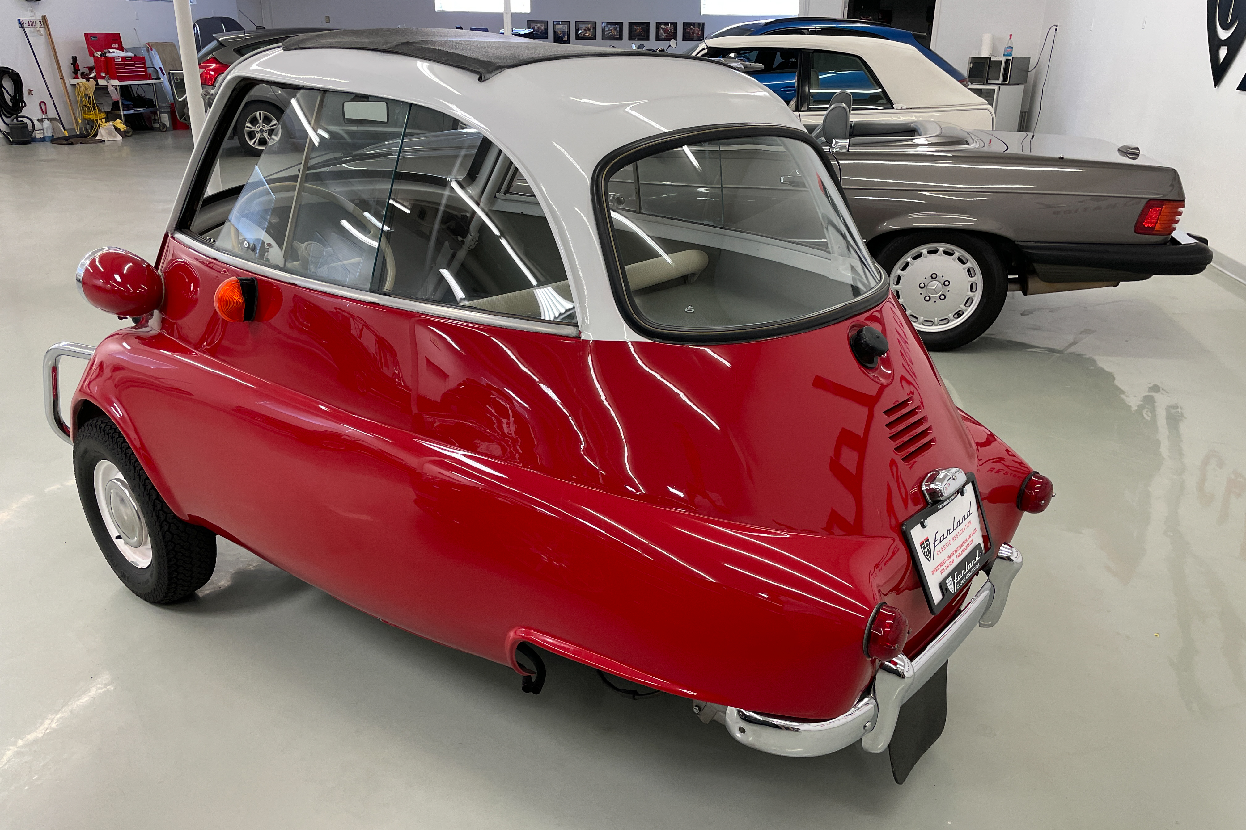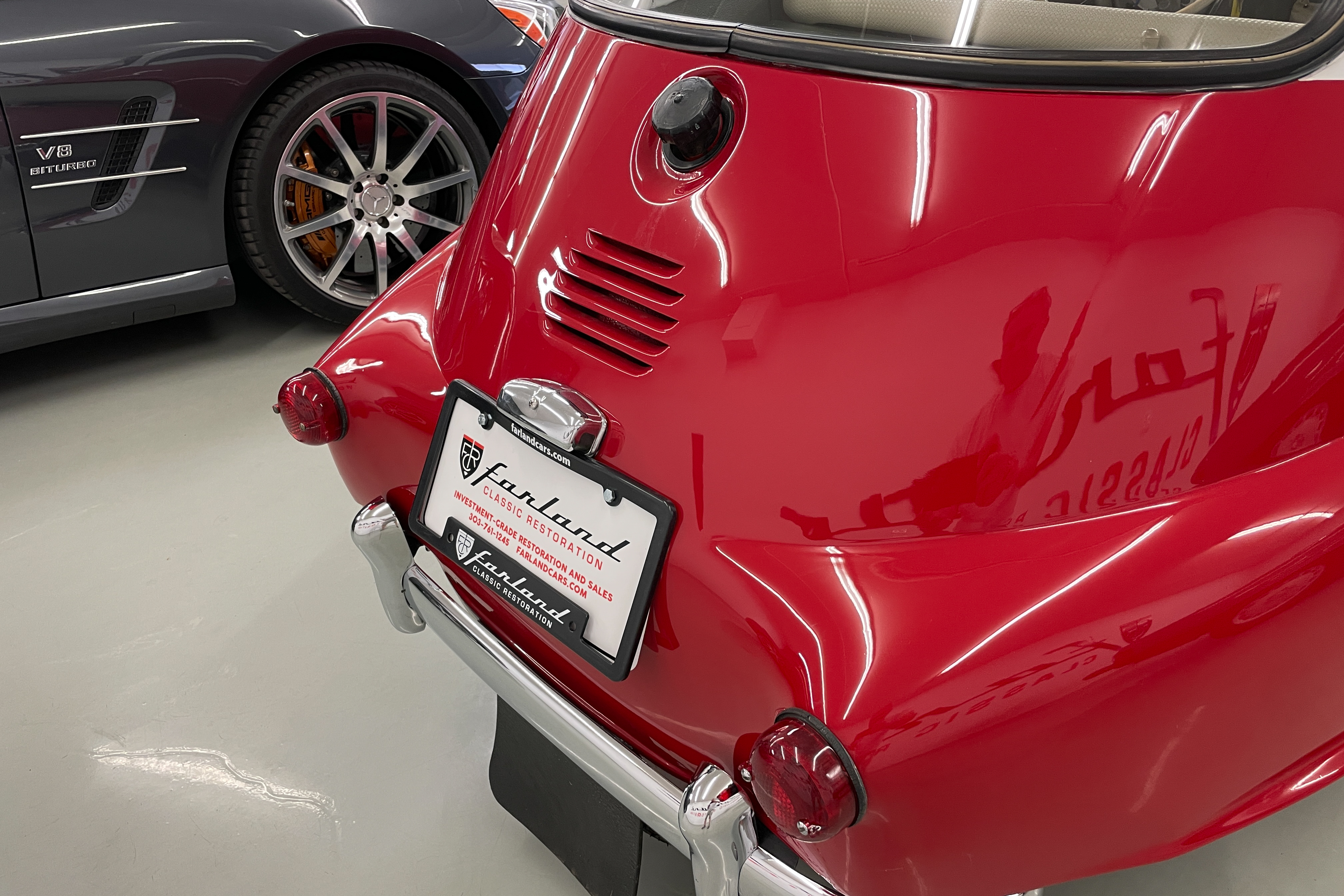 Previously kept in the Carolinas, the car has not been exposed to salt or outdoor storage. Best of all, the BMW engine has just been completely overhauled by an Isetta specialist, along with a rebuild of the transmission, totaling $3800. The car has new tires and our shop has restored the complete brake system & dash electrics, plus installed new upholstery in the correct original material & color. In addition, an all-new wiring harness, voltage regulator & battery have been fitted.
