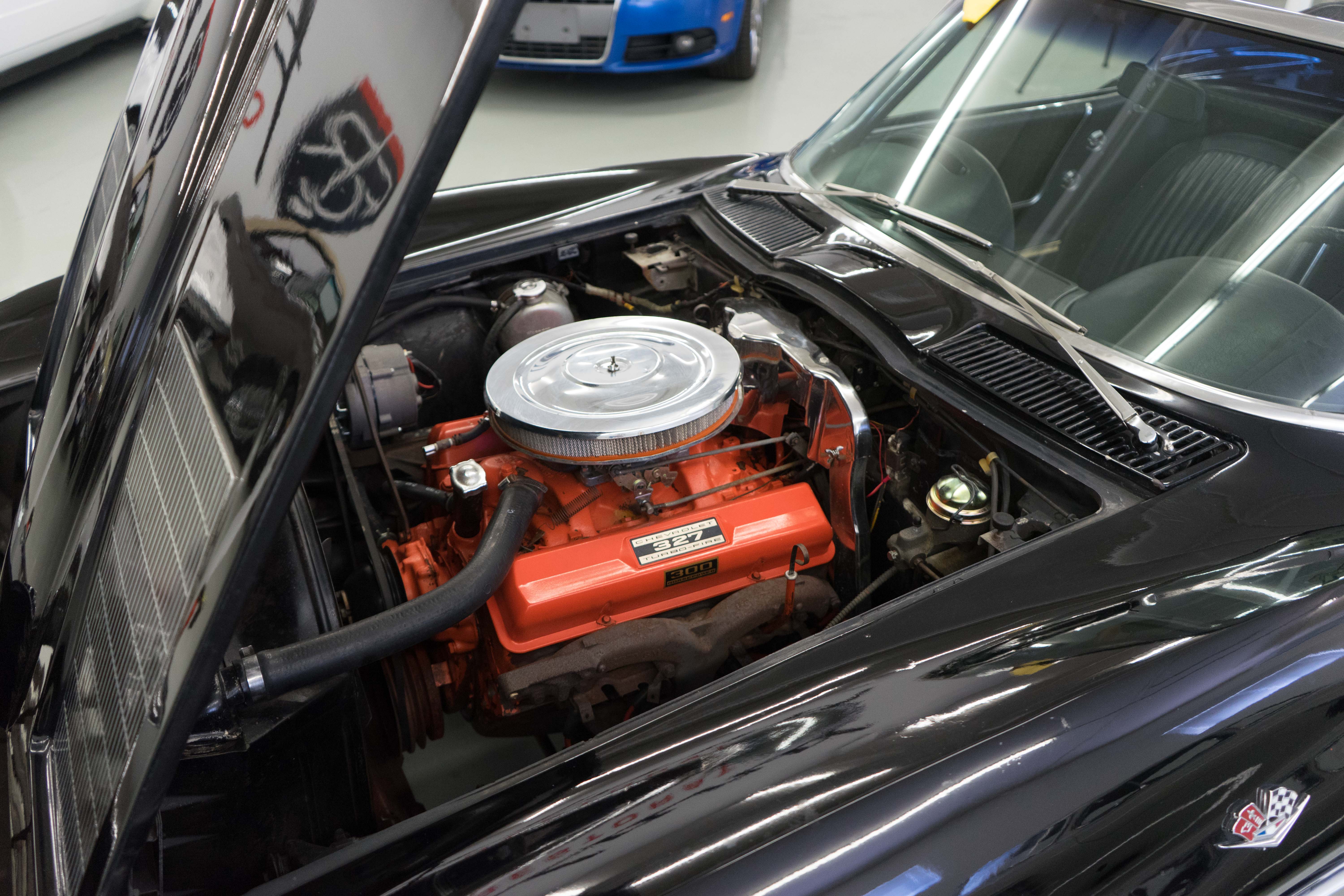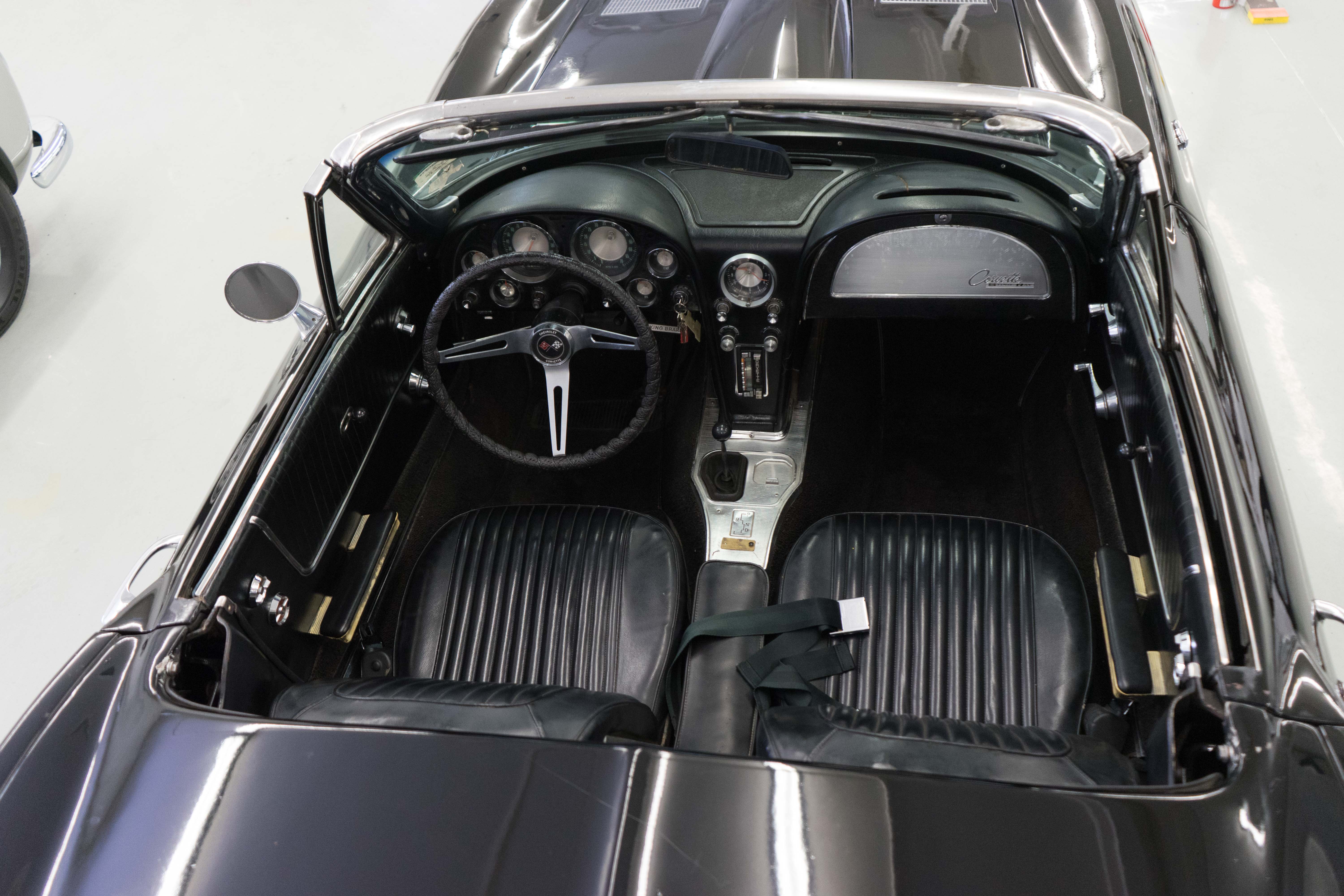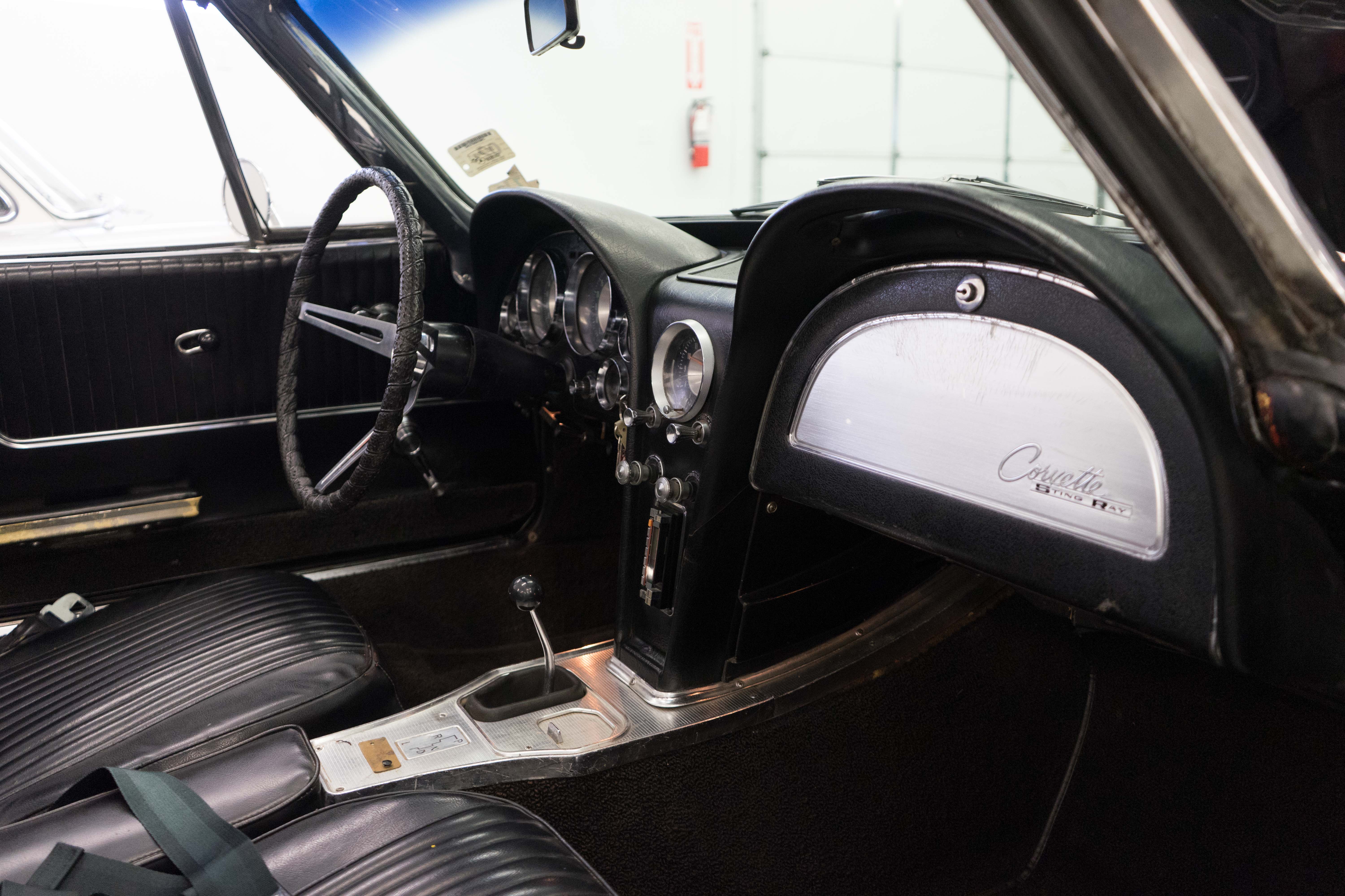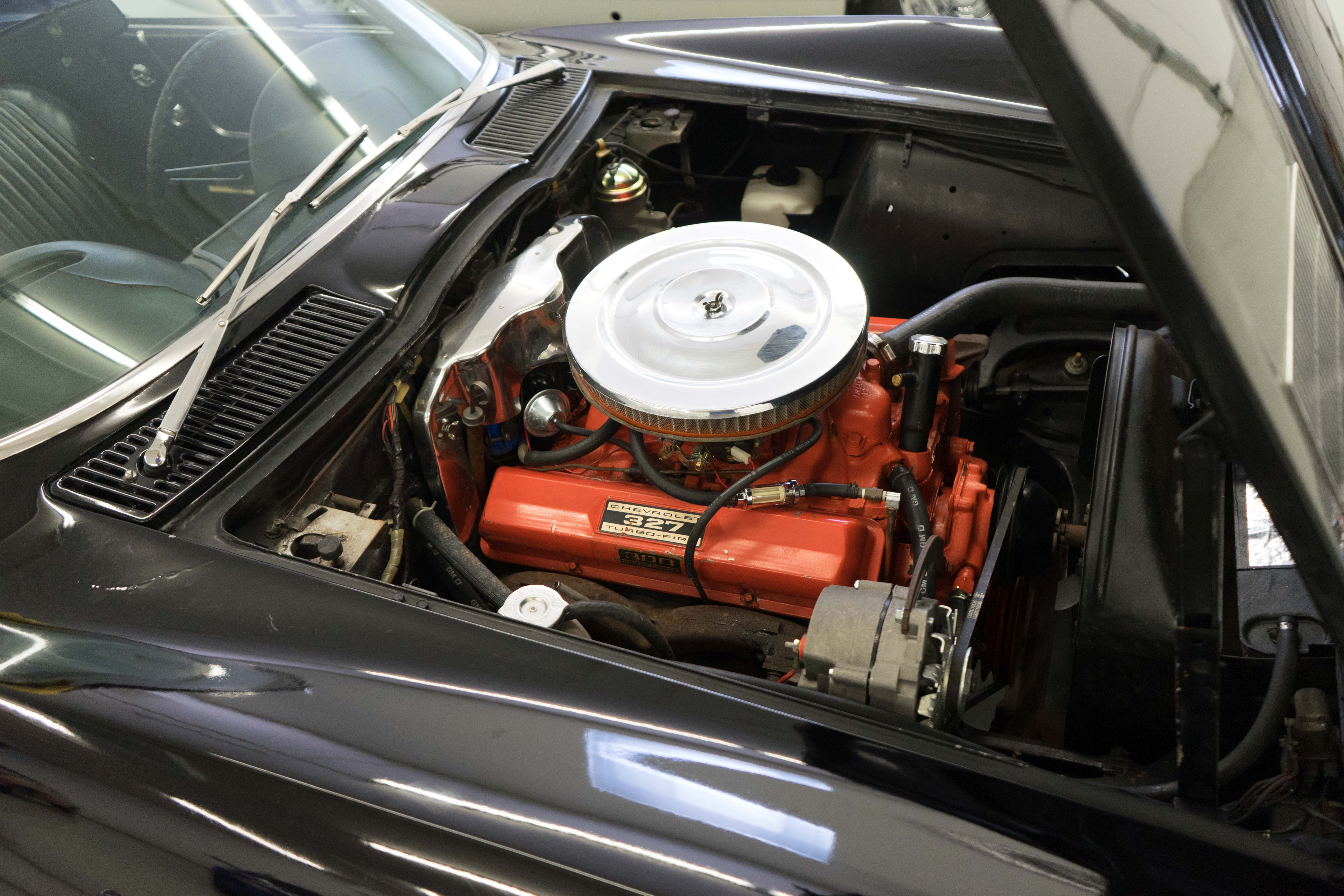 First-year Stingray in good, solid condition, needing some light restoration work—a great Do-It-Yourself or father/son project car. Runs & drives fine, has always been licensed & in use—not in a barn and full of mice! Engine is tight & quiet, good brakes & suspension plus recent new tires. Texas-Colorado car, so all the ferrous bits underneath aren’t rusted or corroded. Has the original 300-horsepower engine with correct VIN stamp on block, has always been triple black and a factory hardtop is also included. Along with the tires, a new master cylinder & alternator have recently been installed. There’re plenty of chores remaining, but none will keep you from enjoying the car while spiffing it up. The paint is a respray that wasn’t bad when applied, but now has numerous chips & flaws, but the body isn’t cracked anywhere (!).