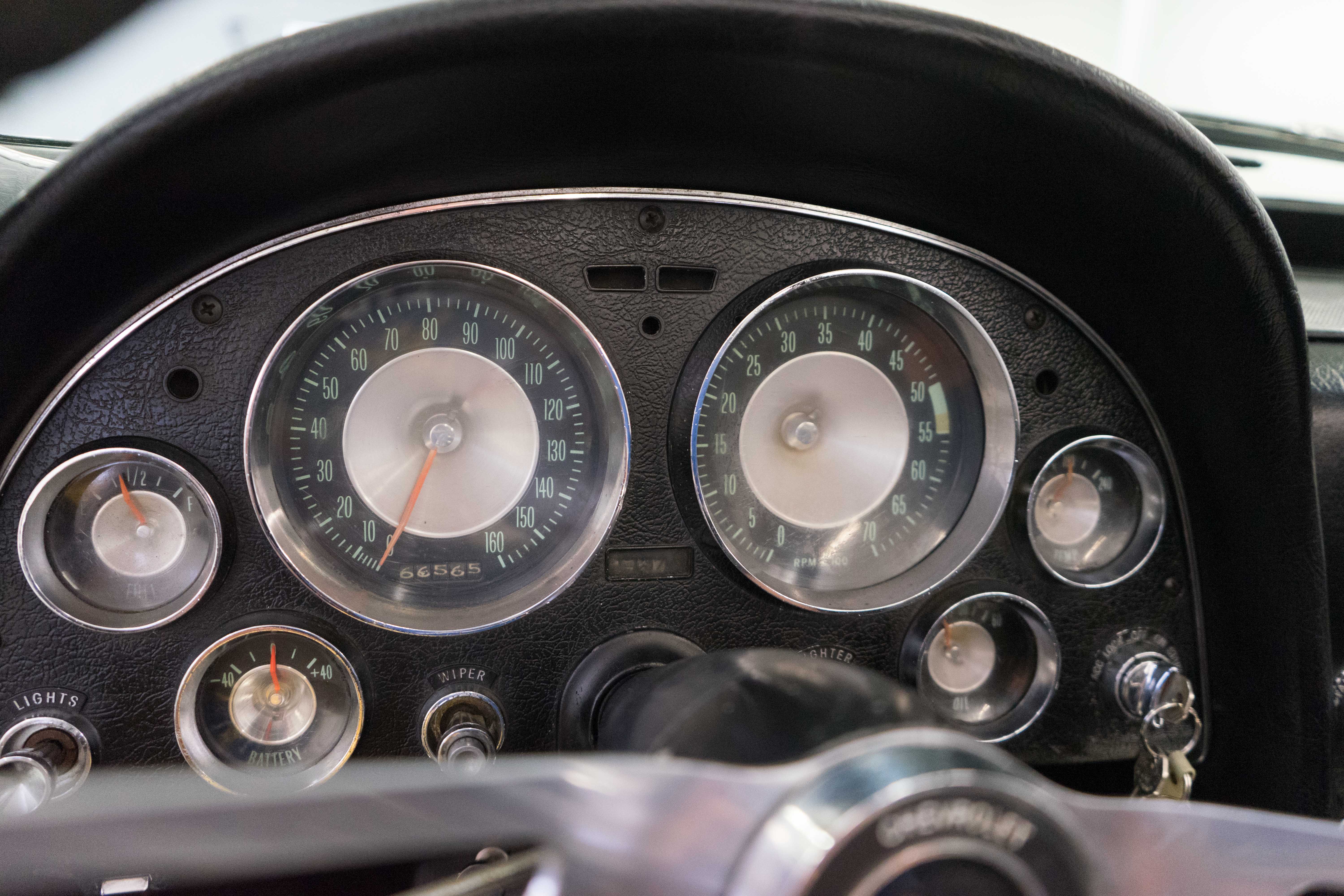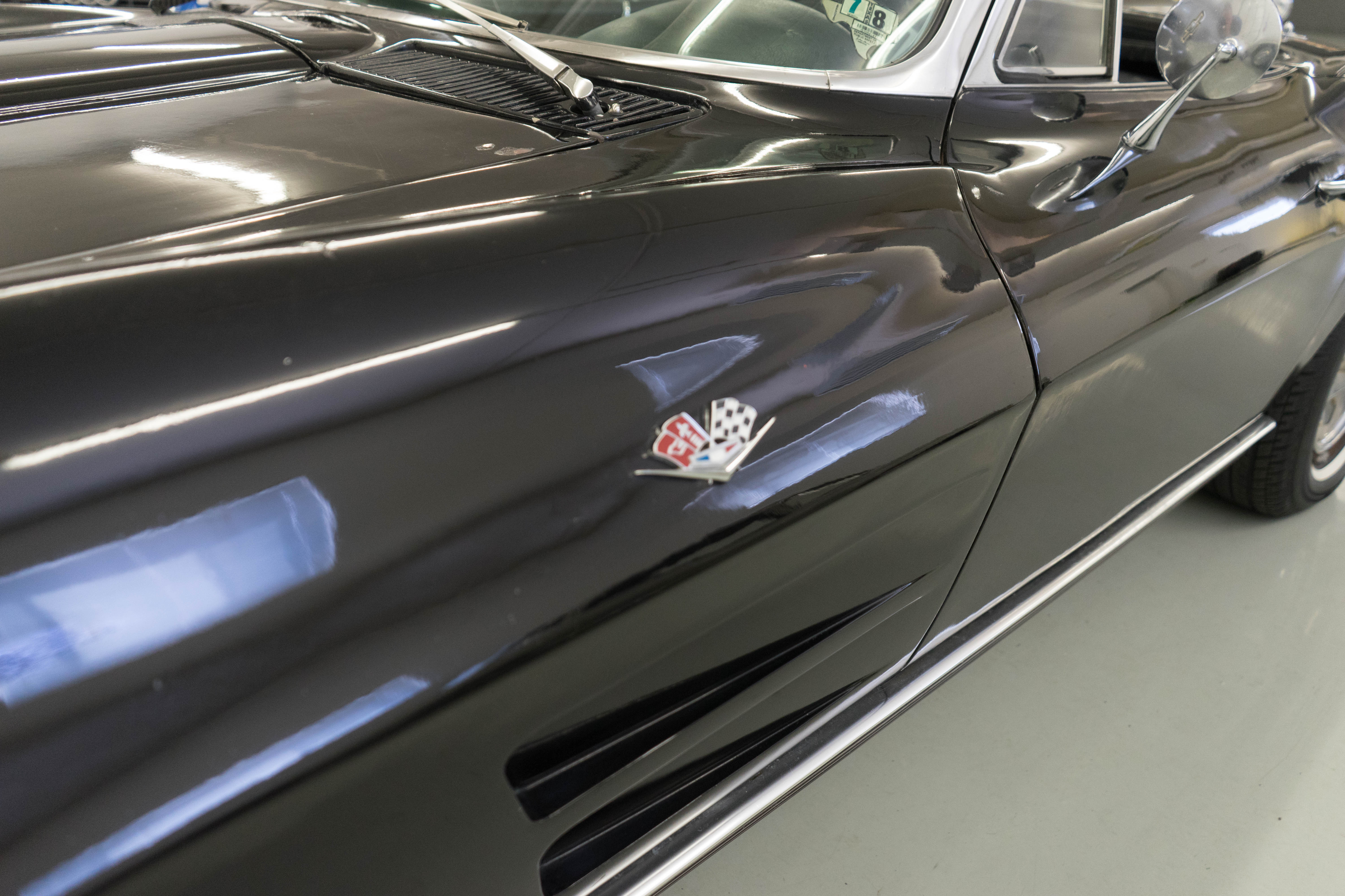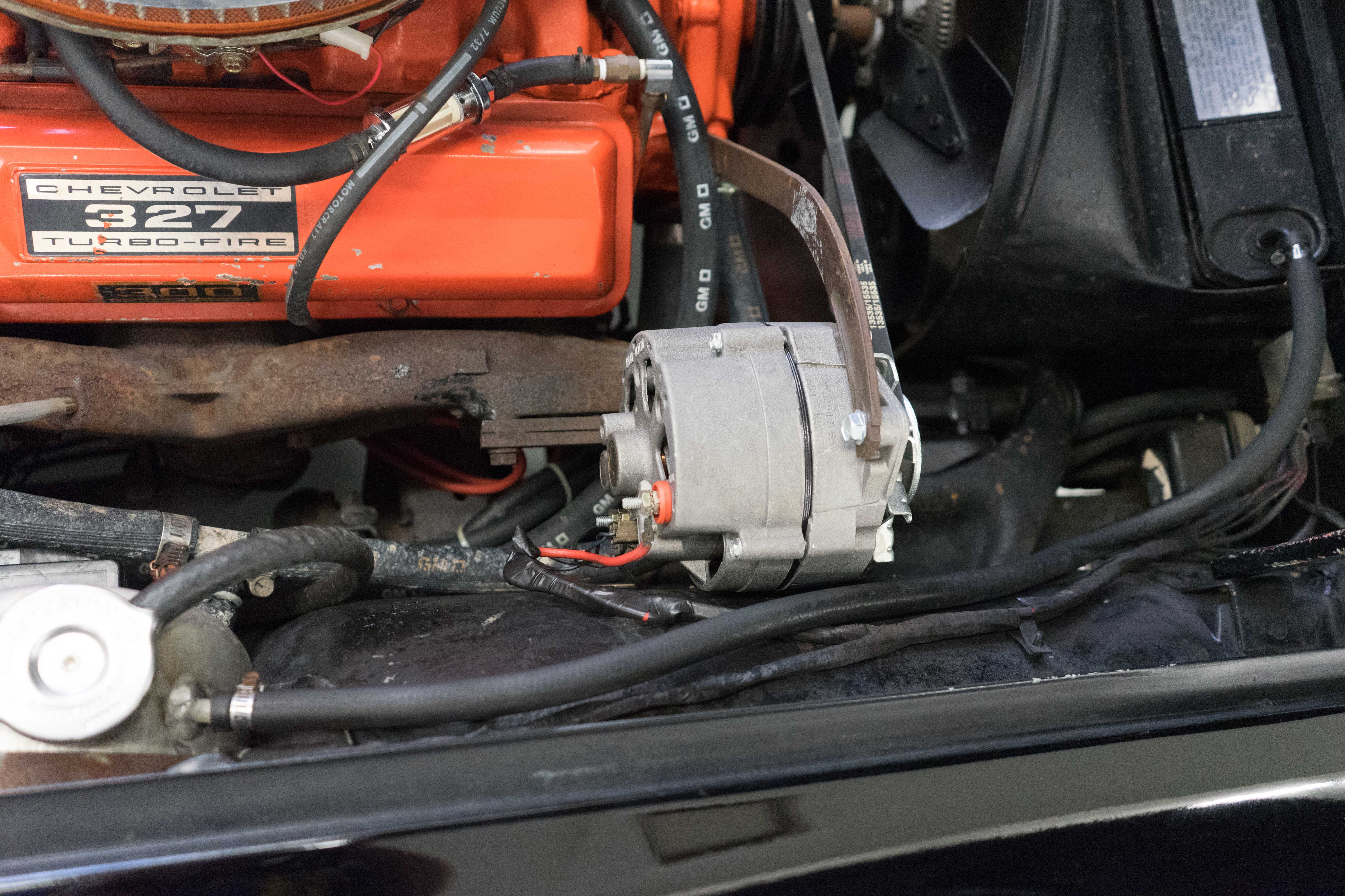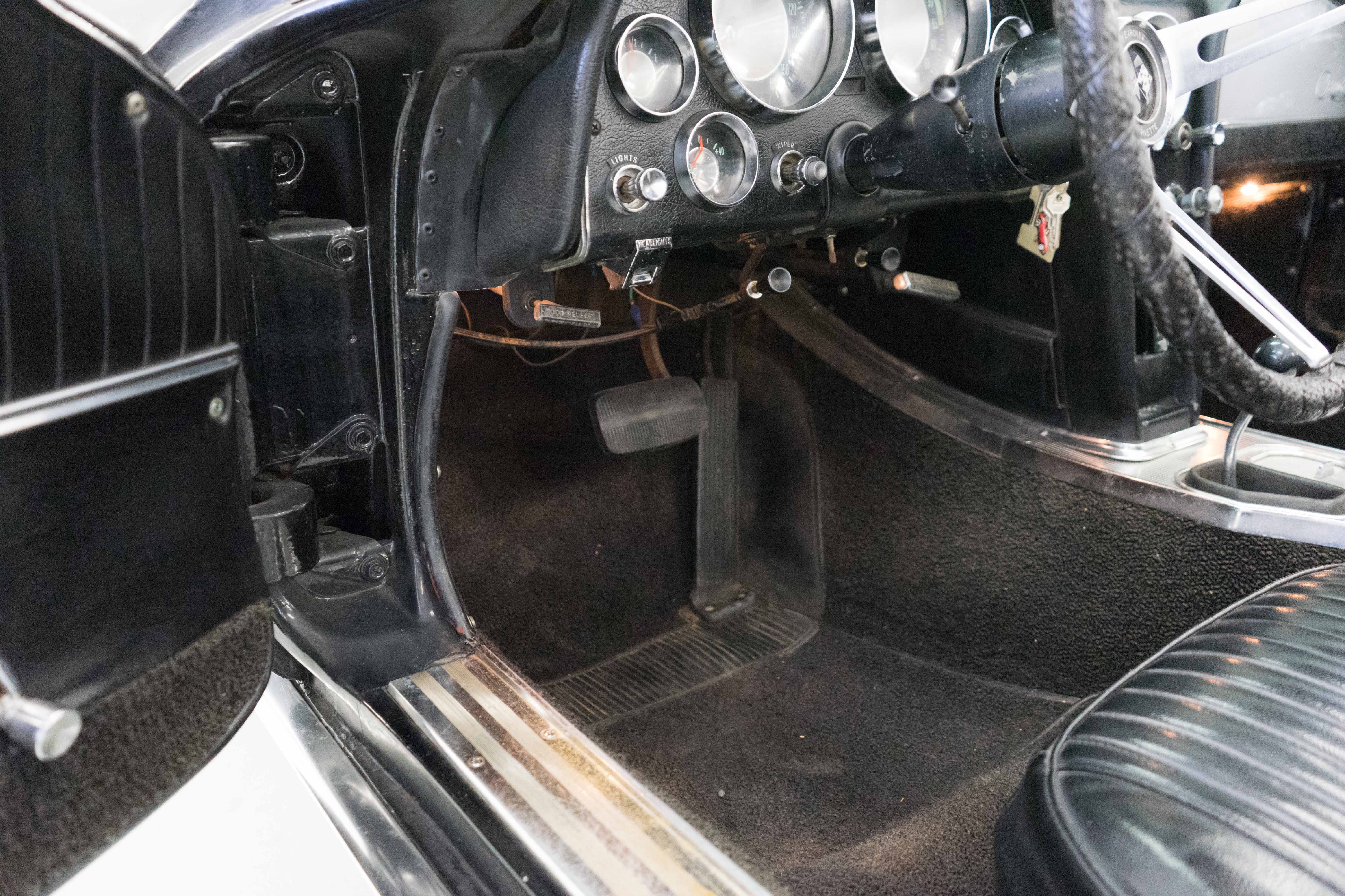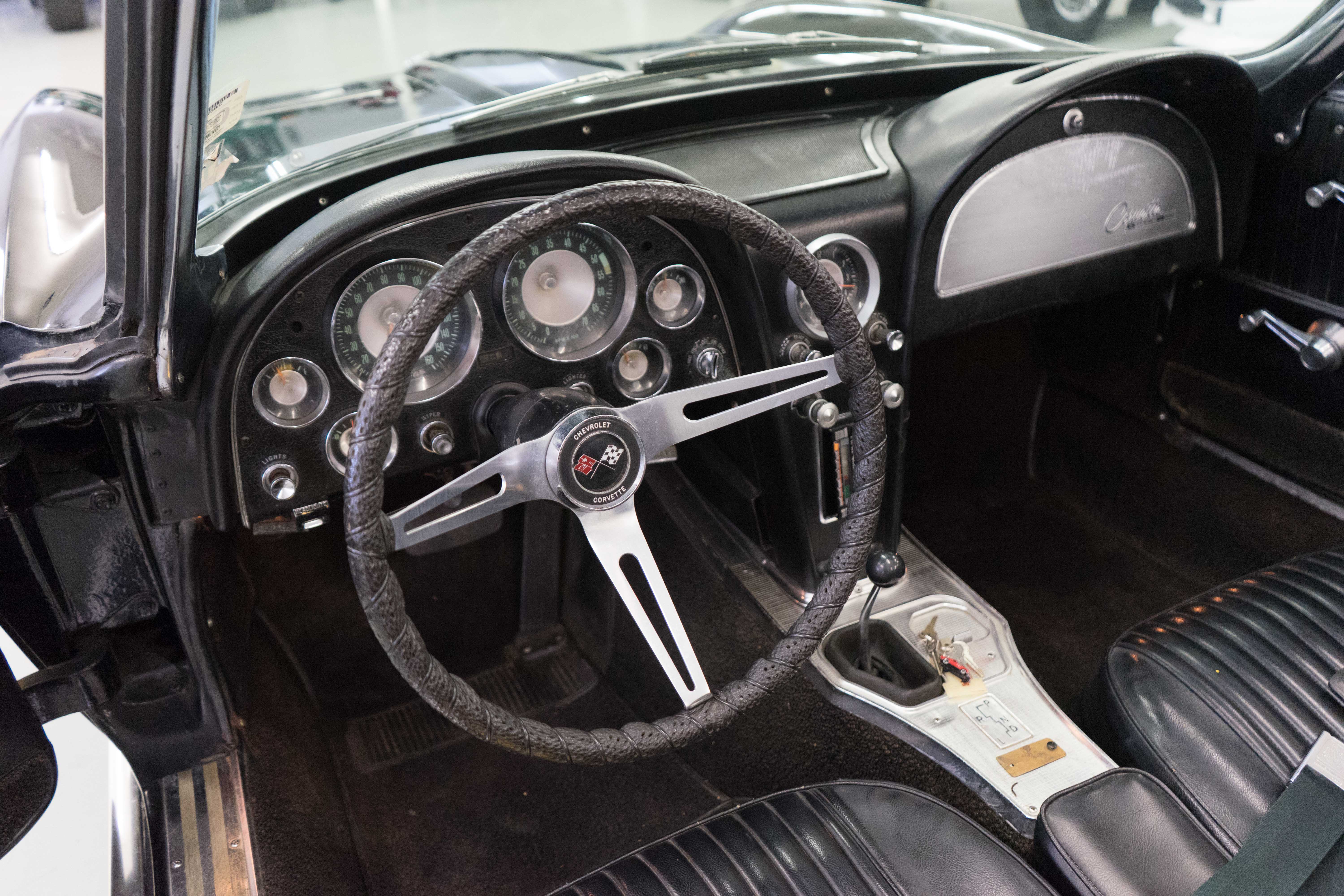 First-year Stingray in good, solid condition, needing some light restoration work—a great Do-It-Yourself or father/son project car. Runs & drives fine, has always been licensed & in use—not in a barn and full of mice! Engine is tight & quiet, good brakes & suspension plus recent new tires. Texas-Colorado car, so all the ferrous bits underneath aren’t rusted or corroded. Has the original 300-horsepower engine with correct VIN stamp on block, has always been triple black and a factory hardtop is also included. Along with the tires, a new master cylinder & alternator have recently been installed. There’re plenty of chores remaining, but none will keep you from enjoying the car while spiffing it up. The paint is a respray that wasn’t bad when applied, but now has numerous chips & flaws, but the body isn’t cracked anywhere (!).