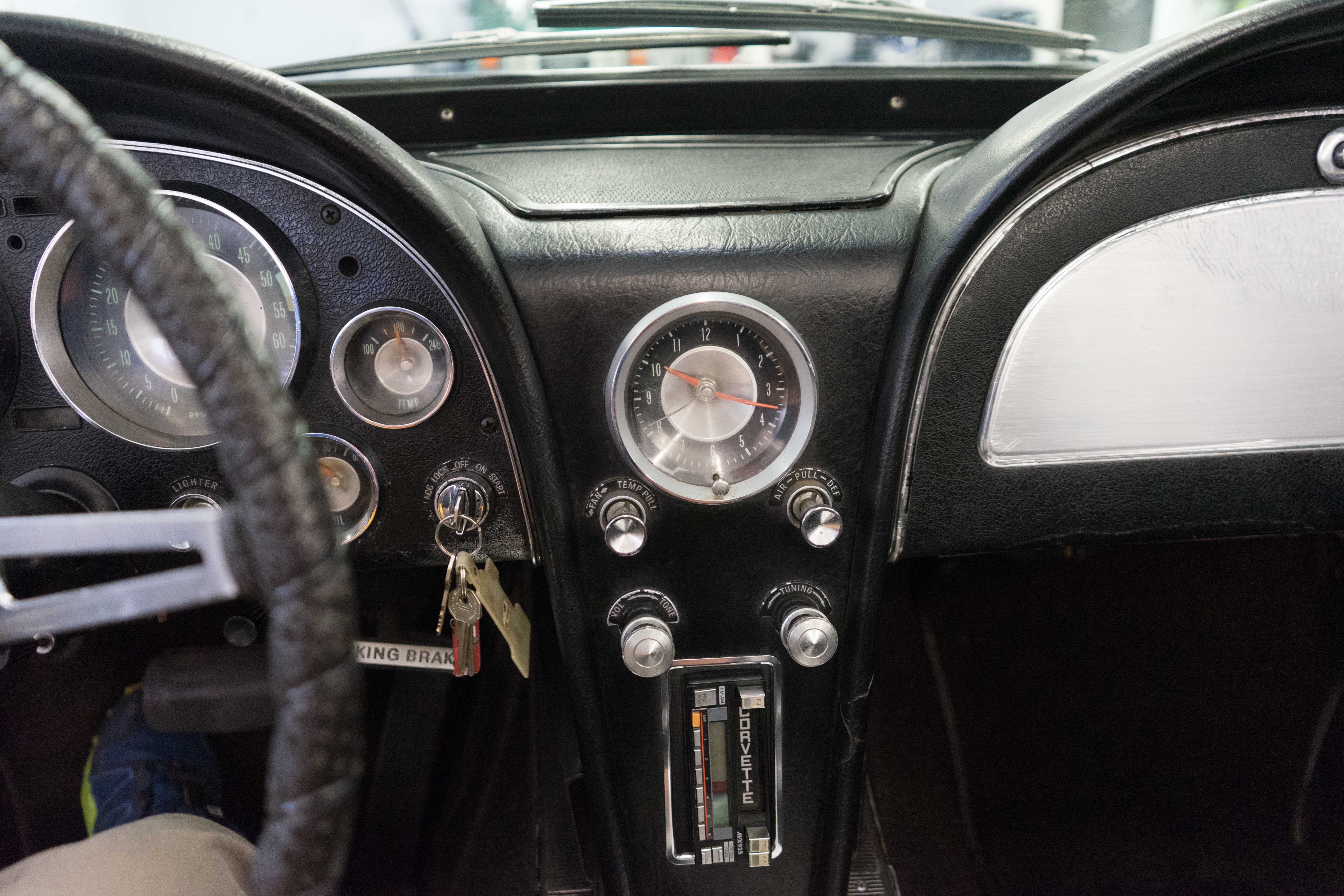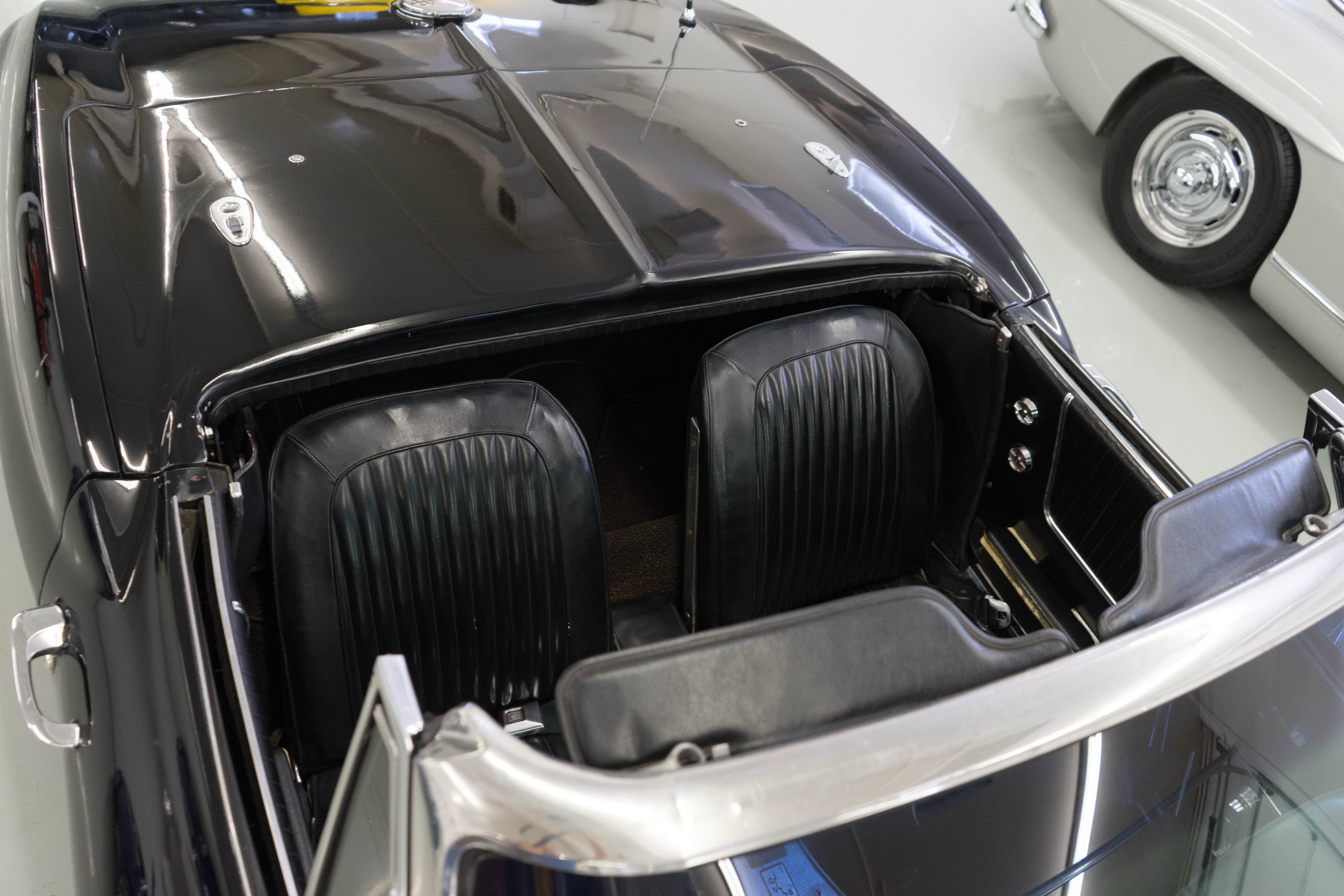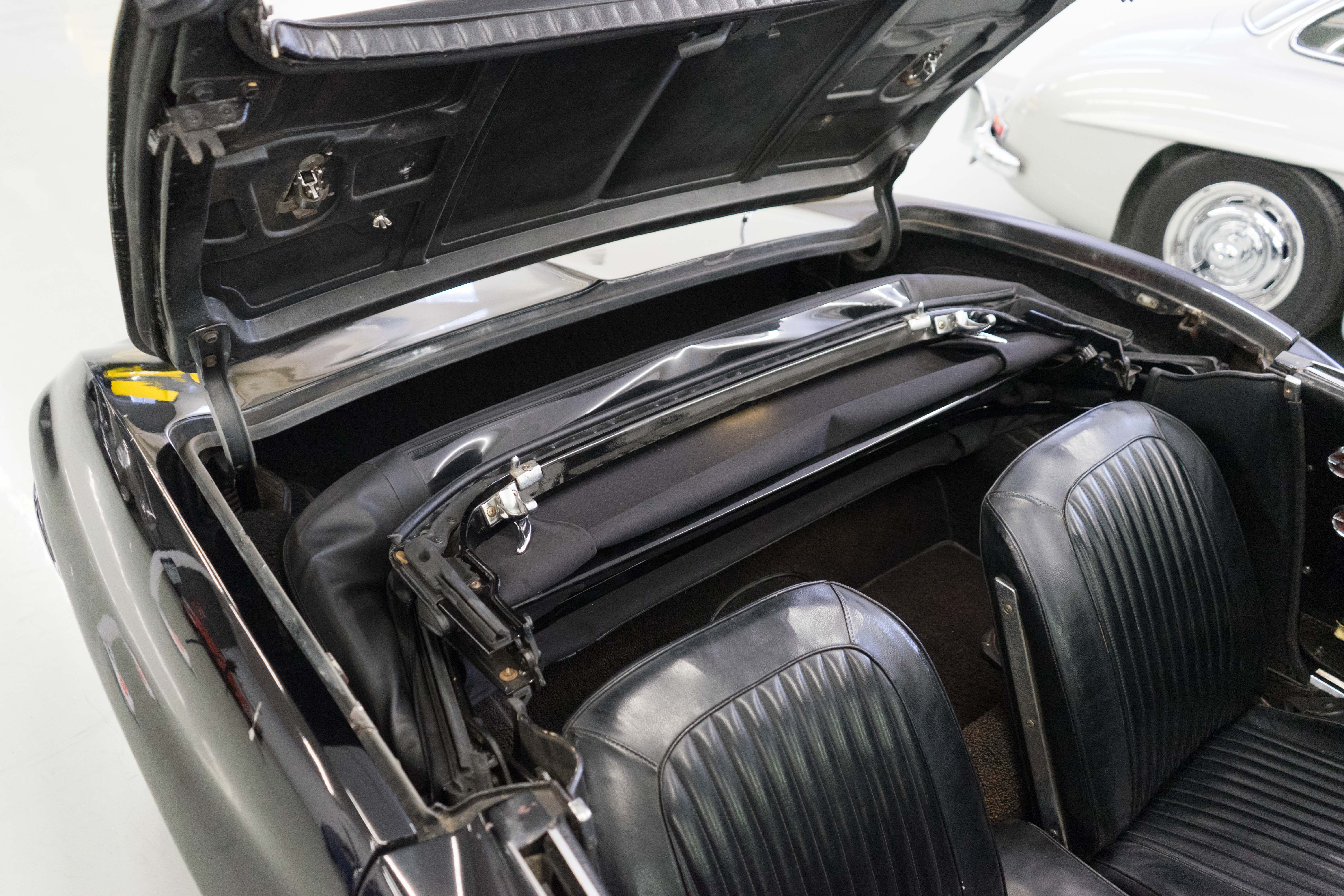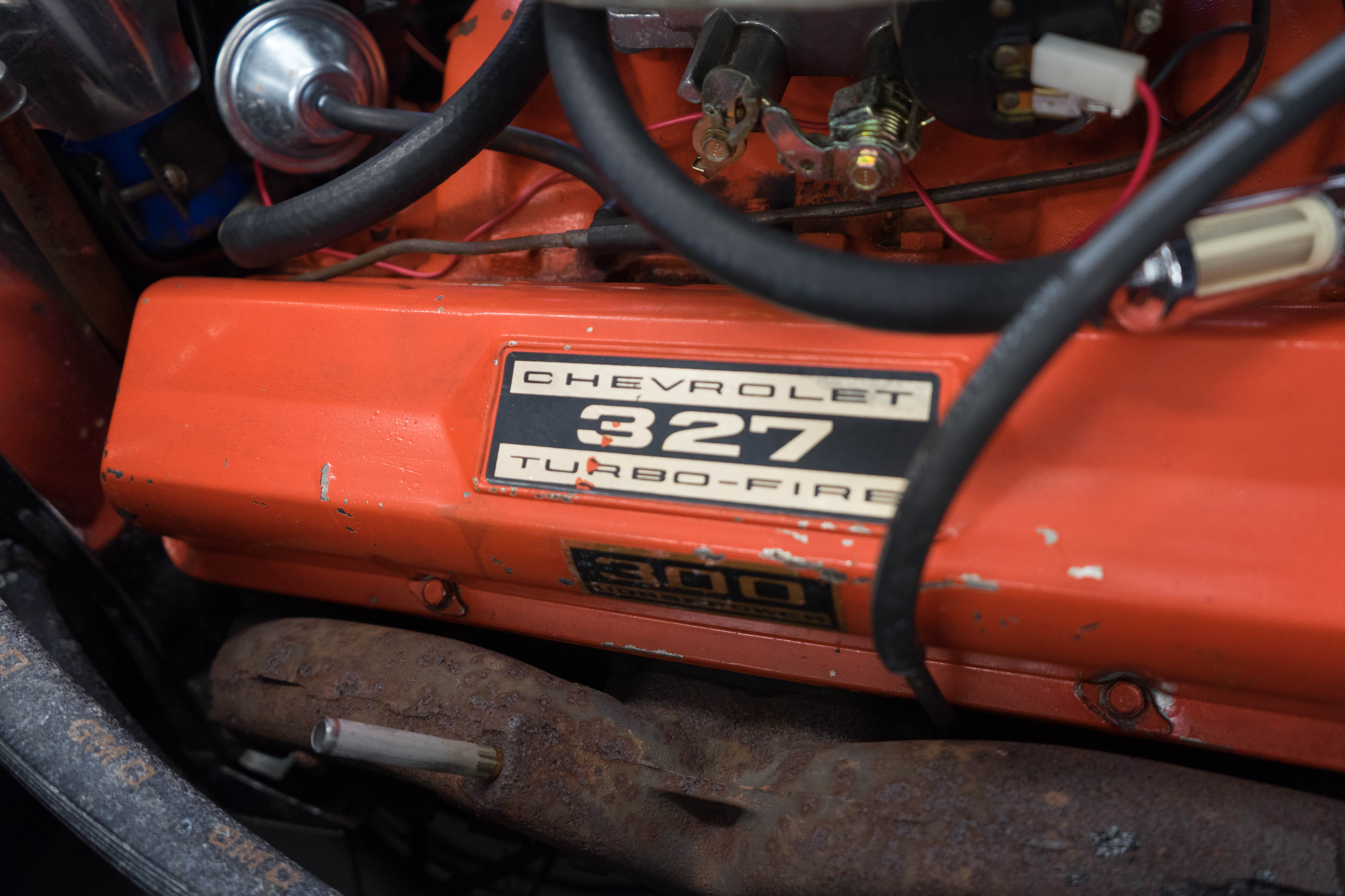 The bumpers have great chrome, the glass is fine, original hubcaps are not scraped up and previous owners kept it stock—no aftermarket pipes, incorrect manifolds or other modifications.The black soft top is quite nice with a clear window, but the hardtop’s window is crazed and cracked. Hardtop gaskets, etc need repair. The carpets are original but weak, the dash pad is cracked and the instruments are a bit faded. The seats look like they had an interior kit installed some years back and are OK, not great. Again, you could take it to Cars & Coffee THIS weekend and gradually improve the car while watching it grow in value.