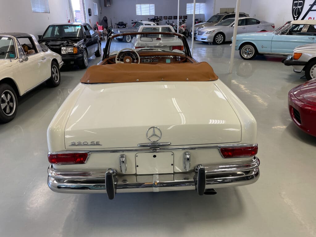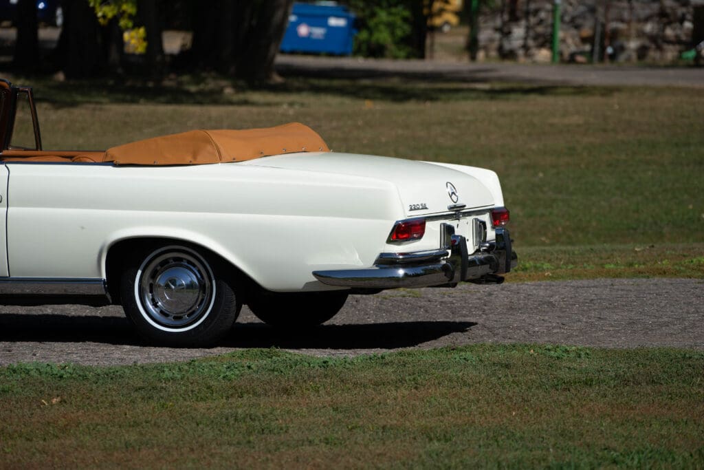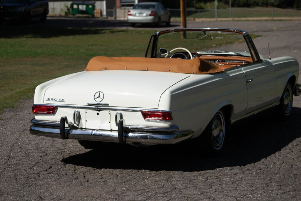 A rare car when new and even more so now—the classic Mercedes-Benz 111-series cabriolets were top-of-the-line cars at the time and came with luxurious full leather interiors with beautiful wood trim on the dash, insulated convertible top and a fuel injected engine when virtually everyone else would still offer carburetors for another decade! Many 220s had automatic transmissions that were still fairly primitive, but this one has a traditional manual four-speed. It was optioned with air conditioning that has recently been upgraded to modern R-134A refrigerant.