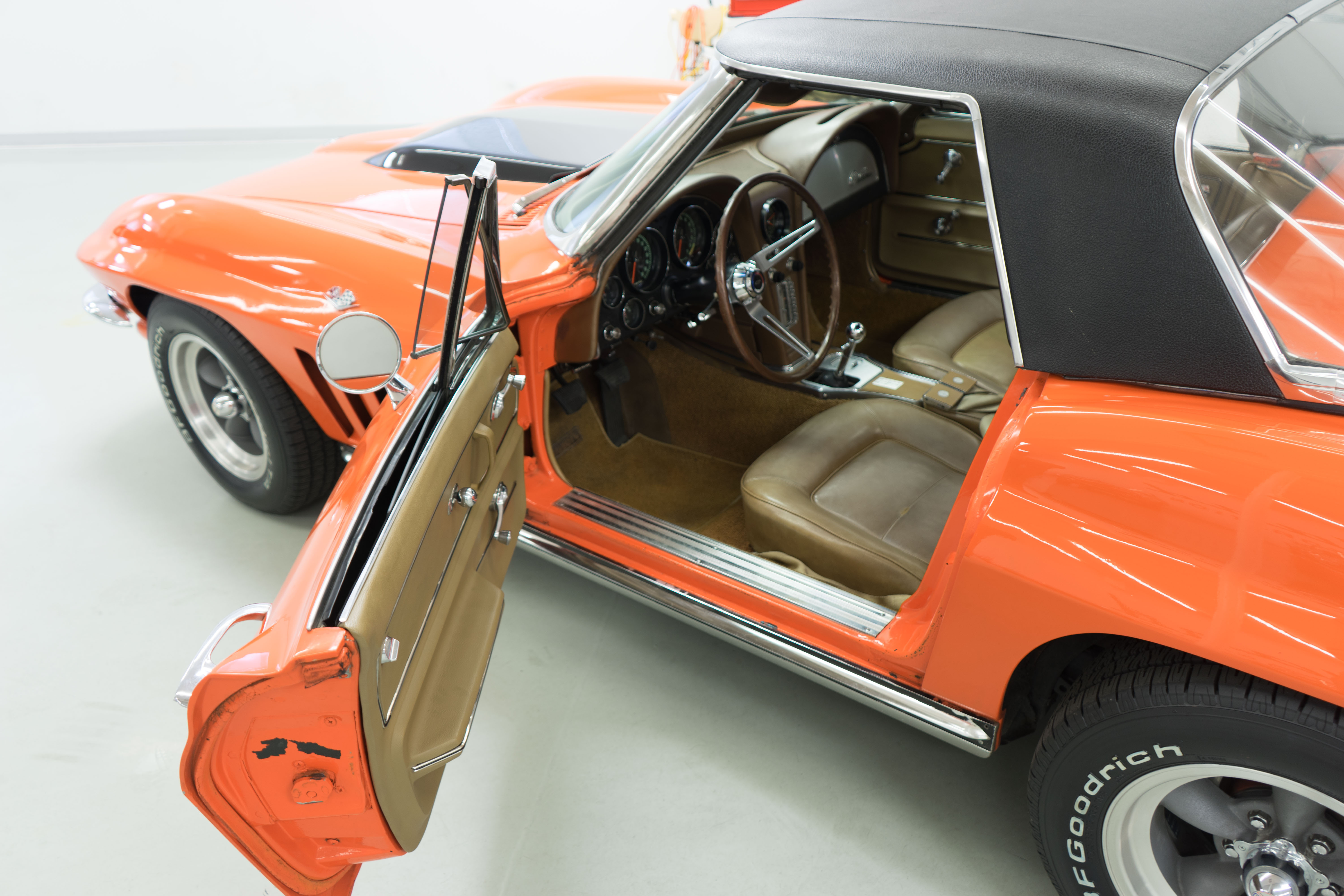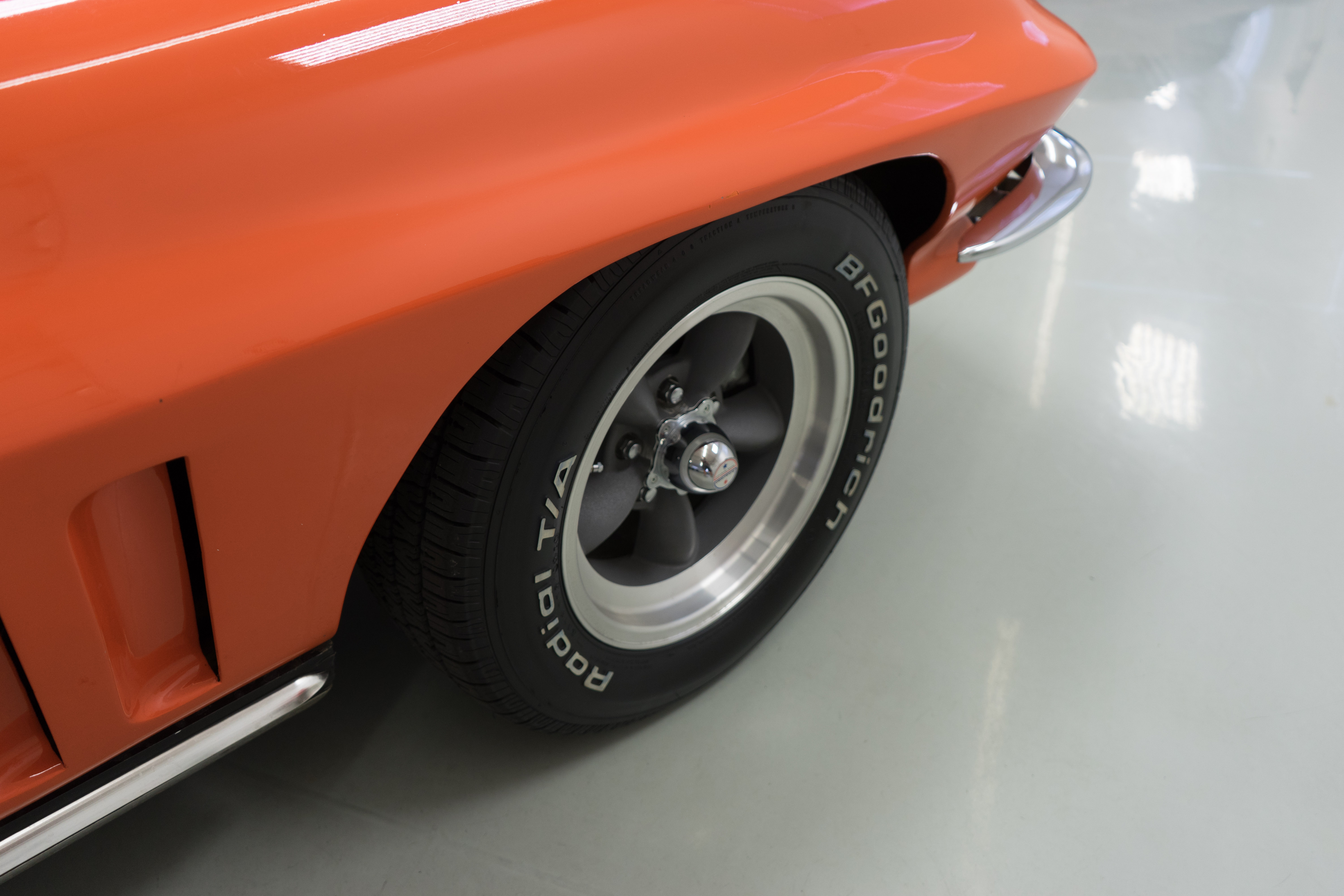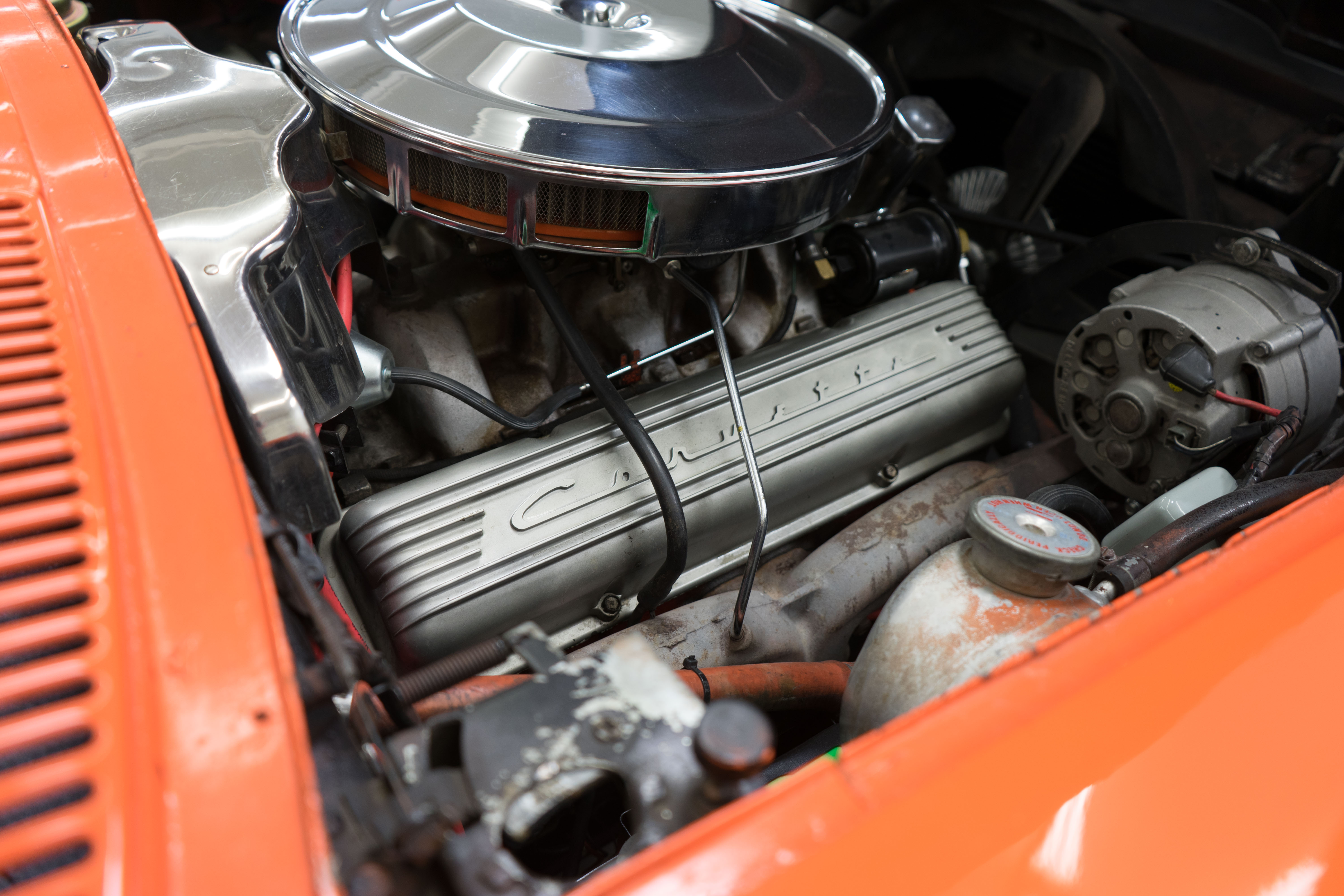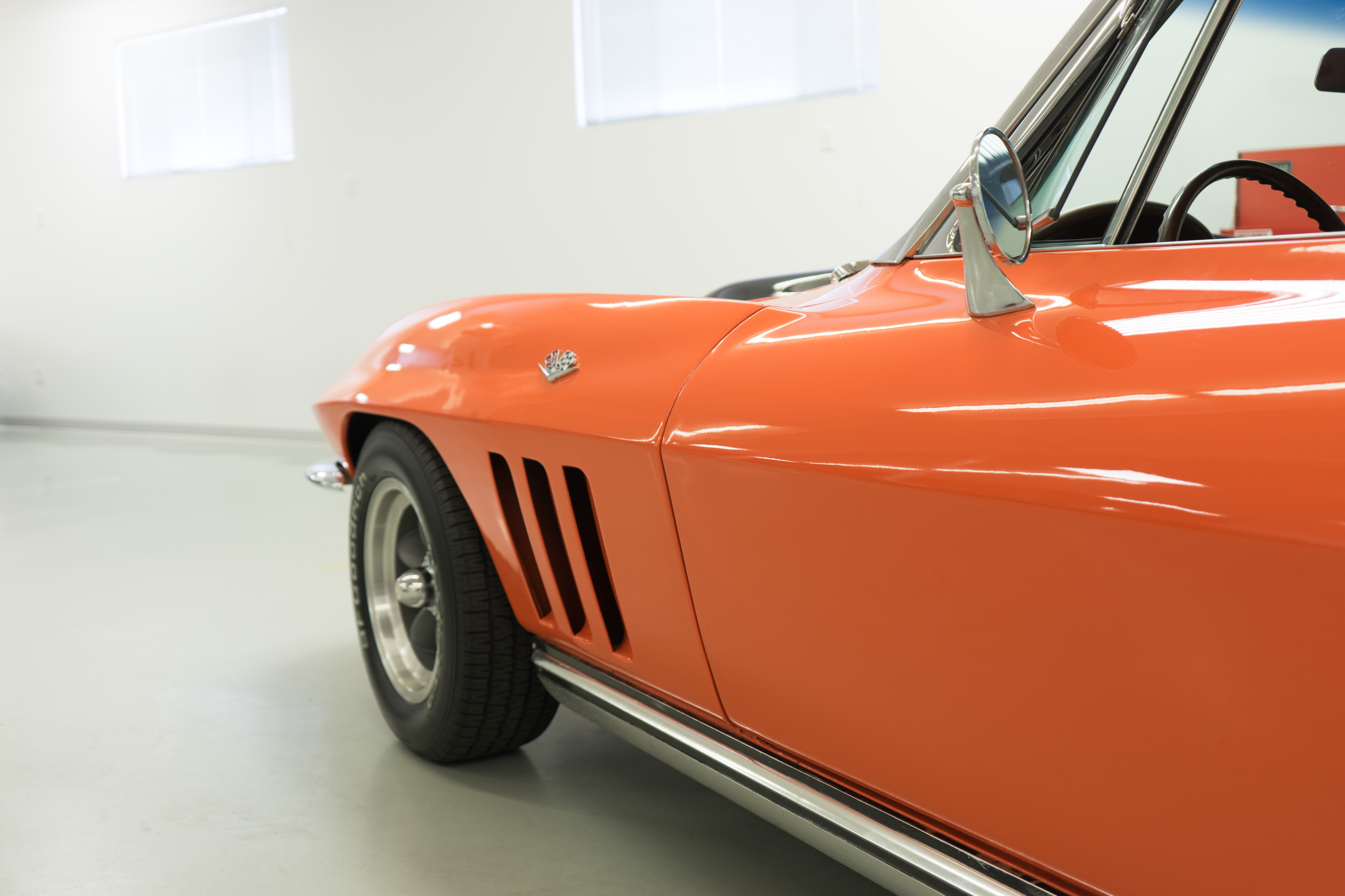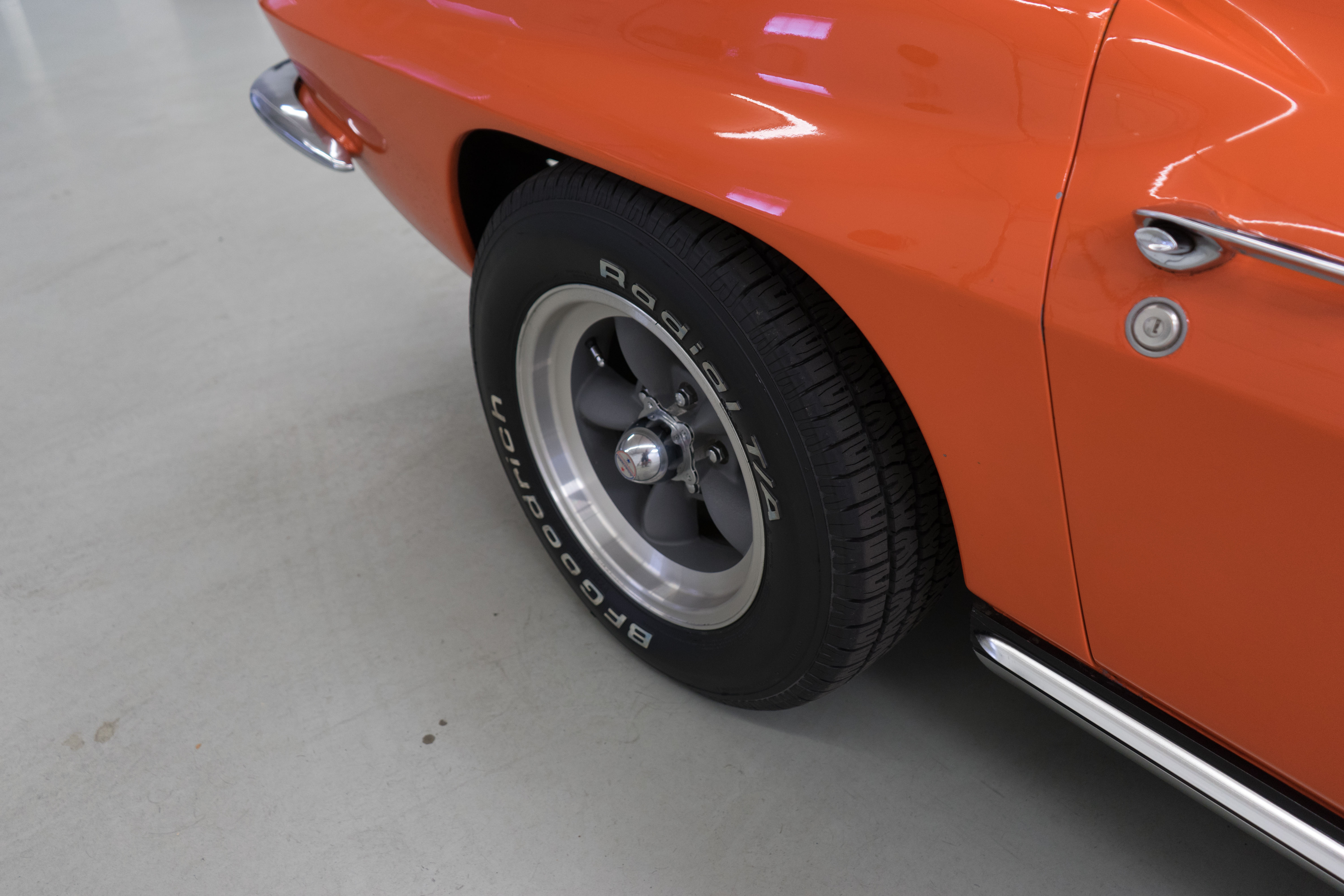 The last paint job was this rather polarizing orange; it still looks reasonably good, but has plenty of minor flaws and begs to go back to the original Glen Green…or Black, or red or whatever you happen to like. Obviously, it’s the car’s biggest weakness, but has been compensated for in the price. Consequently, it presents a great opportunity for someone who is handy and likes to do detailing work to get rid of the overspray here & there by putting sweat equity into this very solid C2.Odds & ends: New radial T/As, heater core, exhaust. Tinted windshield & hardtop window nice & clear, new shocks, factory telescoping column w/teak wheel, original radio, clock works (!) and there’s a big file of receipts & documentation that go with the car showing new clutch & synchros (7K miles ago) and a strong compression test 3K miles ago. A killer ’65 L76 is an $80,000+ car today, so there’s lots of room to grow the car’s value and you can enjoy it as the project proceeds. Very desirable original specs, matching numbers and ‘way under market—that doesn’t happen often!