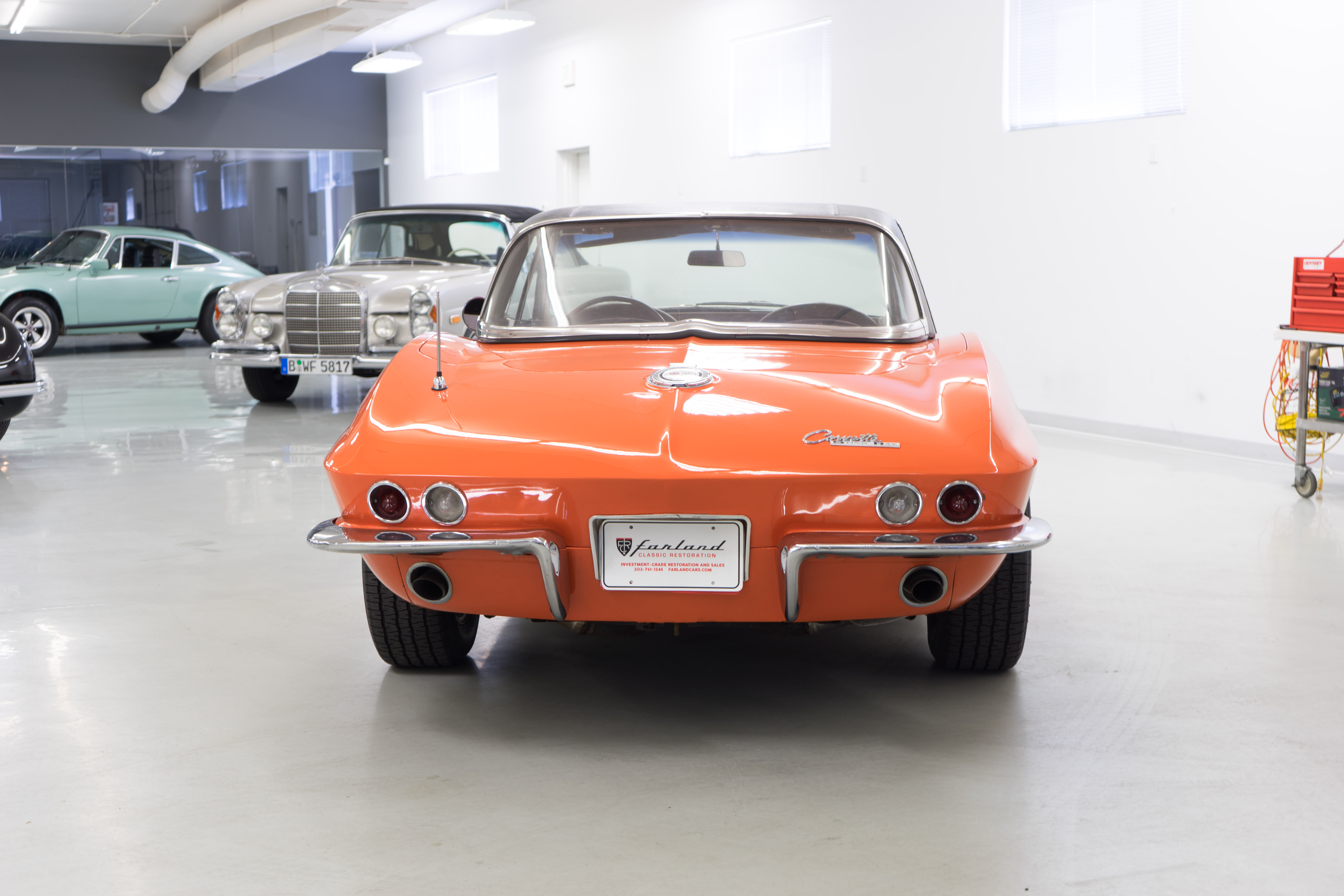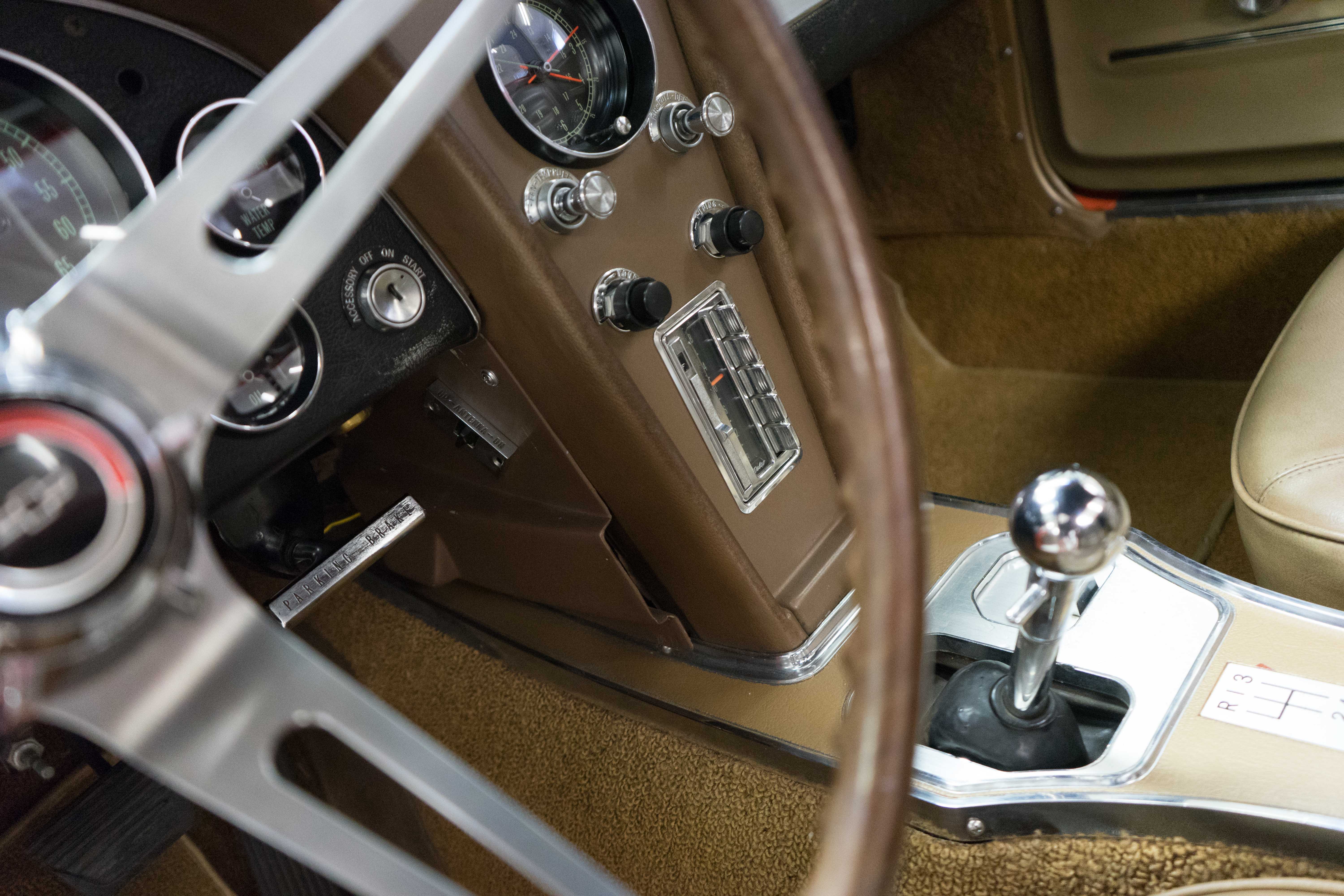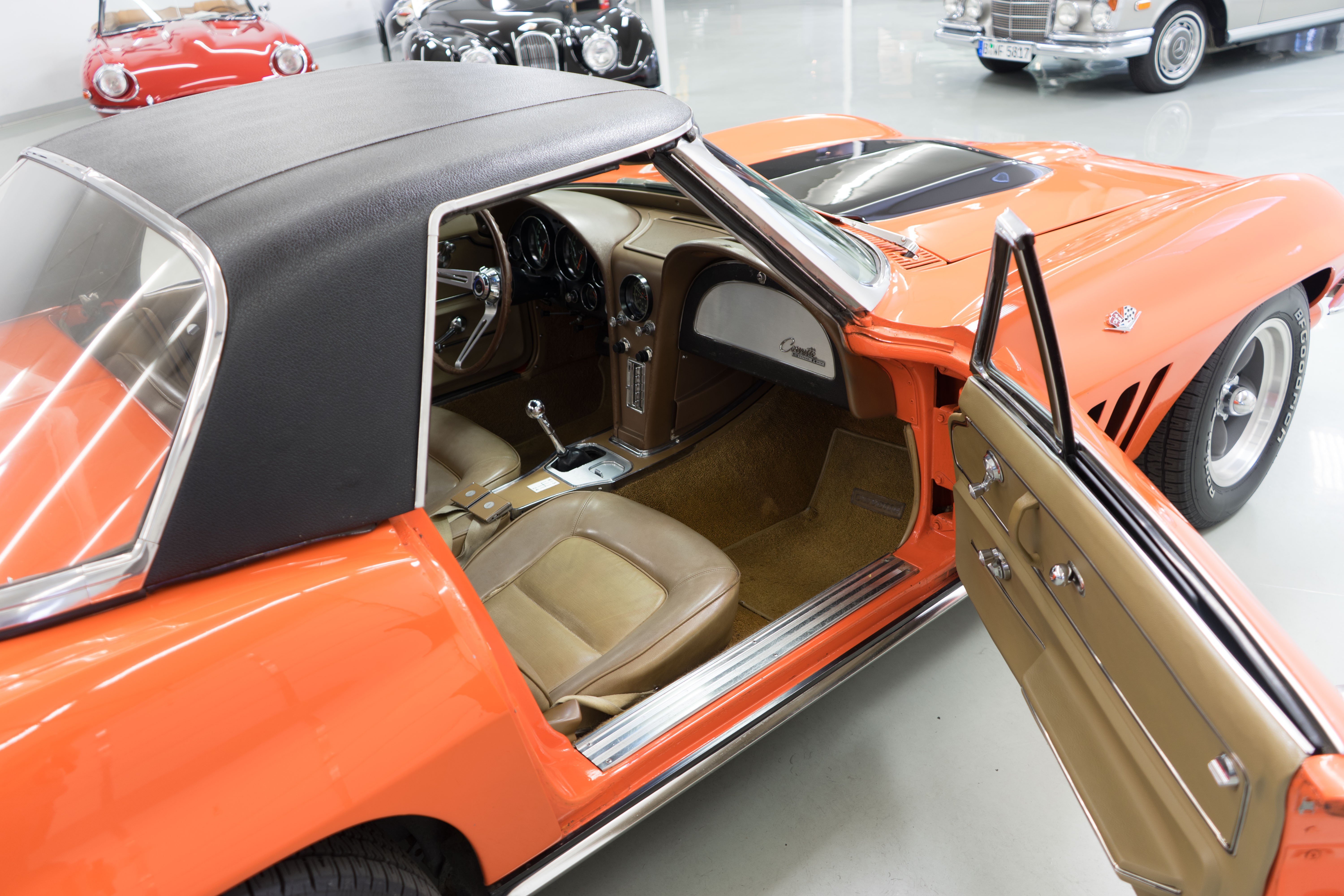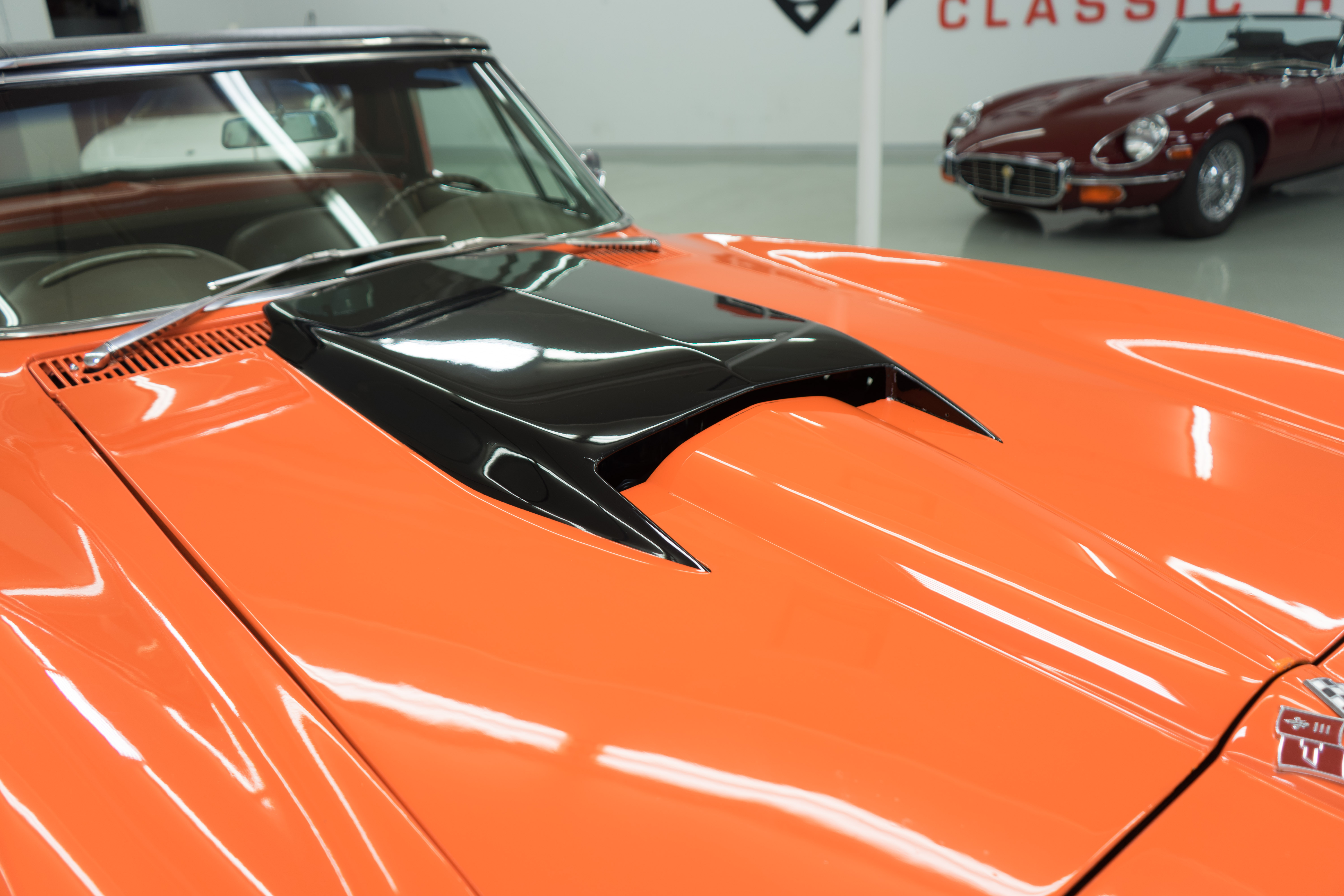 The last paint job was this rather polarizing orange; it still looks reasonably good, but has plenty of minor flaws and begs to go back to the original Glen Green…or Black, or red or whatever you happen to like. Obviously, it’s the car’s biggest weakness, but has been compensated for in the price. Consequently, it presents a great opportunity for someone who is handy and likes to do detailing work to get rid of the overspray here & there by putting sweat equity into this very solid C2.Odds & ends: New radial T/As, heater core, exhaust. Tinted windshield & hardtop window nice & clear, new shocks, factory telescoping column w/teak wheel, original radio, clock works (!) and there’s a big file of receipts & documentation that go with the car showing new clutch & synchros (7K miles ago) and a strong compression test 3K miles ago. A killer ’65 L76 is an $80,000+ car today, so there’s lots of room to grow the car’s value and you can enjoy it as the project proceeds. Very desirable original specs, matching numbers and ‘way under market—that doesn’t happen often!
