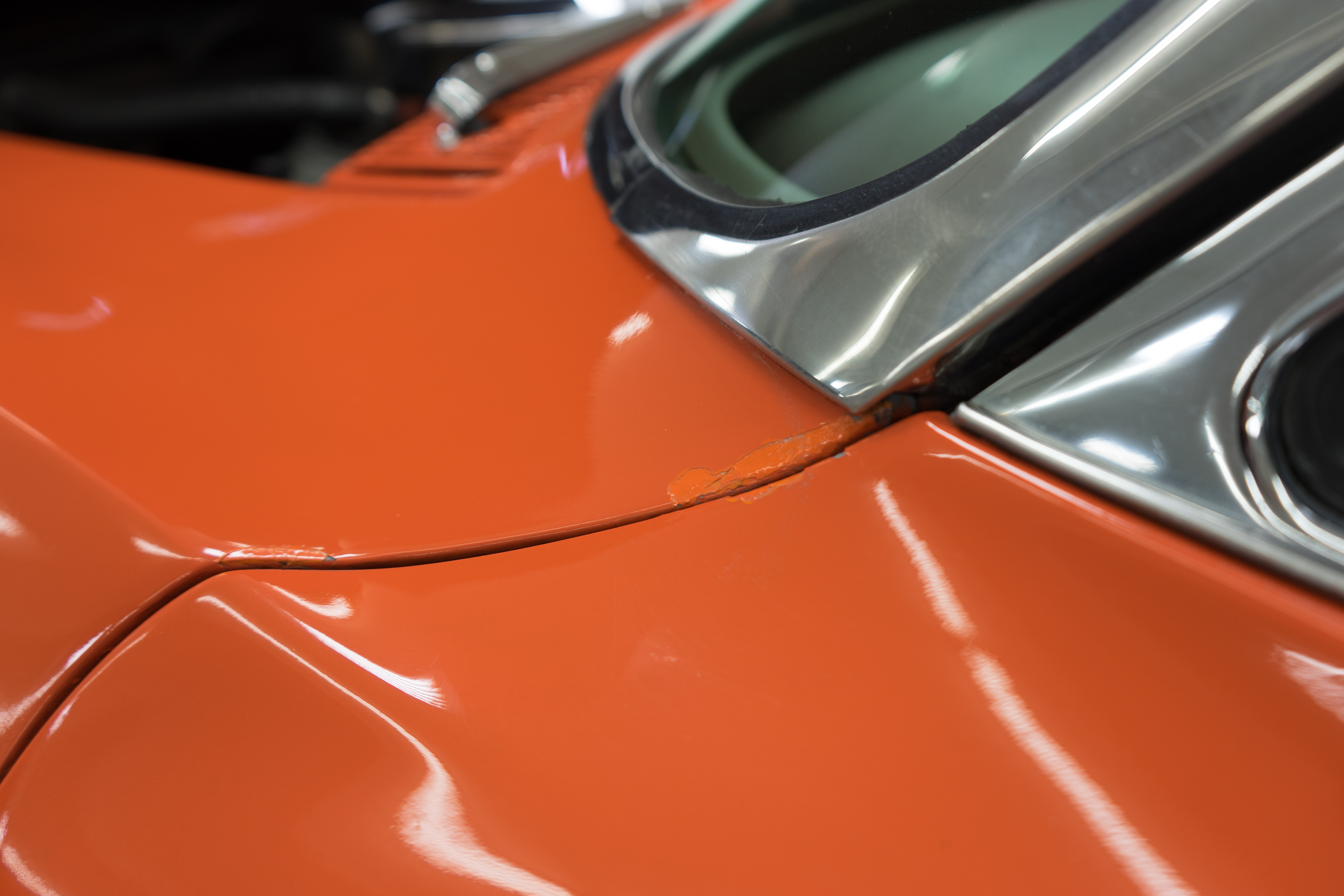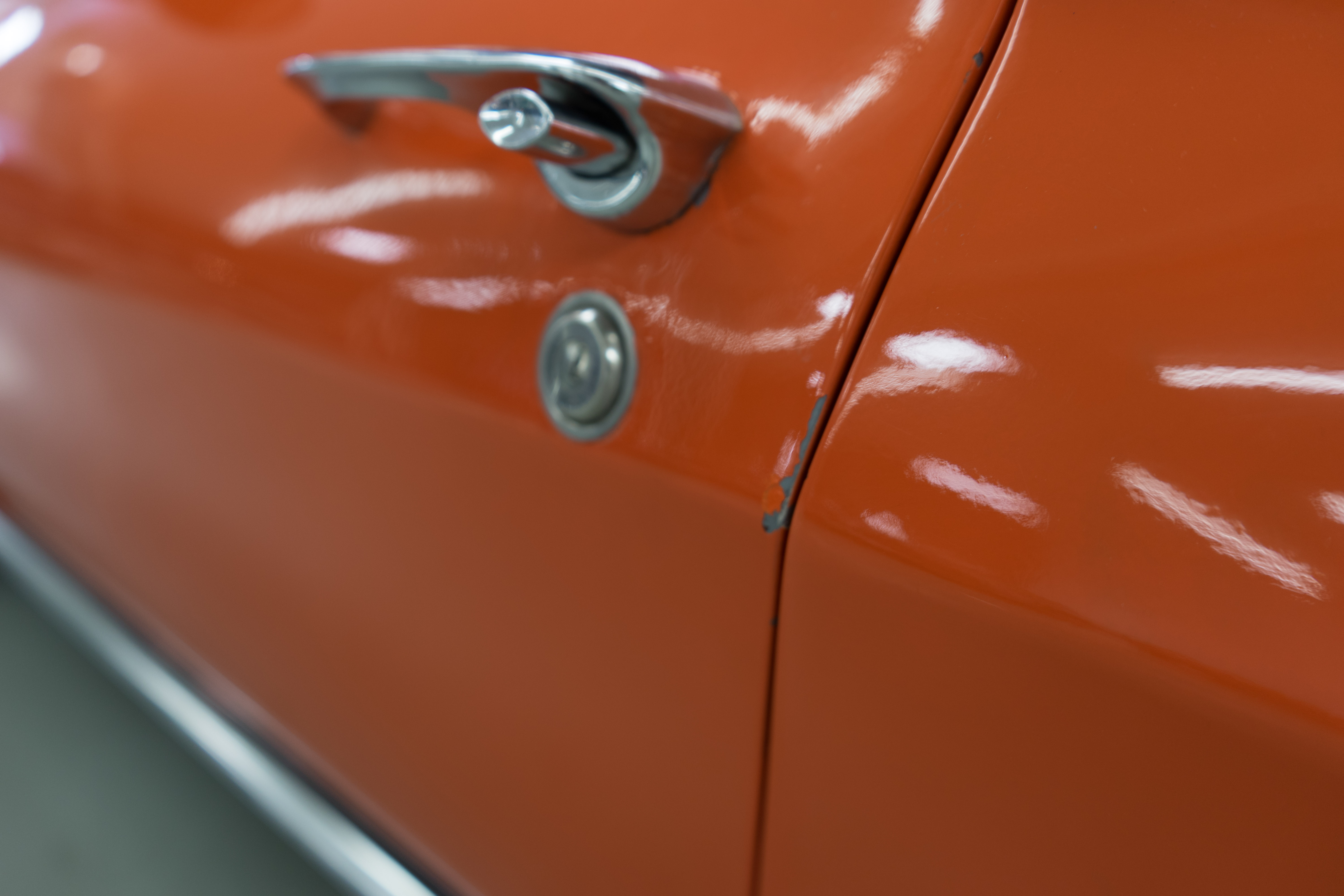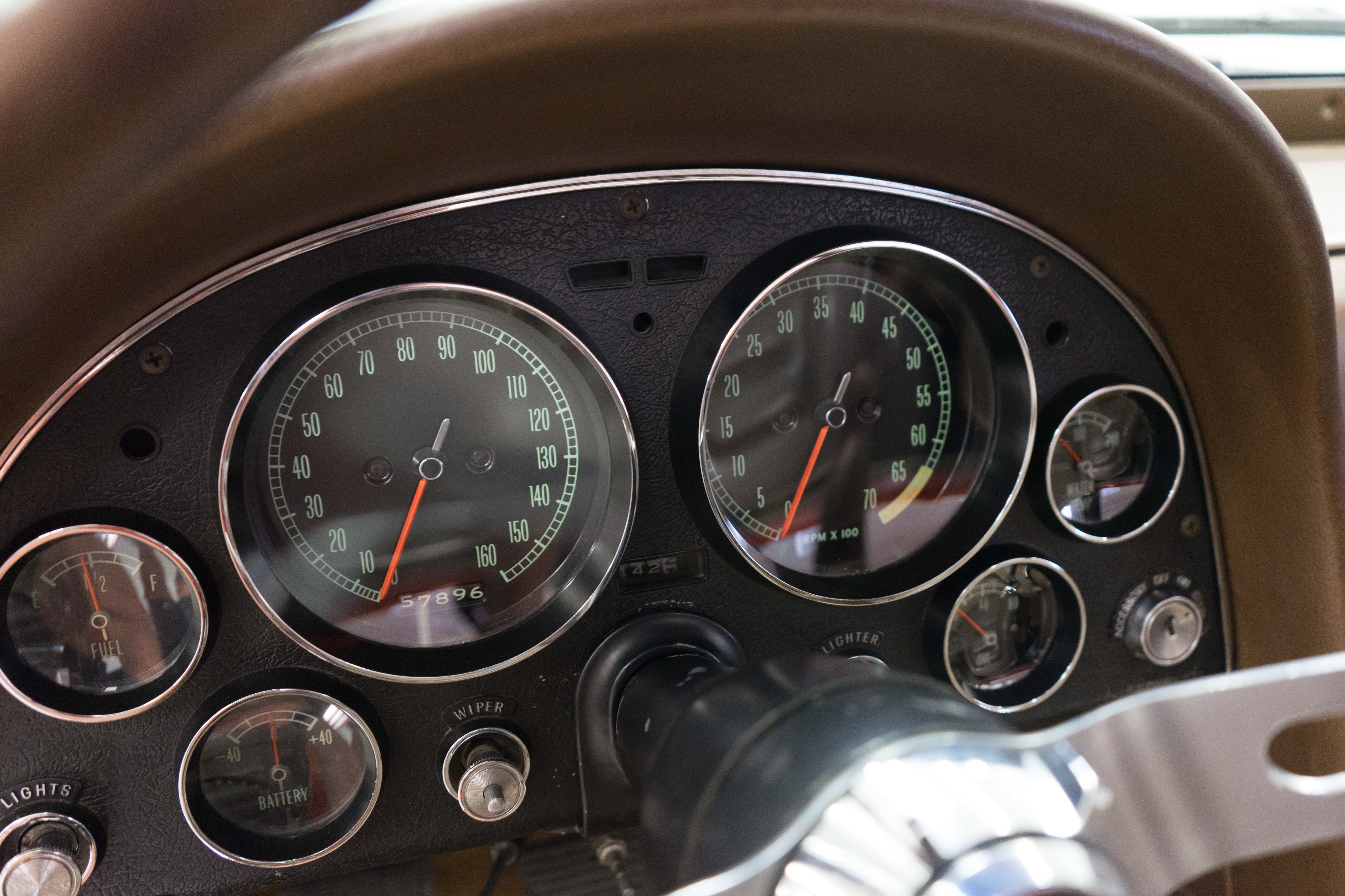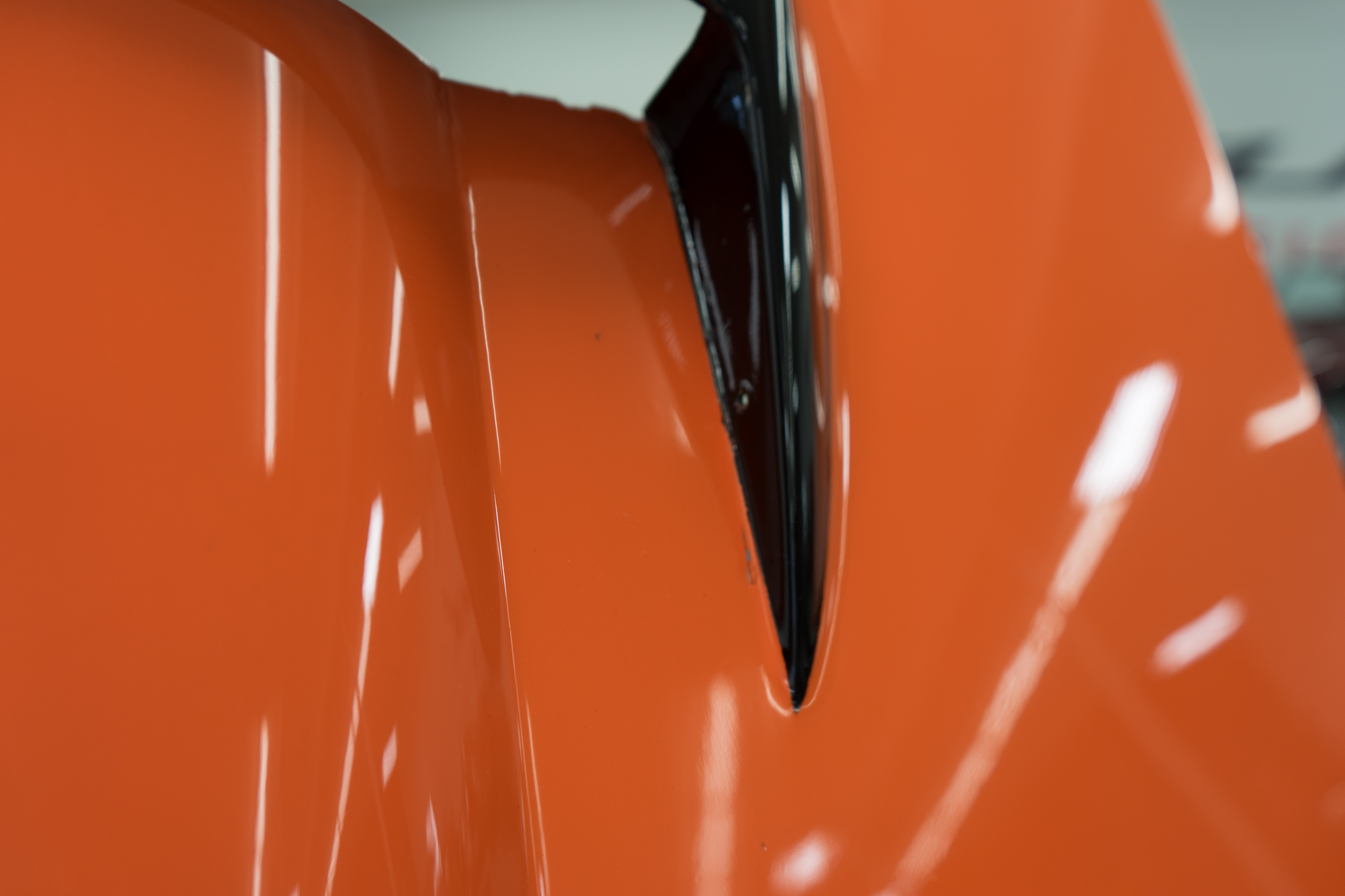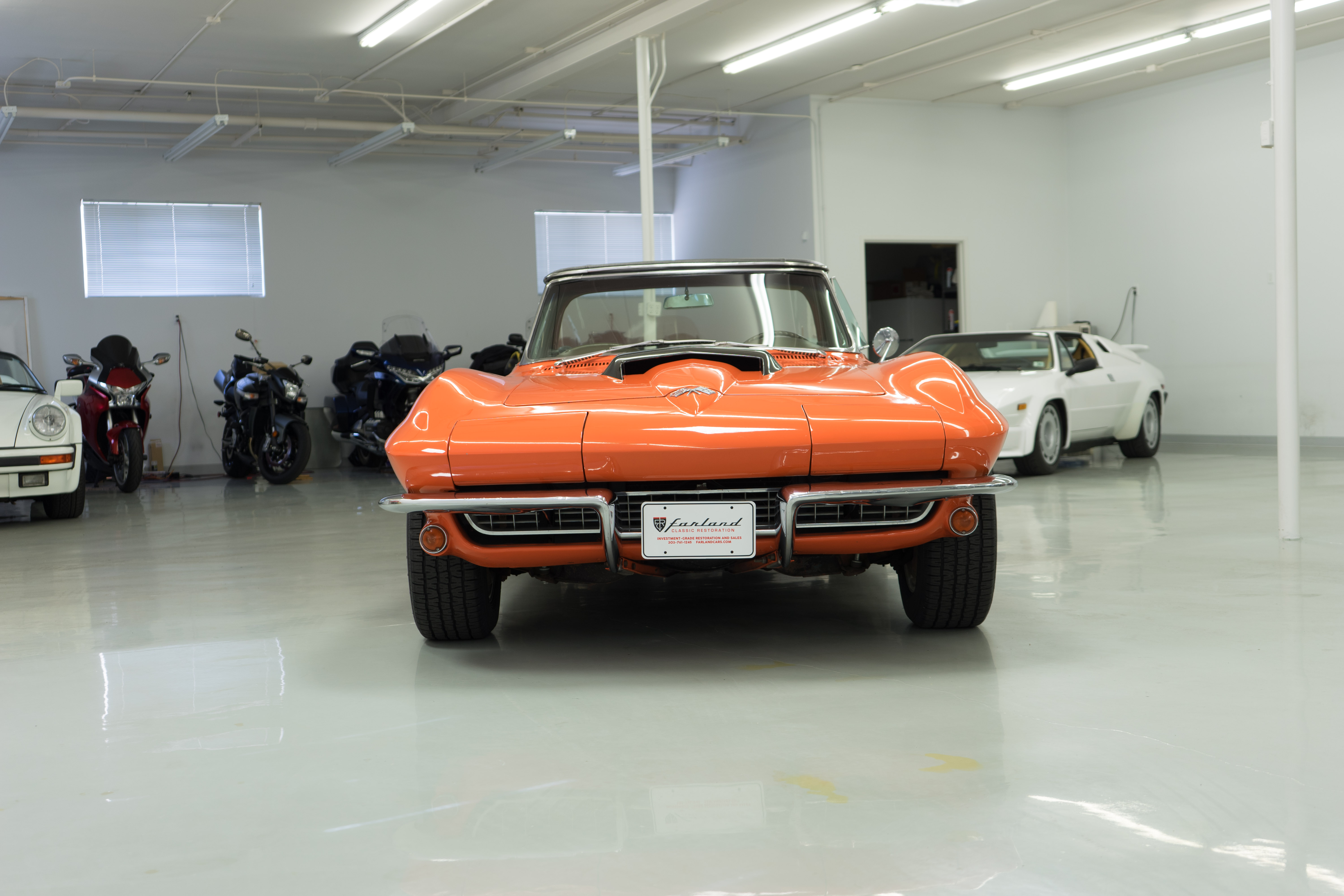 The last paint job was this rather polarizing orange; it still looks reasonably good, but has plenty of minor flaws and begs to go back to the original Glen Green…or Black, or red or whatever you happen to like. Obviously, it’s the car’s biggest weakness, but has been compensated for in the price. Consequently, it presents a great opportunity for someone who is handy and likes to do detailing work to get rid of the overspray here & there by putting sweat equity into this very solid C2.Odds & ends: New radial T/As, heater core, exhaust. Tinted windshield & hardtop window nice & clear, new shocks, factory telescoping column w/teak wheel, original radio, clock works (!) and there’s a big file of receipts & documentation that go with the car showing new clutch & synchros (7K miles ago) and a strong compression test 3K miles ago. A killer ’65 L76 is an $80,000+ car today, so there’s lots of room to grow the car’s value and you can enjoy it as the project proceeds. Very desirable original specs, matching numbers and ‘way under market—that doesn’t happen often!
