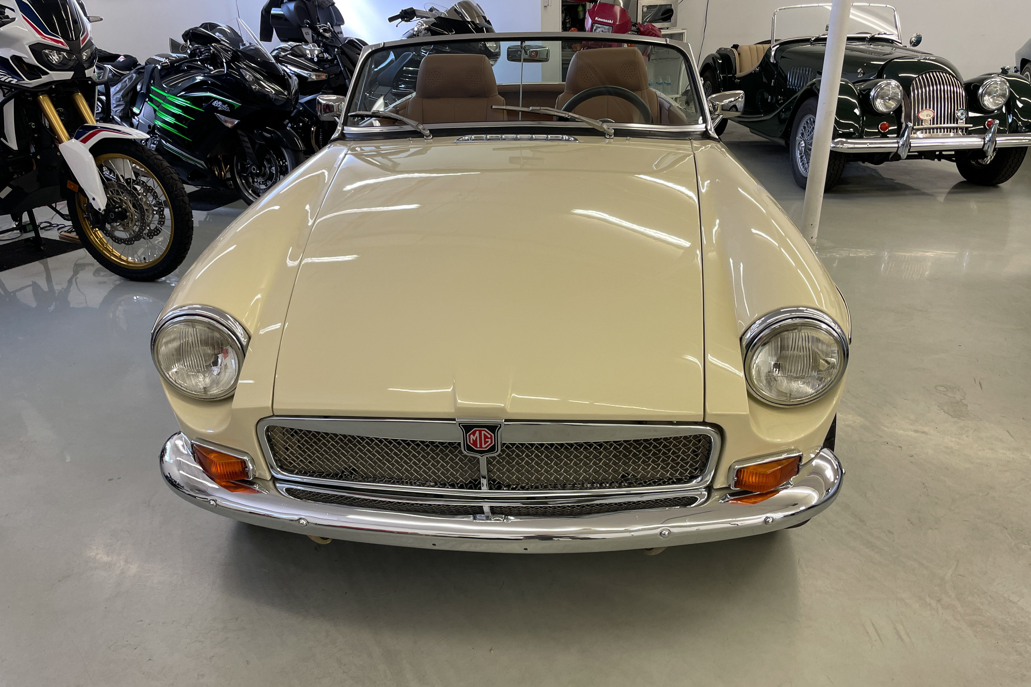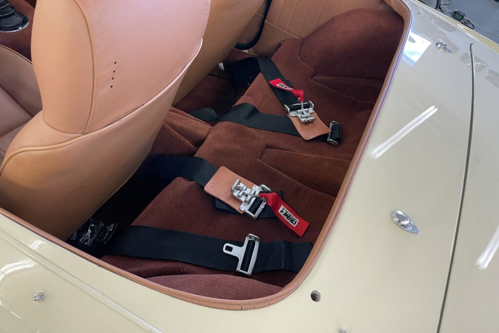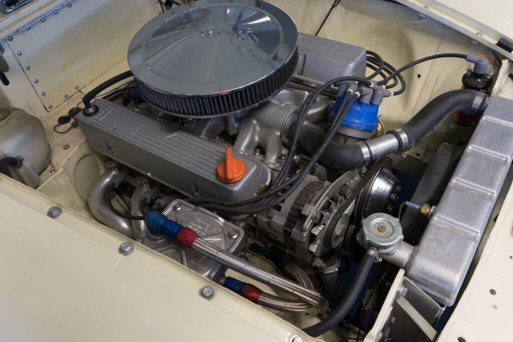 This custom build was not some amateur backyard ‘stuff-a-V8-into-an-old-MG’ shade tree project. The bodywork was carefully modified to accommodate the new engine, headers, heavier drivetrain and wider wheels, but done so subtly that the car still looks stock. It has a Rover (Buick) aluminum V8 that has been professionally blueprinted and uprated for increased power from its now-308 cubic inches.