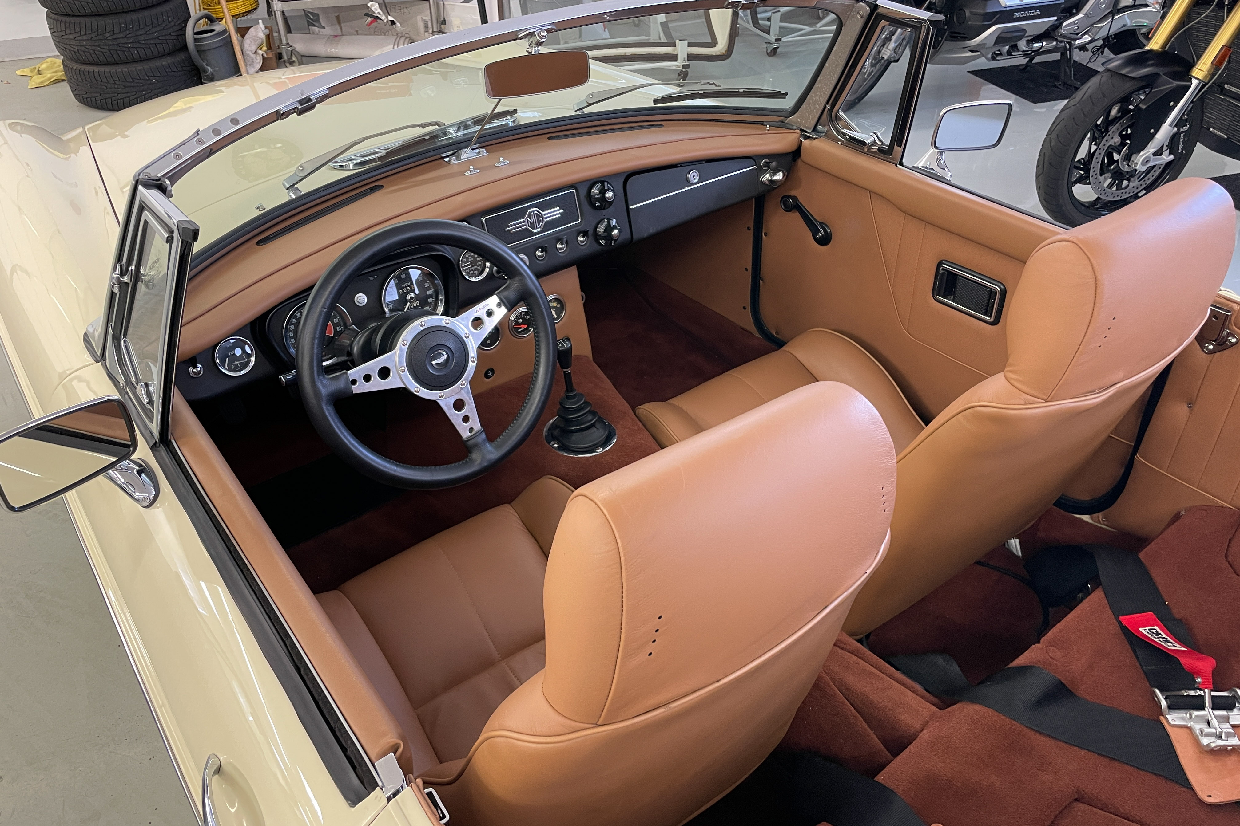 The car has a T5 5-speed transmission with appropriate ratios for searing acceleration and comfortable cruising on the highway, plus the clutch, driveshaft and limited-slip diff have all been upgraded with heavier-duty components than the stock MG had.