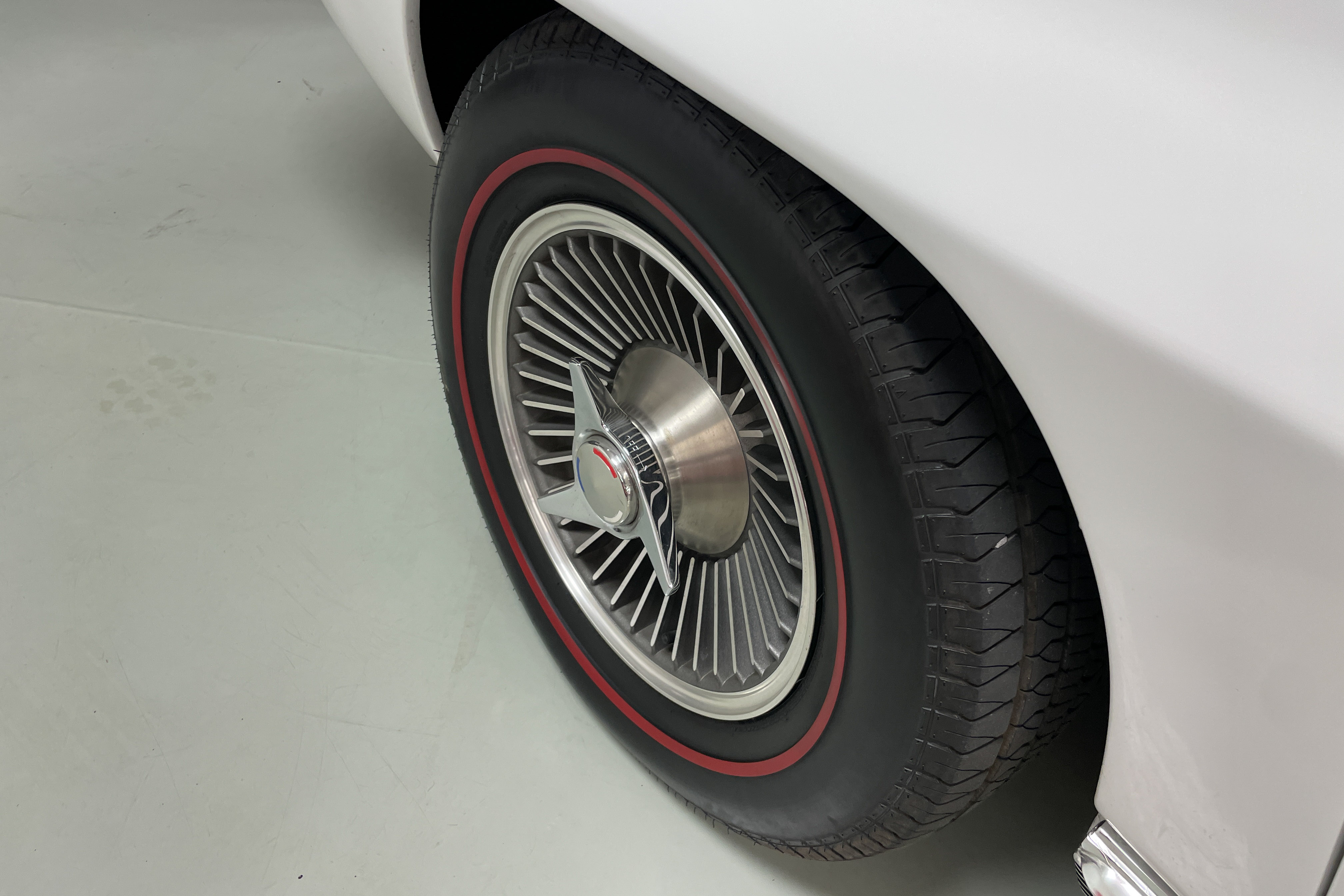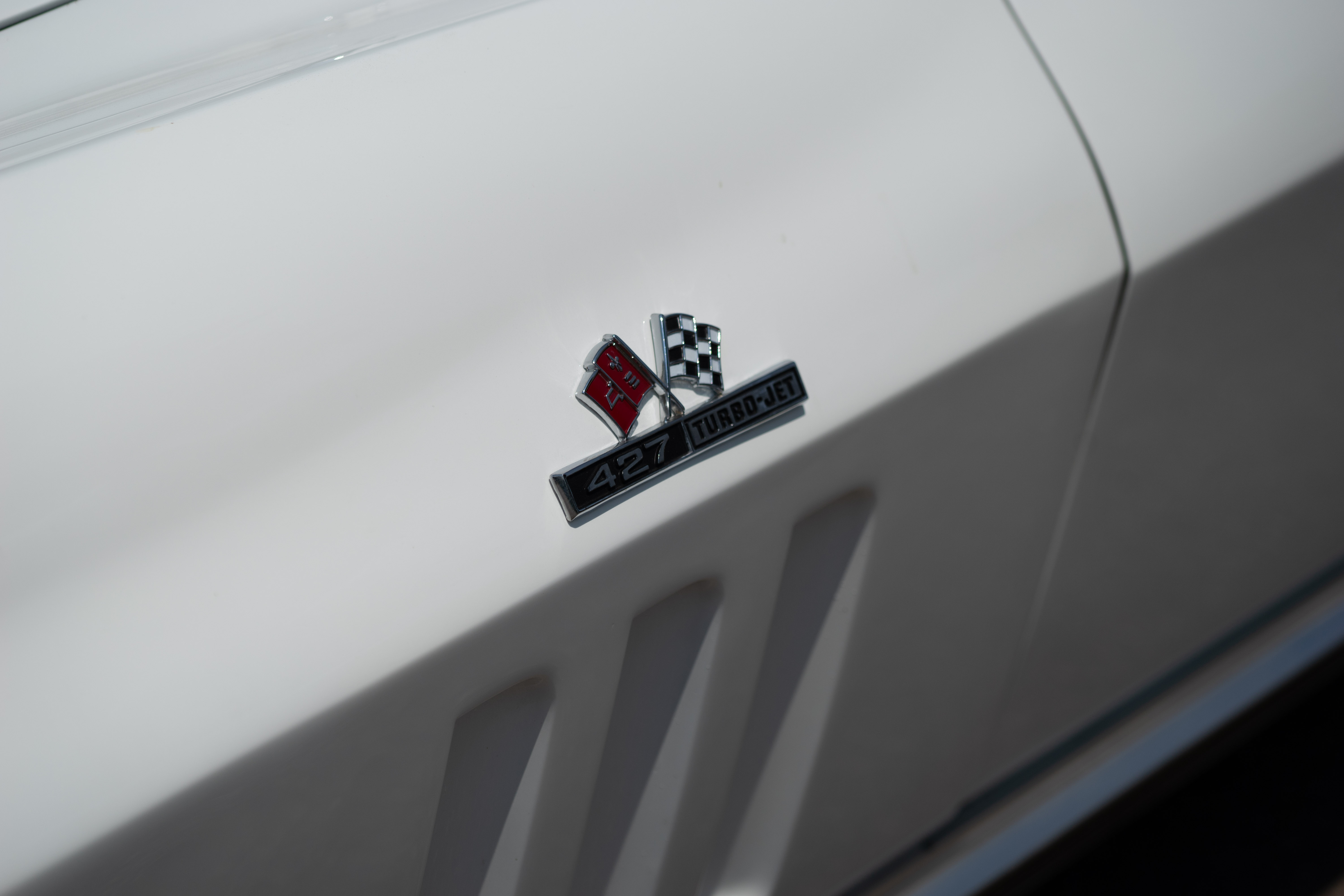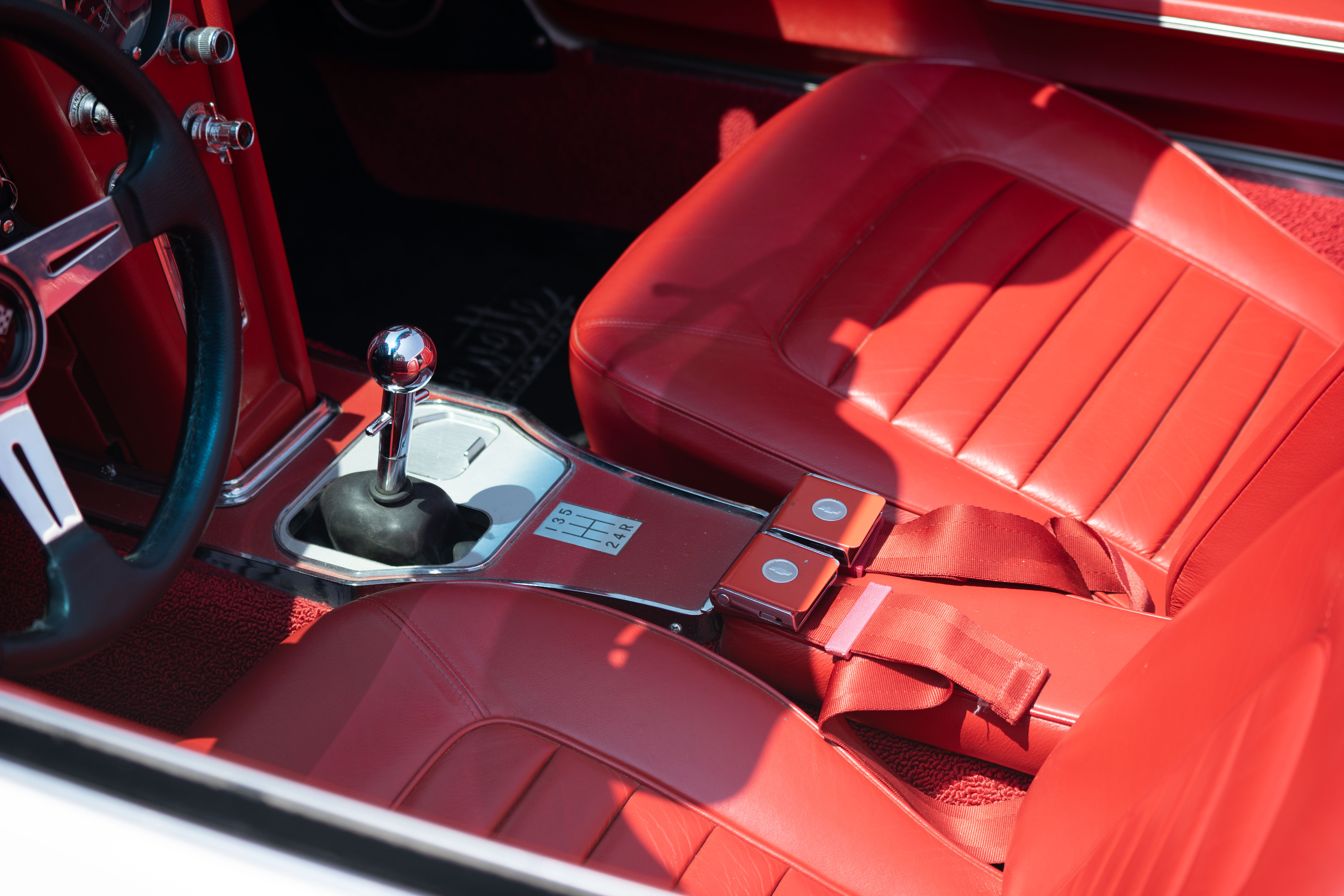 This roadster was an original 427 car, but has been upgraded with many improvements that actually make it a nice cruiser. It has electric power steering so it’s easy to park, Holley fuel injection gives it instant starting, clean running with no fussiness and an oversized aluminum cross-flow radiator keeps things cool. A Tremec 5-speed transmission keeps the revs down at highway speeds and there are no noisy side pipes to give you headaches and scorched ankles.