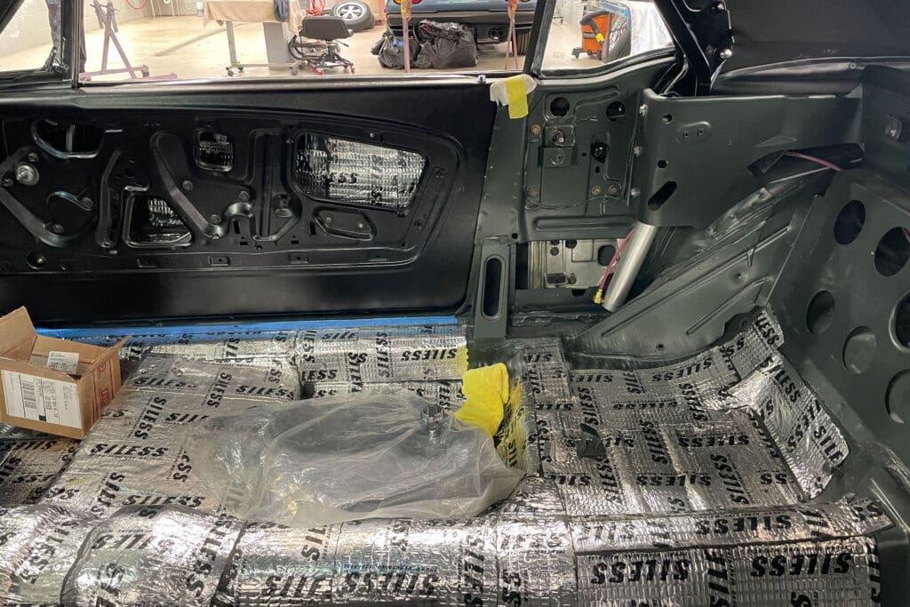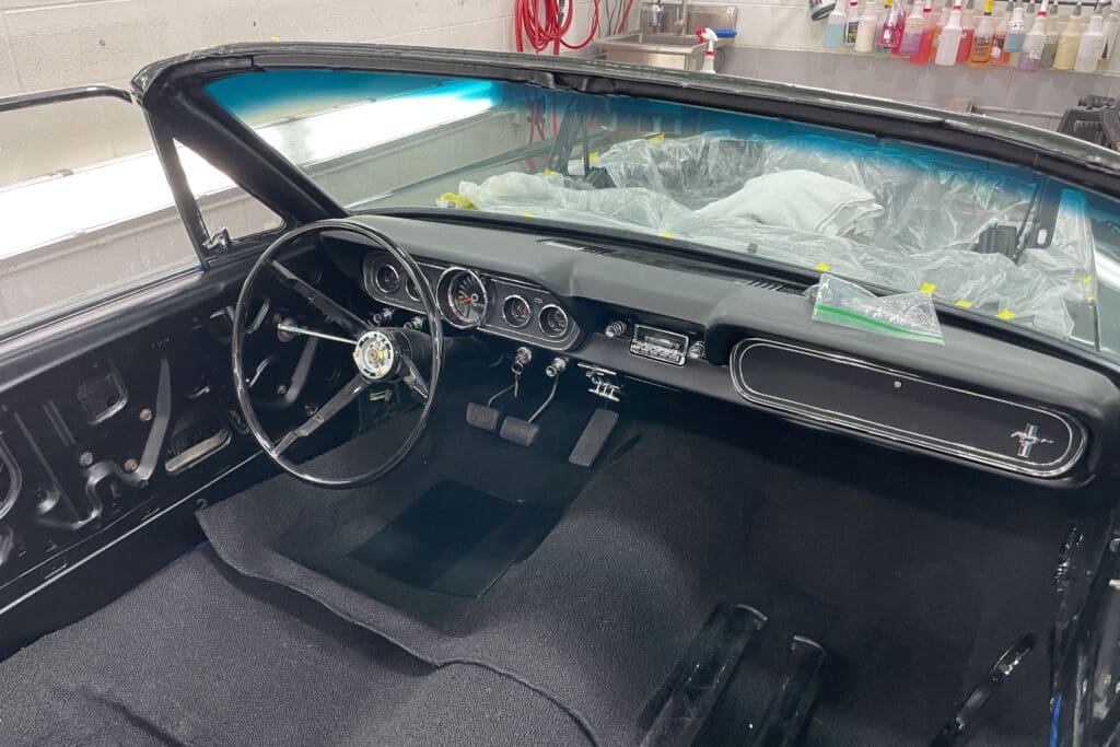 Our expert technician has been reassembling this American classic. Thousands of parts, all labeled correctly, will be put together like a giant puzzle. Extensive sound-deadening mat was installed on the interior. Also the ragtop has been installed. Assembly is nearly complete. Soon will be shakedown to make sure it’s running JUST right.