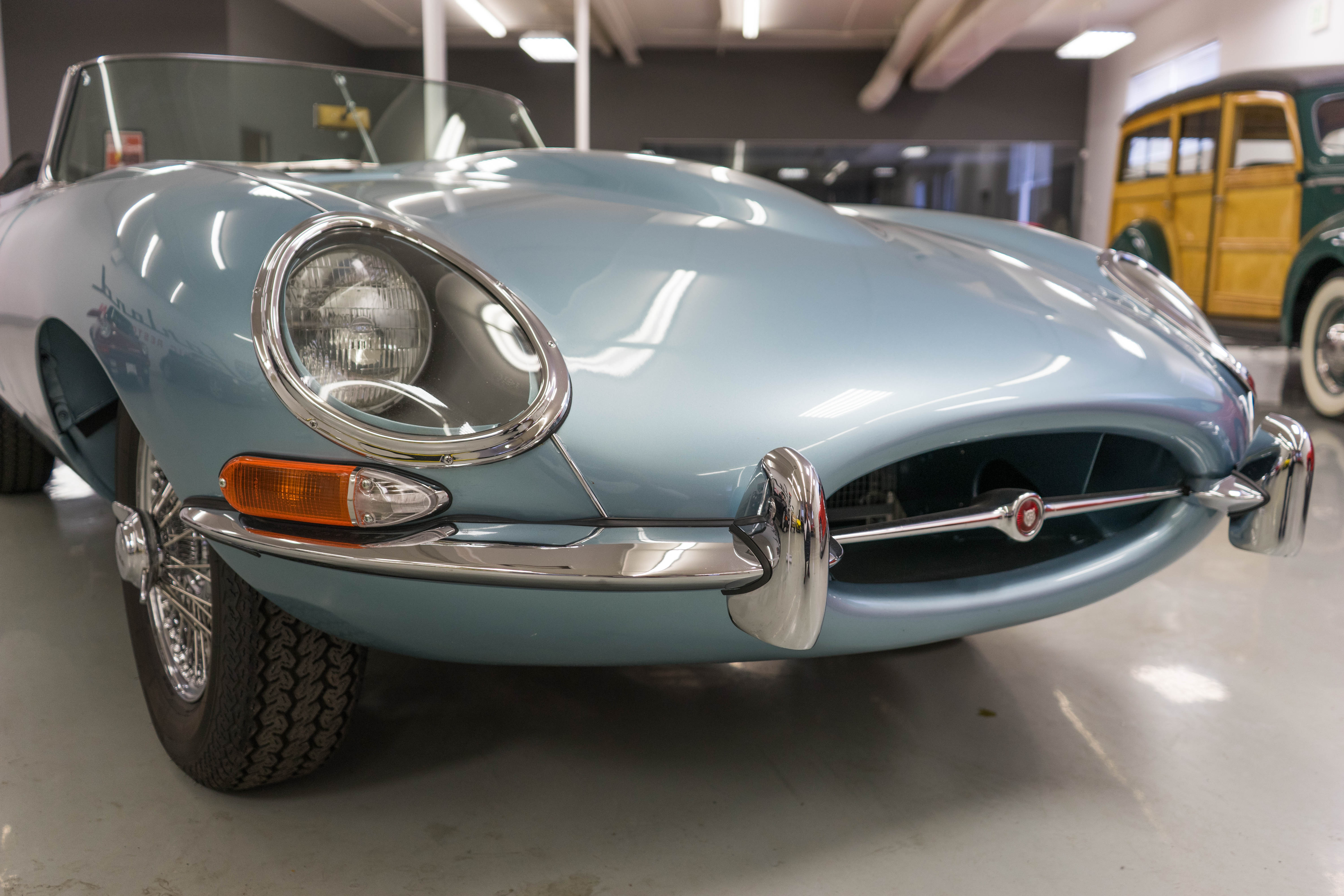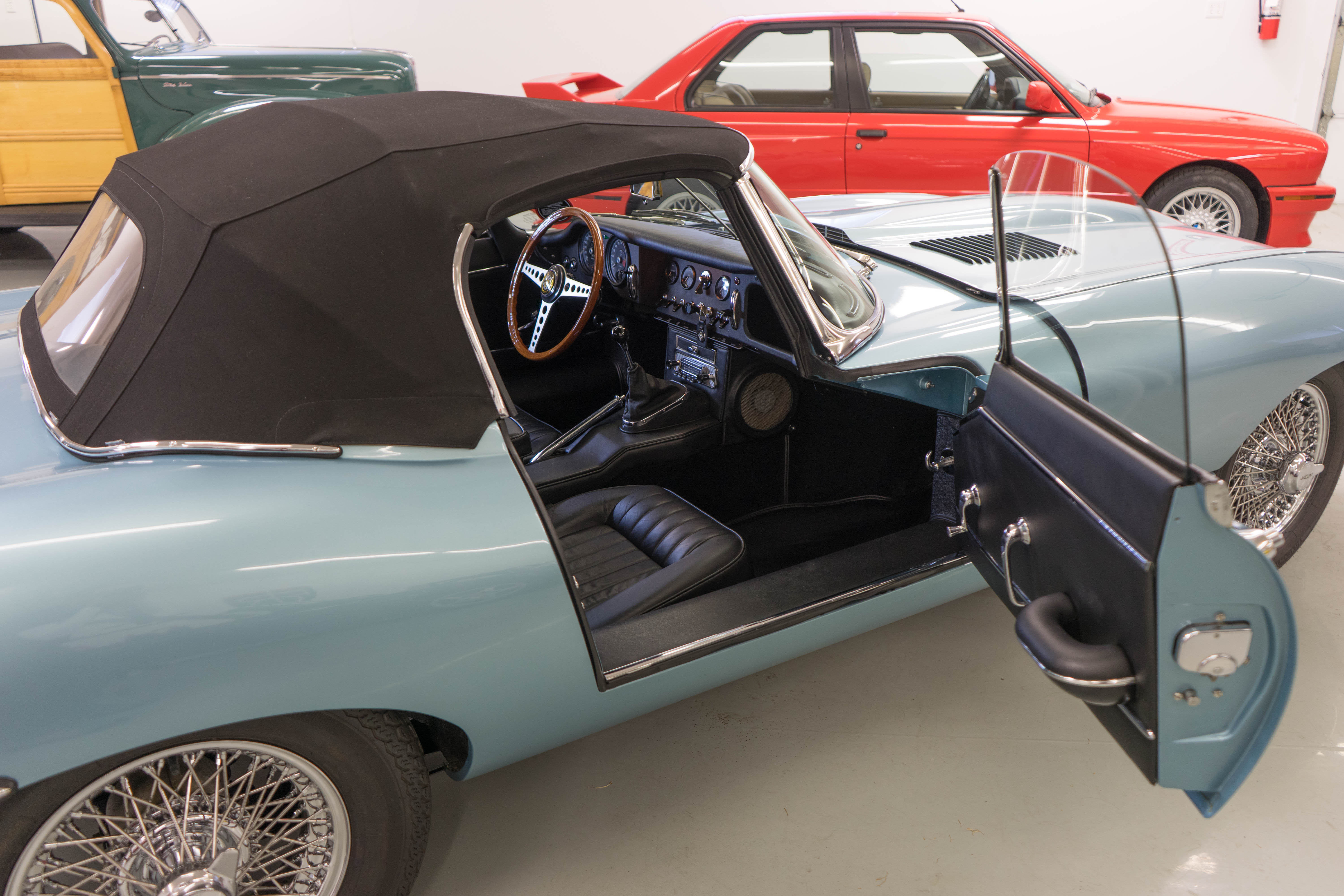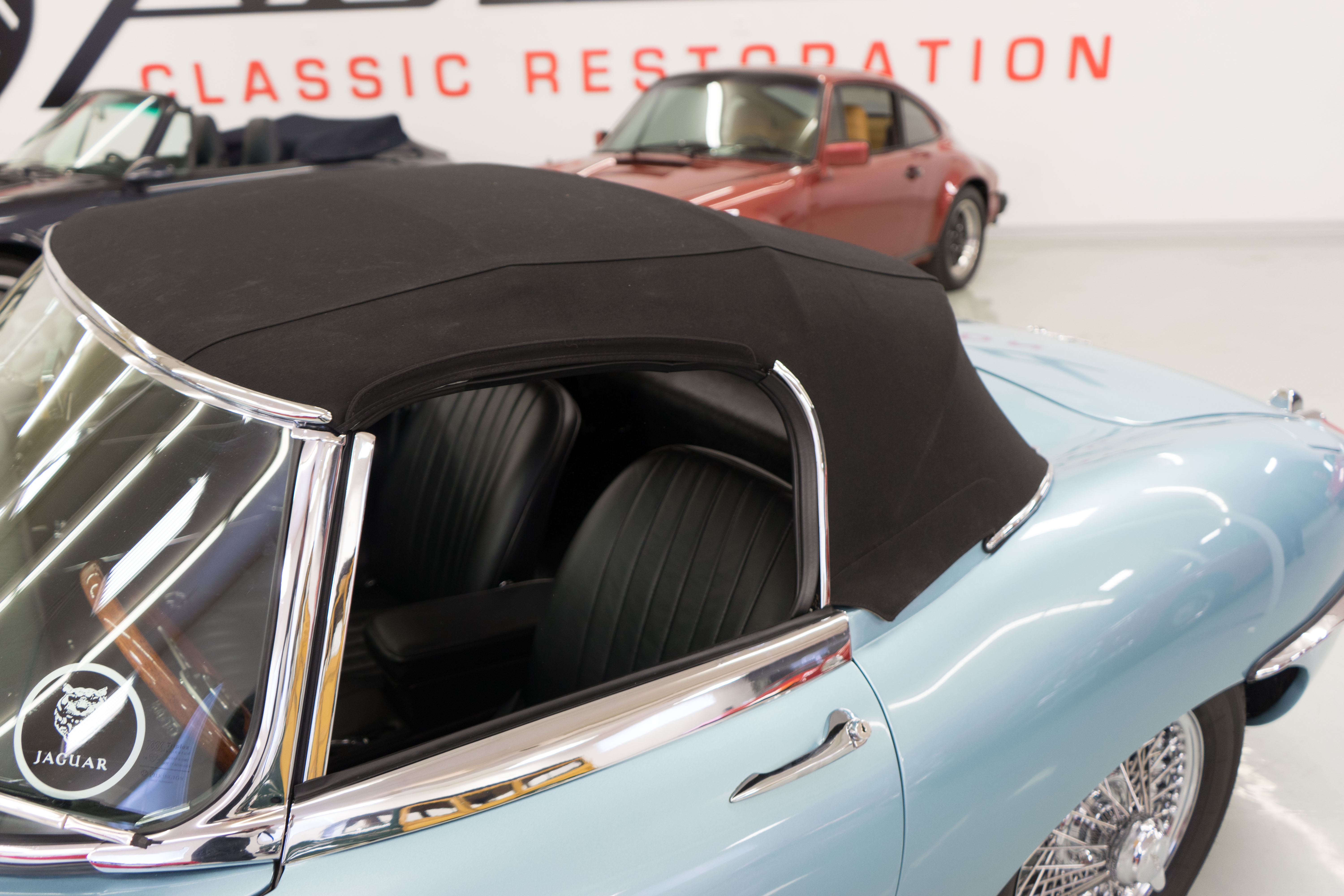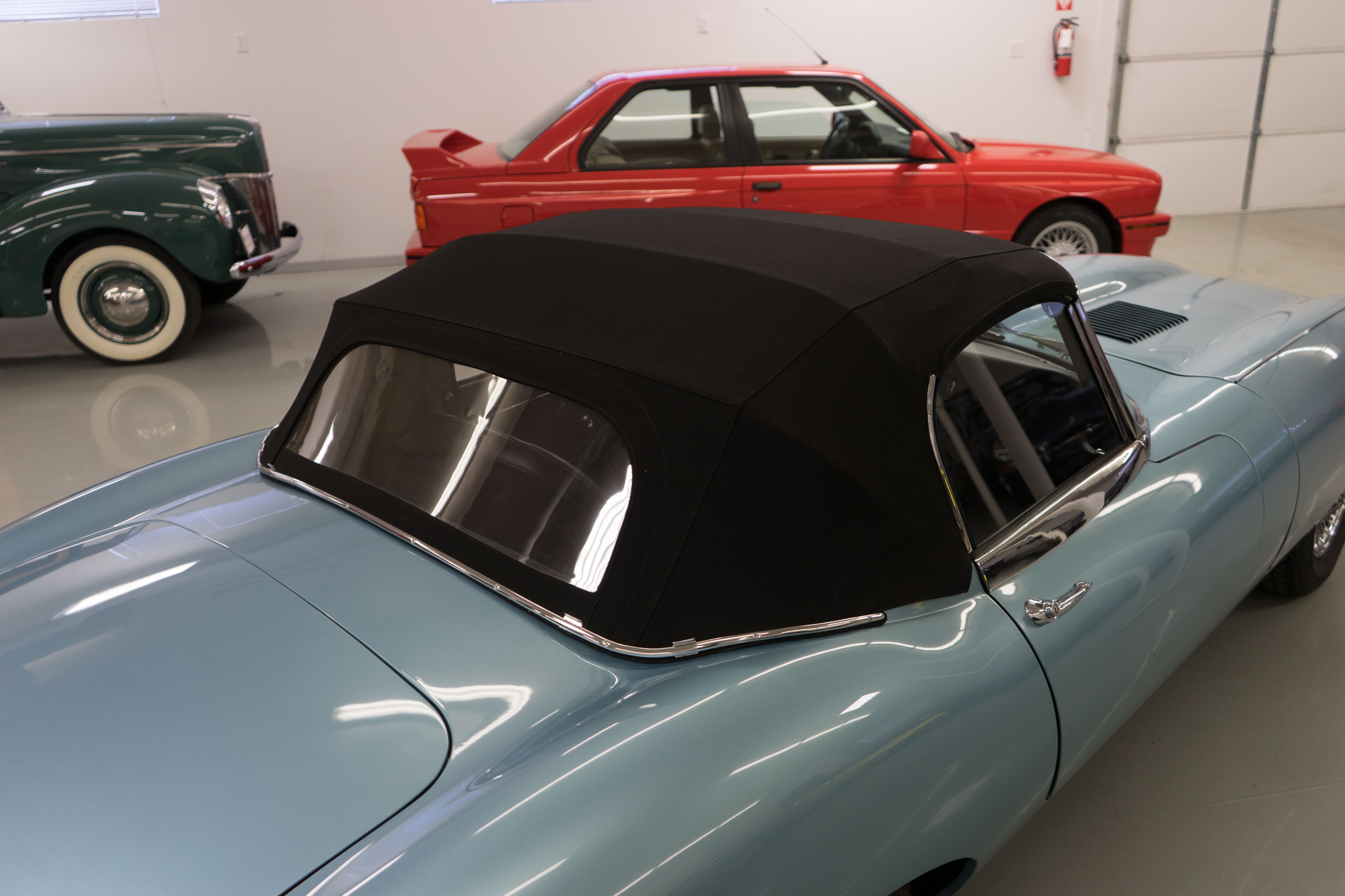 Beautifully restored E-Type roadster that has consistently scored near 100 points in JCNA concours events. Coming to us out of 49-year local ownership, the car is spectacular in its original ‘Opalescent Silver Blue Metallic’ color, as documented by the Jaguar Heritage Trust Certificate. The original engine and cylinder head numbers match the certificate and the car has its original owner’s books, tool set and many included extras.