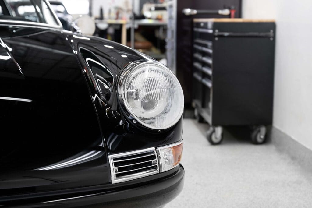Its next destination? Back to us, where we are now completing interior, electrical including new sound system, sound deadening and much more. Speaking of interior, this was nearly all completed in-house by our expert trimmer. Now, our detailer is putting the finishing touches on this semi-custom Porsche classic that will soon be electrifyingly fun!