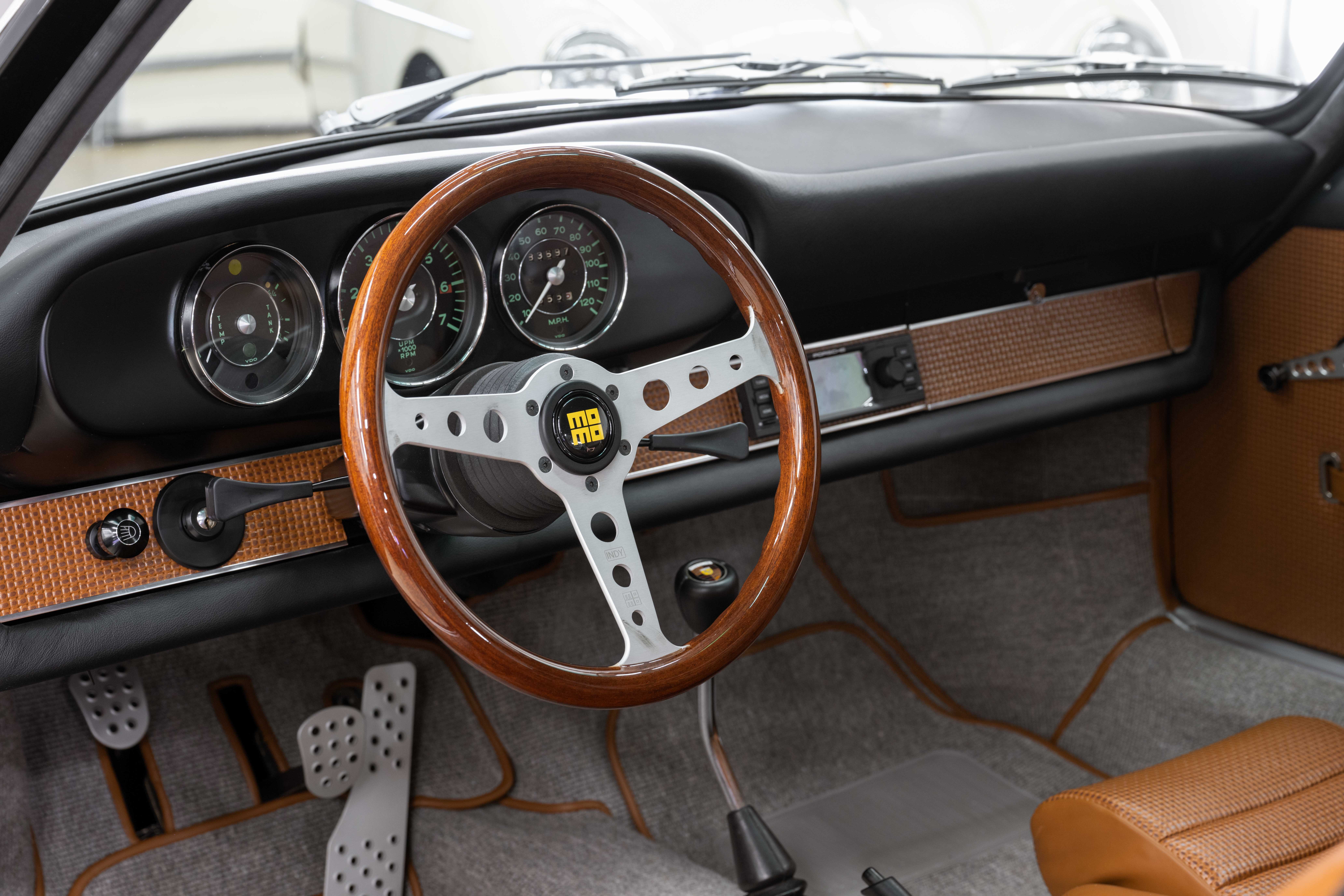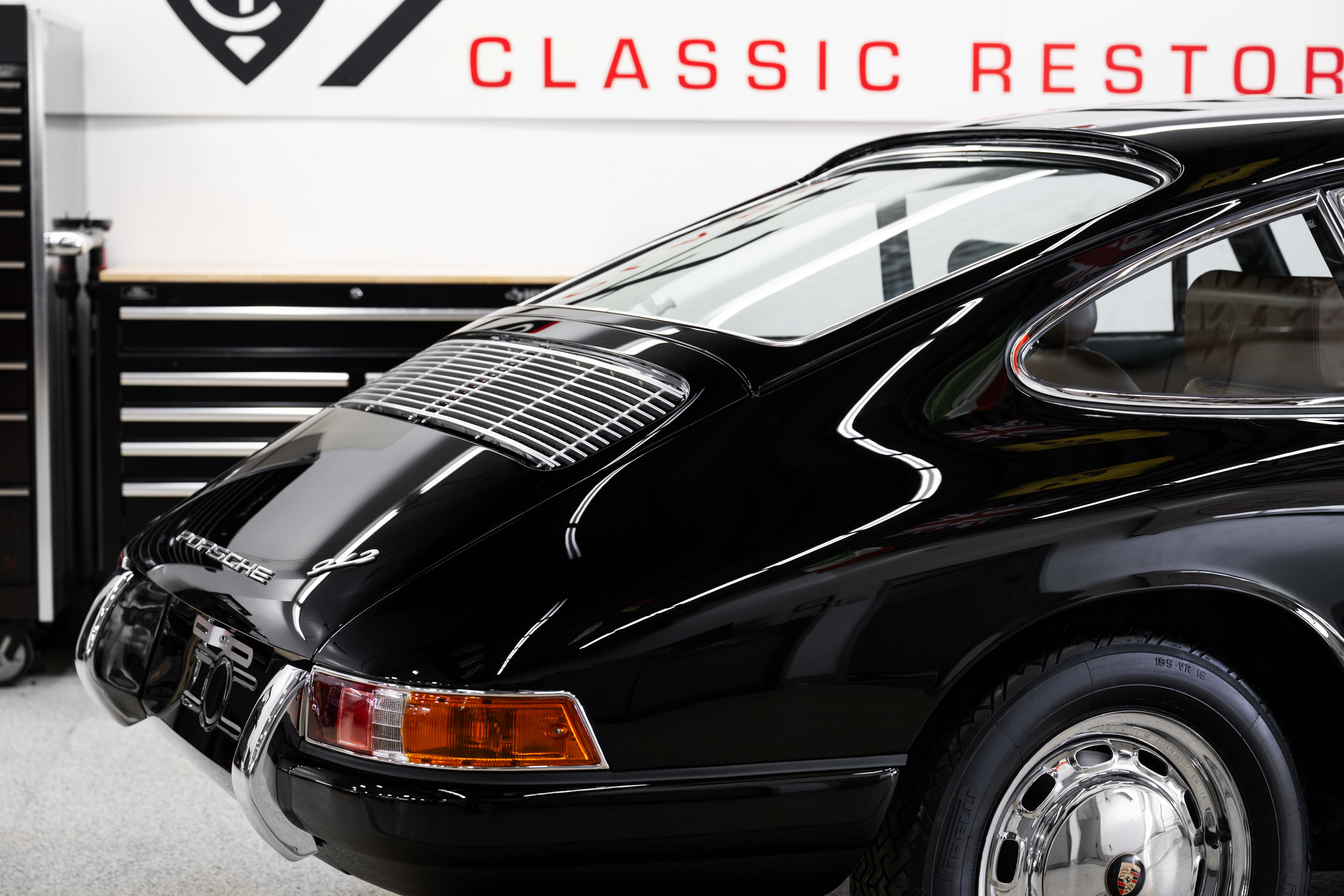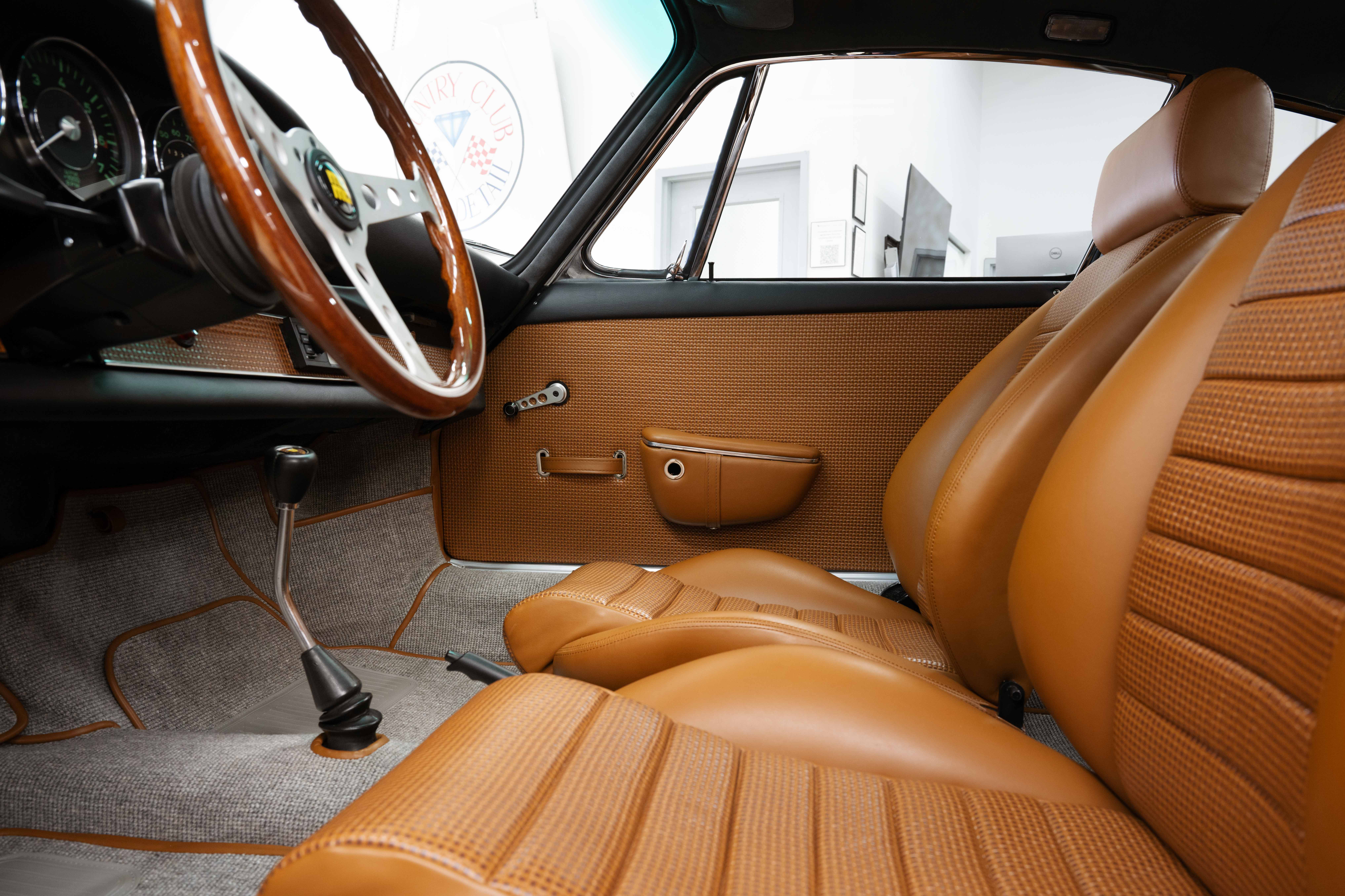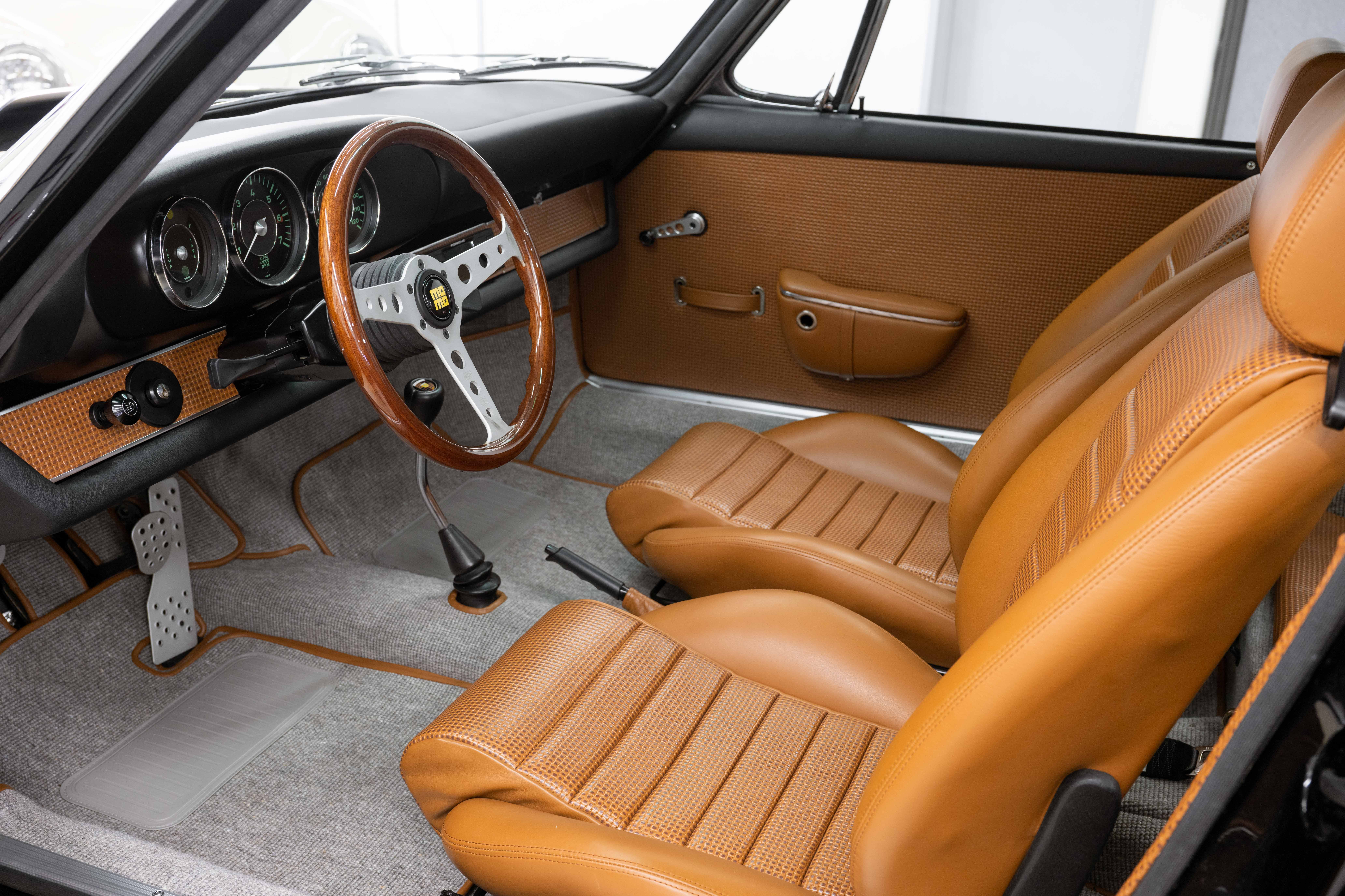 Its next destination? Back to us, where we are now completing interior, electrical including new sound system, sound deadening and much more. Speaking of interior, this was nearly all completed in-house by our expert trimmer. Now, our detailer is putting the finishing touches on this semi-custom Porsche classic that will soon be electrifyingly fun!