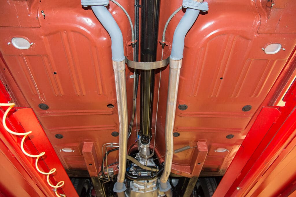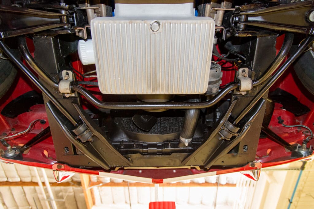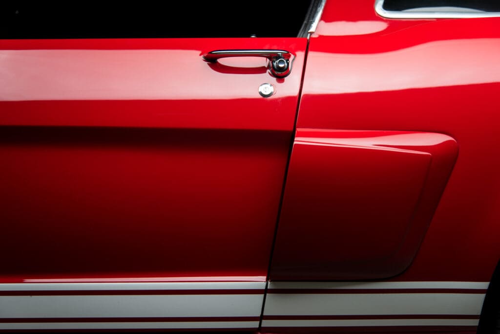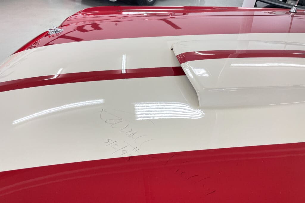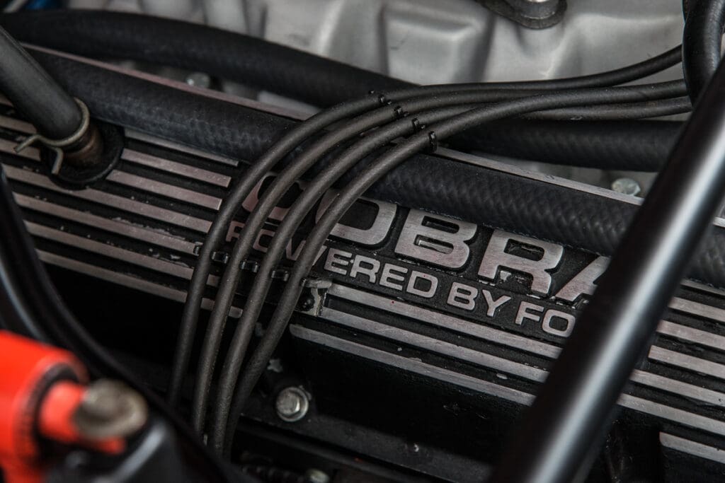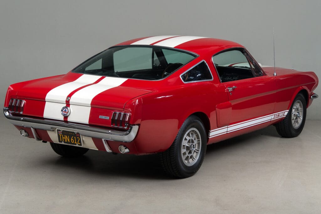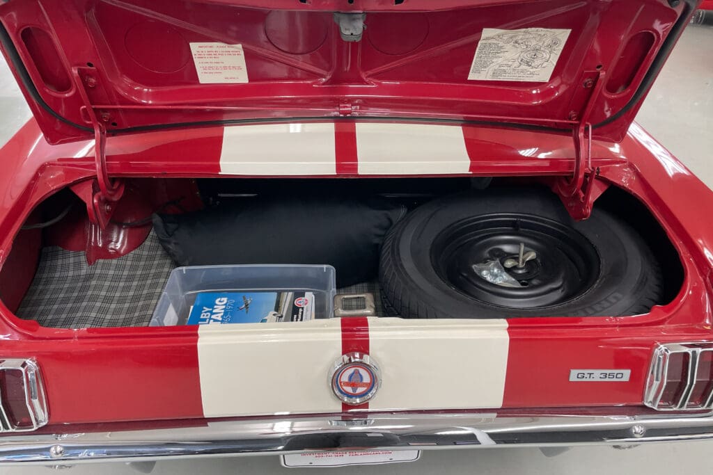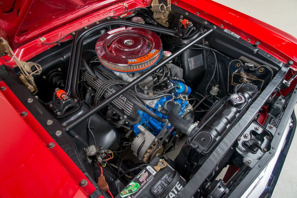 Records indicate it still has its original 289 engine, but the Borg-Warner 4-speed transmission has been replaced with a Tremec 5-speed for more relaxed cruising. (The original transmission is crated and comes with the car). Another change was from the original less-popular Sapphire Blue to the also-available red with white stripes. An exhaustive restoration was carried out by the second owner in the early ‘90s and the car has only covered 3000 miles since. It has the owner’s books and a file of records dating all the way back to 1966. Always in California—never in the rust belt!!