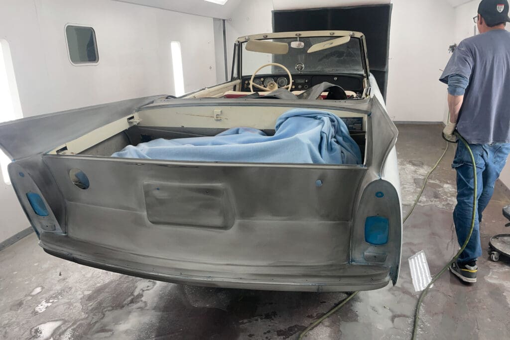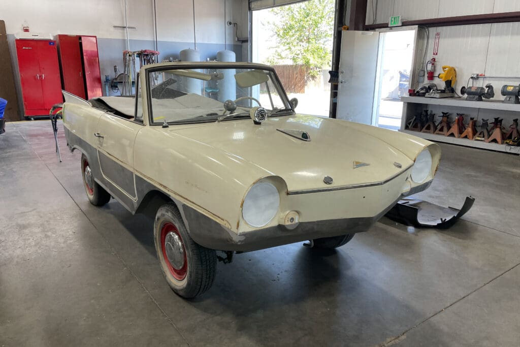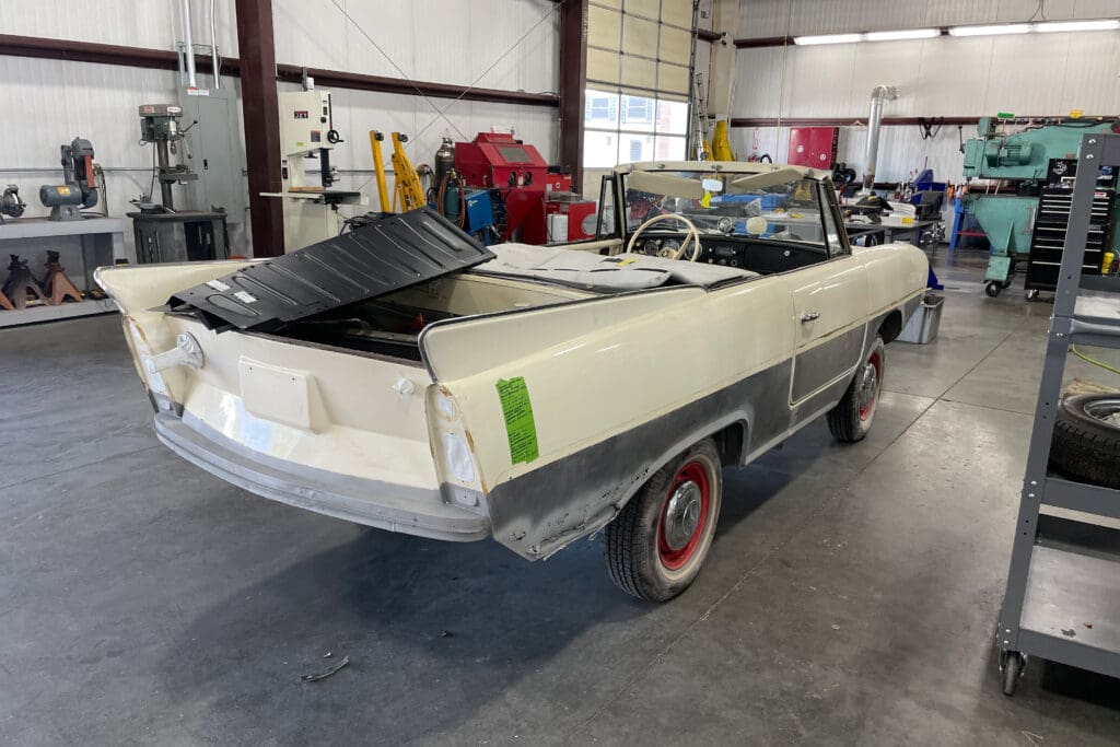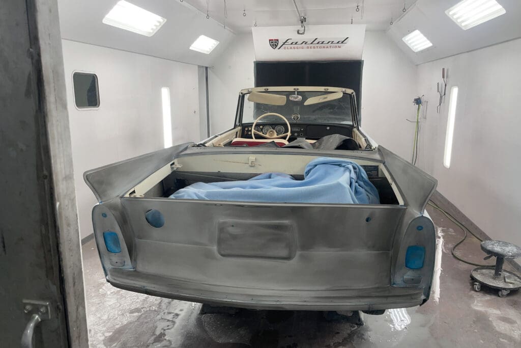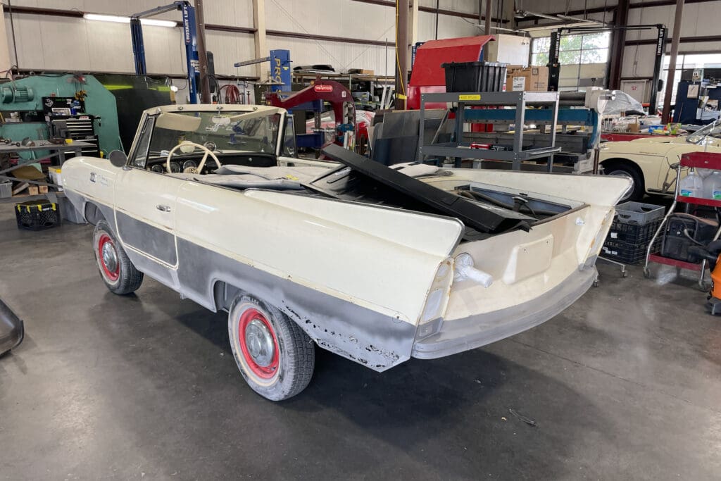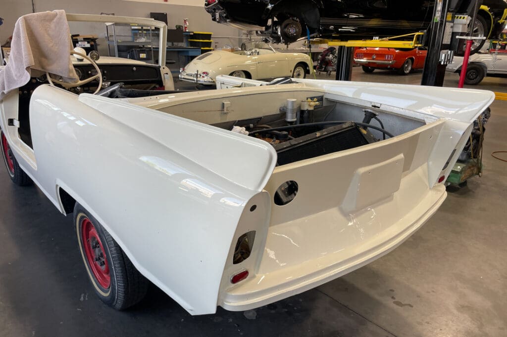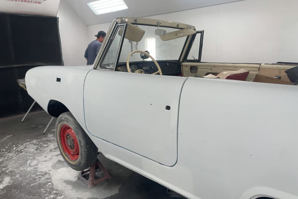 As the pictures show this classic Amphicar 770 had clearly spent some time in the water! Our customer has asked us to perform necessary rust repairs followed by body work and fresh paint. Our skilled metal man completed the rust repairs and final paintwork is also now completed. Reassembly is currently in progress.