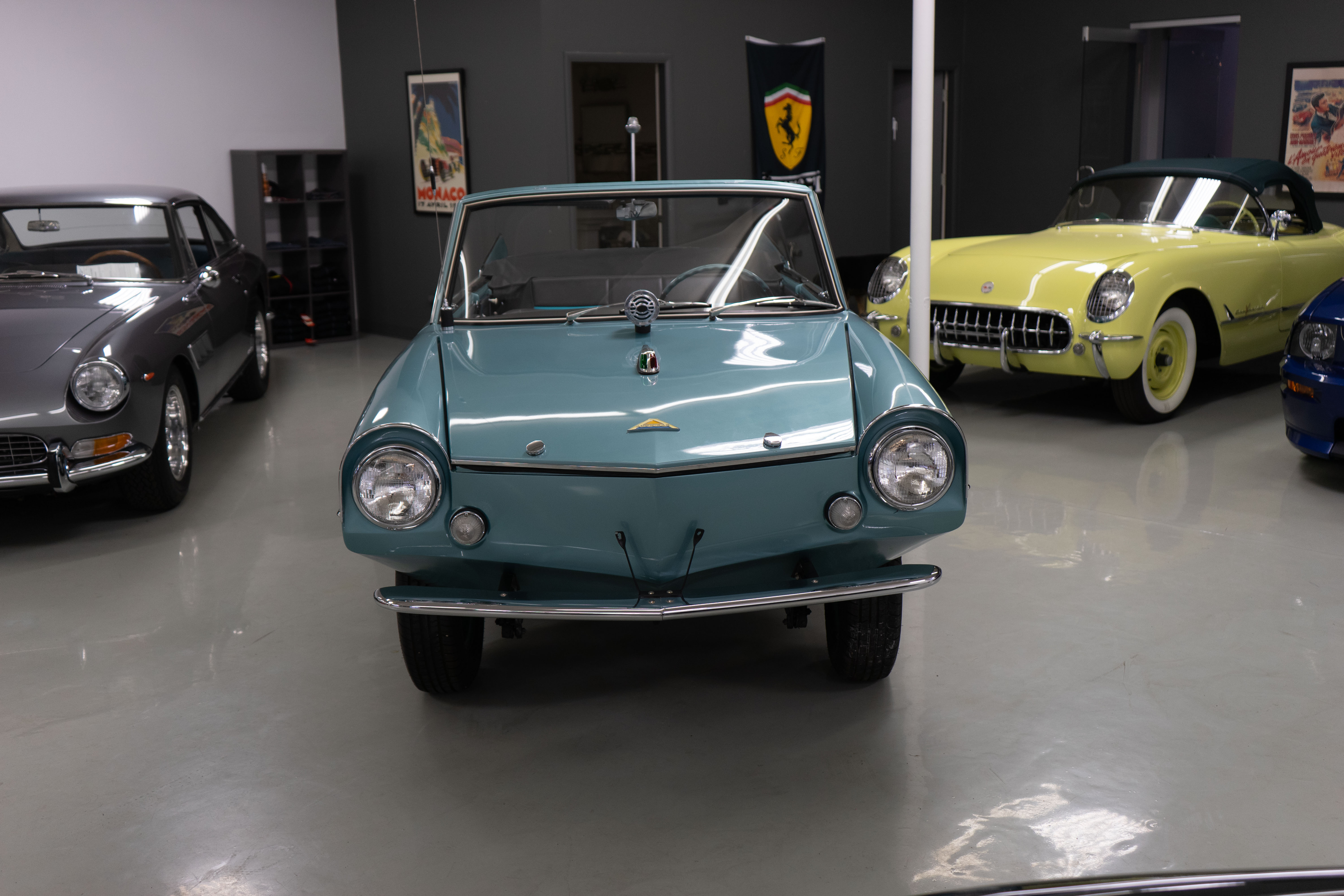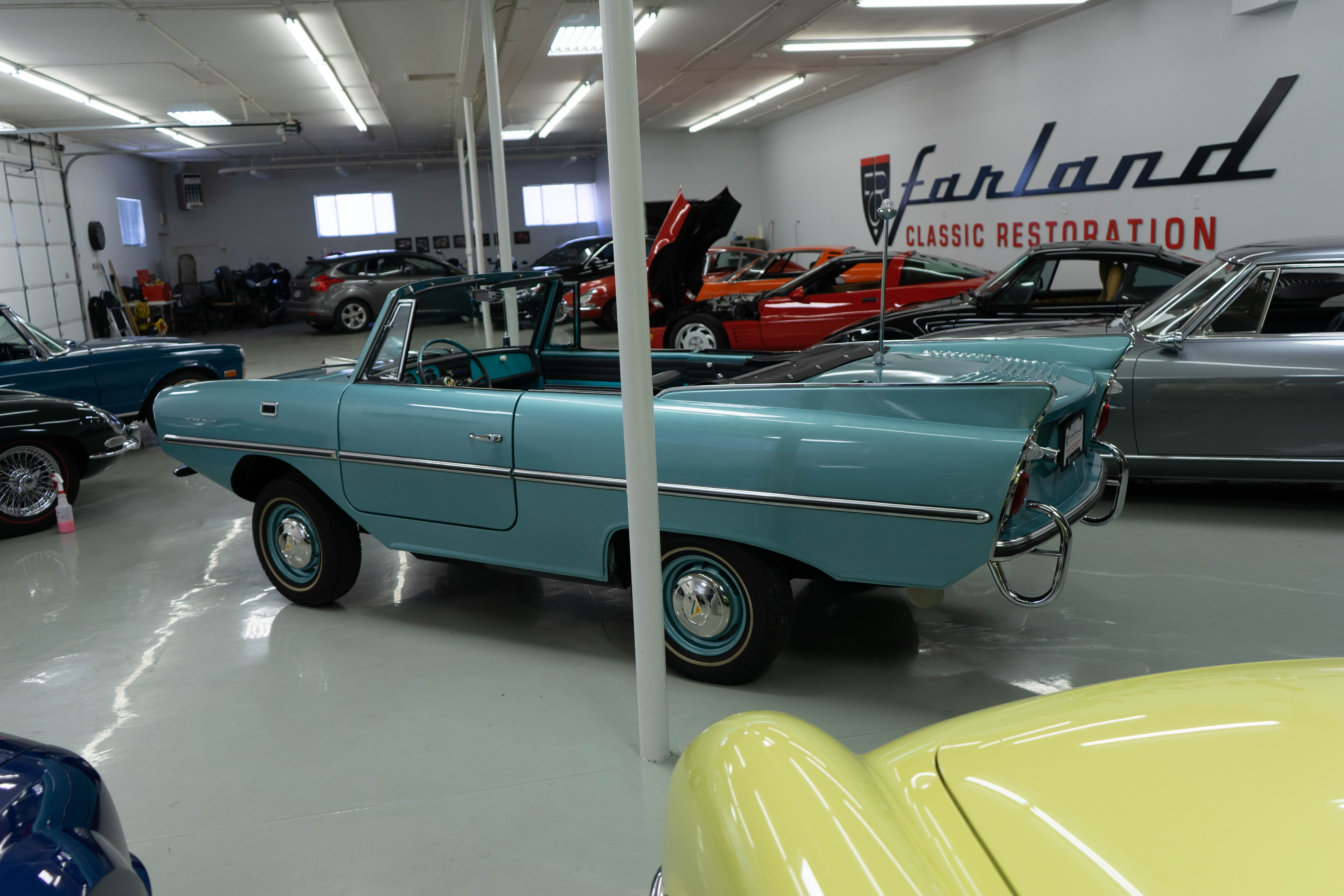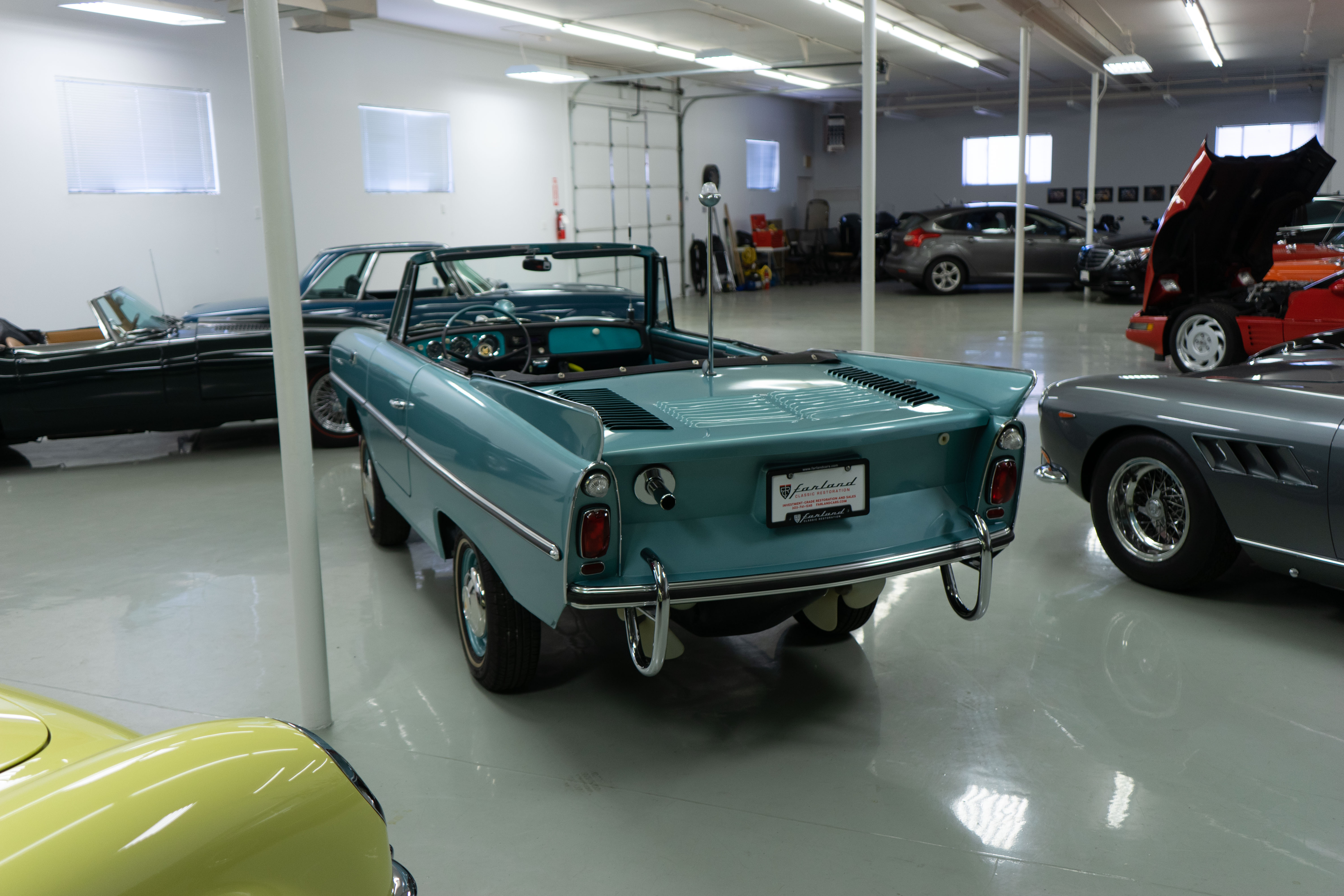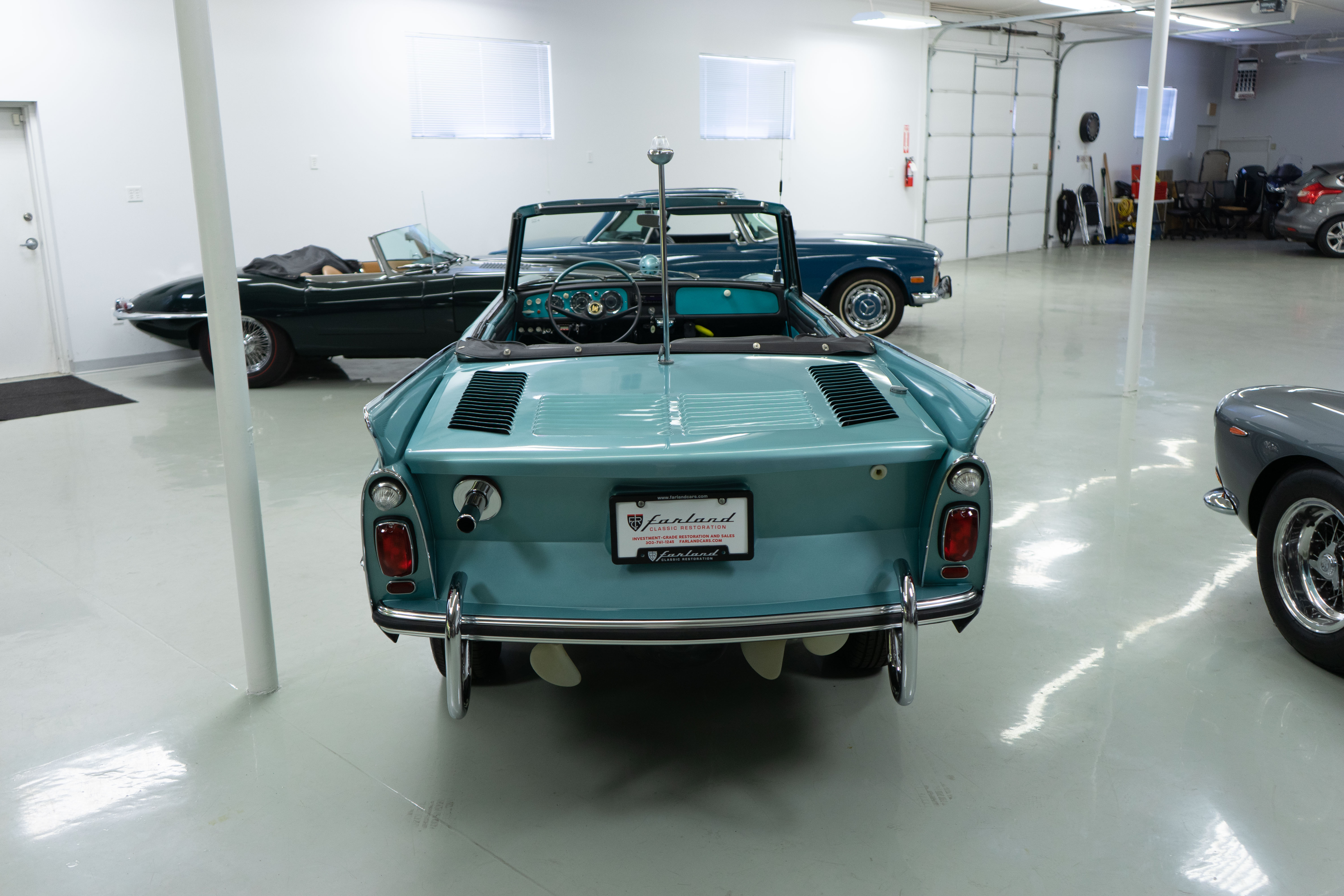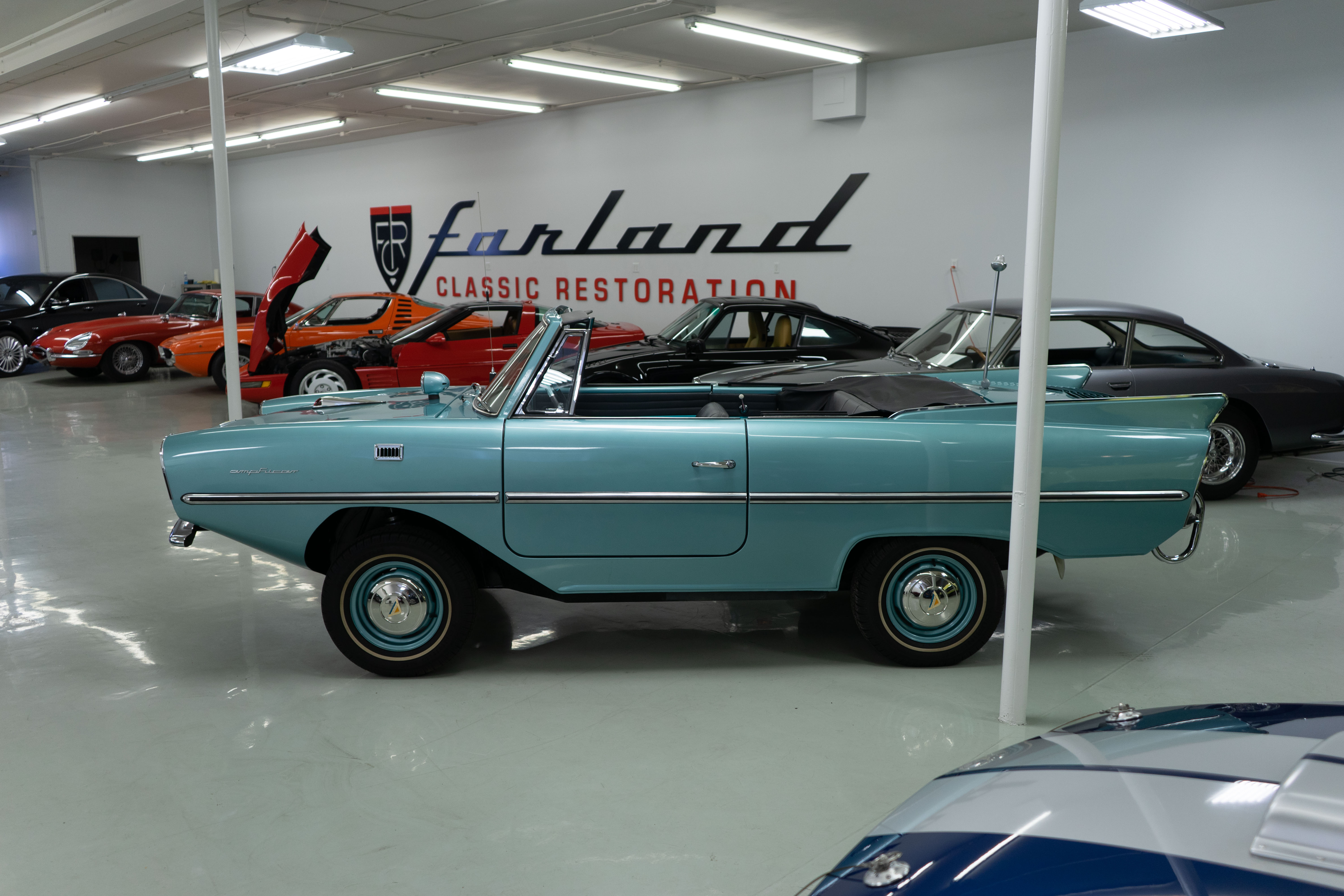 We here at Farland Classics are known for seeking out unusual, exceptional and noteworthy European classic and collectible cars. We have presented our Ferrari, Maserati and Gullwing restorations at Cavallino, Pebble Beach and Amelia Island—and received awards at each. So, naturally we were selected to offer this fabulously restored late-production Amphicar! Owned by the consignor’s family for nearly forty years, it was painstakingly restored to be one of the best and it’s fresh and ready to go!