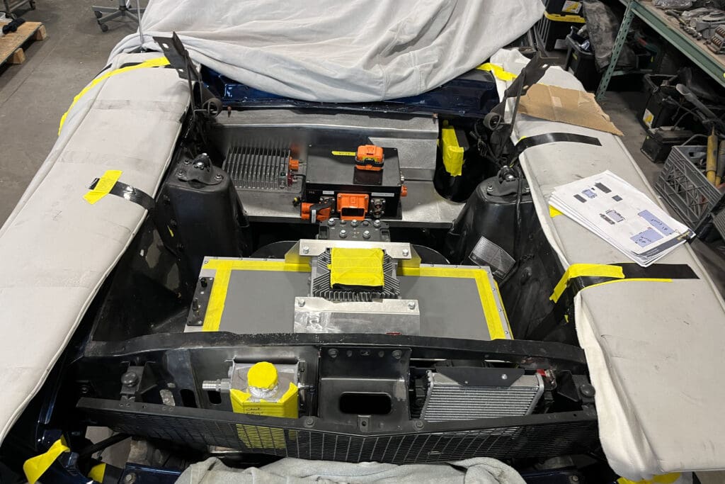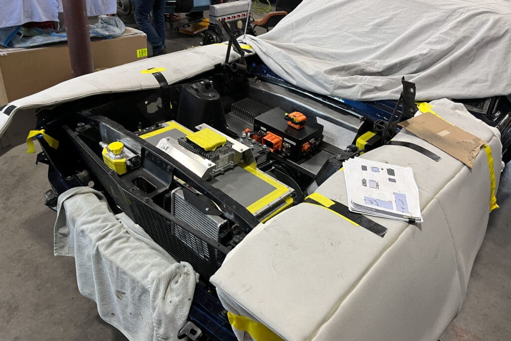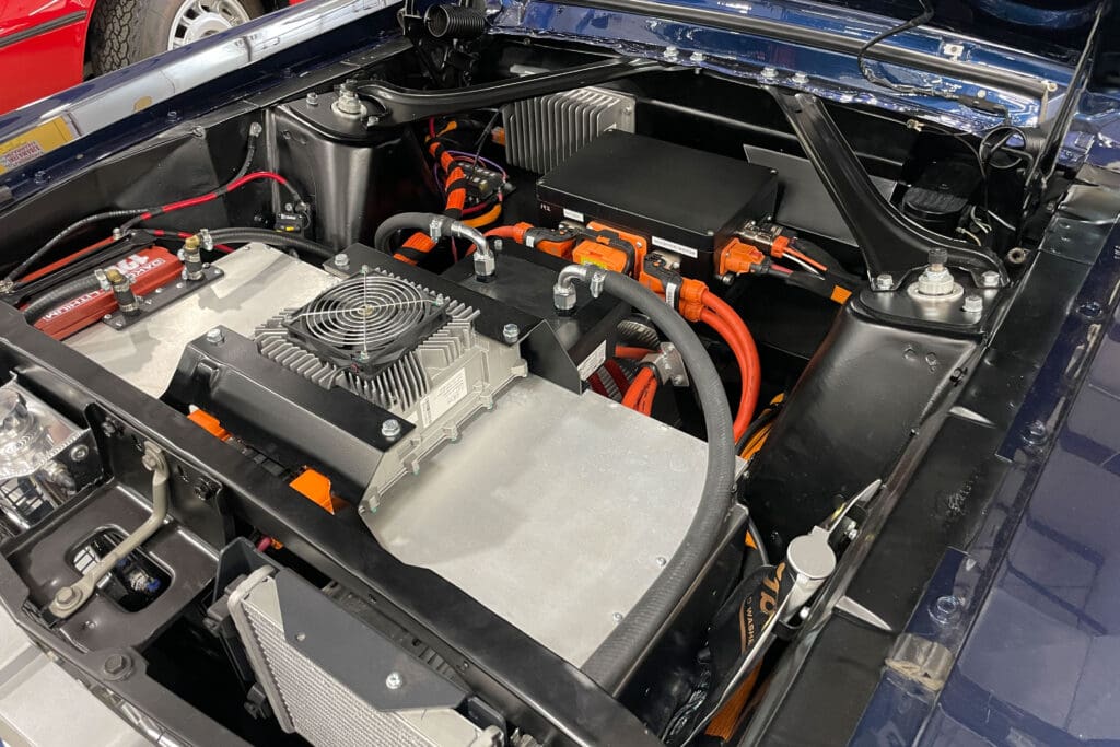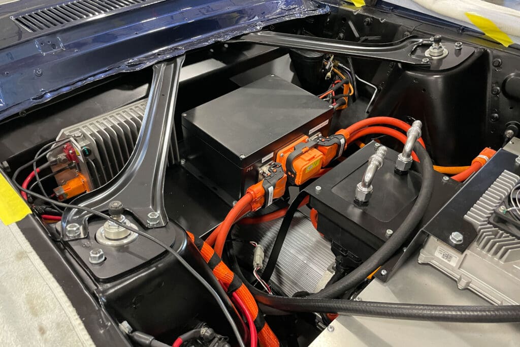 Our fabrication pros mounted the motor, as well as the battery compartments. Then, they painted and fabricated the engine bay parts for a clean look. Since Mustangs of this era have not been electrified much, we did a one-off. That means that it was all custom work, versus 3D scanned parts, like we can do on a Porsche 911/912.