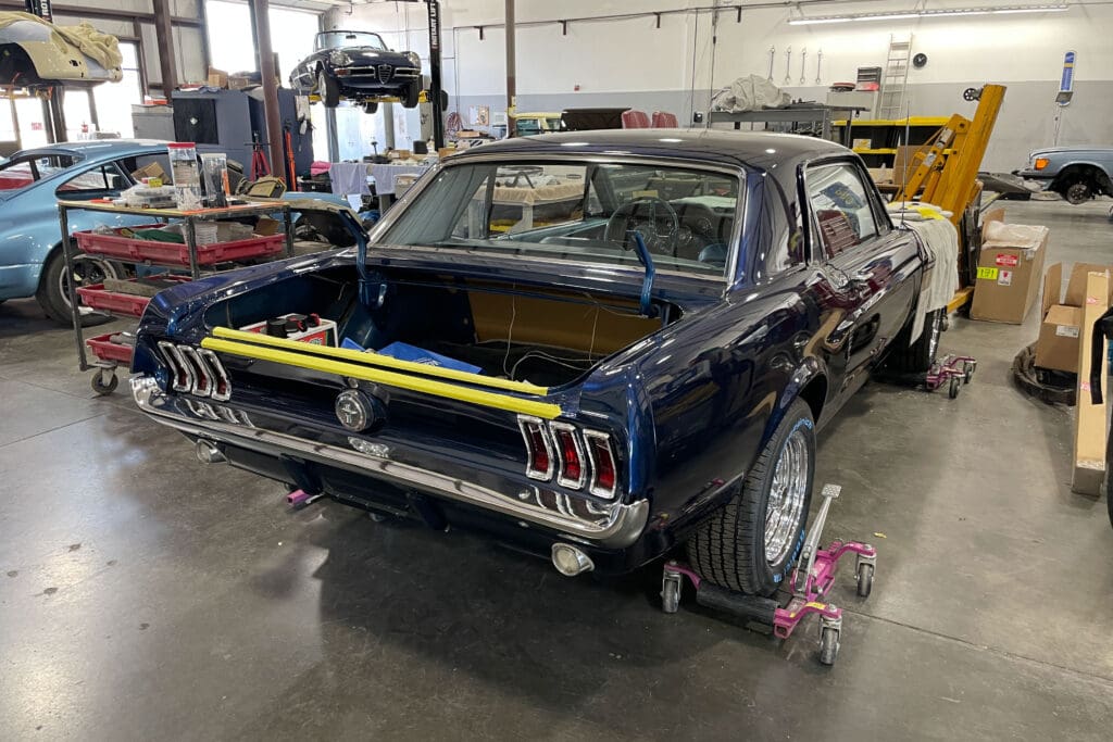 This 1967 Ford Mustang is an almost identical twin to this new owner’s first car: Blue over Blue, coupe from 1967. This was a great chance for our team to work with a new client and share our knowledge to help guide them towards the “best” chassis to start with. T get this unique project started, we documented, tagged and disassembled everything on the car. We removed the ICE (Internal Combustion Engine) and ordered the updated 173 Kit from Tremec Electric GT.