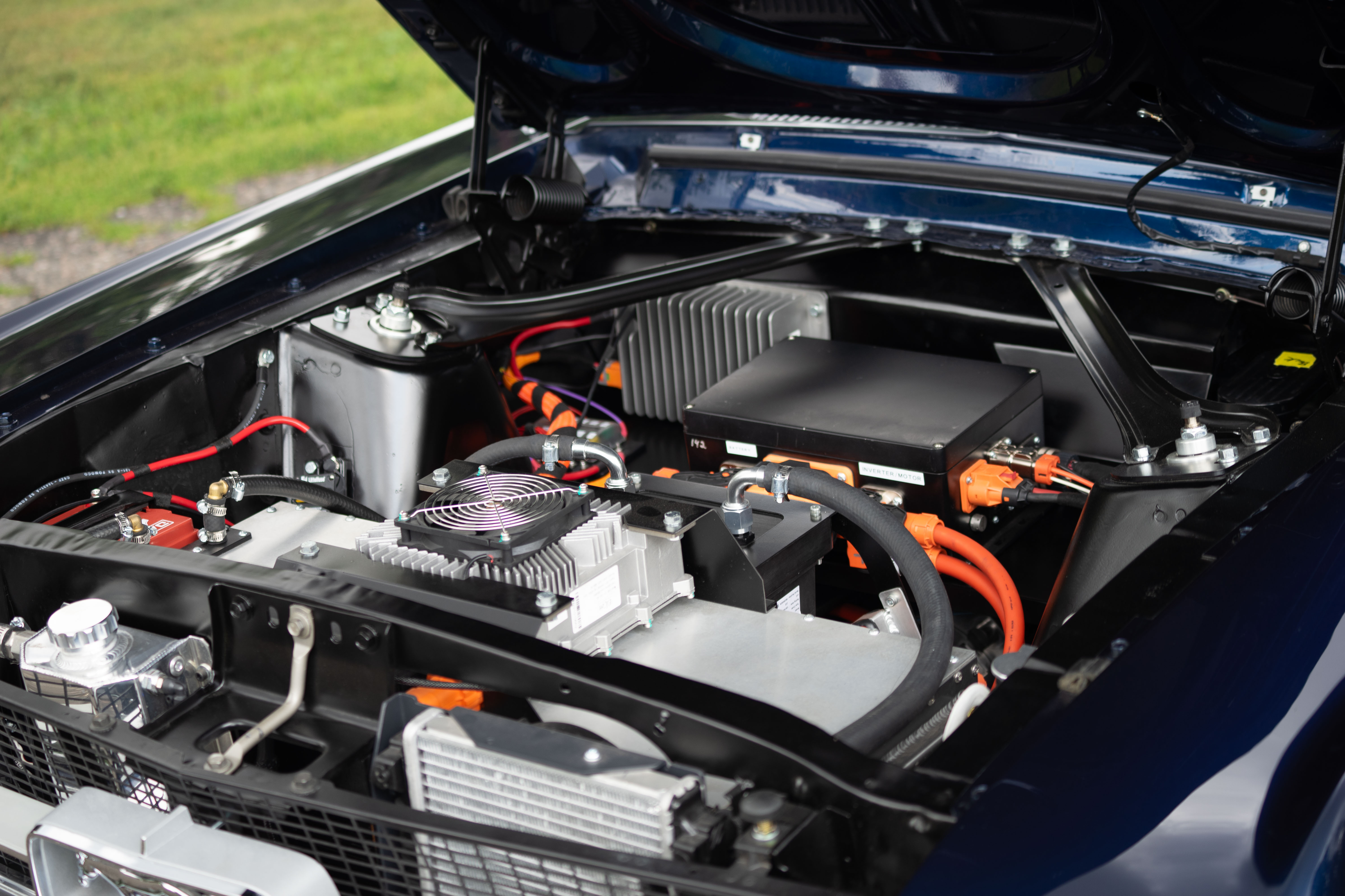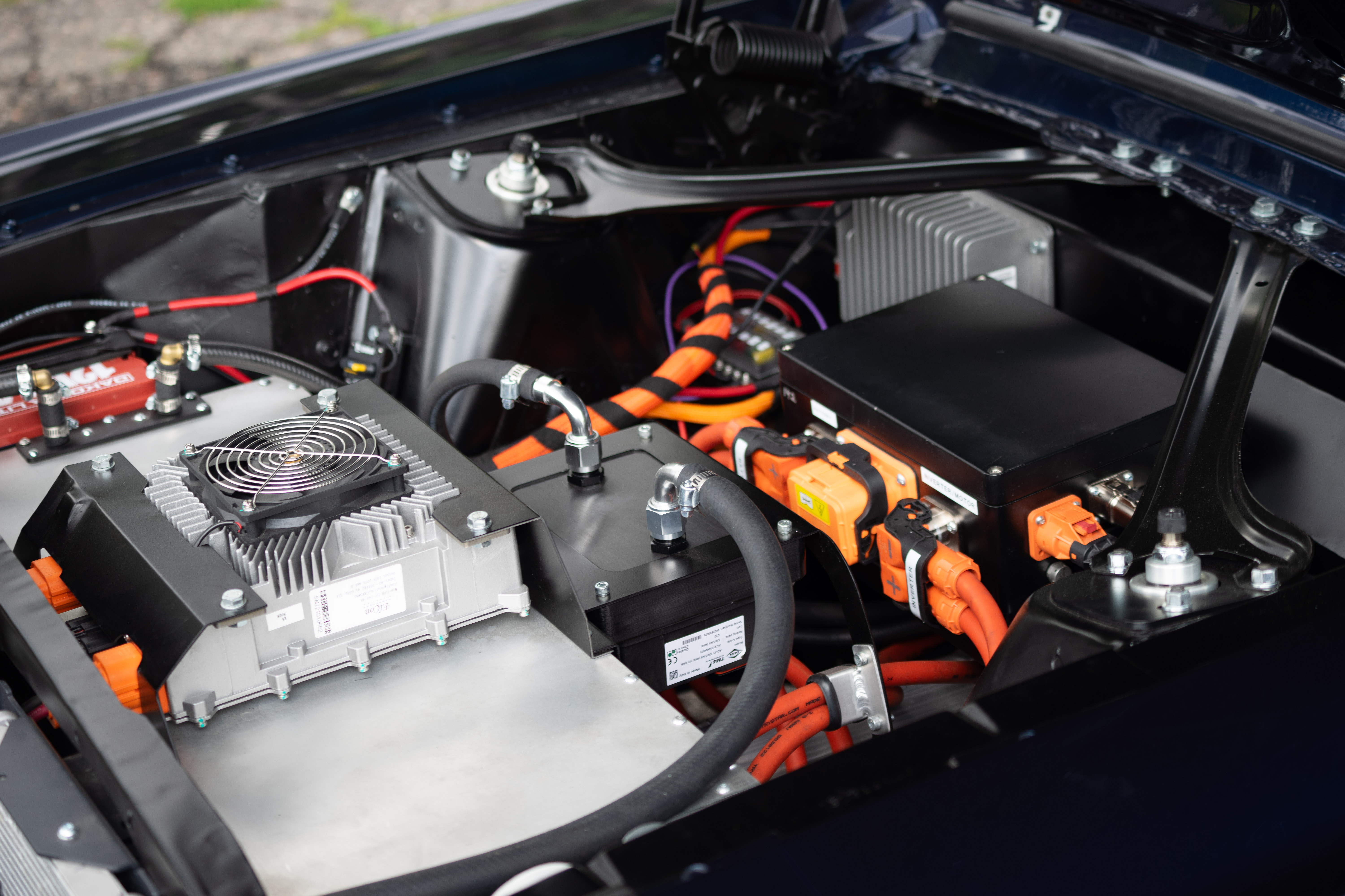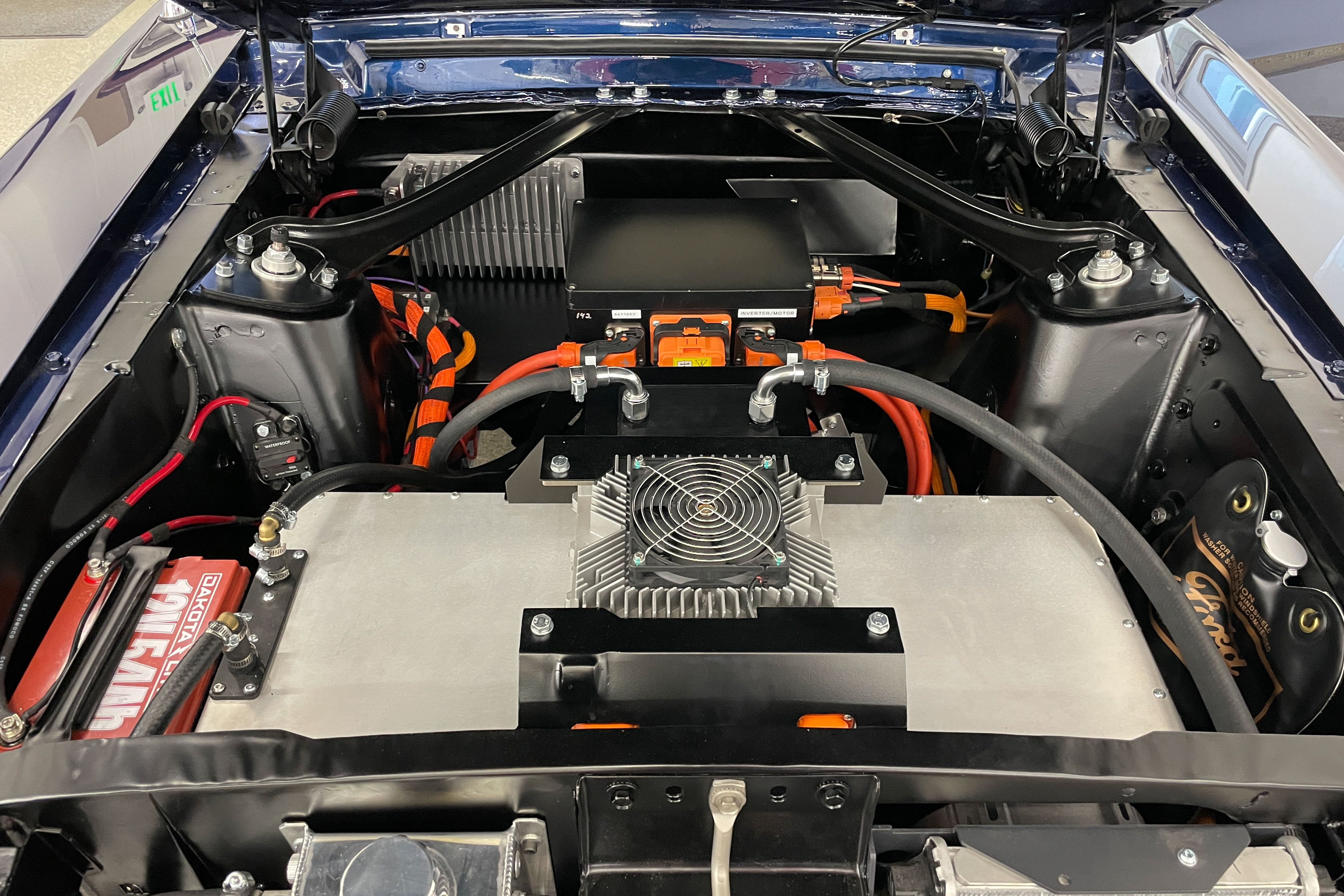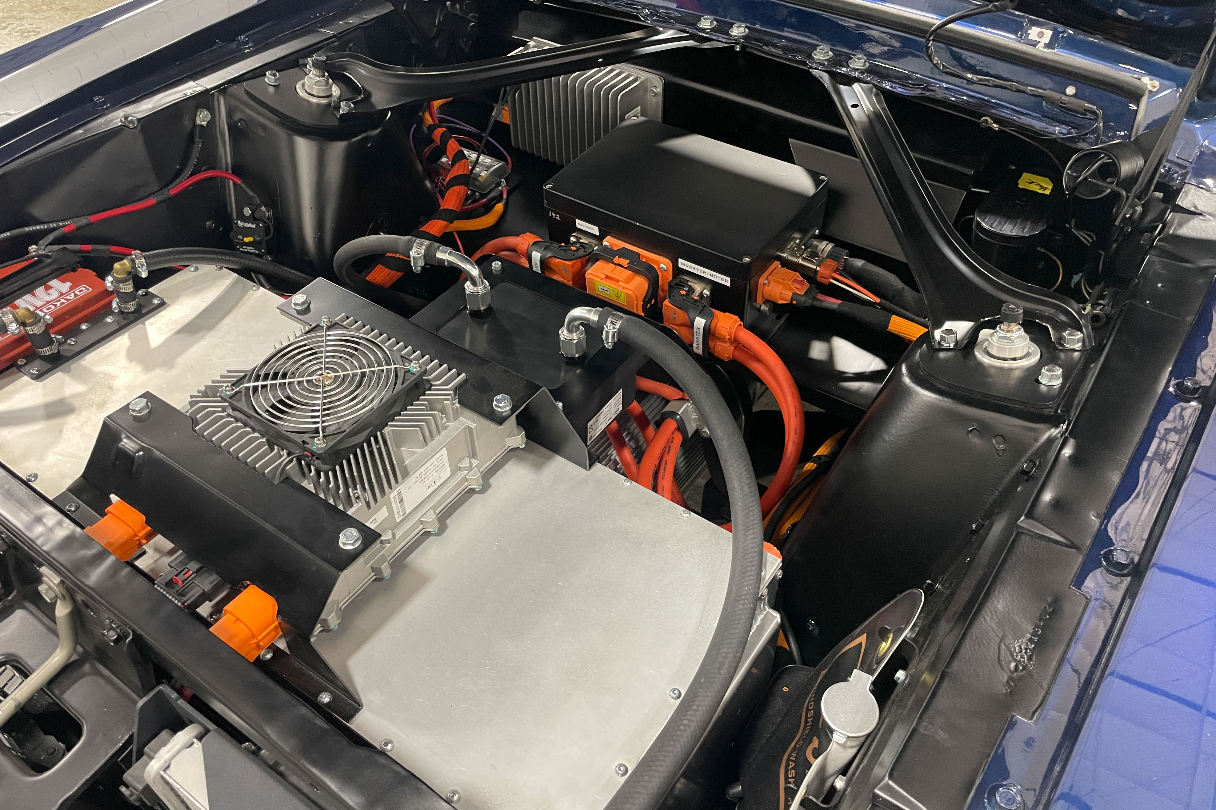 Our fabrication pros mounted the motor, as well as the battery compartments. Then, they painted and fabricated the engine bay parts for a clean look. Since Mustangs of this era have not been electrified much, we did a one-off. That means that it was all custom work, versus 3D scanned parts, like we can do on a Porsche 911/912.