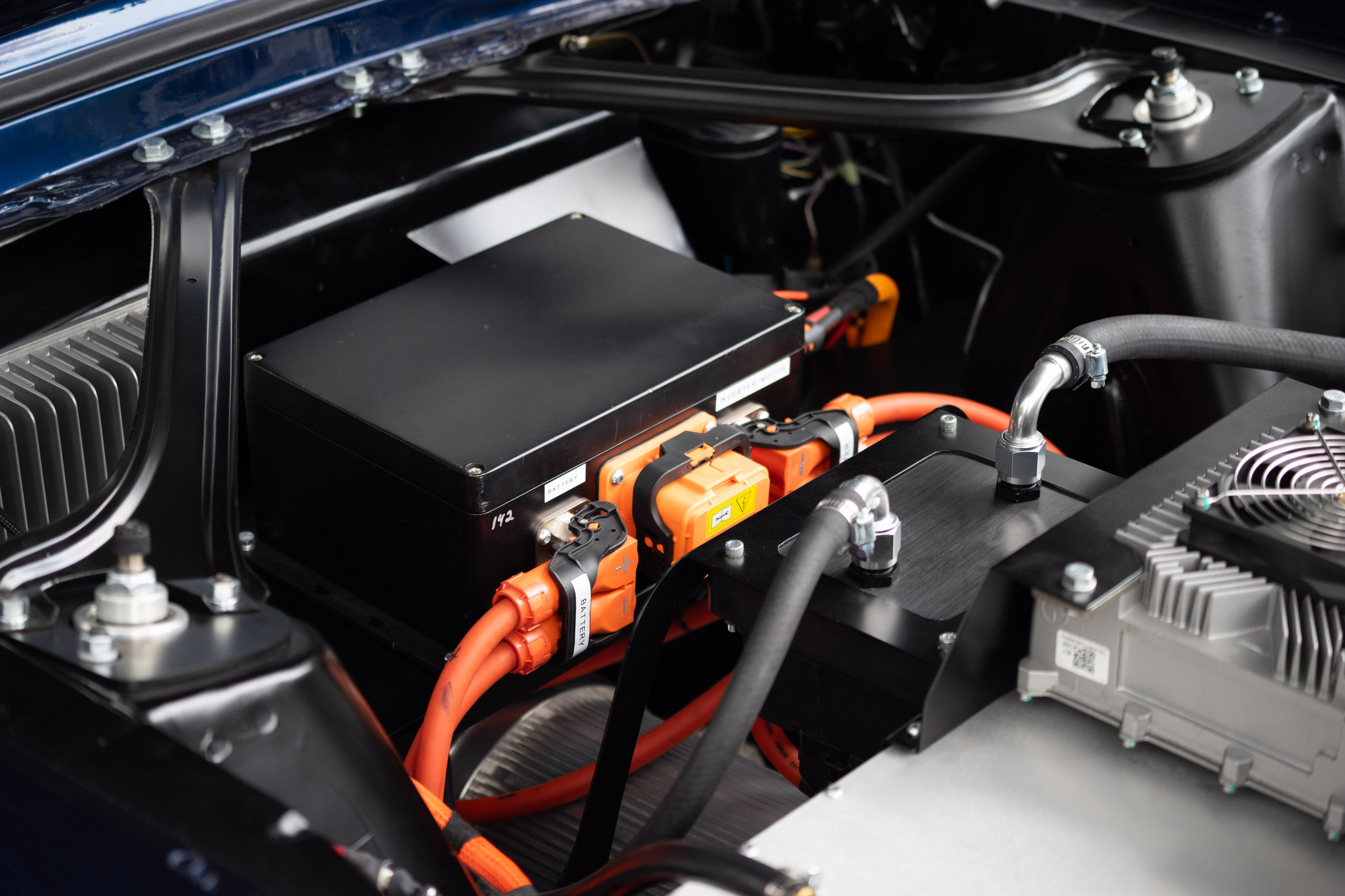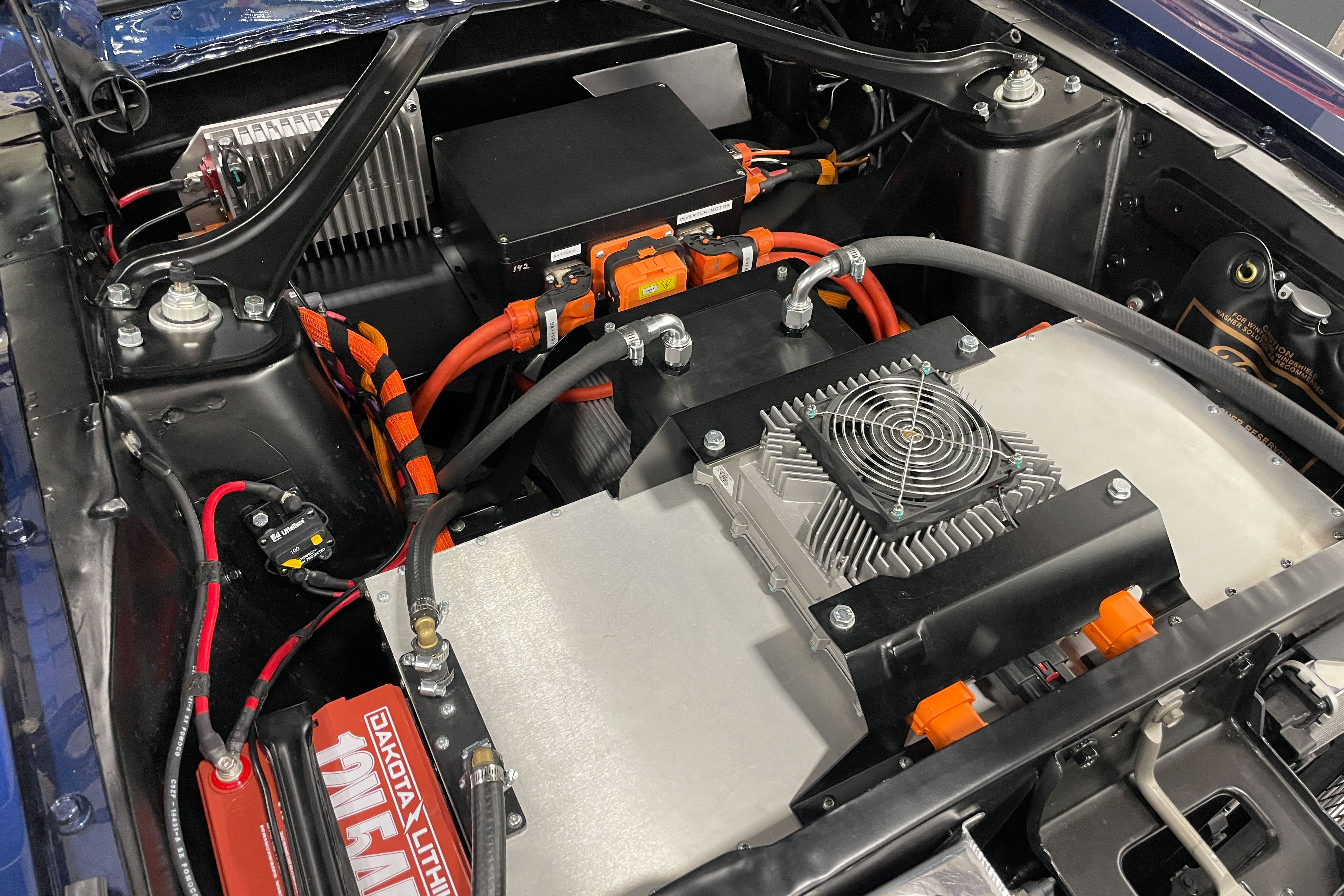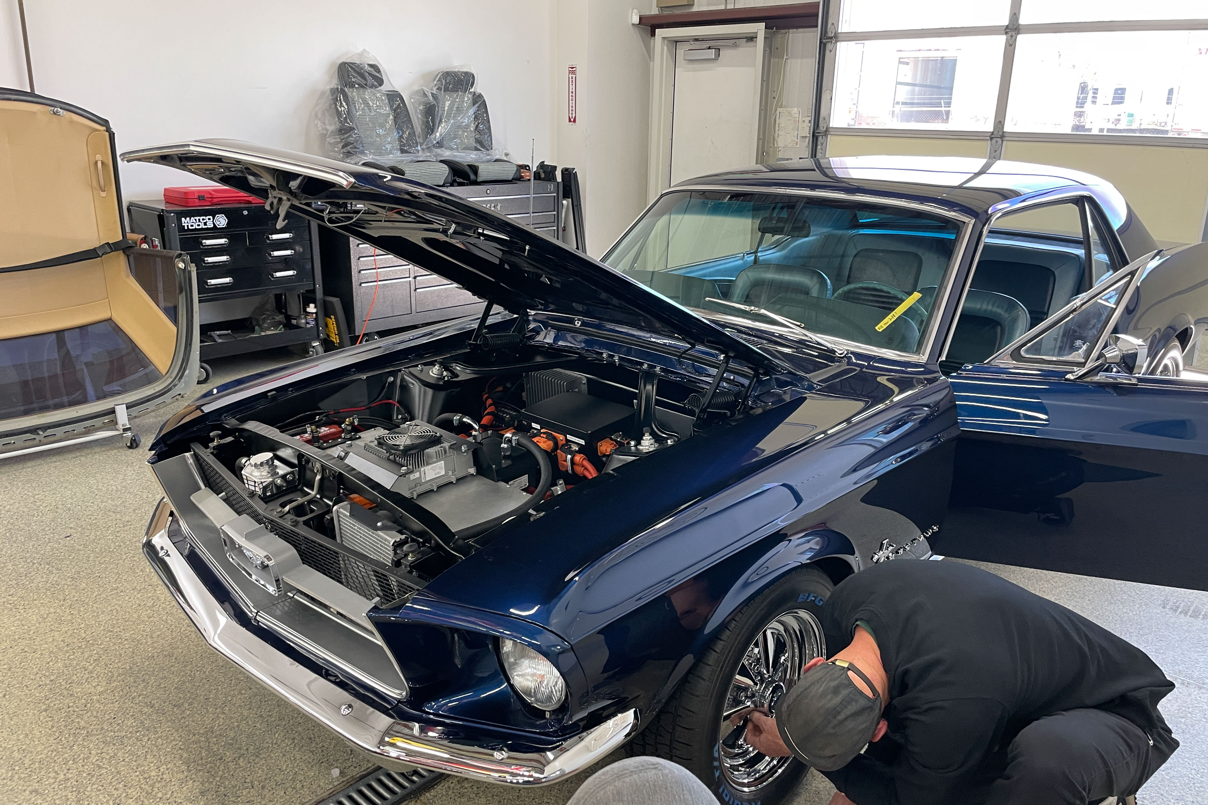 Our fabrication pros mounted the motor, as well as the battery compartments. Then, they painted and fabricated the engine bay parts for a clean look. Since Mustangs of this era have not been electrified much, we did a one-off. That means that it was all custom work, versus 3D scanned parts, like we can do on a Porsche 911/912.