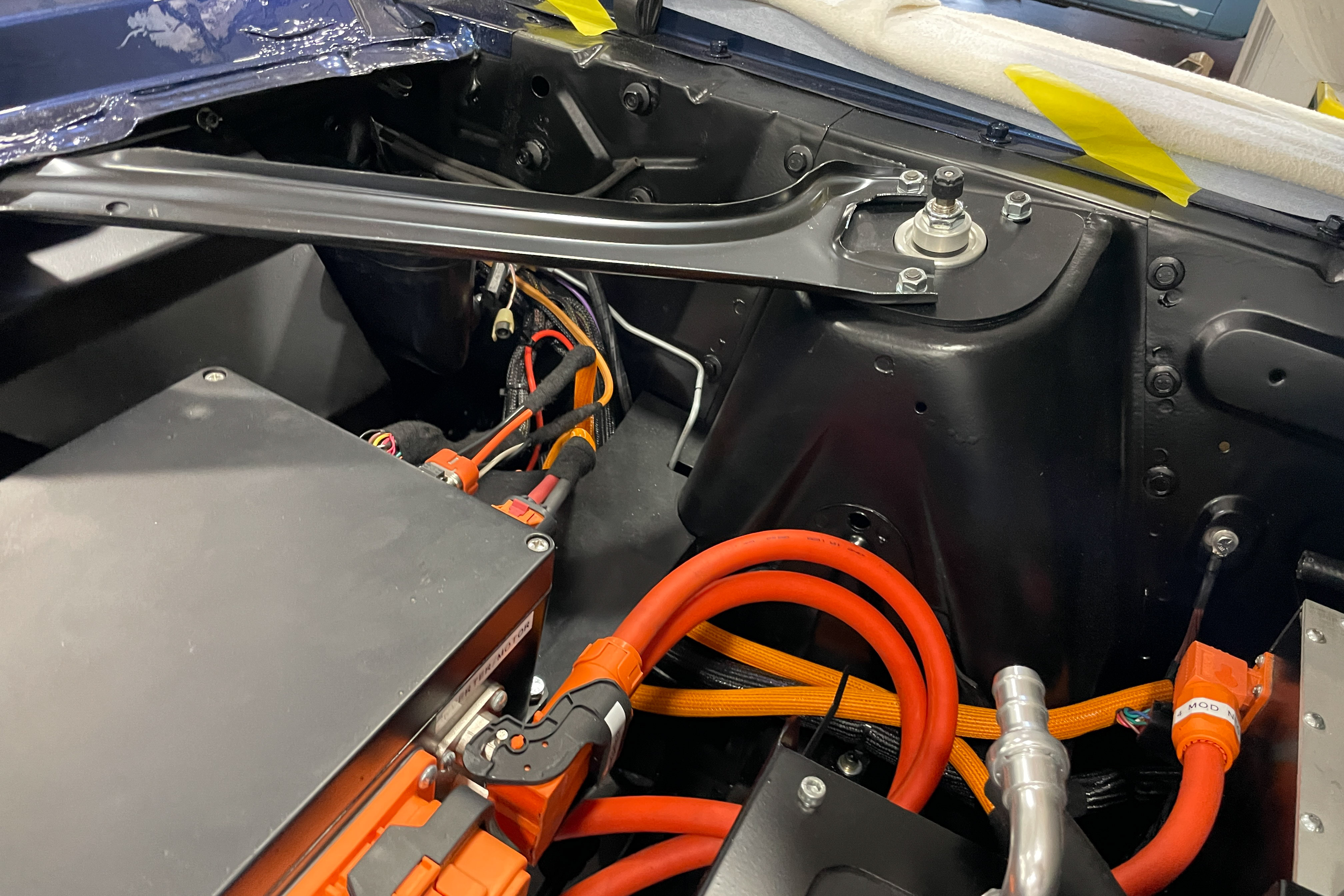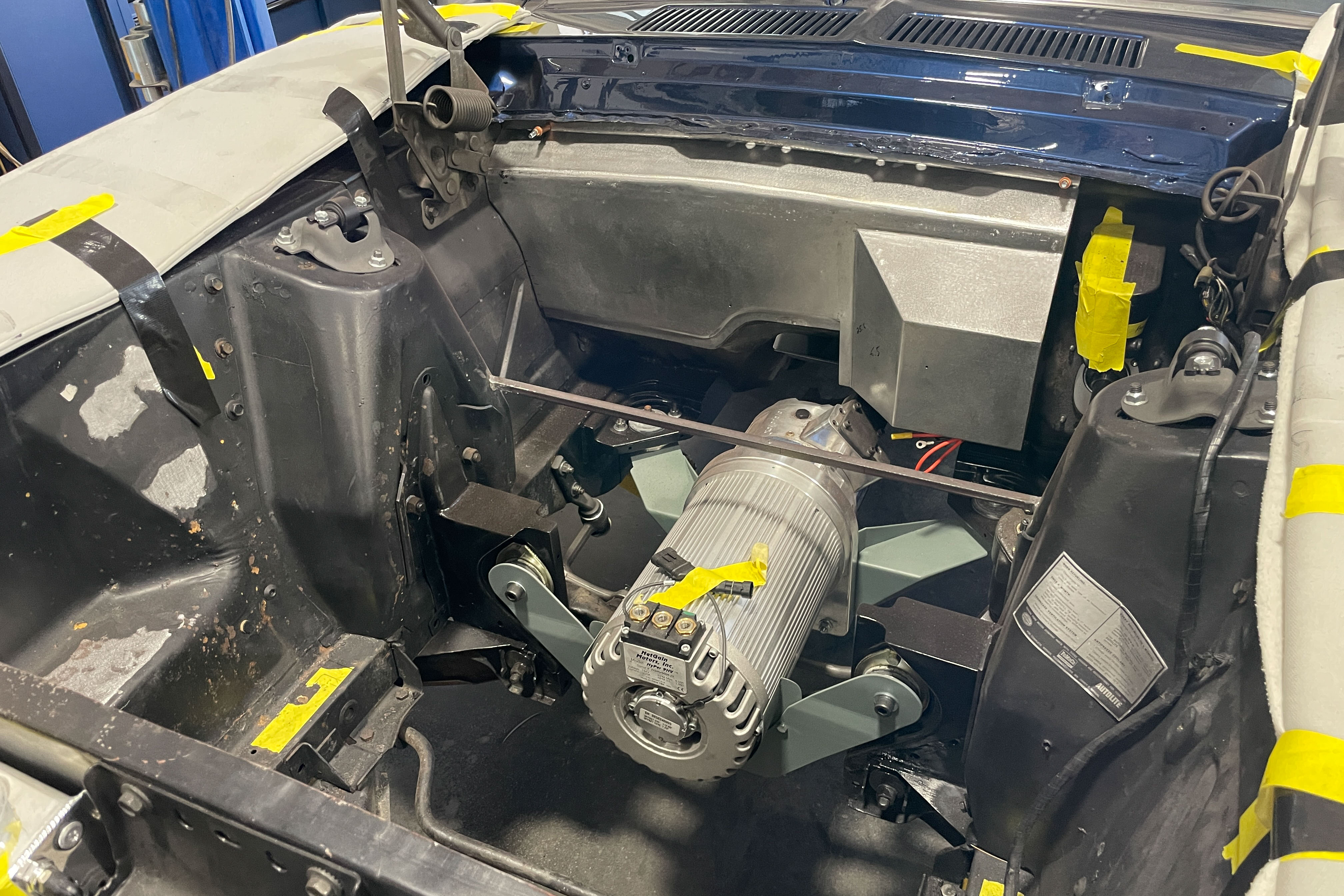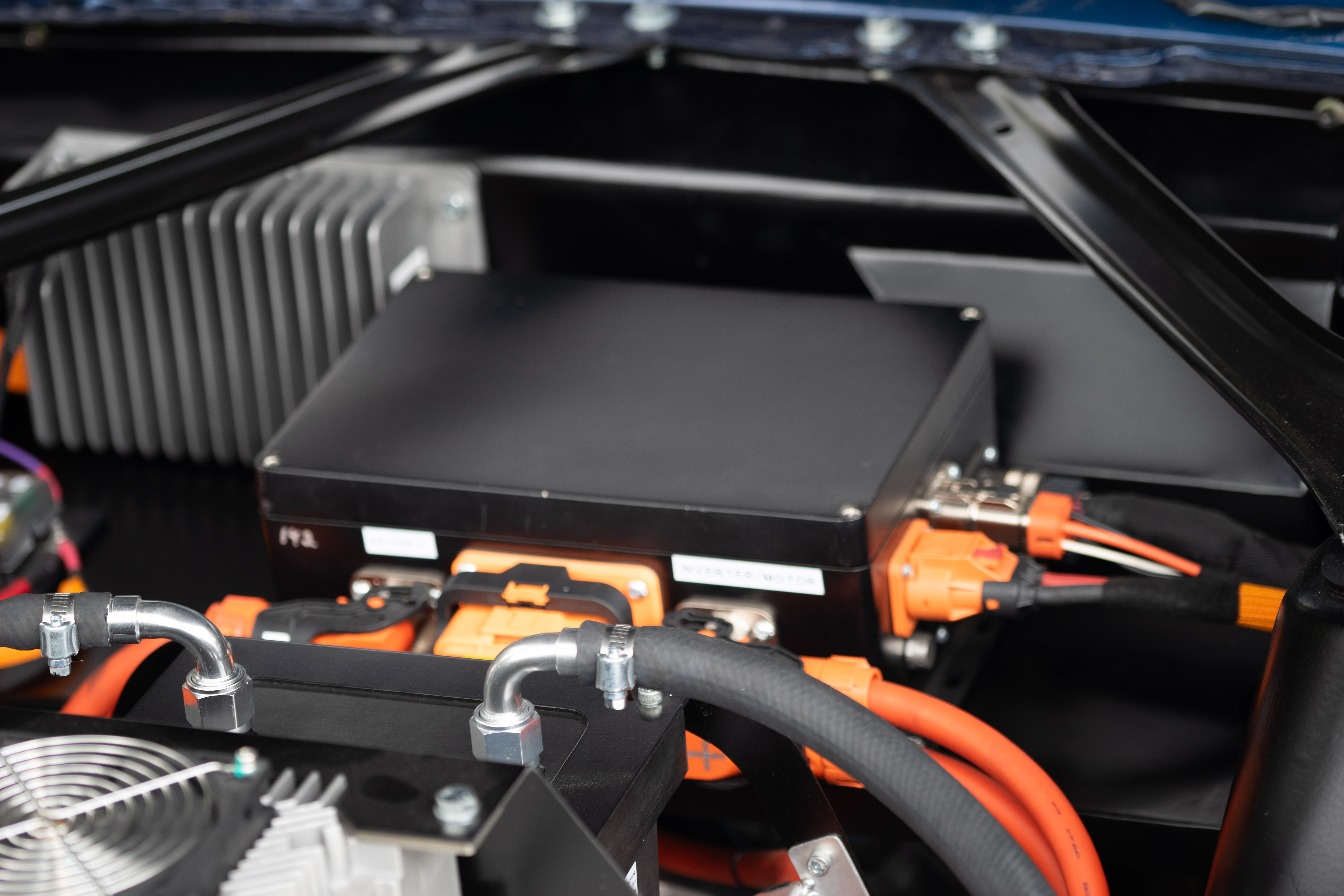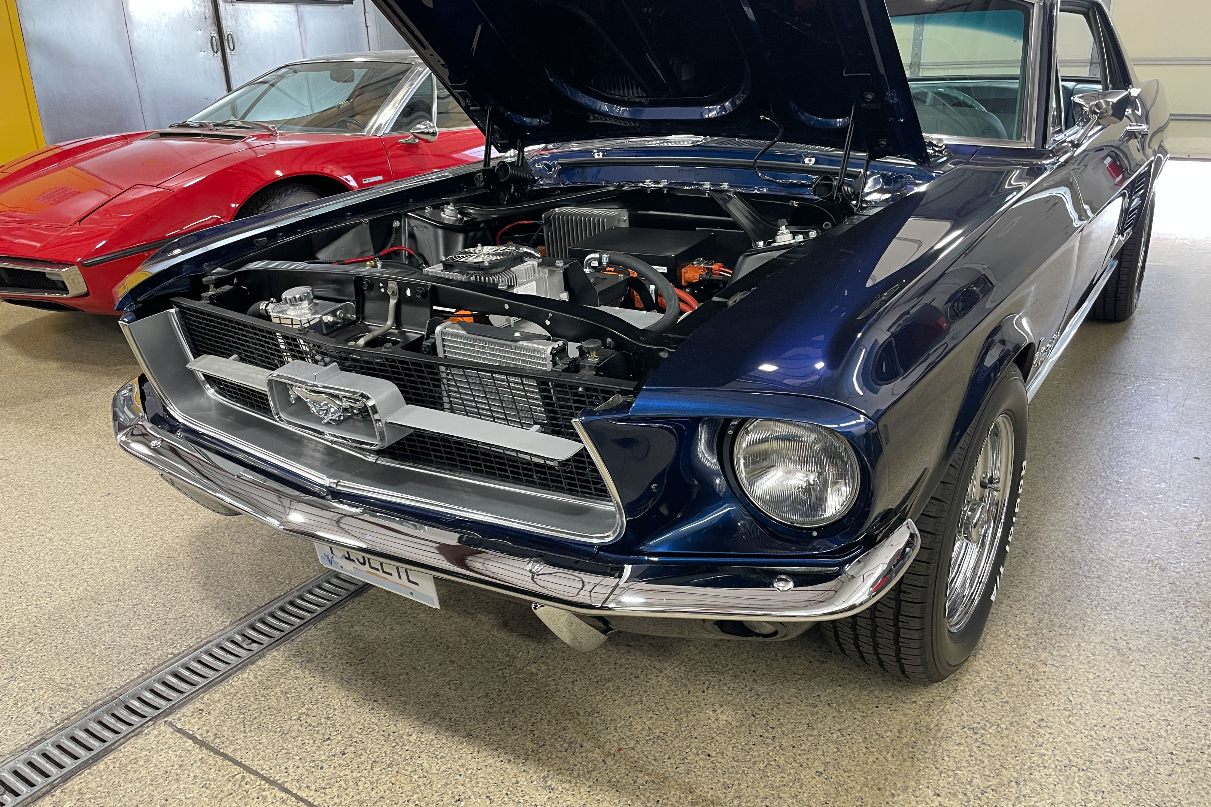 Our fabrication pros mounted the motor, as well as the battery compartments. Then, they painted and fabricated the engine bay parts for a clean look. Since Mustangs of this era have not been electrified much, we did a one-off. That means that it was all custom work, versus 3D scanned parts, like we can do on a Porsche 911/912.