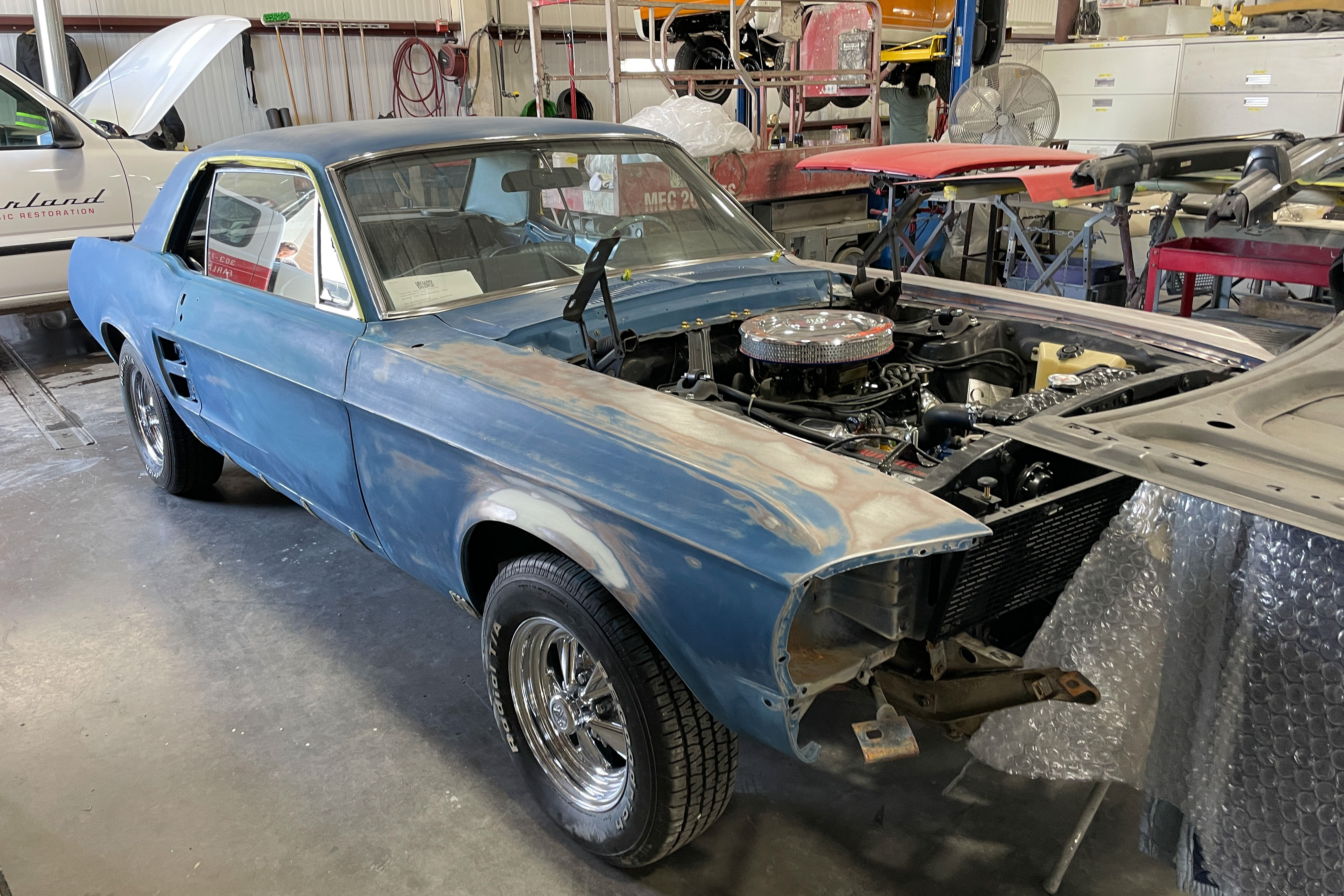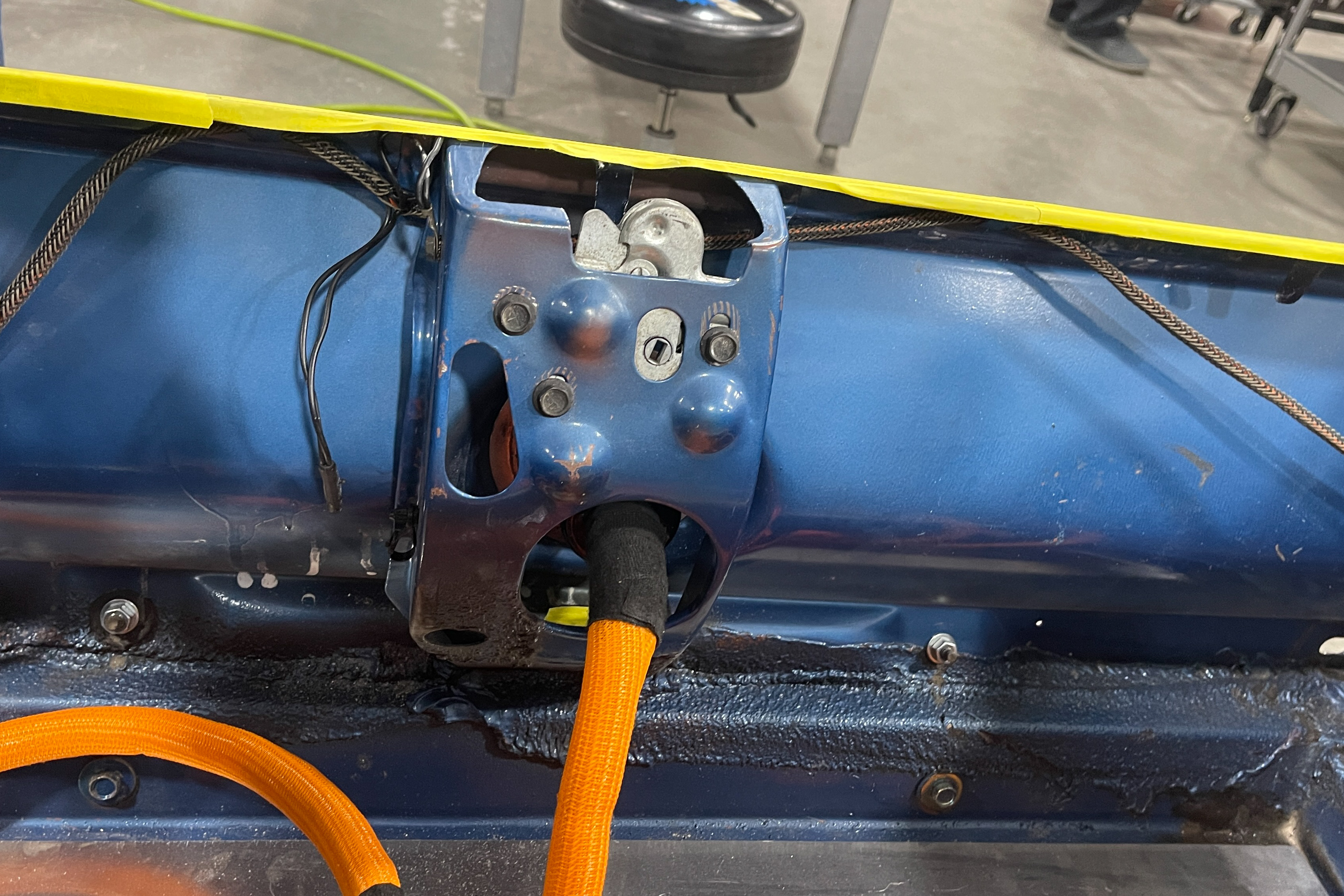 This 1967 Ford Mustang is an almost identical twin to this new owner’s first car: Blue over Blue, coupe from 1967. This was a great chance for our team to work with a new client and share our knowledge to help guide them towards the “best” chassis to start with. T get this unique project started, we documented, tagged and disassembled everything on the car. We removed the ICE (Internal Combustion Engine) and ordered the updated 173 Kit from Tremec Electric GT.