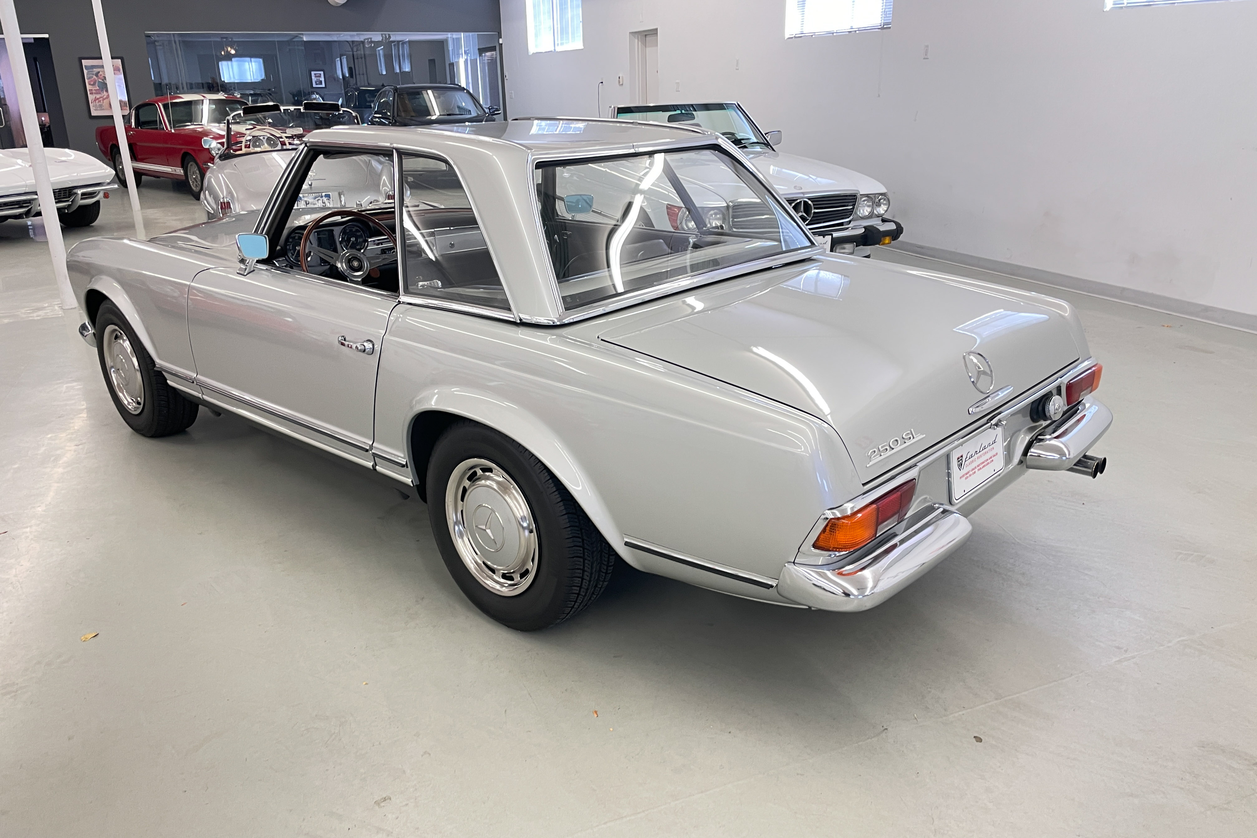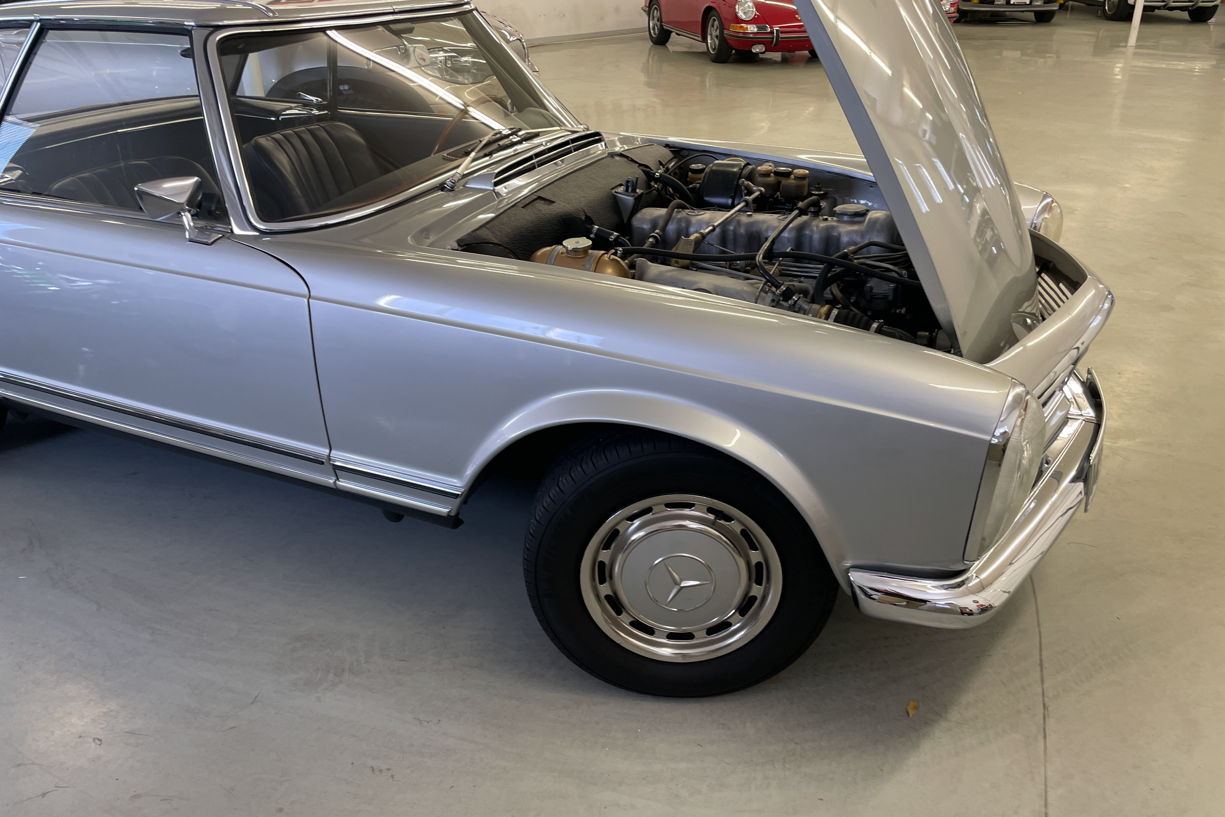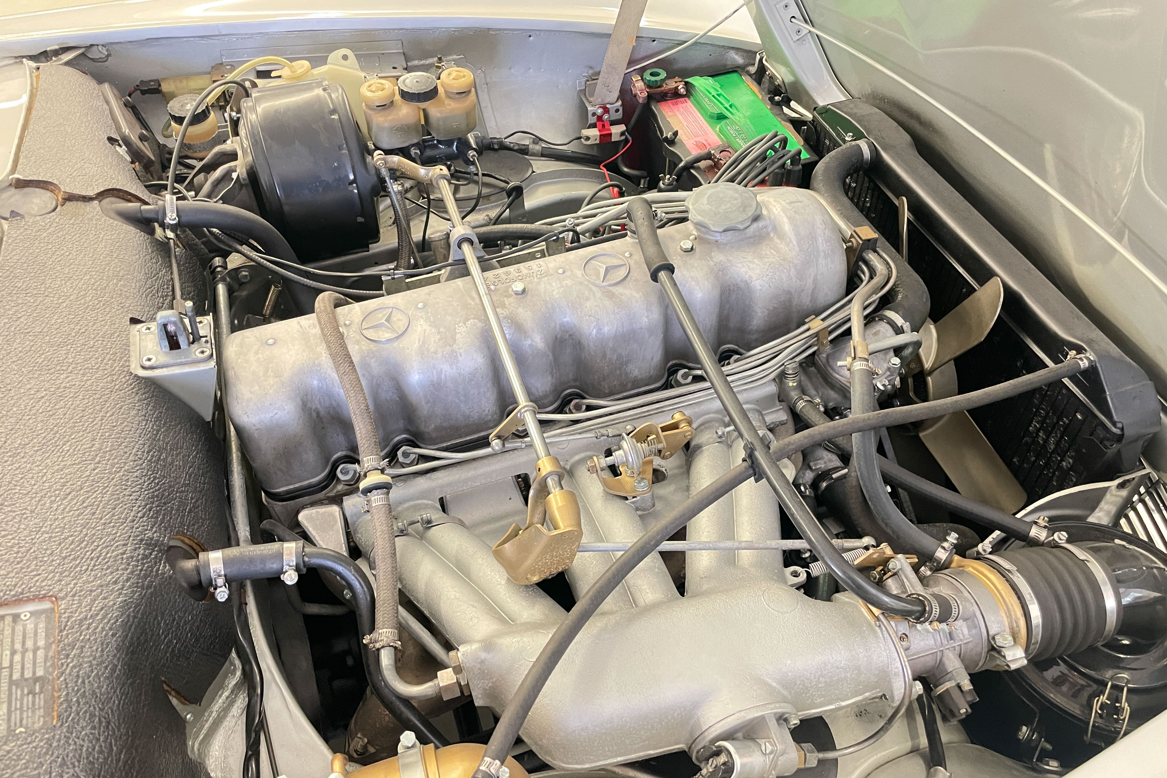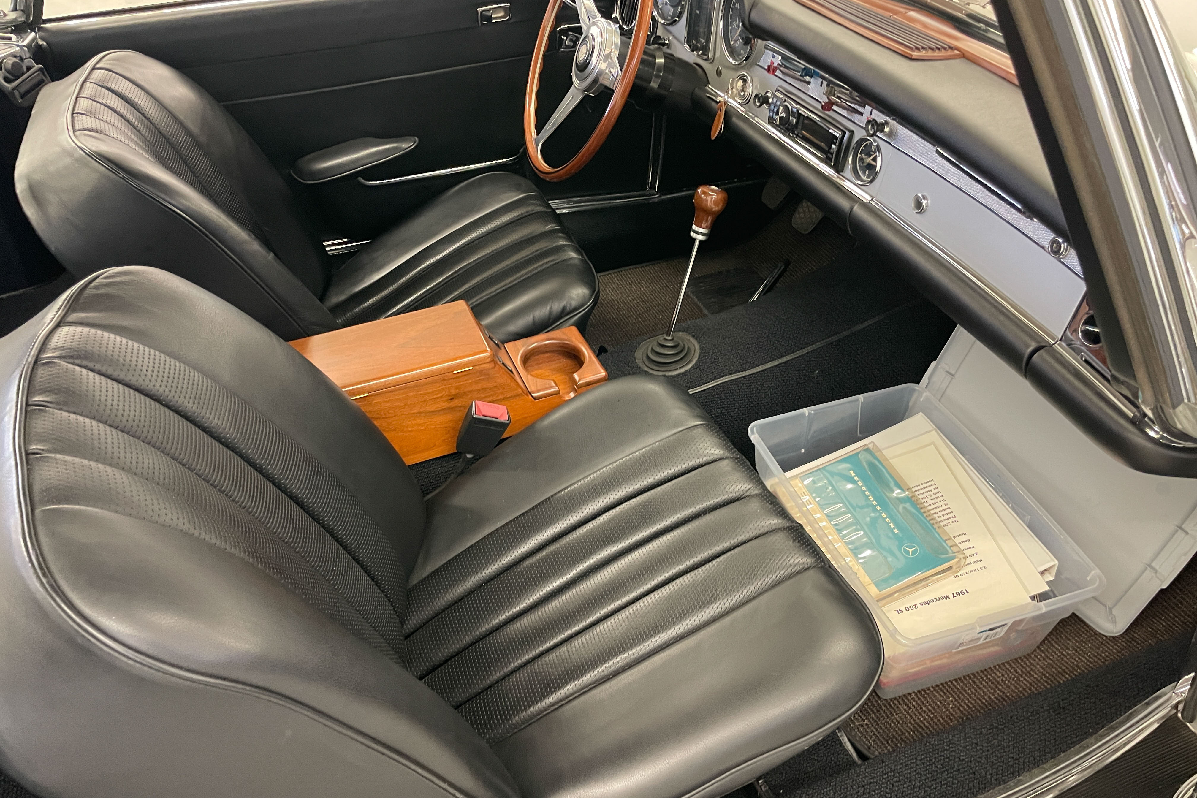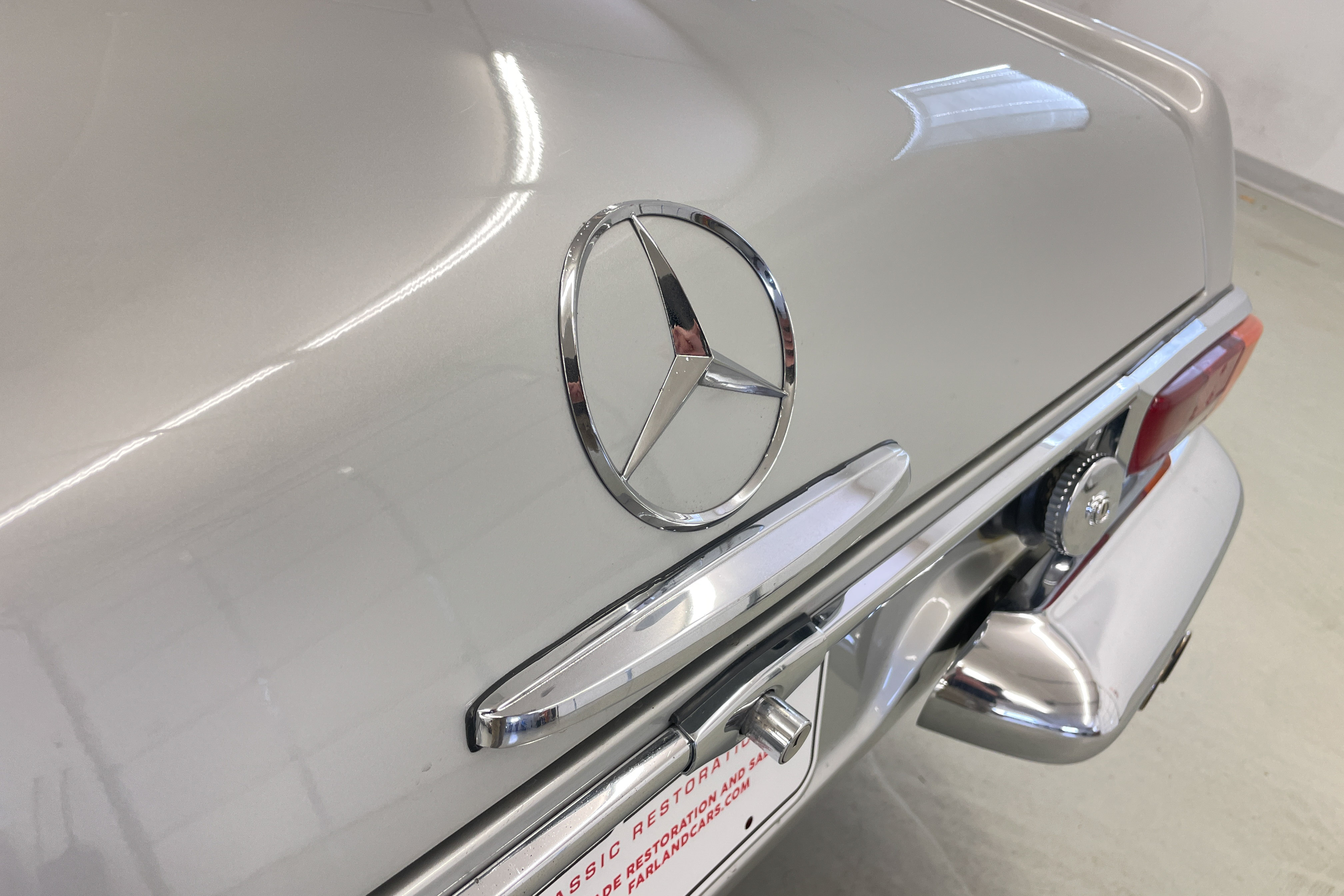 We consider this car a really nice driver-level example because it runs like a top, has great paint, interior & mechanical condition. The bodywork is straight and rust free with excellent chrome, too. The manual 4-speed is a big plus and is far more fun to drive than the automatics so often found in these 113 cars. Originally built in Signal Red, it was comprehensively changed to Silver before even leaving Germany. During its restoration years ago—a restoration that was engine-out, so even the engine compartment looks right. And it still has the original ‘notches’ in the front fenders!