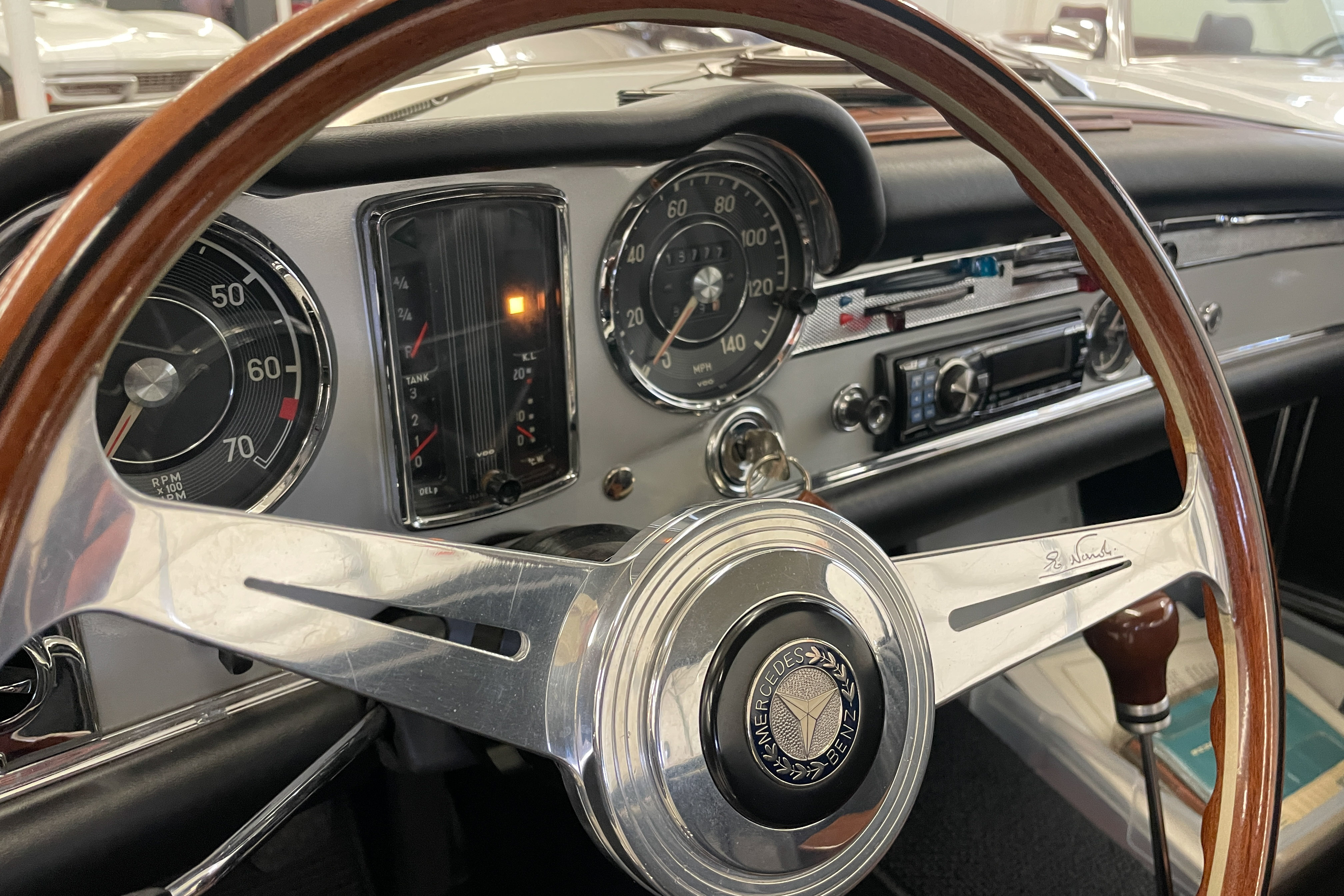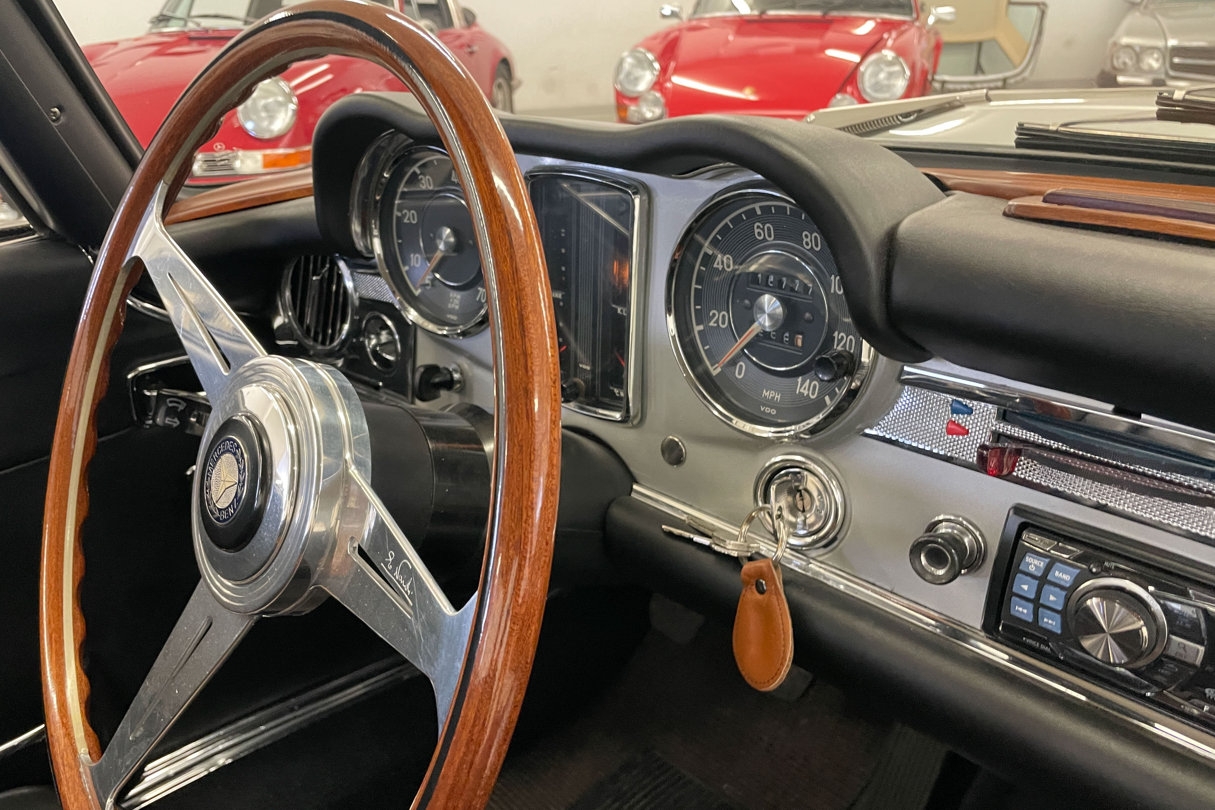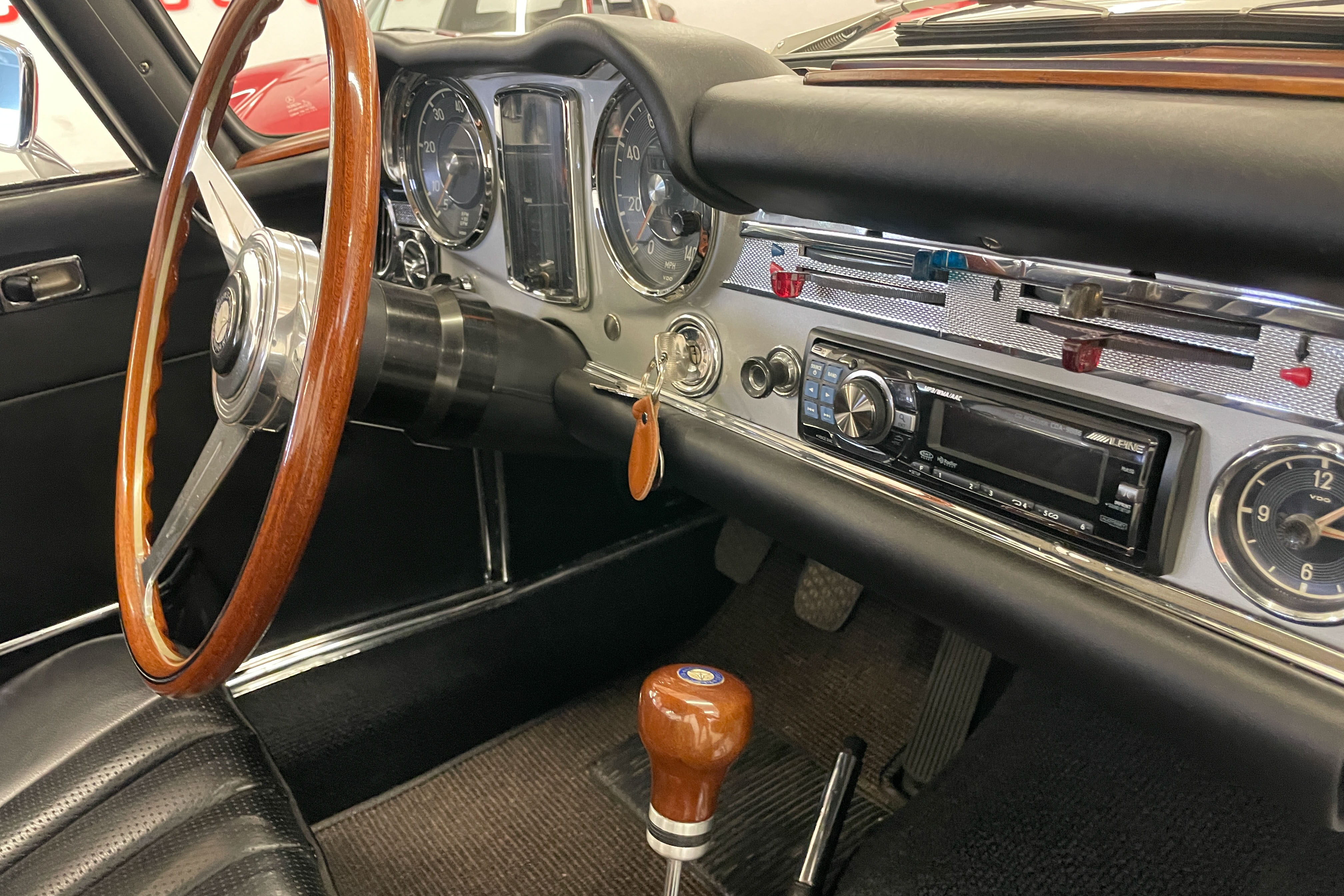 The 250 is the rarest of the popular ‘Pagoda’ Mercedes SLs, with only 5100 built, compared to 20,000 230s and 24,000 280s. Mercedes adjusted the gearing on the cars so each model actually has very similar performance and there are actually few differences between them. This was an original European-spec model delivered new in Frankfurt, but came to the US just ten years later. Consequently it has the lovely one-piece headlights, but when it was restored, new US-type instruments were installed so you don’t have to figure out KPH equivalents.