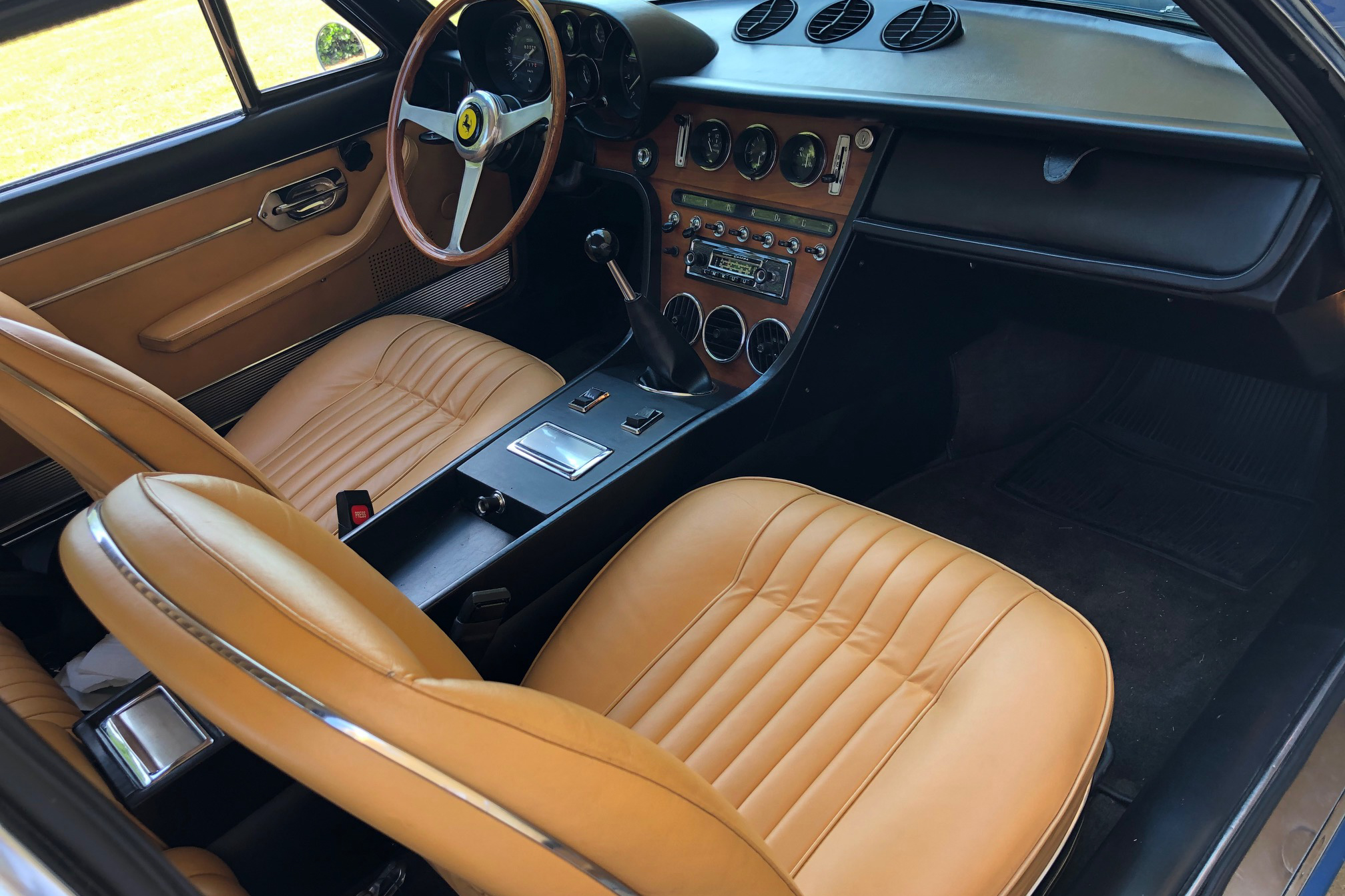 Matching numbers and with a great file of history & records. These cars were the culmination of Ferrari’s popular 1960s 2+2 series, following the GTE and 330GT and have more interior room, a more-powerful 4.4-liter engine, power steering and a great-shifting 5-speed transmission; even A/C! Comfortable, elegant and a pleasure to drive long distances—although rudely nick-named the “Queen Mother” in Road & Track’s period test, for its longish derriere. These are wonderful and under-appreciated Enzo-era Ferraris.