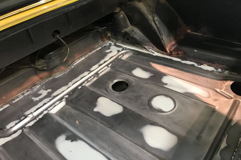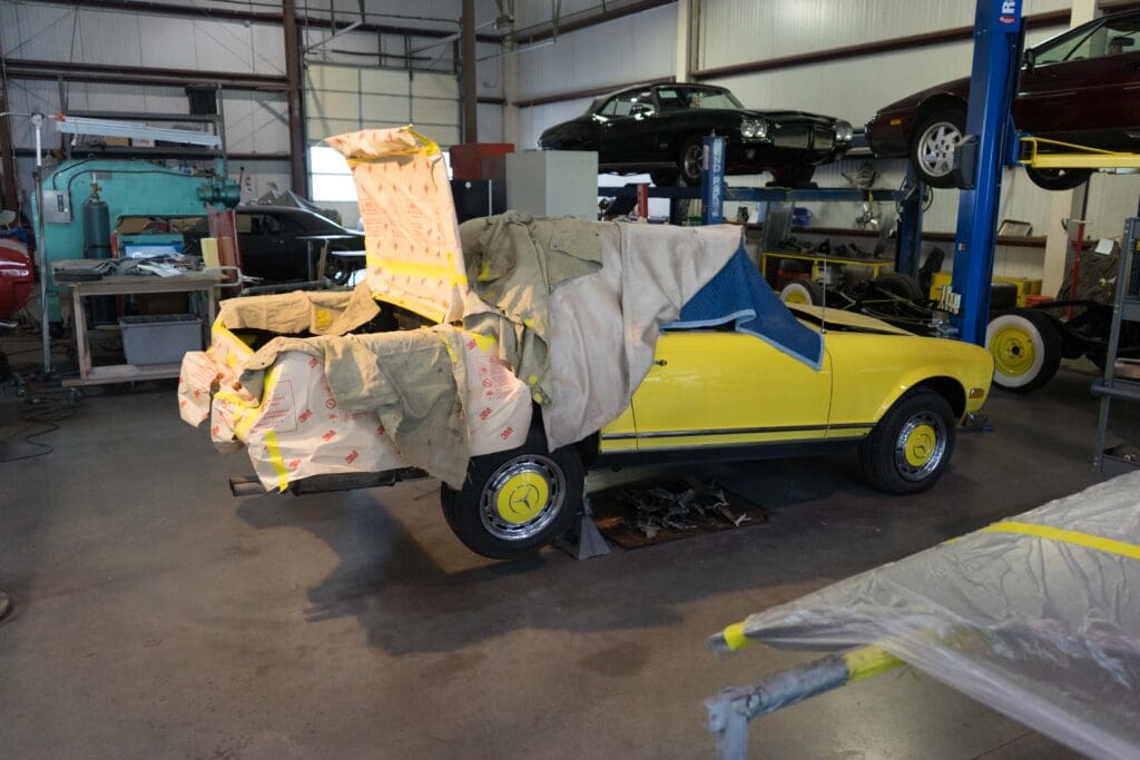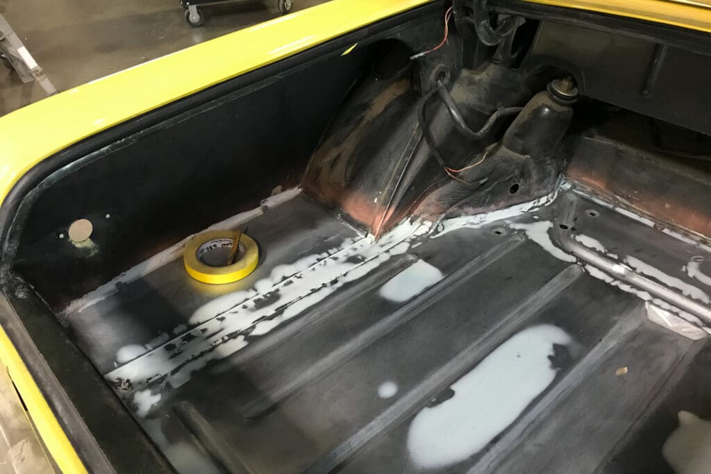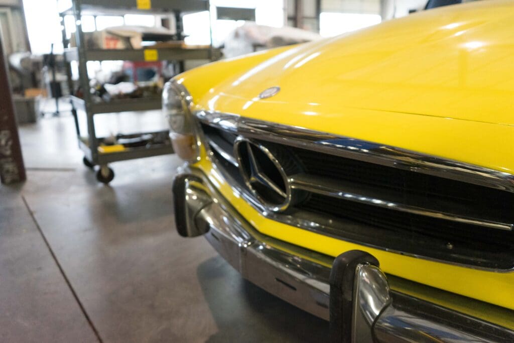 We encounter many Mercedes-Benz 280SL in the world of European Classic Car restoration. However, not many are yellow. This example is in excellent condition, except for a bit of rust in the trunk pan. Our technicians prepped everything just right, then got in and took care of the rust.