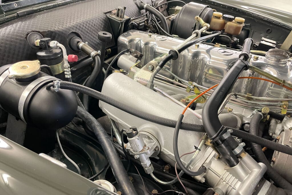 The engine is believed to be original, has been overhauled, and the title was branded ‘actual mileage’ at 61,736 in 2021, but we do not have a pile of historical records to support that. The polished cam cover and updated A/C would hurt the car in serious show judging, but it’s still one of the best 280SLs available.