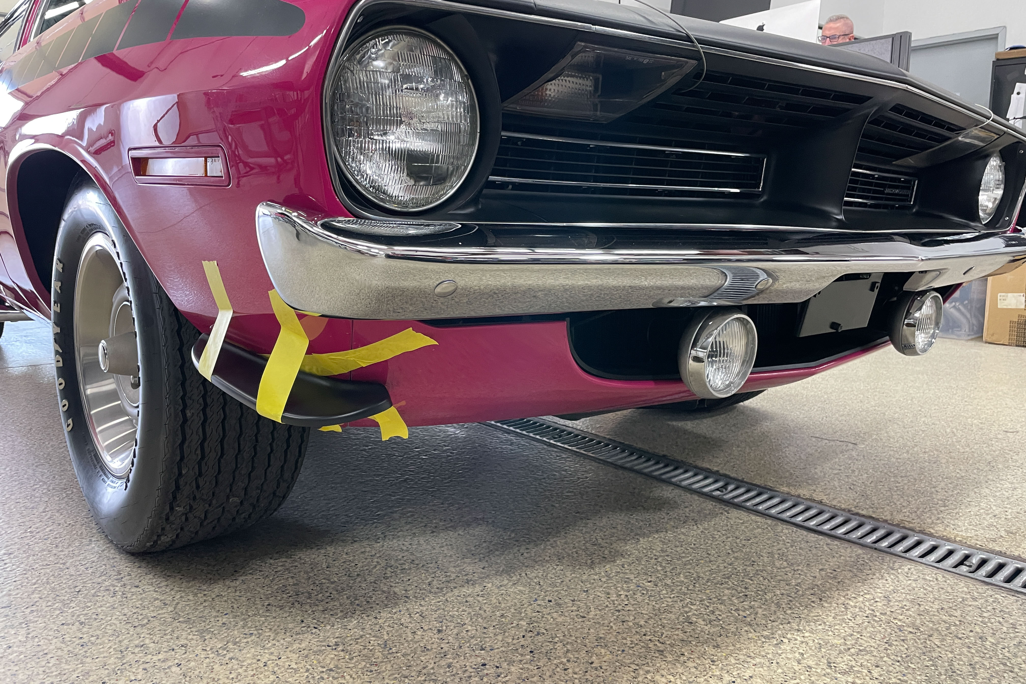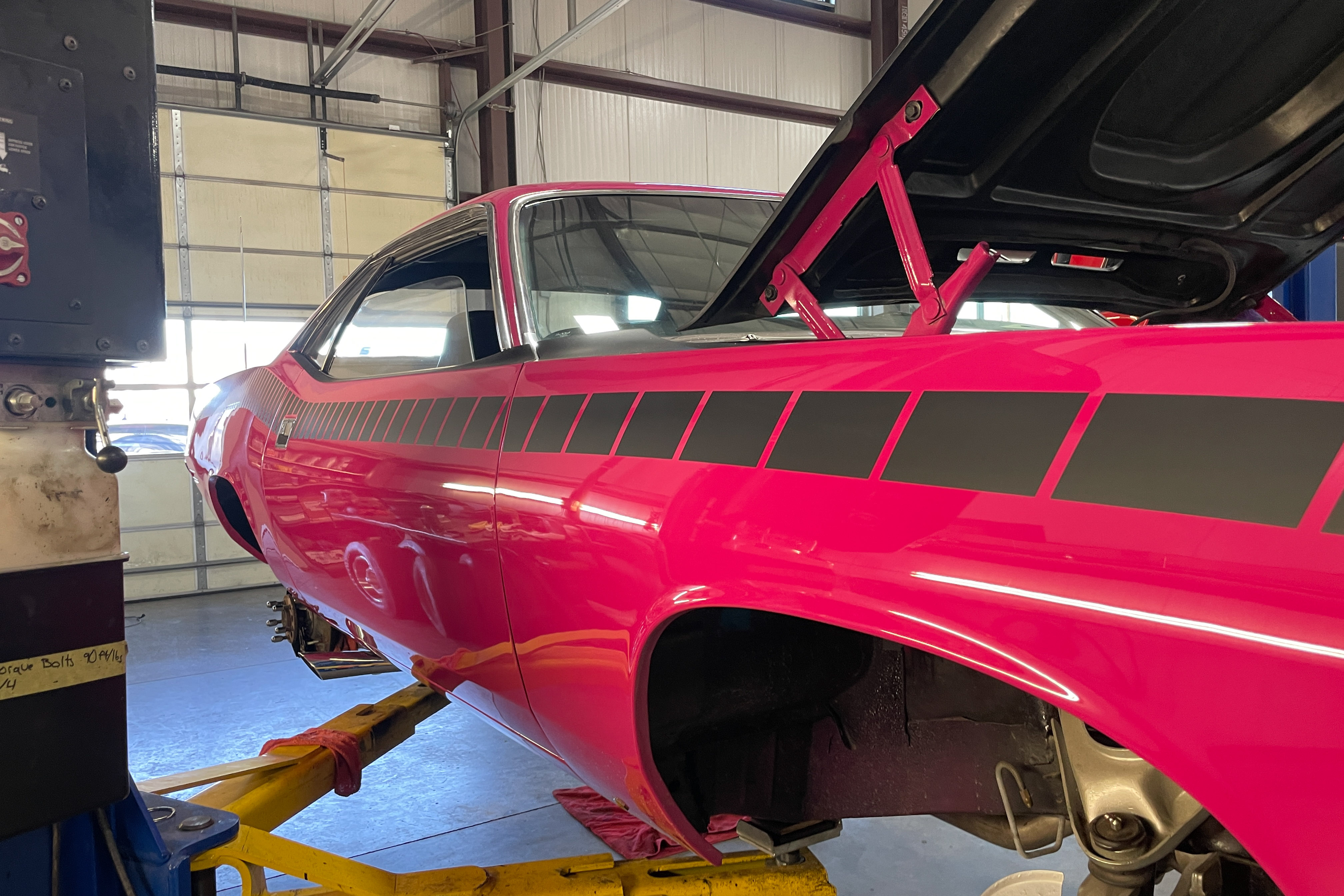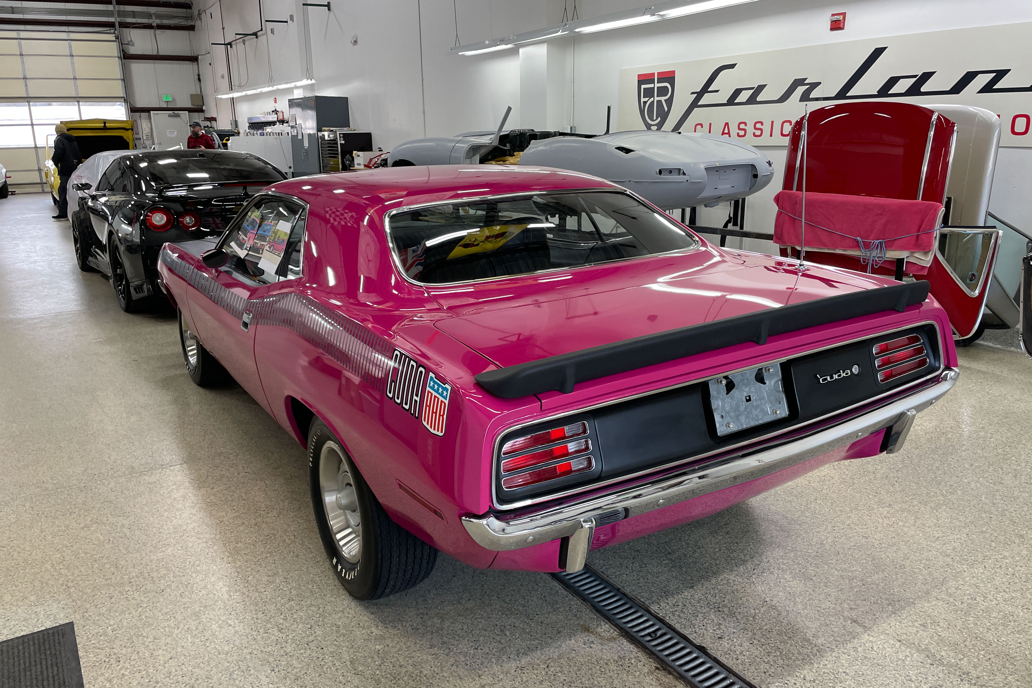 We’re not worthy! OK, we are. This is a true AAR ‘Cuda. Mopar’s Holy Grail. We did a bit of cosmetic work on the front spoiler and rear. Also just a bit of mechanical – fluids, etc. The car is pristine!