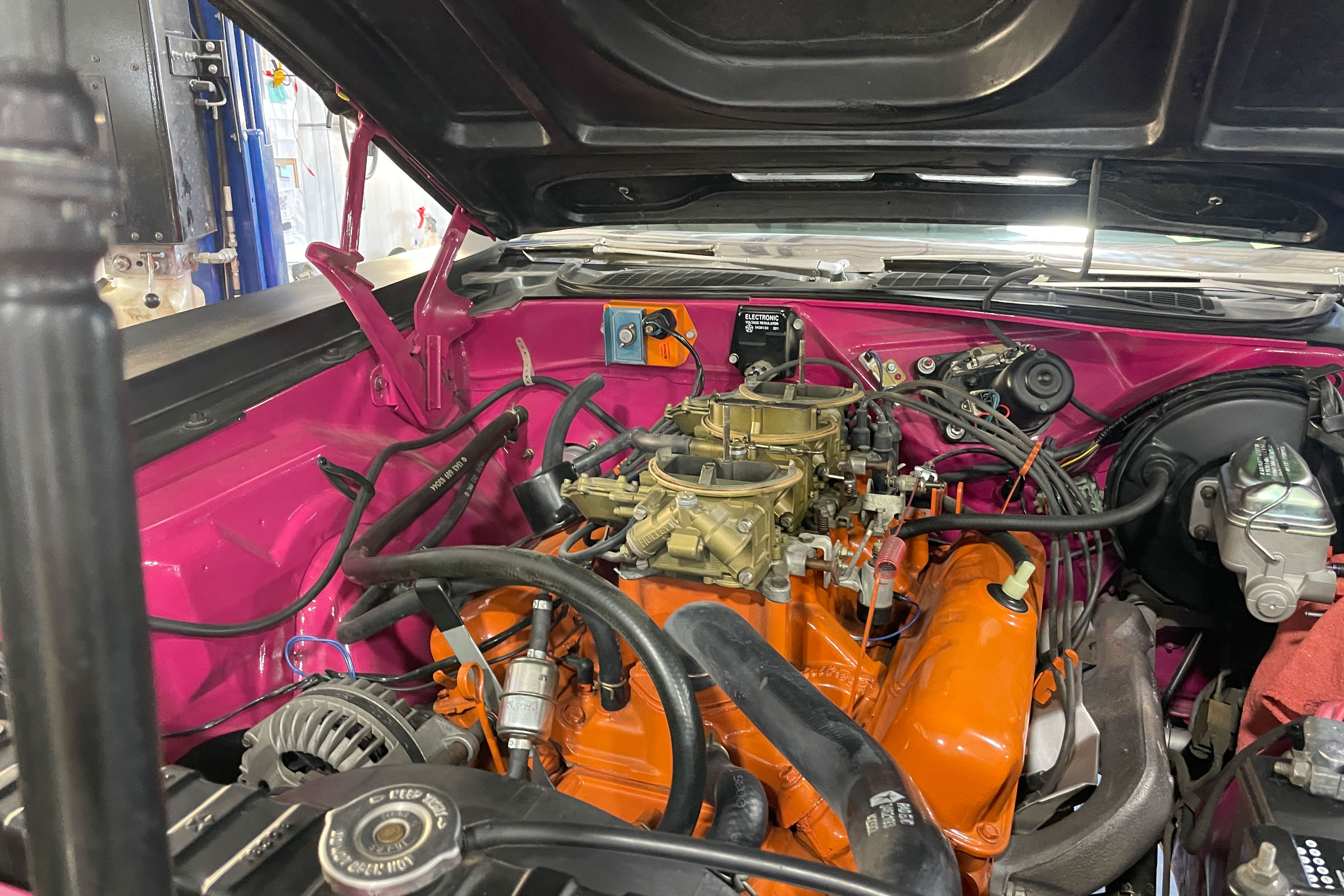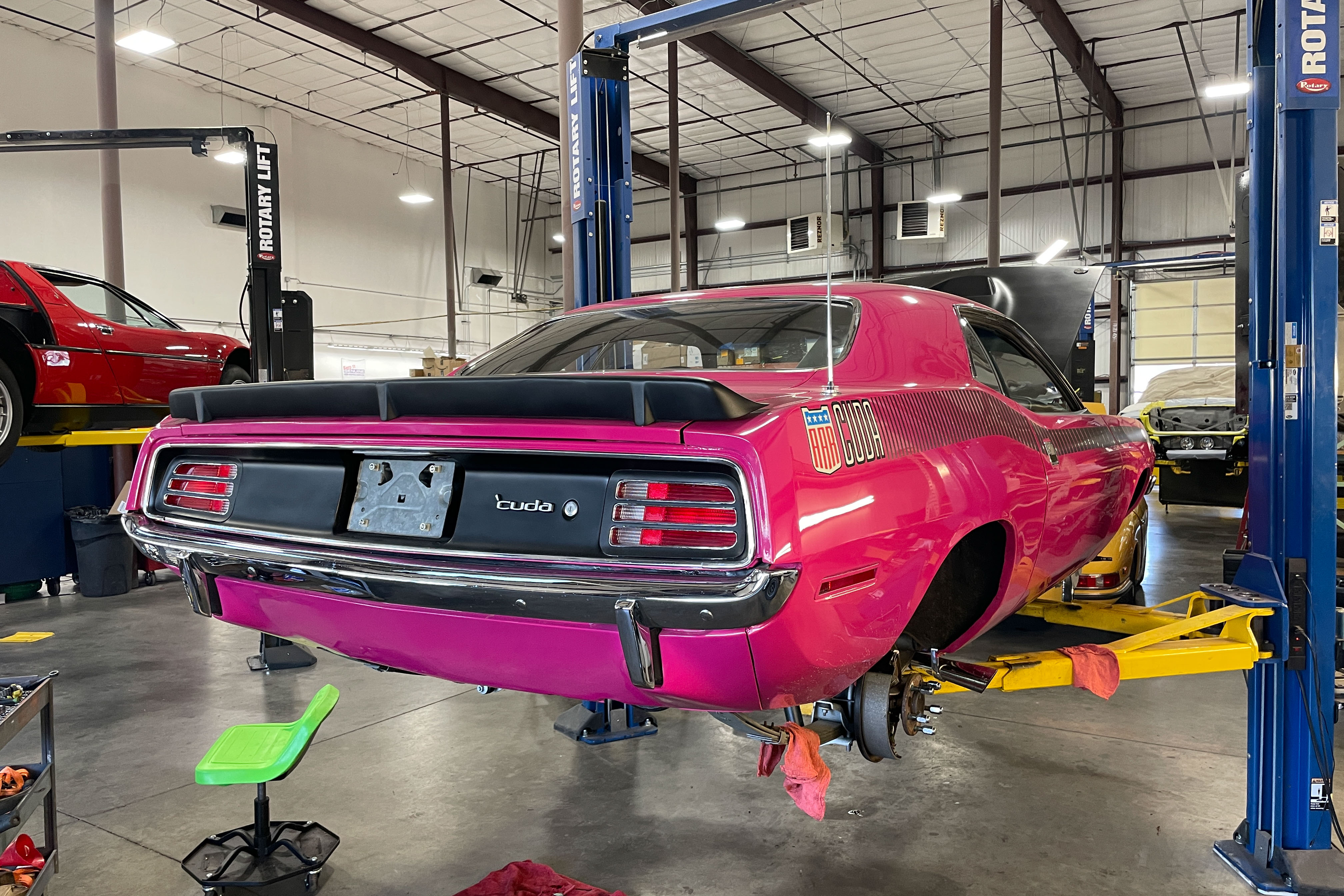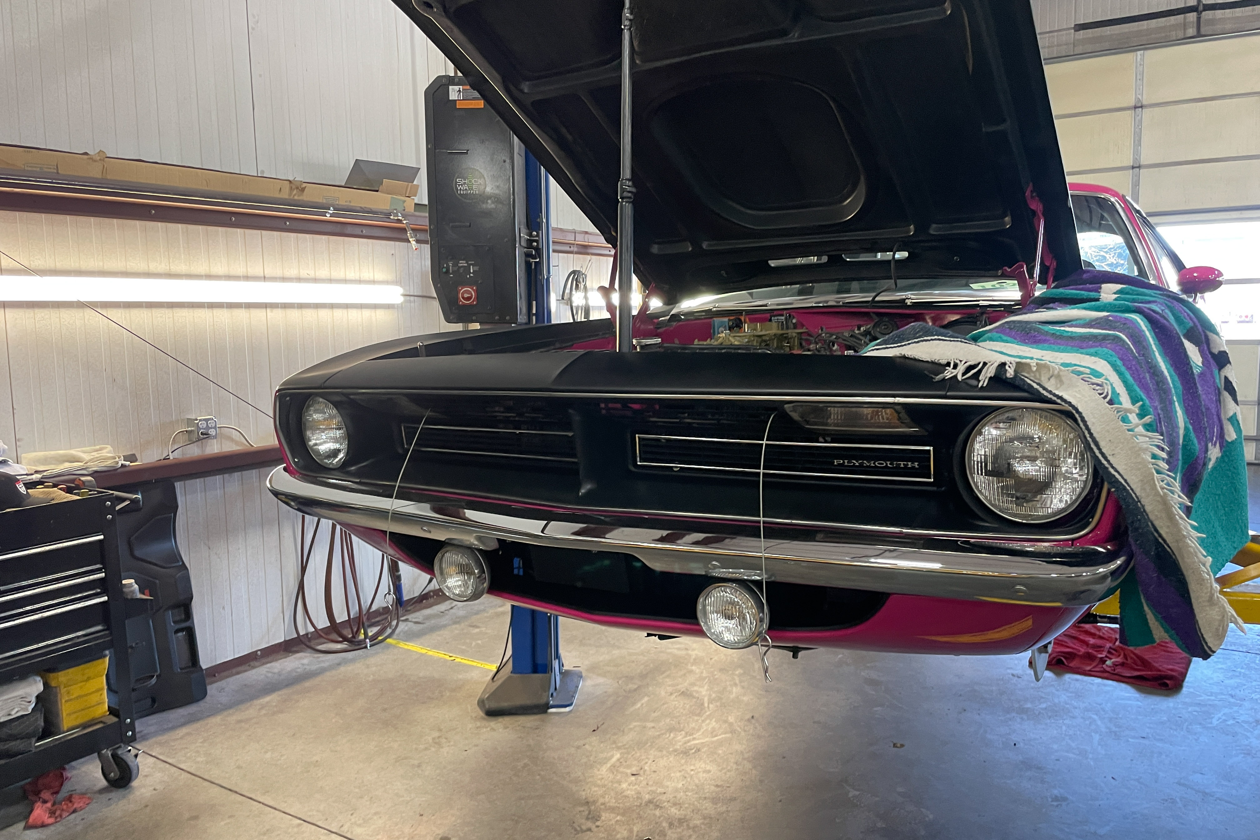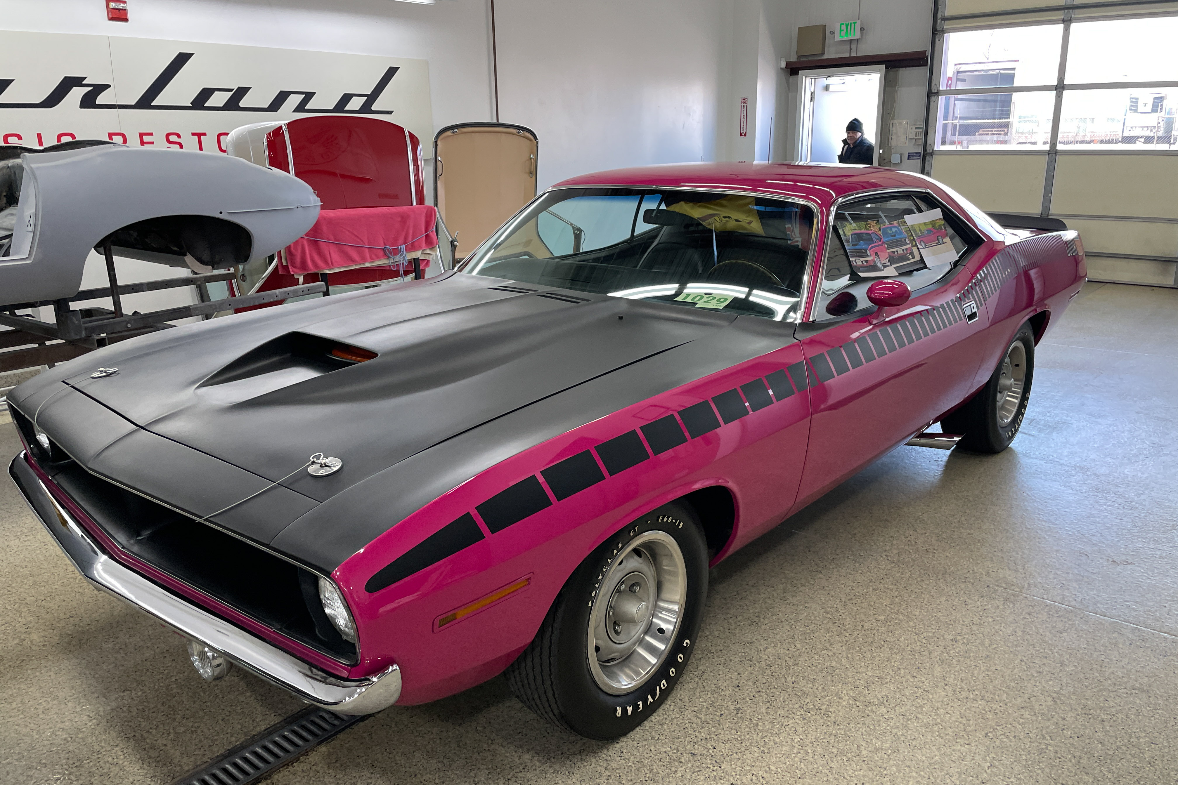 We’re not worthy! OK, we are. This is a true AAR ‘Cuda. Mopar’s Holy Grail. We did a bit of cosmetic work on the front spoiler and rear. Also just a bit of mechanical – fluids, etc. The car is pristine!
