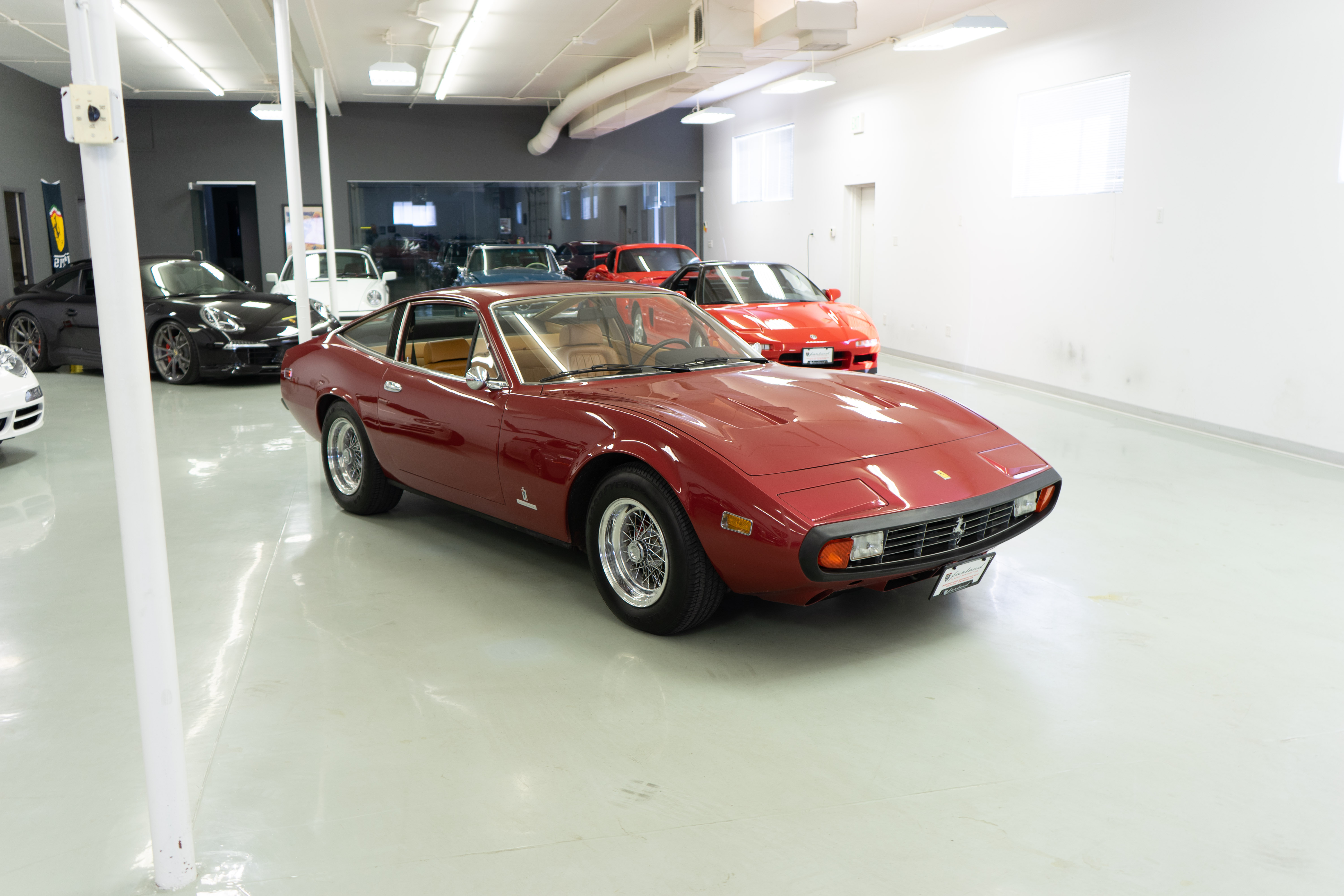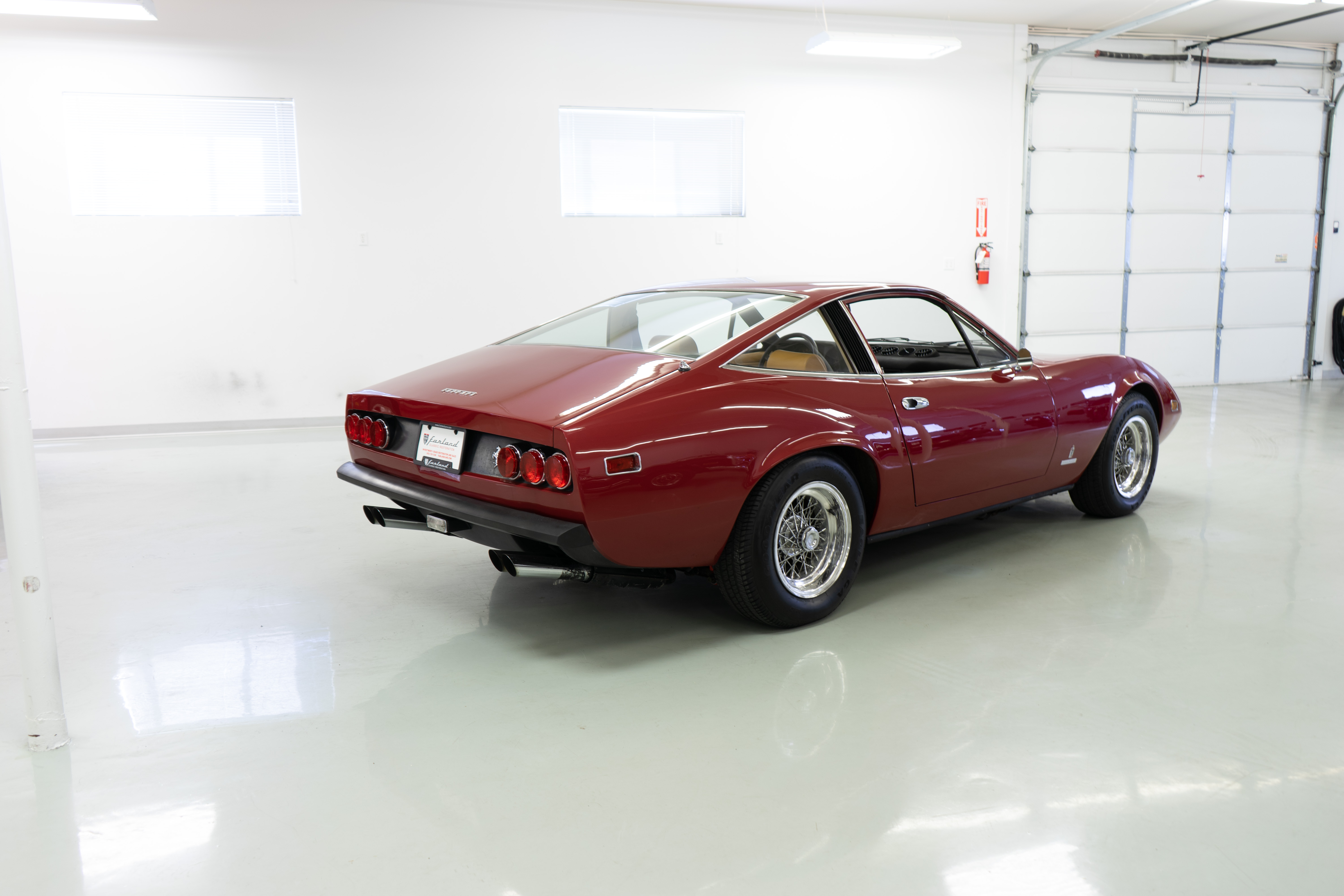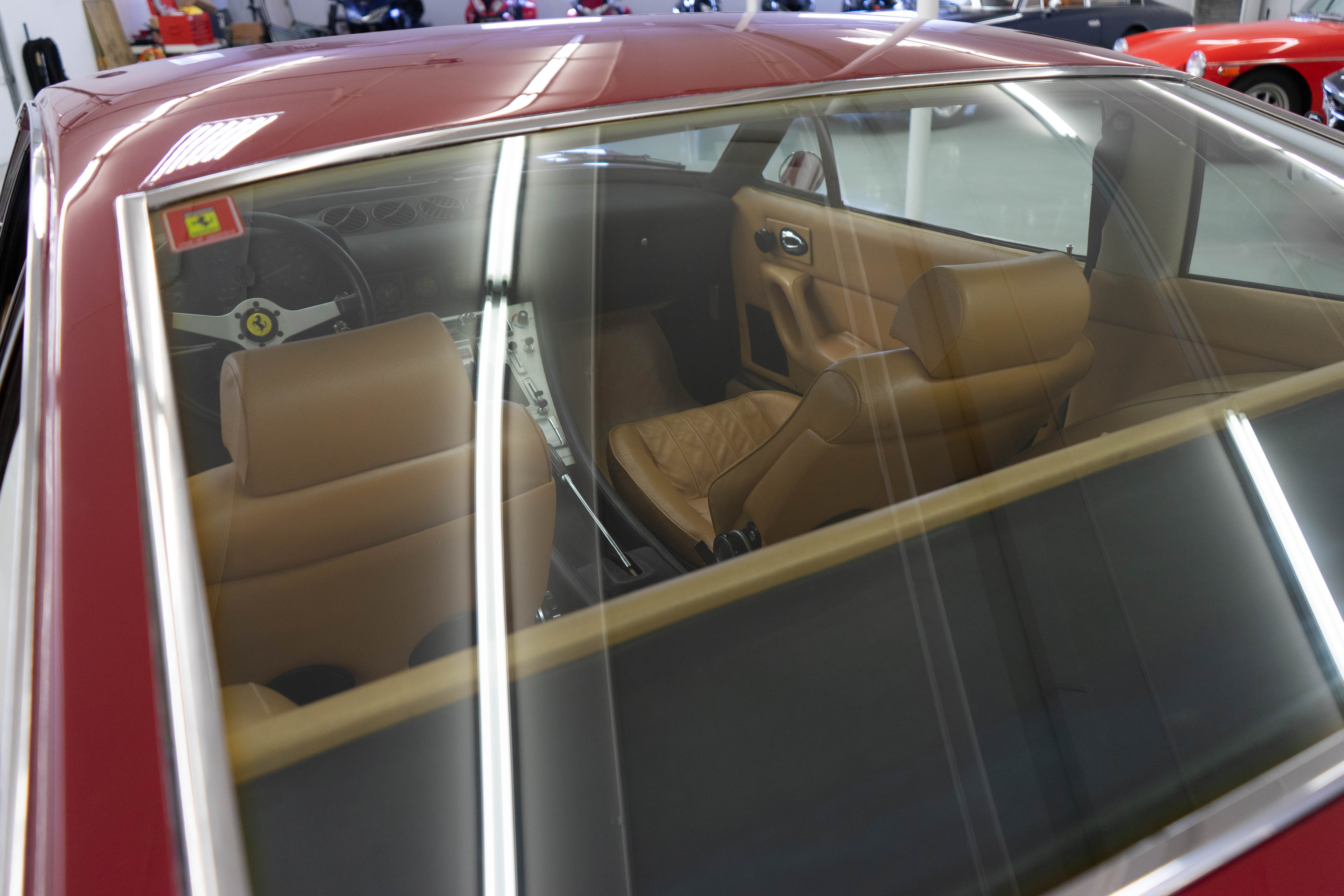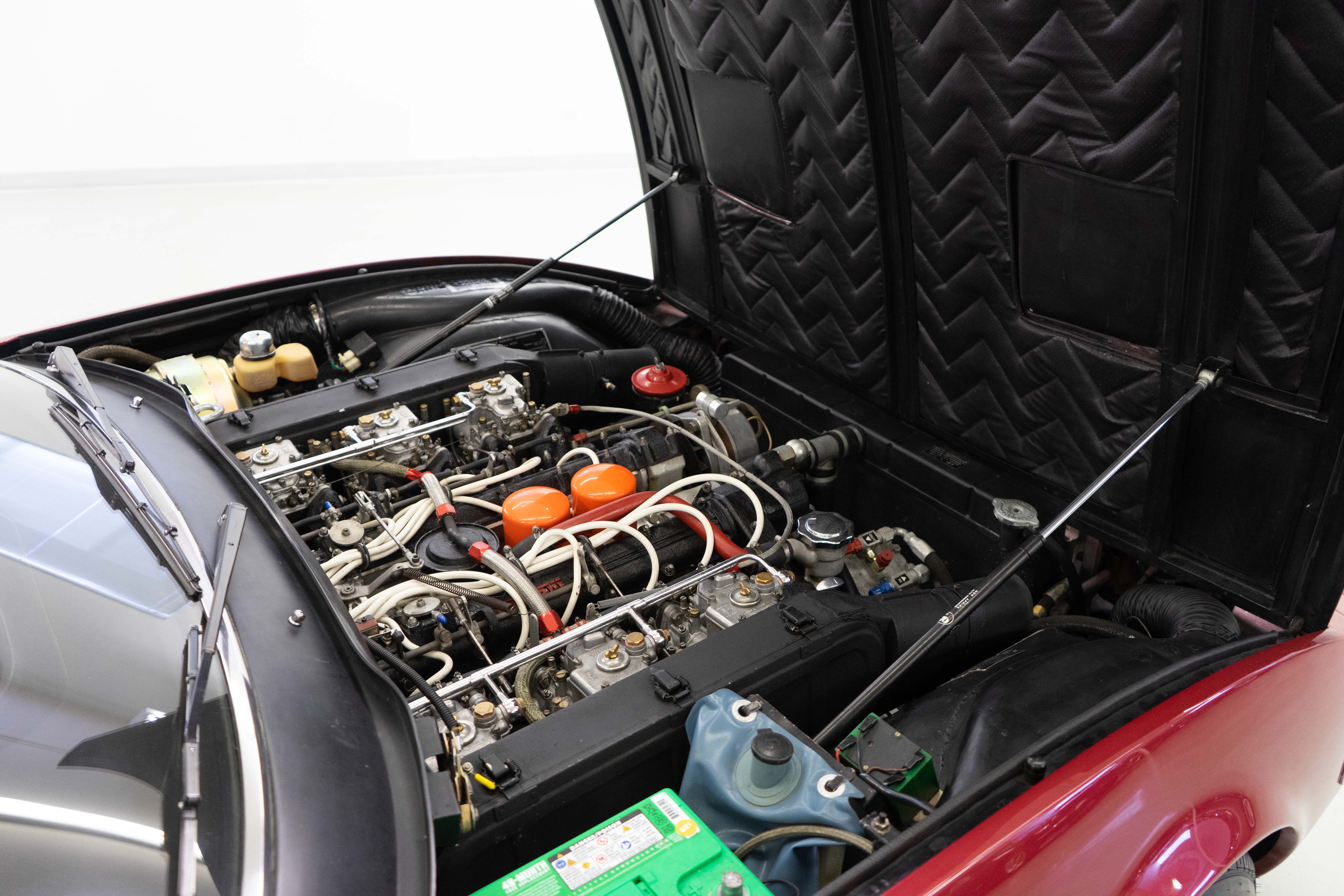 Chassis #15631 is a USA-spec car originally delivered to Modern Classic Motors in Reno. It has been recorded on several vintage Ferrari sites and is considered to be a very solid example; the 23K miles reputed to be accurate. Originally Nocciola Metallizato (Hazelnut), it has been Rosso Rubino for decades. Tan interior leather is soft with little wear and the dash covering is excellent. Fitted with chrome Borrani wheels and complete with owner’s book and both tool sets—the tire-changing kit in its bag and the briefcase-style hand tool set—all tools are original & excellent.The engine runs strong and quiet—no cam chain noise—and has shown no overheating tendencies when running hard up our mountain passes! Proper oil pressure & temps, too, it is a very nice-driving example. Shifts well with good synchos and the rear diff & limited slip are quiet.