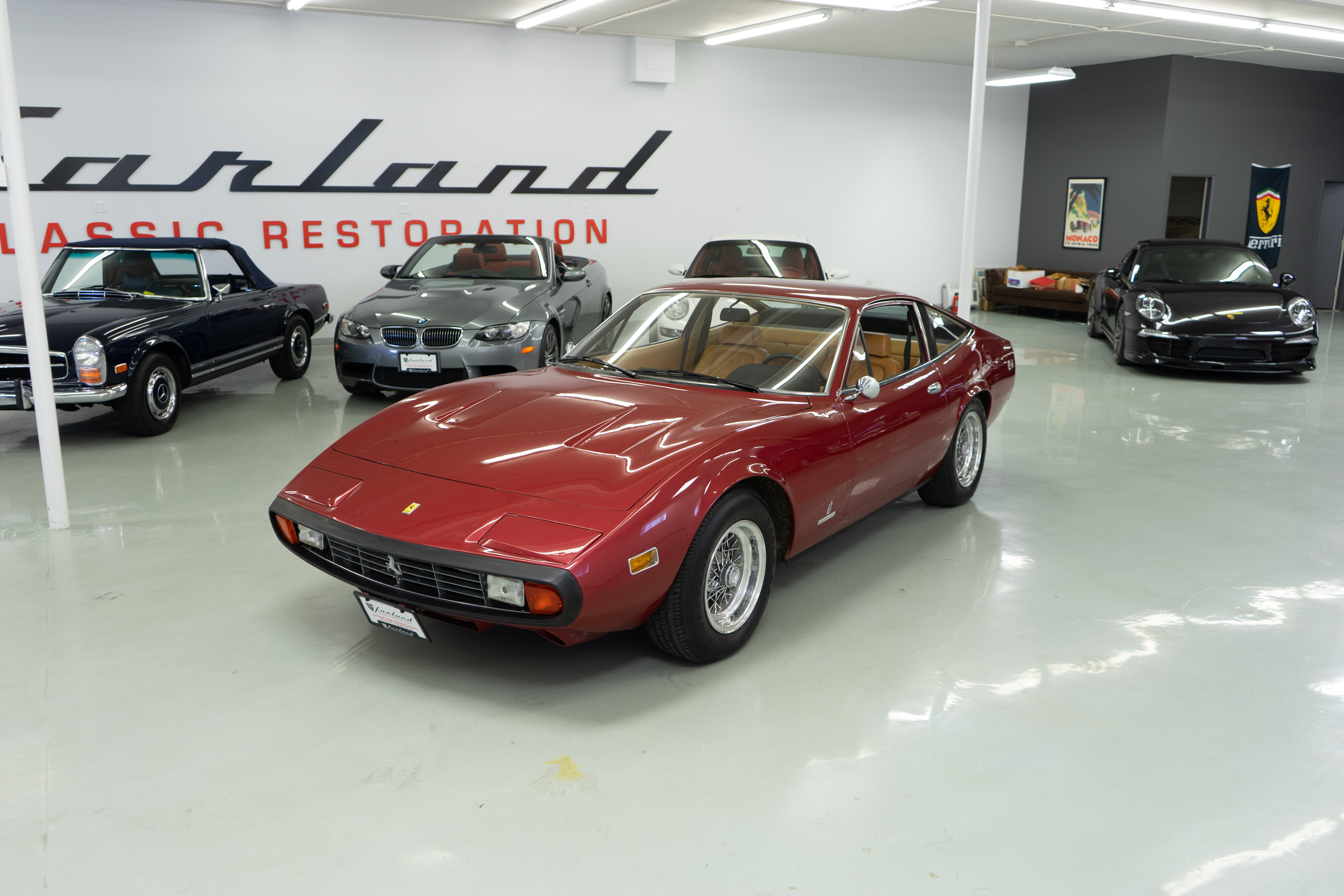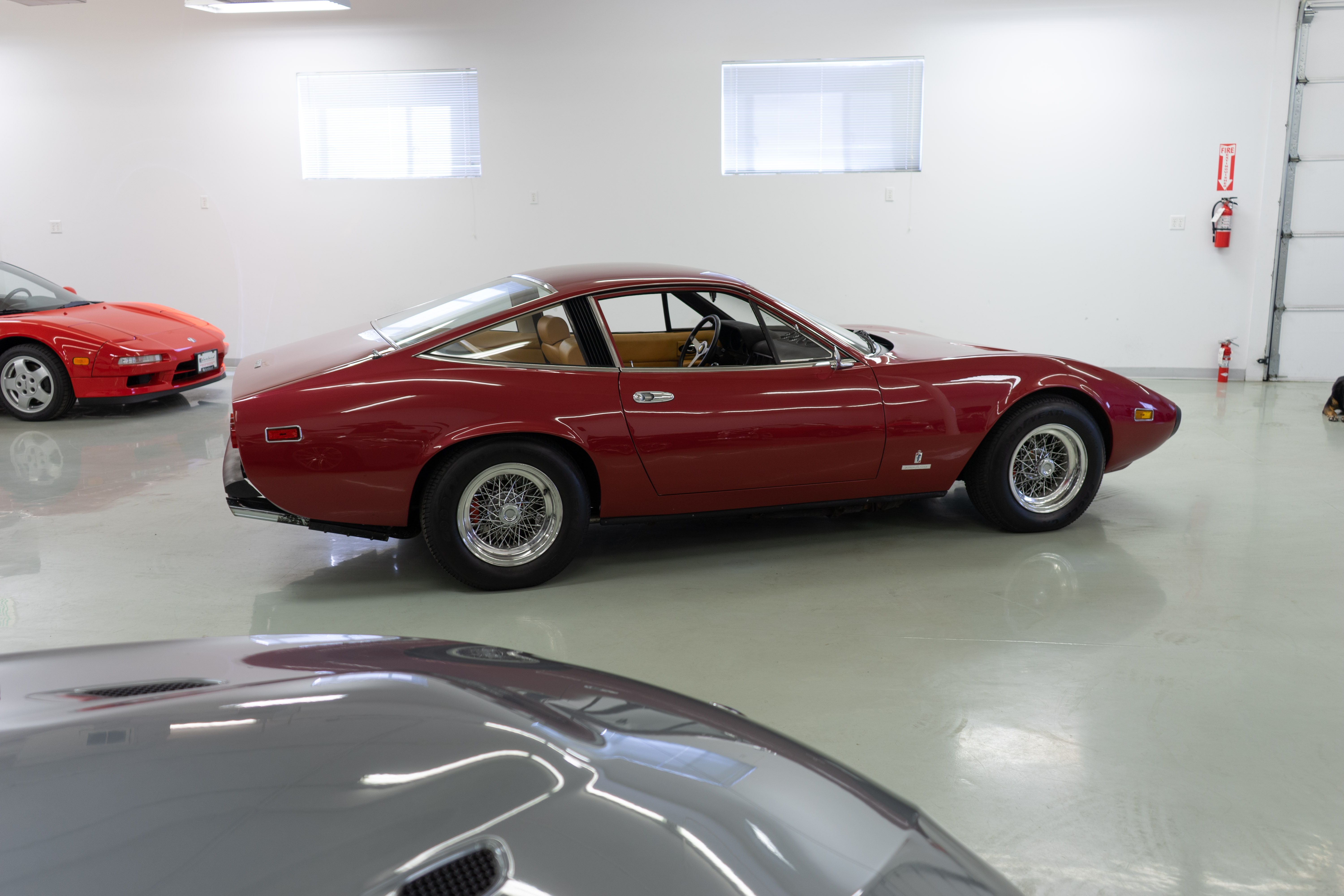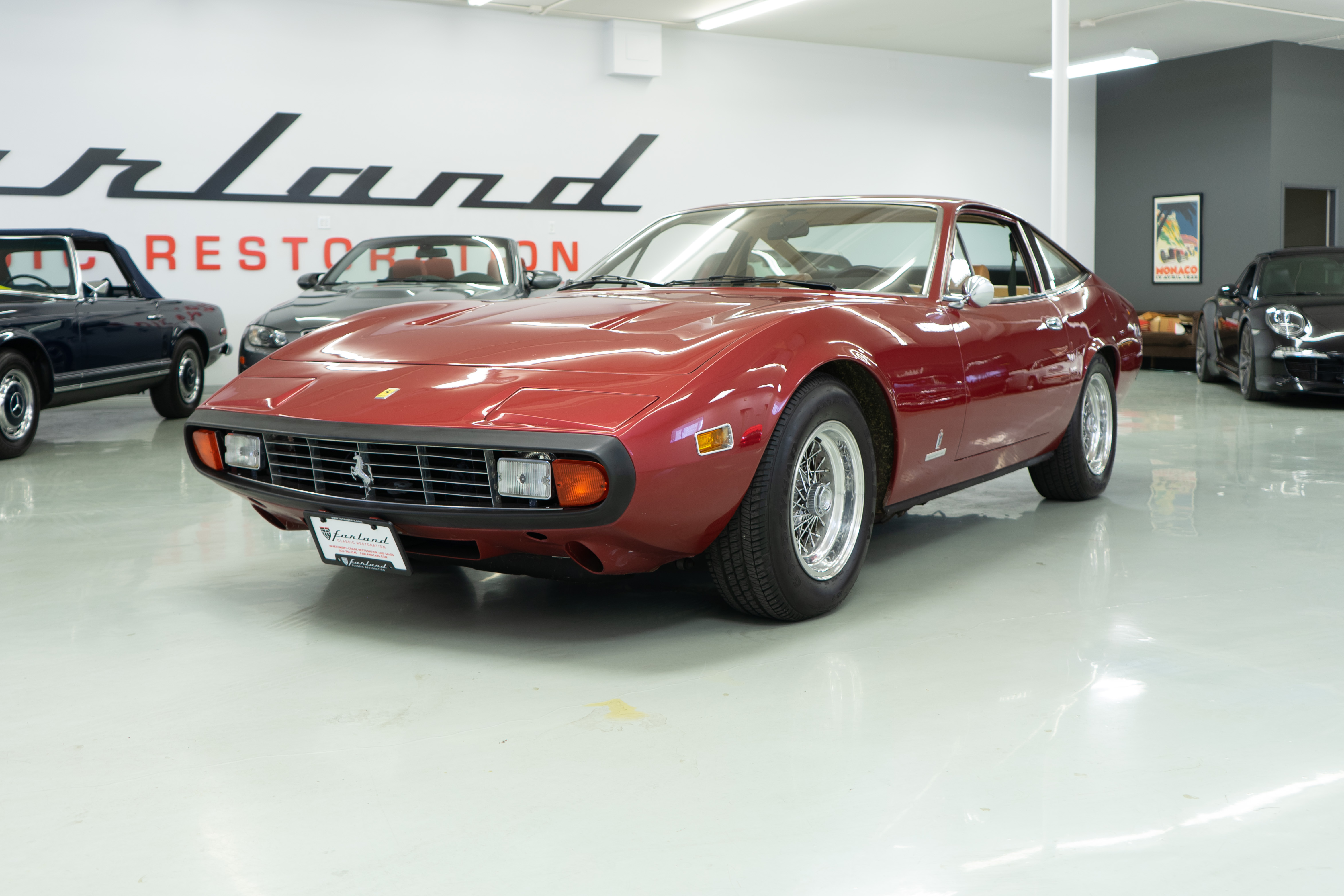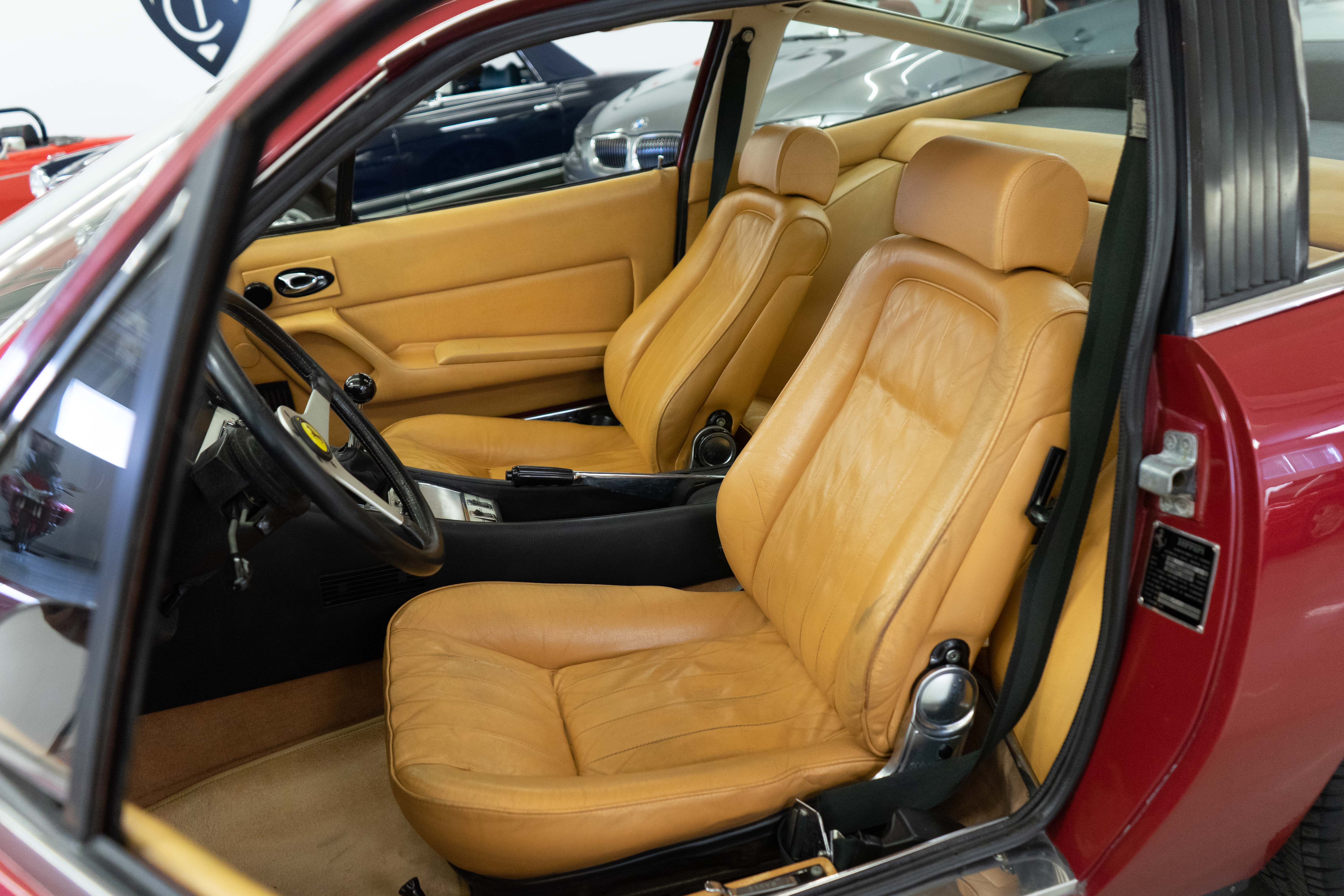 Chassis #15631 is a USA-spec car originally delivered to Modern Classic Motors in Reno. It has been recorded on several vintage Ferrari sites and is considered to be a very solid example; the 23K miles reputed to be accurate. Originally Nocciola Metallizato (Hazelnut), it has been Rosso Rubino for decades. Tan interior leather is soft with little wear and the dash covering is excellent. Fitted with chrome Borrani wheels and complete with owner’s book and both tool sets—the tire-changing kit in its bag and the briefcase-style hand tool set—all tools are original & excellent.The engine runs strong and quiet—no cam chain noise—and has shown no overheating tendencies when running hard up our mountain passes! Proper oil pressure & temps, too, it is a very nice-driving example. Shifts well with good synchos and the rear diff & limited slip are quiet.