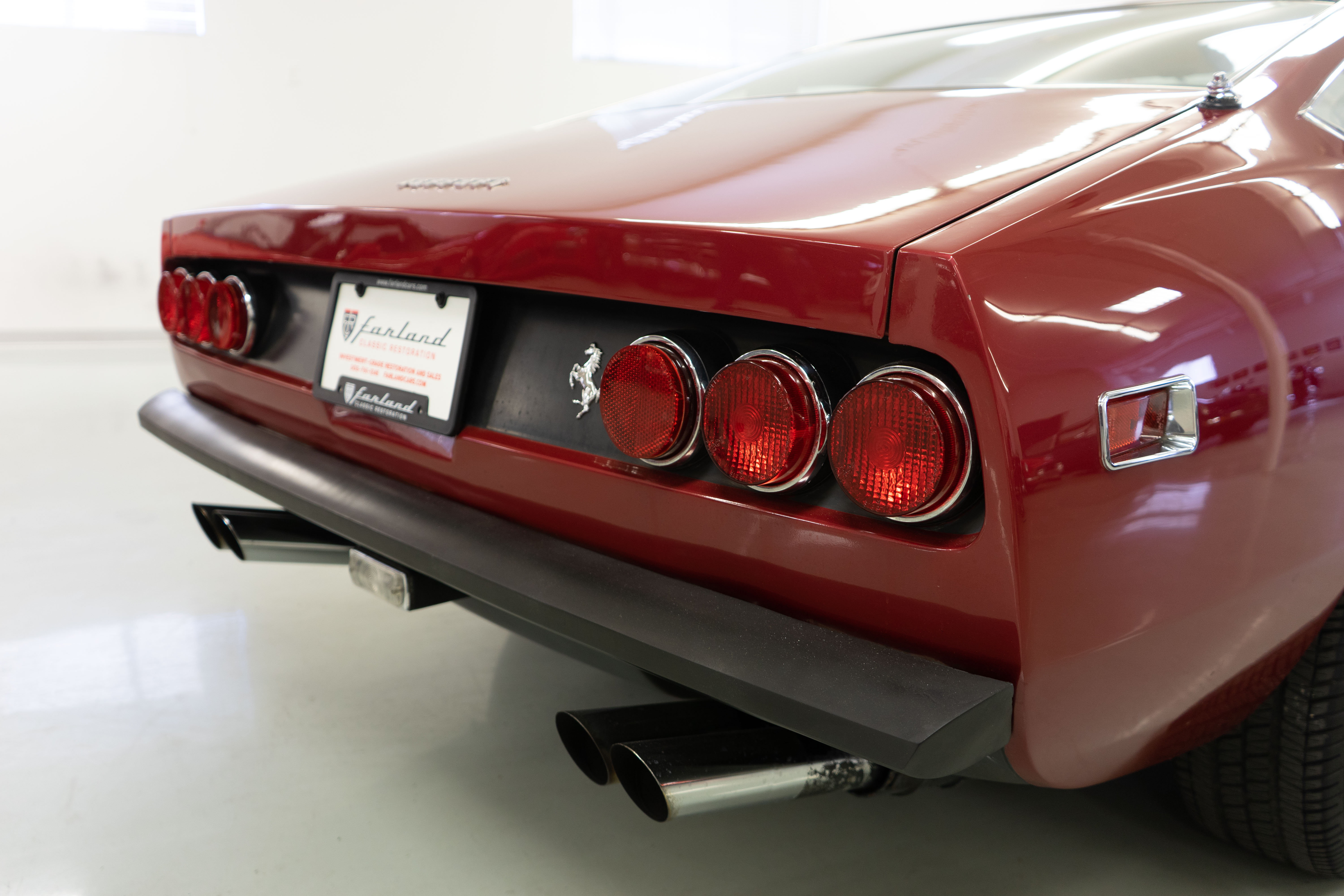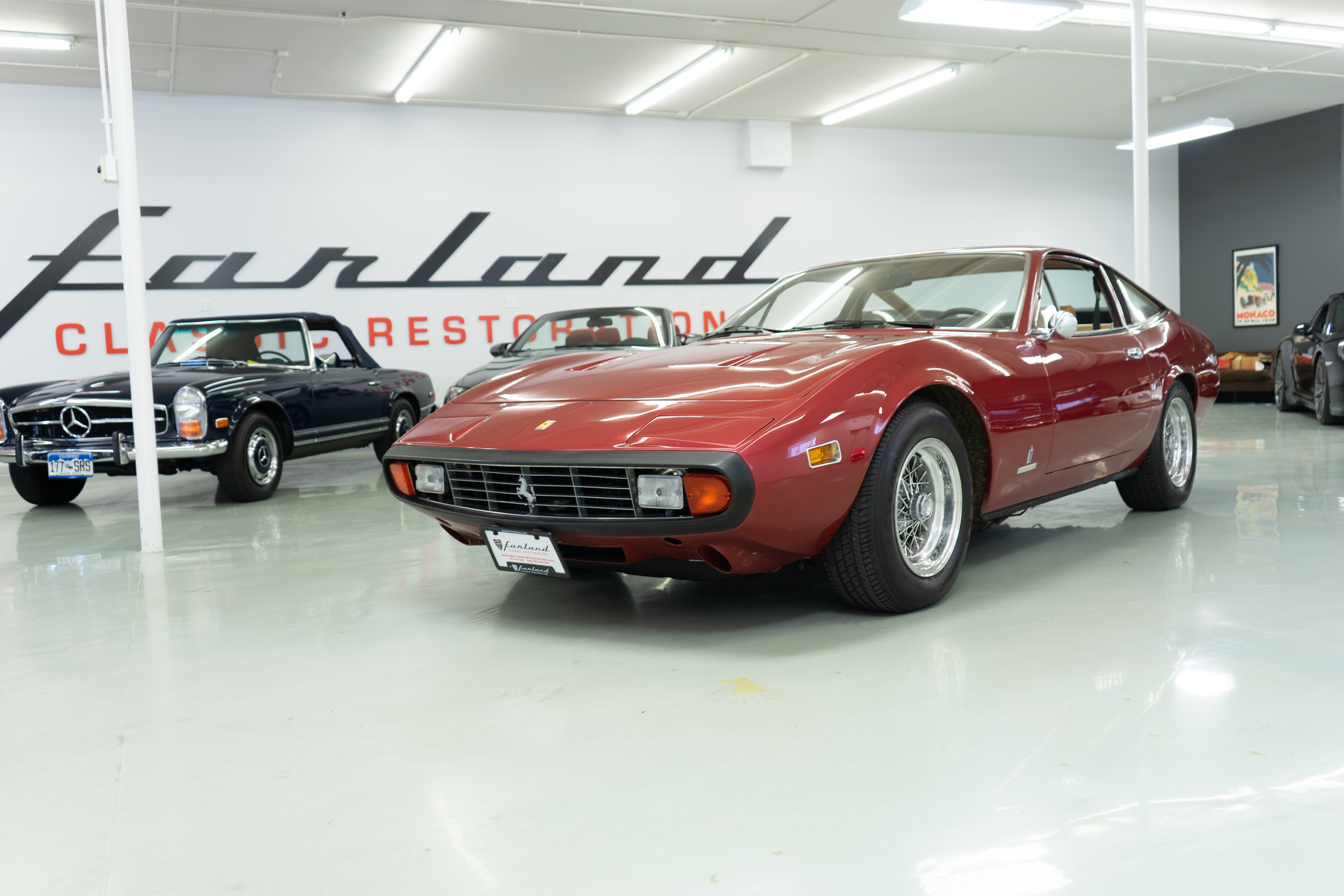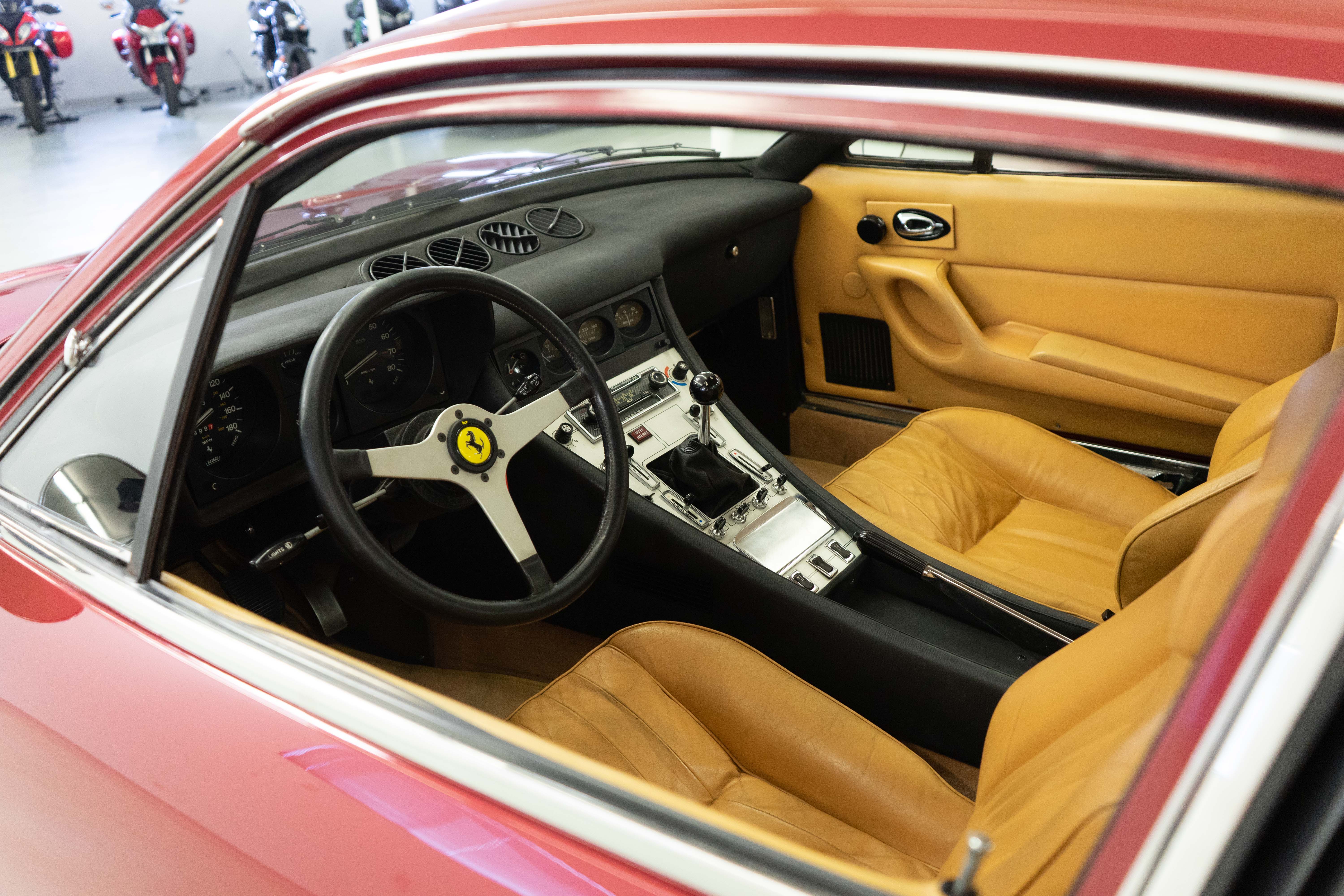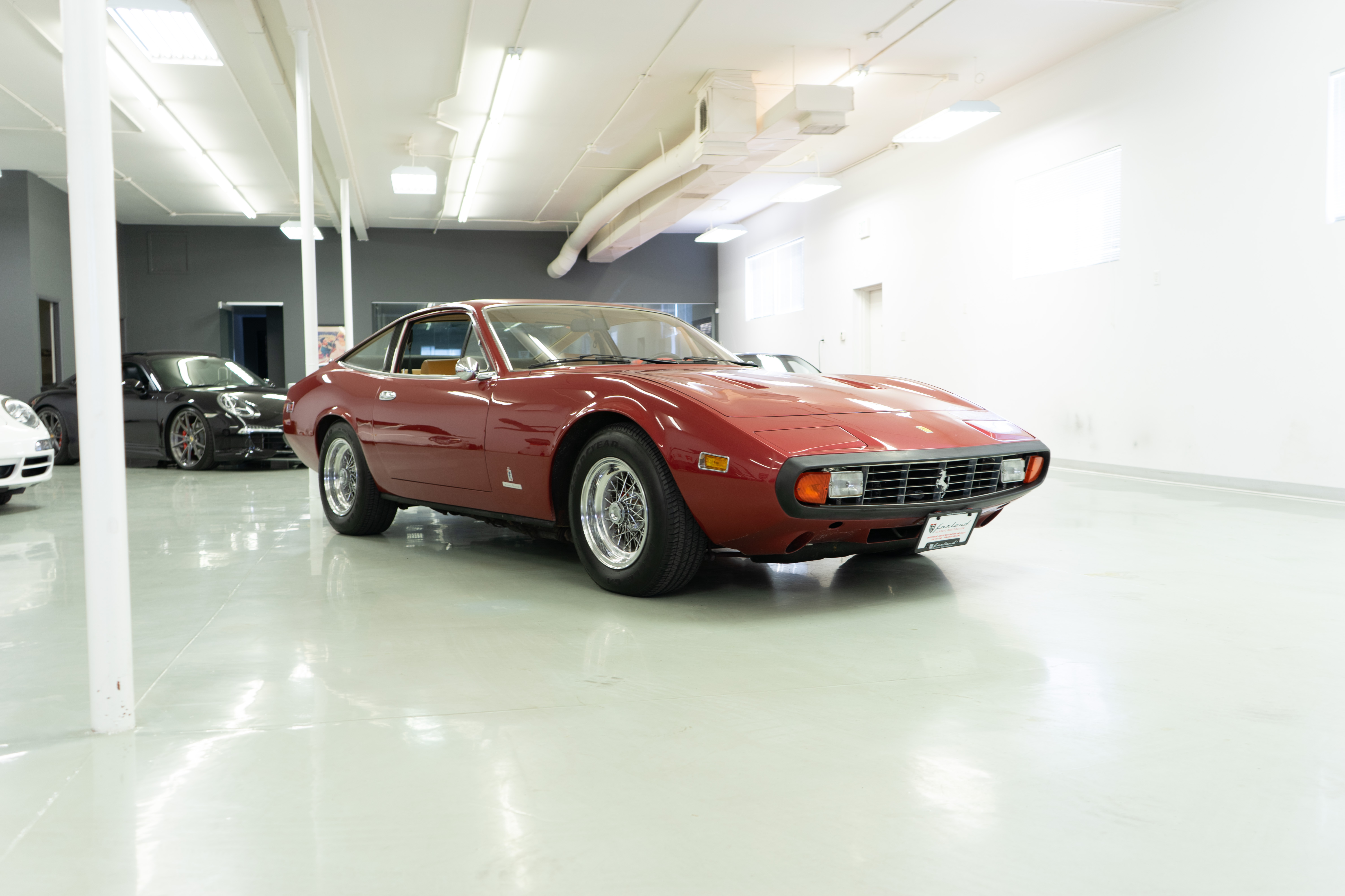 Chassis #15631 is a USA-spec car originally delivered to Modern Classic Motors in Reno. It has been recorded on several vintage Ferrari sites and is considered to be a very solid example; the 23K miles reputed to be accurate. Originally Nocciola Metallizato (Hazelnut), it has been Rosso Rubino for decades. Tan interior leather is soft with little wear and the dash covering is excellent. Fitted with chrome Borrani wheels and complete with owner’s book and both tool sets—the tire-changing kit in its bag and the briefcase-style hand tool set—all tools are original & excellent.The engine runs strong and quiet—no cam chain noise—and has shown no overheating tendencies when running hard up our mountain passes! Proper oil pressure & temps, too, it is a very nice-driving example. Shifts well with good synchos and the rear diff & limited slip are quiet.