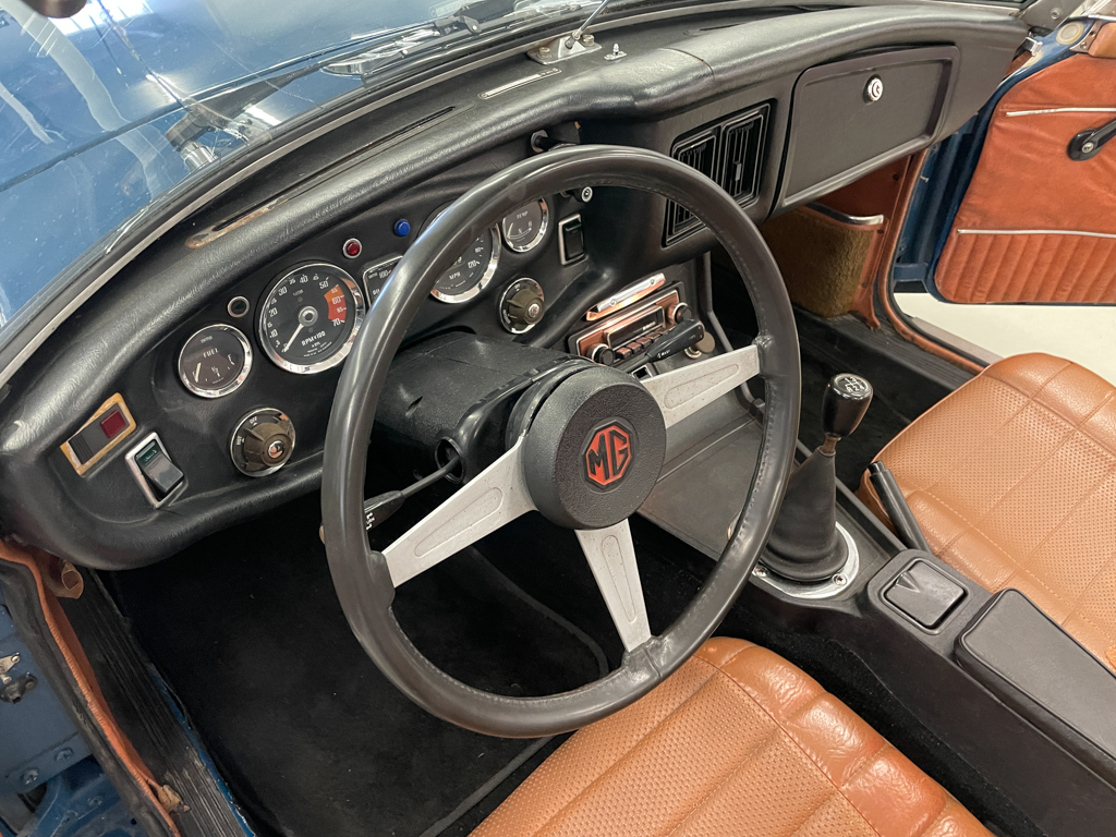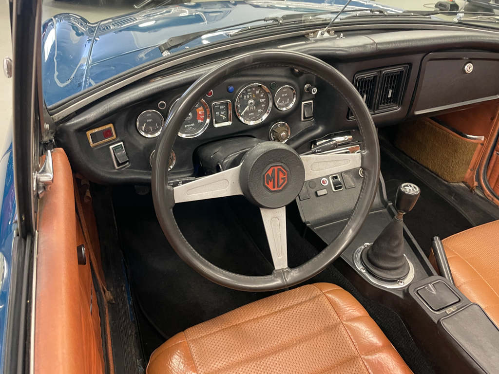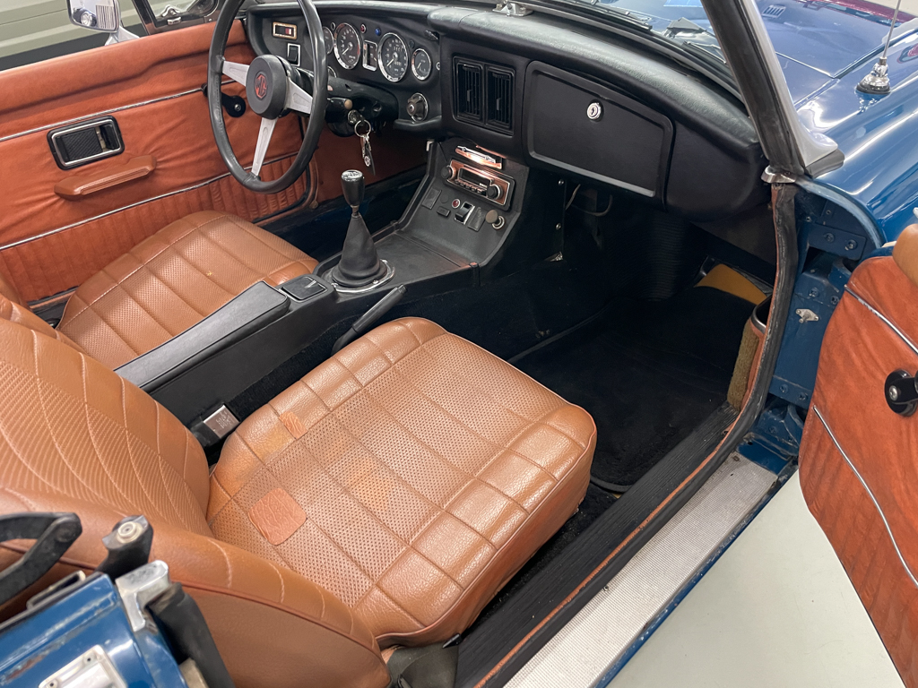 A true survivor! 1974 was the last great year for MG’s venerable B-series, as it was the last time twin SU carburetors were fitted before the dreaded single Stromberg and all its emission belts, hoses, burp valves and other horsepower-robbing plumbing arrived. This car is an opportunity to enjoy simpler, easier-to-live-with tuning. Even better, it was optioned with overdrive, which provides lower revs and more relaxed cruising on the highway.