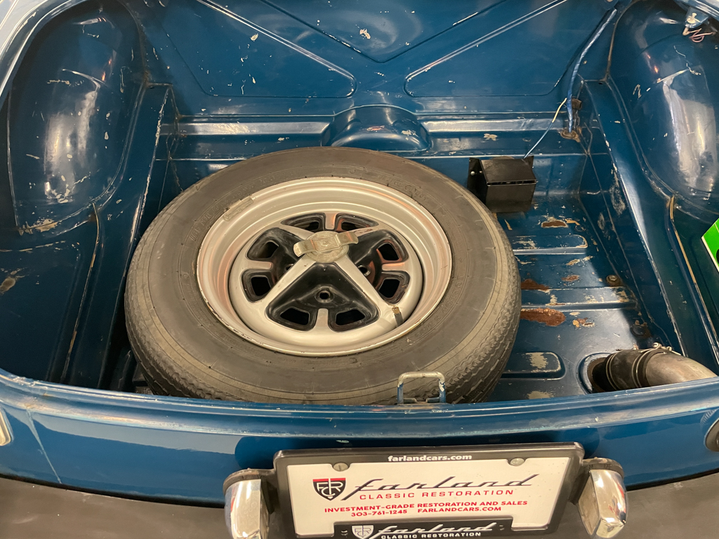 It appears to be almost all original paint (!) and is rock solid underneath as our picture gallery will show (it received a complete dry ice blasting procedure to remove decades of road dirt and reveal a rust-free underbody. There are also no signs of any past accident damage, which is another miracle on a half-century-old sports car! This is certainly due to having been owned by an older guy who didn’t beat it to death like so many of its sister cars were. We have the original owner’s book, shop manual, tonneau cover, some service spares and all the original trunk tools & jack.