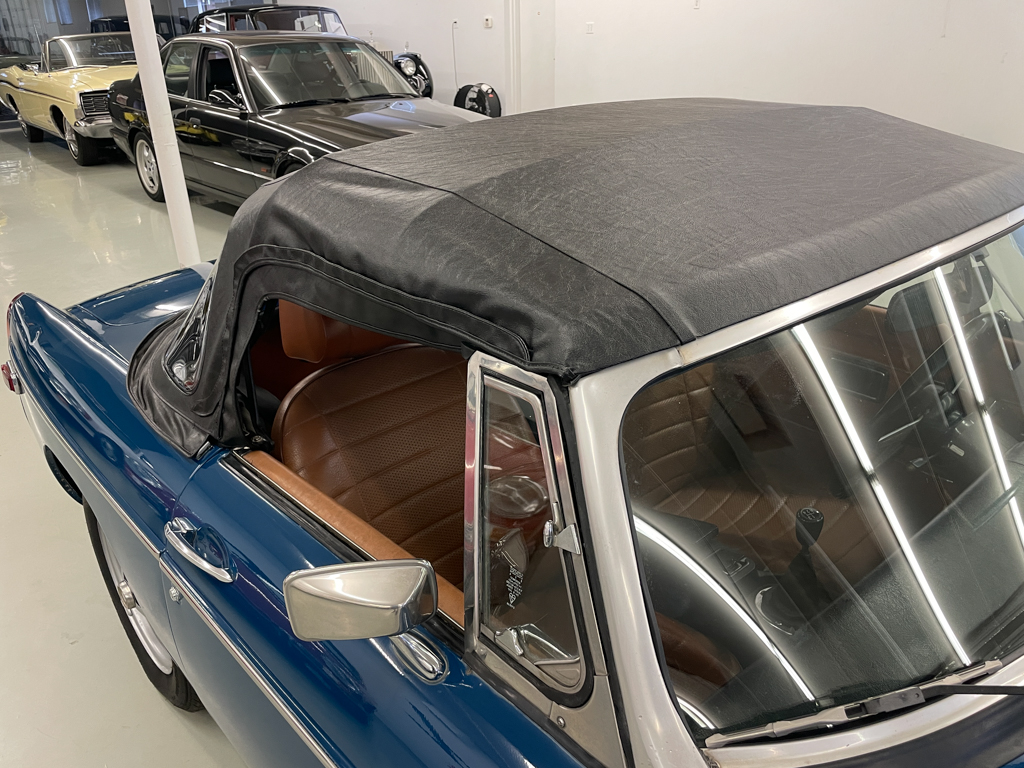 Our shop has just installed a new convertible top, new windshield and did a buff & polish on the original Tahiti Blue paint. The car has a collection of minor dings and small dents and the original interior is showing its time in AZ, but could easily be improved by a Saturday tinkerer. Most $10K vintage cars have to come home on a trailer, but this one could go 200 miles tomorrow!