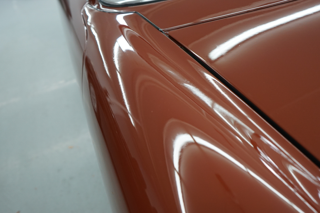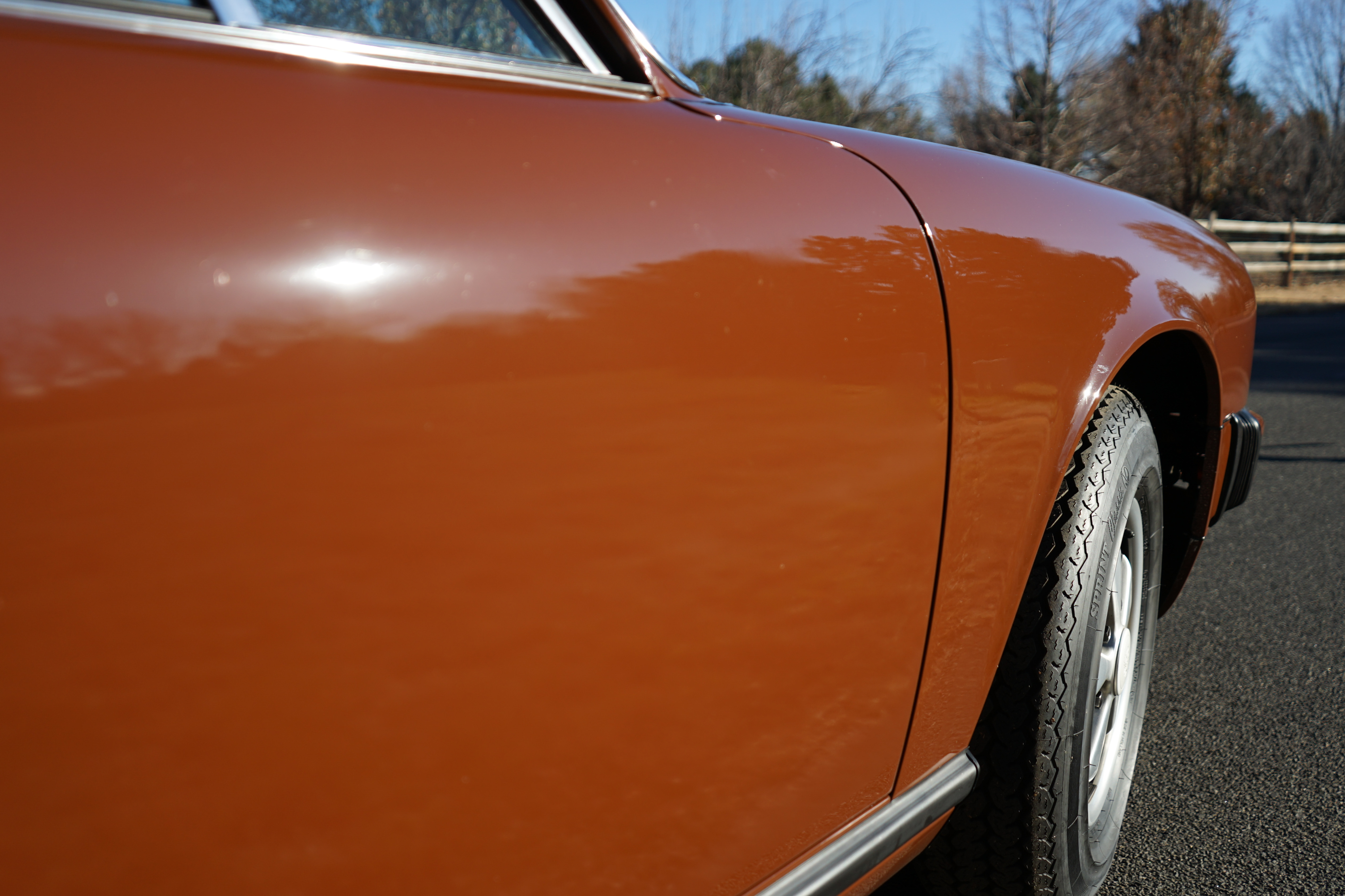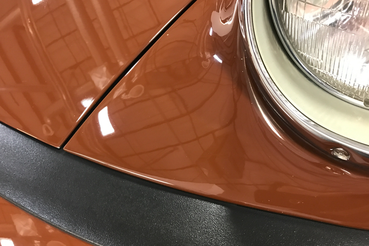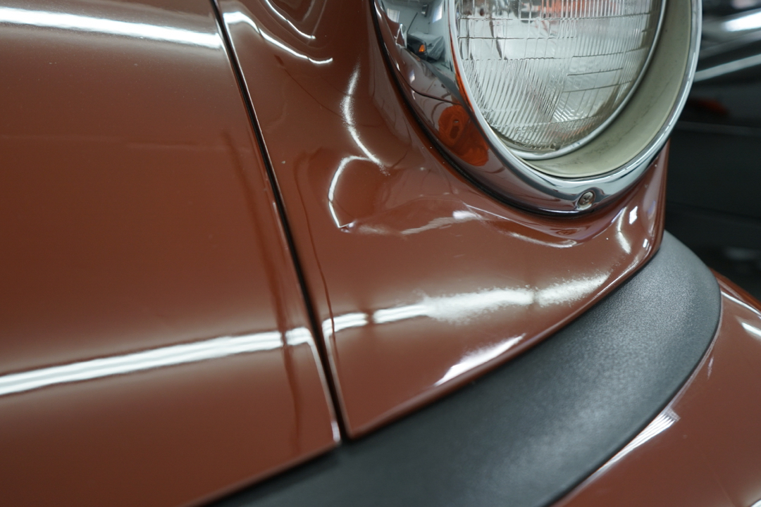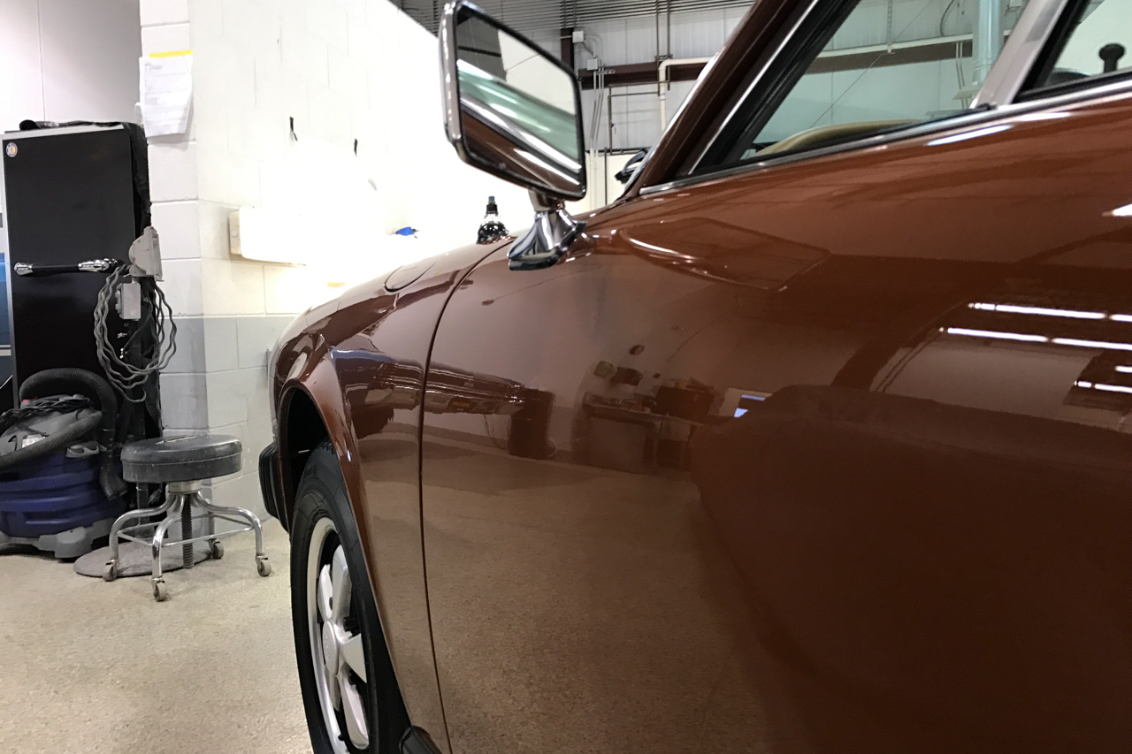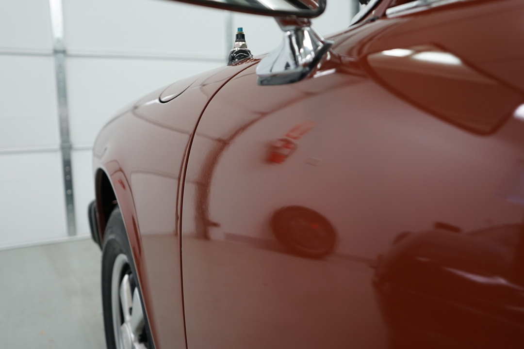 This remarkable classic Porsche 912 came through our consignment system. With only 19,000 miles and like-new condition, it was one in a million. There was a small amount of ‘blushing’ on the old clear coat. The first few photos show before and after images. Our paint pros were able to polish down to eliminate the rough spots and craft a perfect finish.